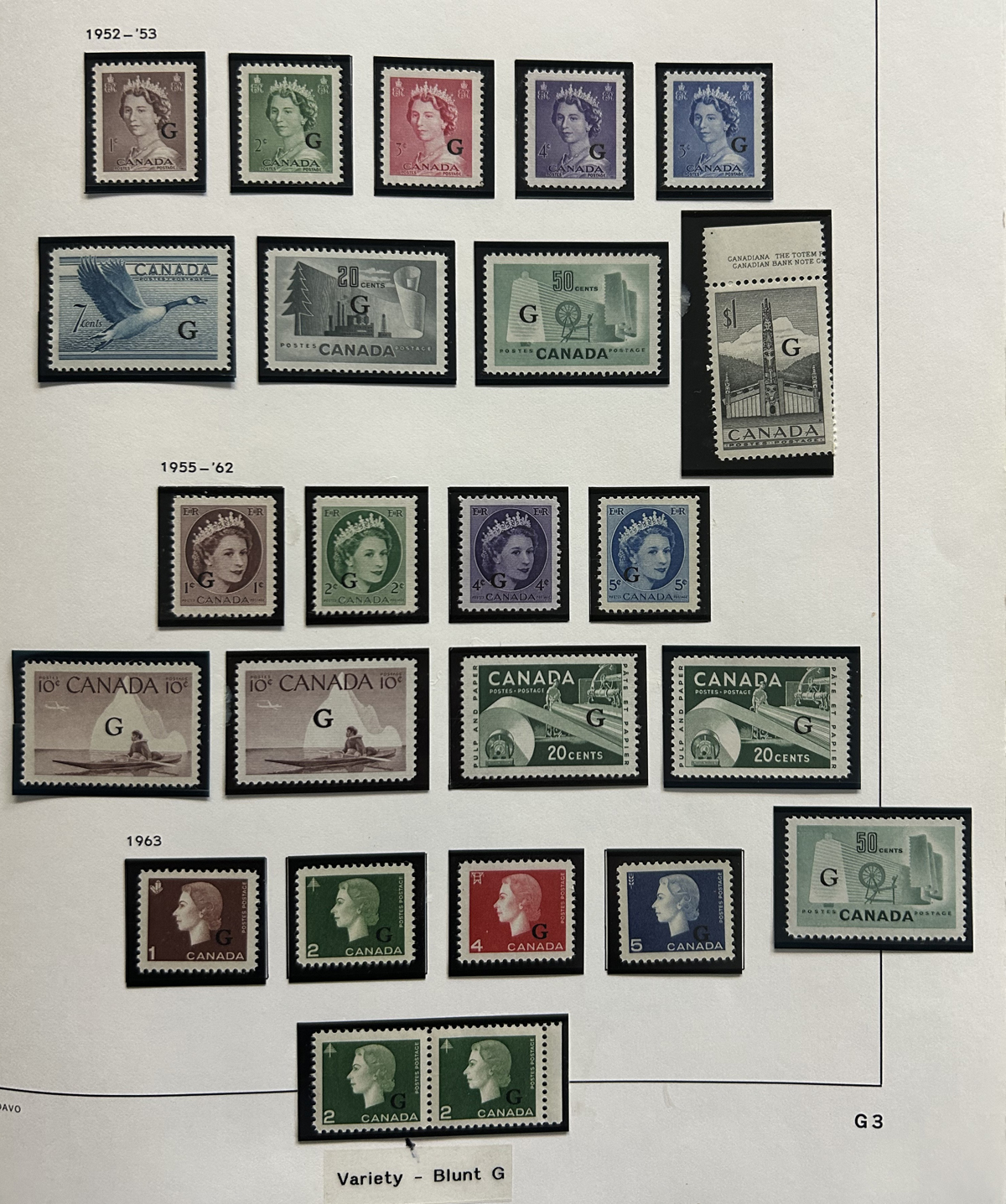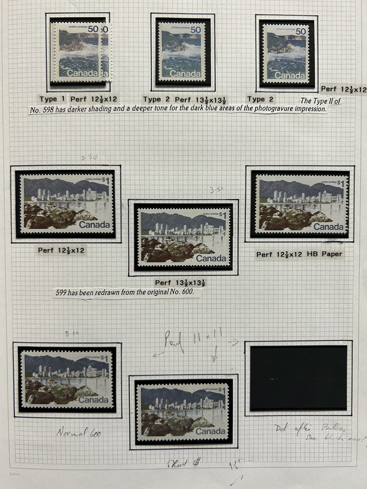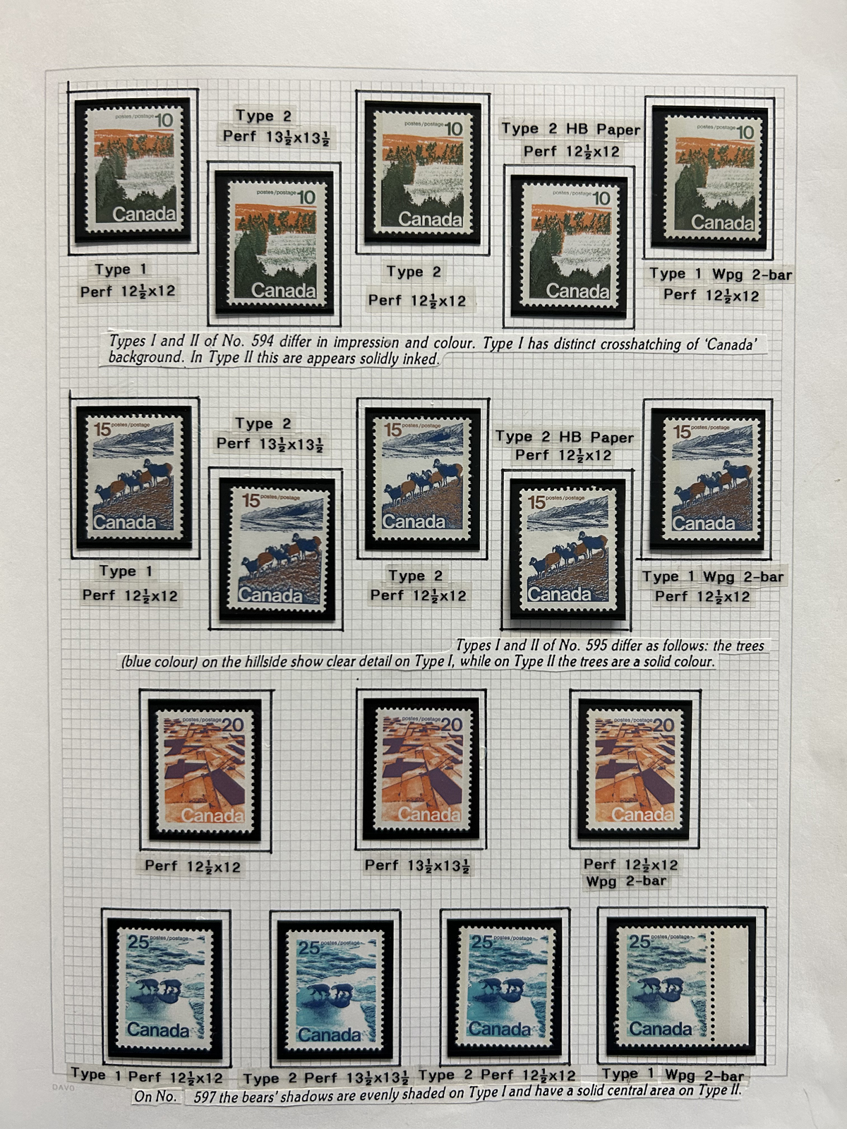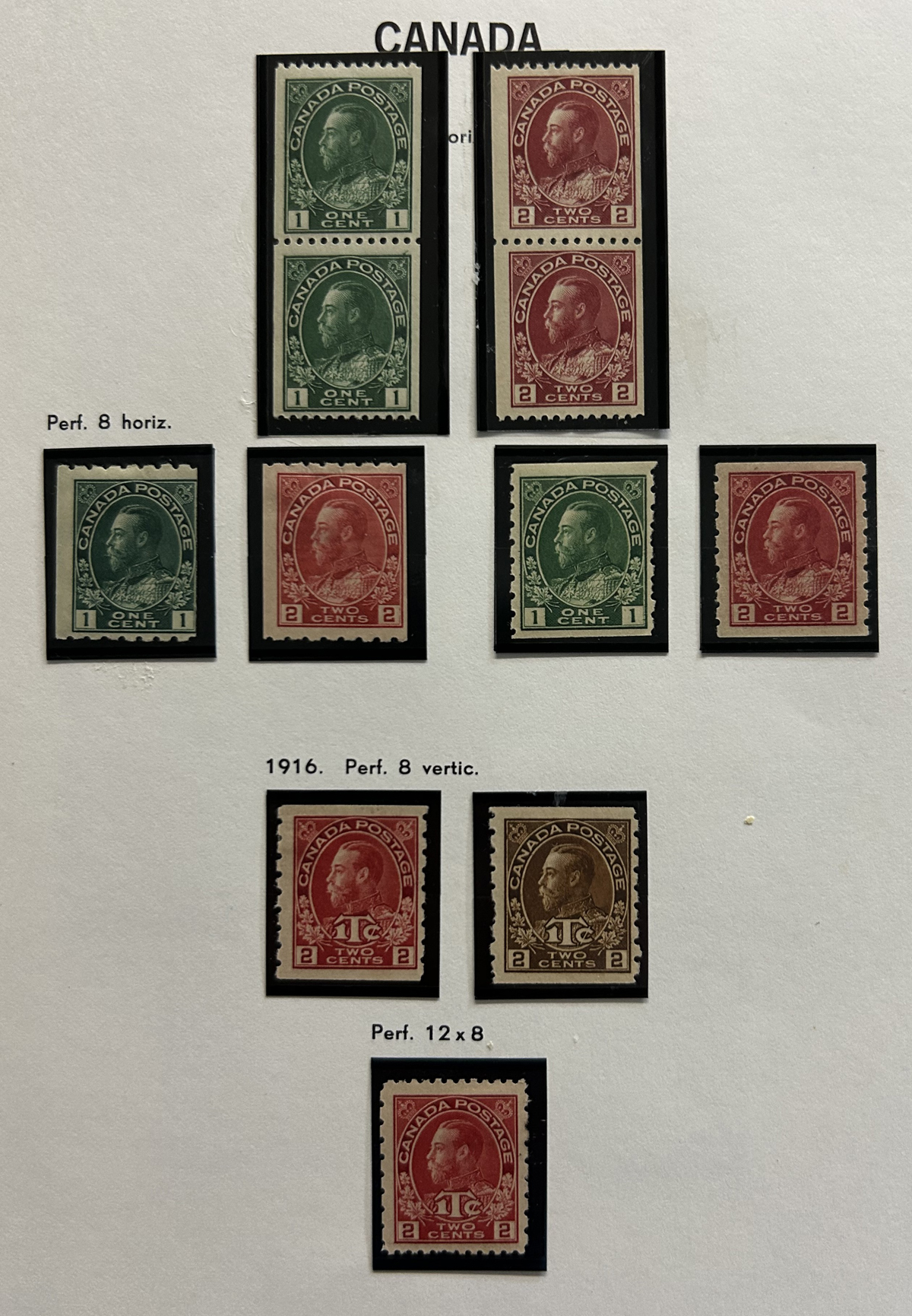 617 nh 347/1172 imageModern Mint Collection, with Many Varieties, 1954-1985, all mounted on 37 double-sided Vario stock sheets. The main collection consists of mint never hinged regular issues, which are complemented by coils, booklets and especially printing varieties. We note many tagging varieties including untagged, bar varieties, etc., as well as many misperforated stamps, some quite drastically-so, plus some misprints, paper varieties, missing ink, etc. Some of the stamps that stood out include #536 with missing inscriptions (sold as is, would require a certificate), a good selection of Caricature issue varieties, many 17c green Parliament varieties, untagged pair of #570-71 (Unitrade $200) and many more. A useful collection that would benefit from being viewed in person, we have selected a number of pages to try and represent the flair of the collection. Should be a useful one for varieties enthusiasts, collectors wishing to add variety to their collection, or online resellers. (Scan 1) (Scan 2) (Scan 3) (Scan 4) (Scan 5) (Scan 6) (Scan 7) (Scan 8) (Scan 9) (Scan 10) (Scan 11) (Scan 12) (Scan 13) (Scan 14) (Scan 15) (Scan 16) (All Scans) (All Images)