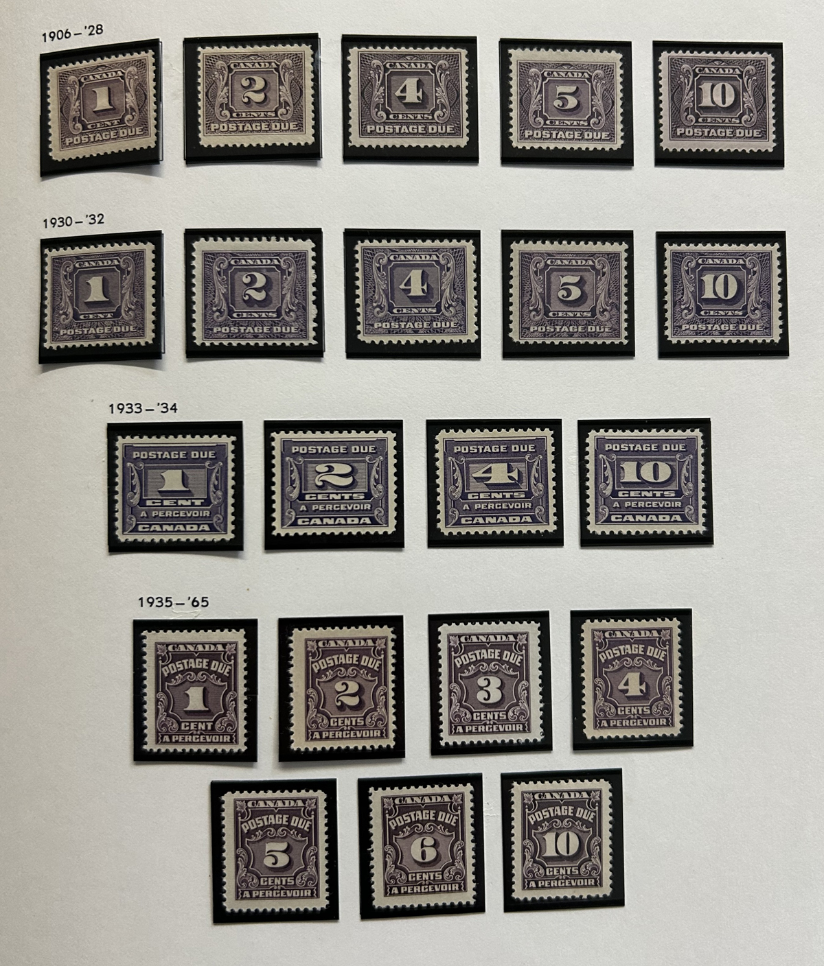 612 O/og/nh 4d/1183 imageCollection of Mostly Mint Canada, 1852-1990, in two DAVO albums with slipcases and pages to 1992, then skips to 2005. Mix of mint and used up to the Edwards, mint only after that. Starts off with a used #4d (sulphuretted), a basic set of 11 Large Queens (a few are regummed or no gum, rest are used), mint Jubilees to the 50c, mostly mint Leafs, Numerals and Maps, a complete set of mint Québecs, a set of Admirals, including War Tax, coils, Provisionals, then pretty much complete from there to about 1984, with scattered issues after that, some in an envelope, ready to be mounted. Back of the book is quite strong and all mint, with complete Airmails, complete Postage Dues (to 1978), complete Special Delivery, complete O.H.M.S. and G overprints plus 2c and 5c Registration issues. The few mint items we checked revealed themselves to be a mix of hinged and never hinged, but we didn't check most, as they are mounted in split-back black mounts. We did, however note that some of the Jubilees and many of the Admirals were never hinged, and the Scroll issues mostly have old album offsets. A lovely collection, with generally good quality throughout and a huge catalogue value. See our many online photos get an idea of the value offered here. Overall fine to very fine and should easily be worth our low estimate. (Scan 1) (Scan 2) (Scan 3) (Scan 4) (Scan 5) (Scan 6) (Scan 7) (Scan 8) (Scan 9) (Scan 10) (Scan 11) (Scan 12) (Scan 13) (Scan 14) (Scan 15) (Scan 16) (Scan 17) (Scan 18) (Scan 19) (Scan 20) (Scan 21) (Scan 22) (Scan 23) (Scan 24) (All Scans) (All Images)
