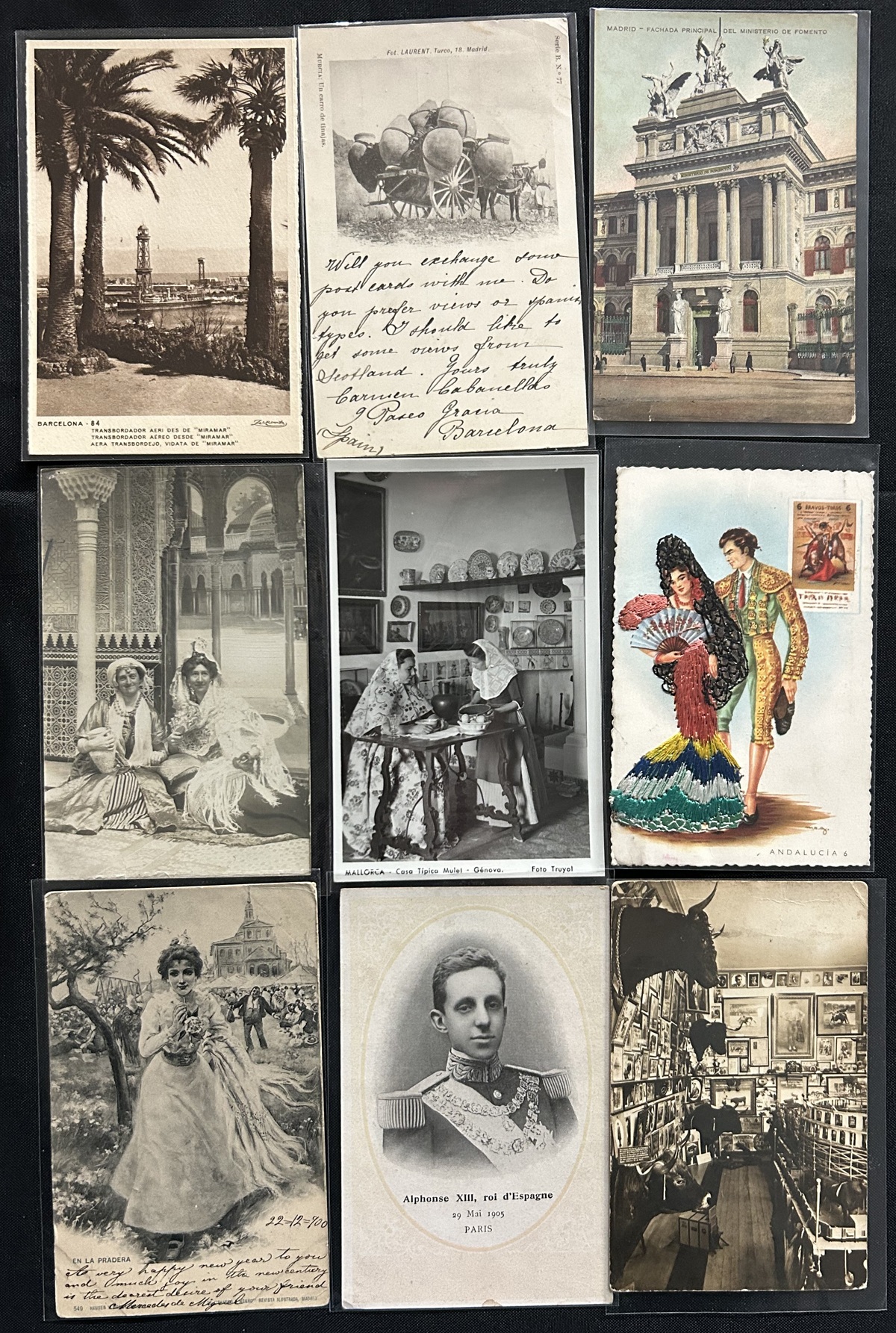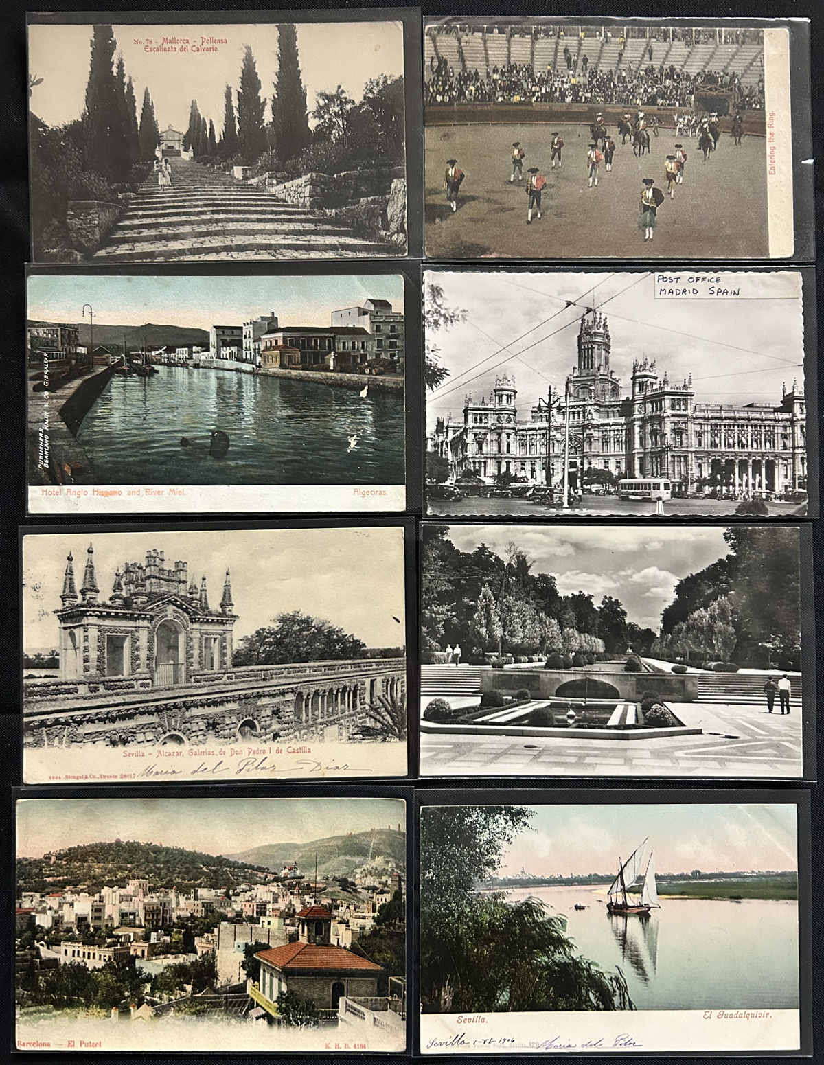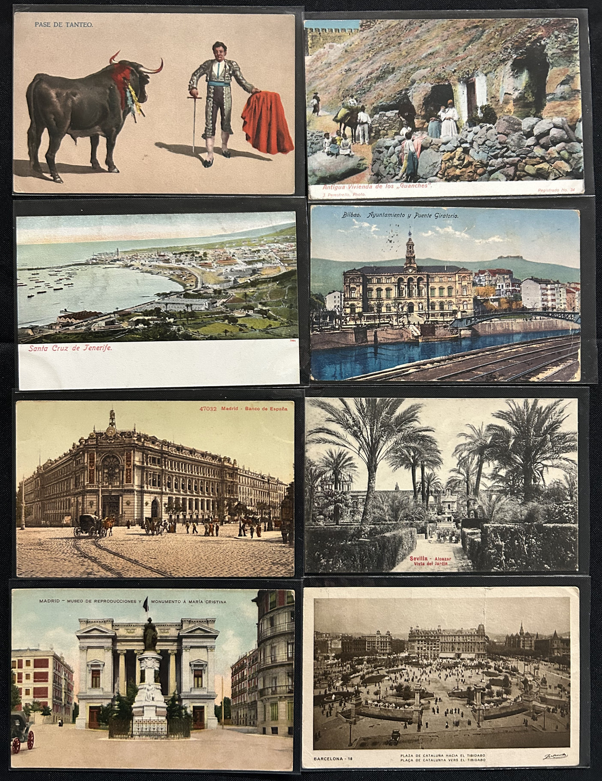 601 PC   imageGroup of About 450 Early Picture Postcards from Spain, with a good variety of town and country scenes, architecture, and much more. We estimate that less than a quarter of the cards were mailed, and the cards all appear to date between the early 1900s and the 1950s. Includes two unused postcard packs. Quality is overall nice, with the usual faults here and there. (Scan 1) (Scan 2) (Scan 3) (Scan 4) (All Scans) (All Images)