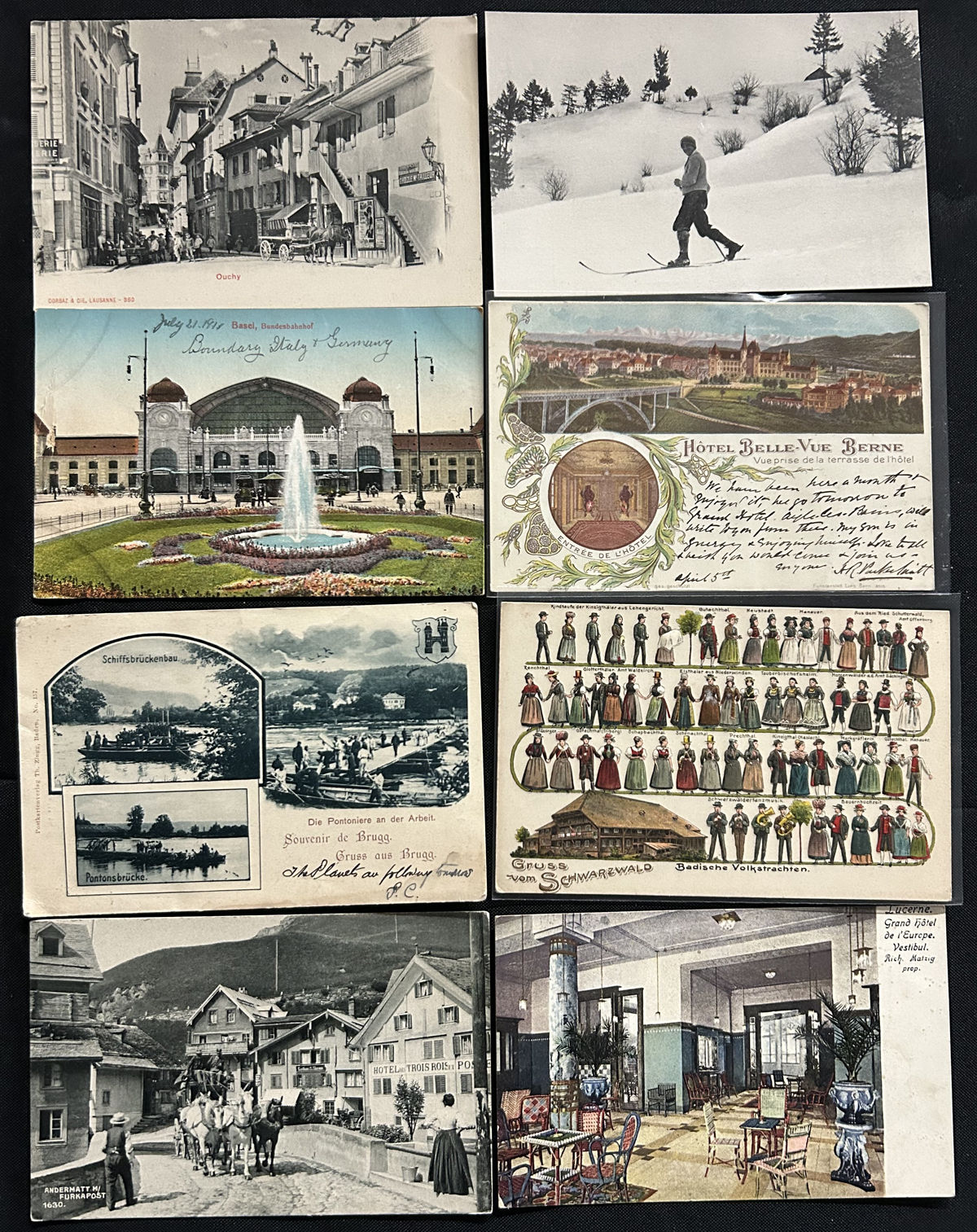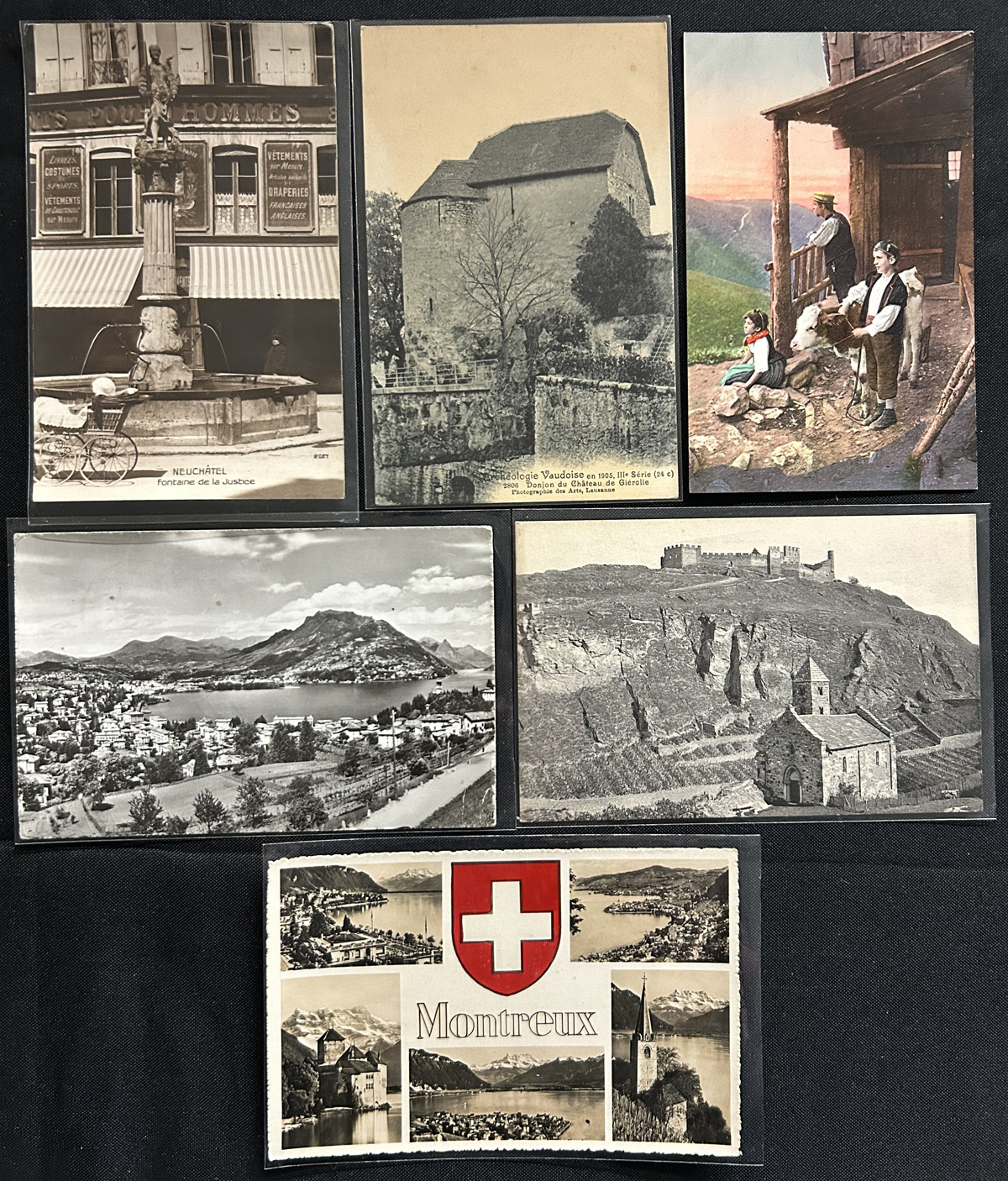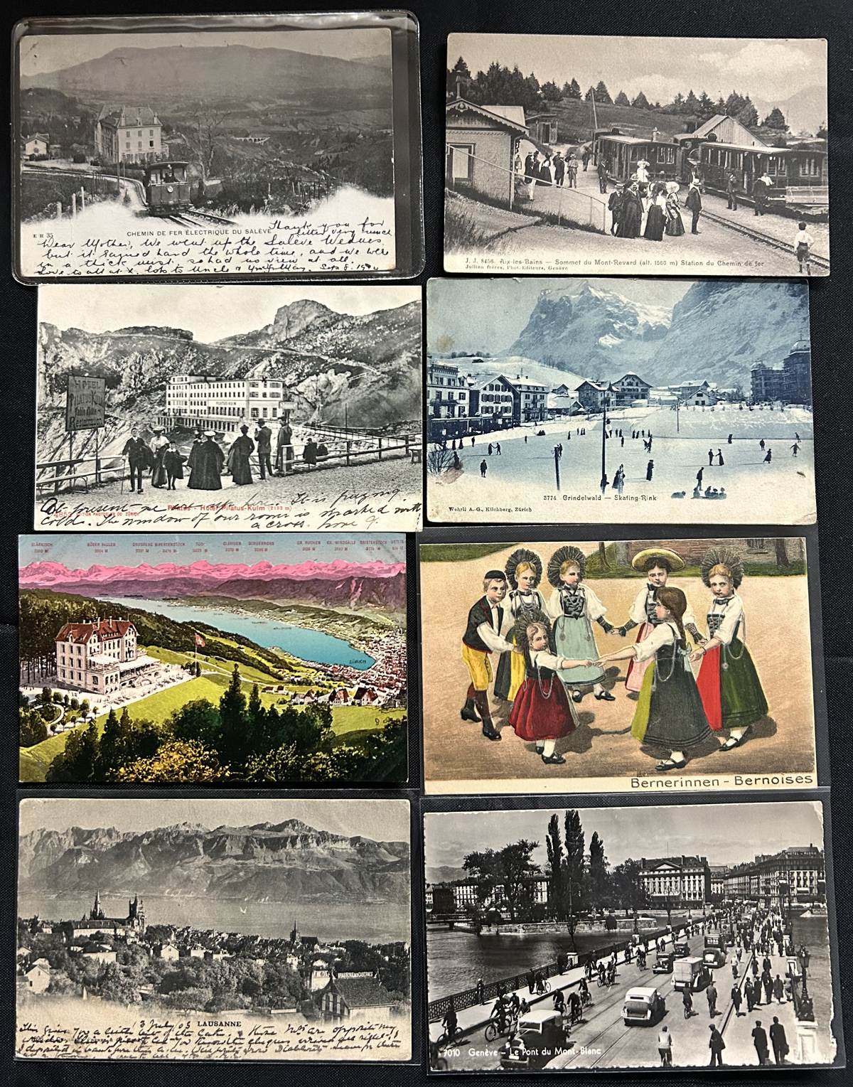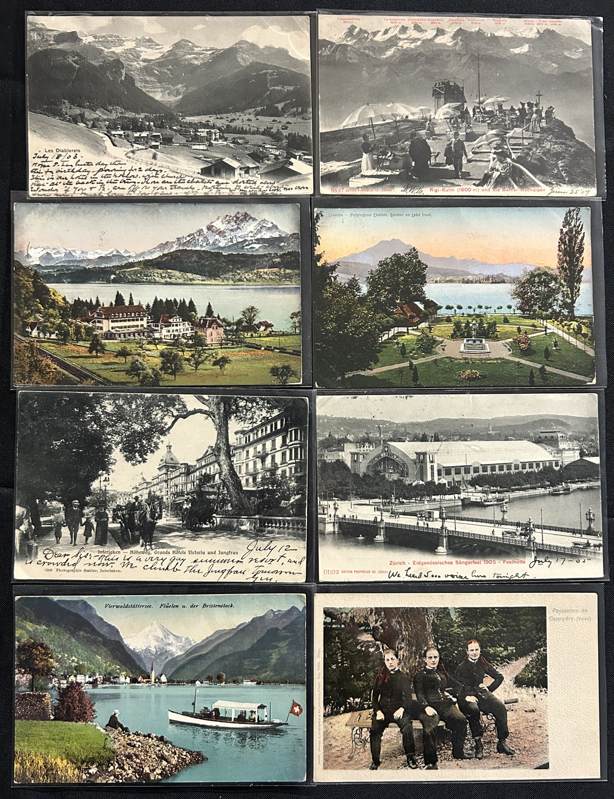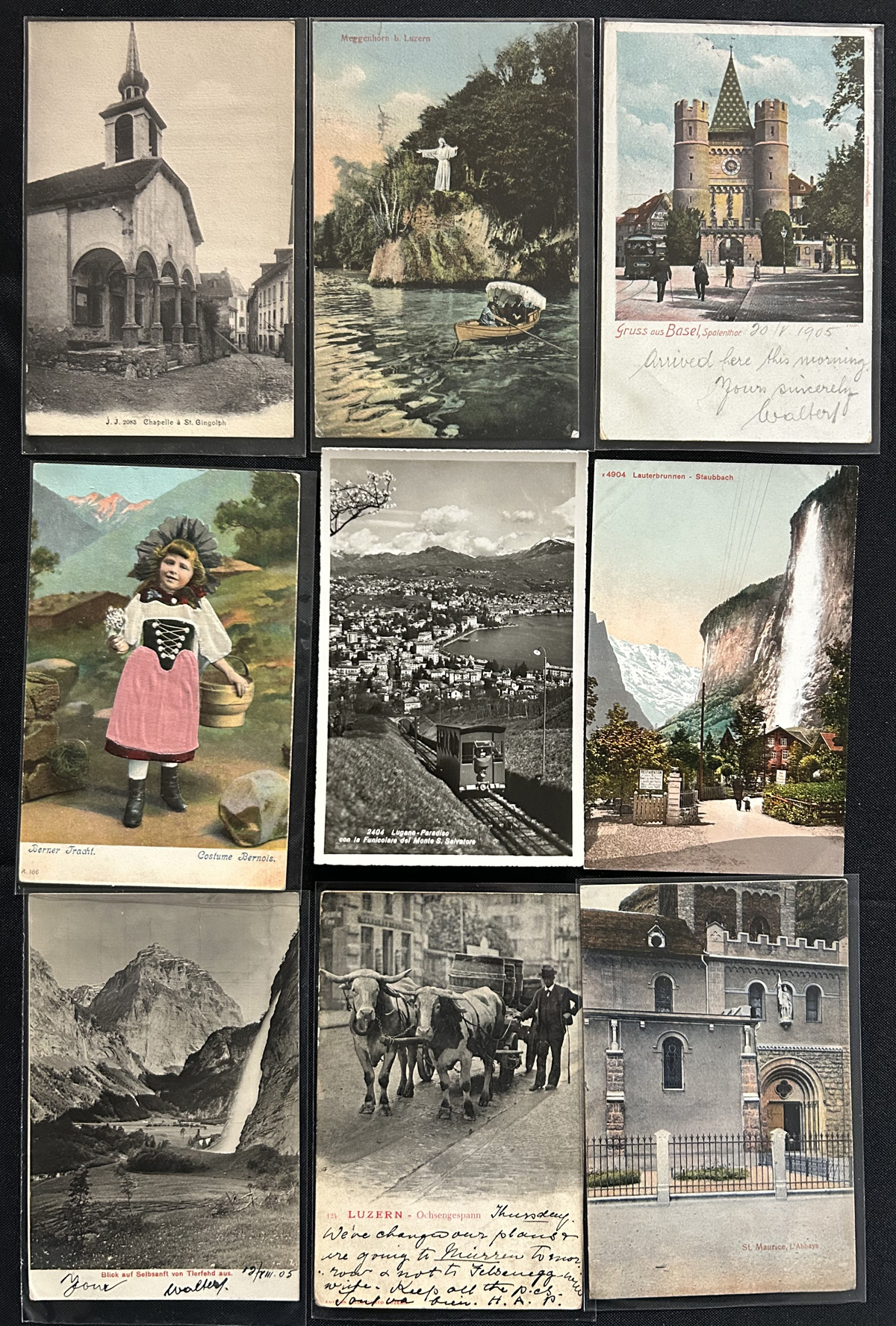 602 PC   imageGroup of Over 650 Early Picture Postcards from Switzerland, with a good variety of town and nature scenes, real photo cards, mountains and much more. We estimate that about half of the cards were mailed, and the cards appear to date from the early 1900s to about the 1960s. Quality is overall very nice (with the odd small fault, here and there) and about one third of the cards are individually sleeved. (Scan 1) (Scan 2) (Scan 3) (Scan 4) (Scan 5) (All Scans) (All Images)