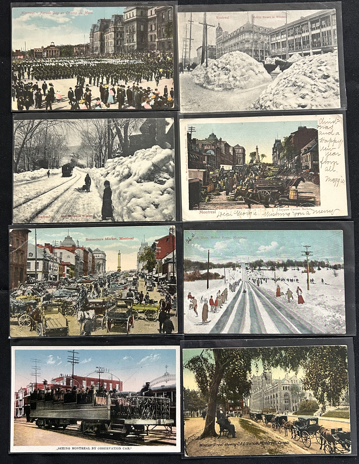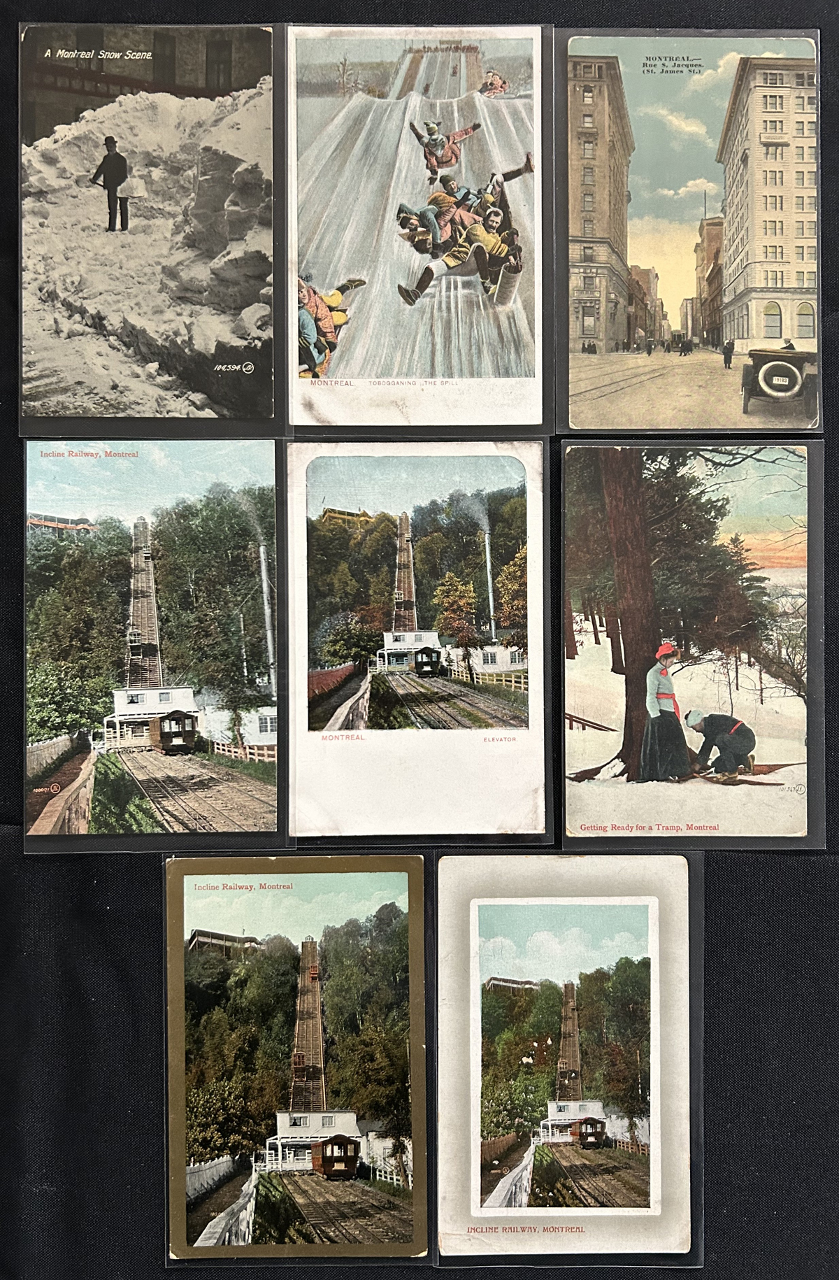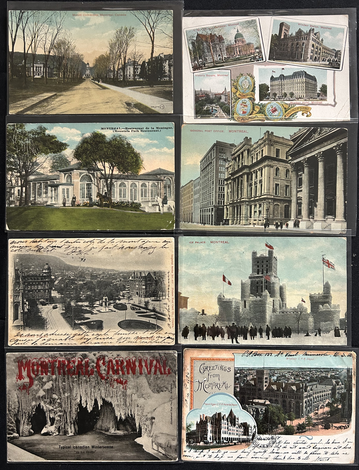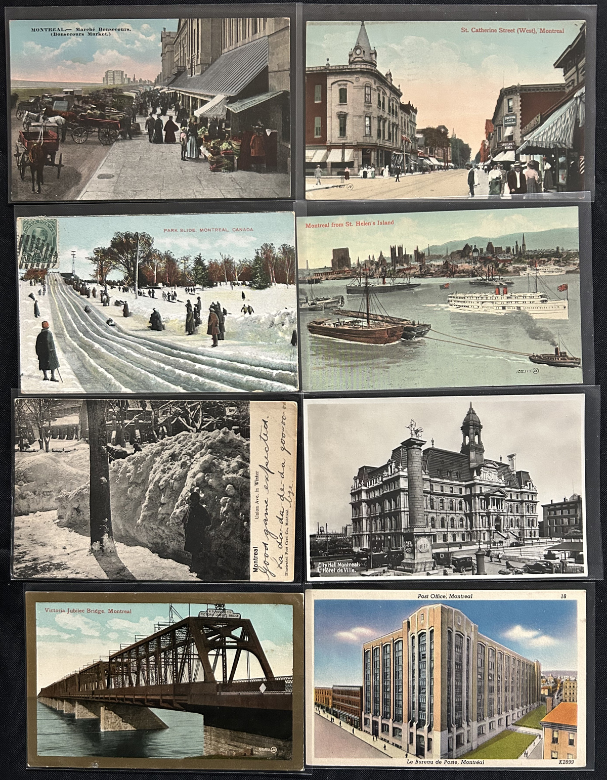 604 PC   imageGroup of About 400 Early Picture Postcards from Montréal, with a good variety of street scenes, architecture, winter scenes, saw a group of Mount Royal elevator scenes, and much more. We estimate that less than a quarter of the cards were mailed, and the cards all appear to date between the early 1900s and the 1950s. Quality is overall nice, with the usual faults here and there. (Scan 1) (Scan 2) (Scan 3) (Scan 4) (All Scans) (All Images)