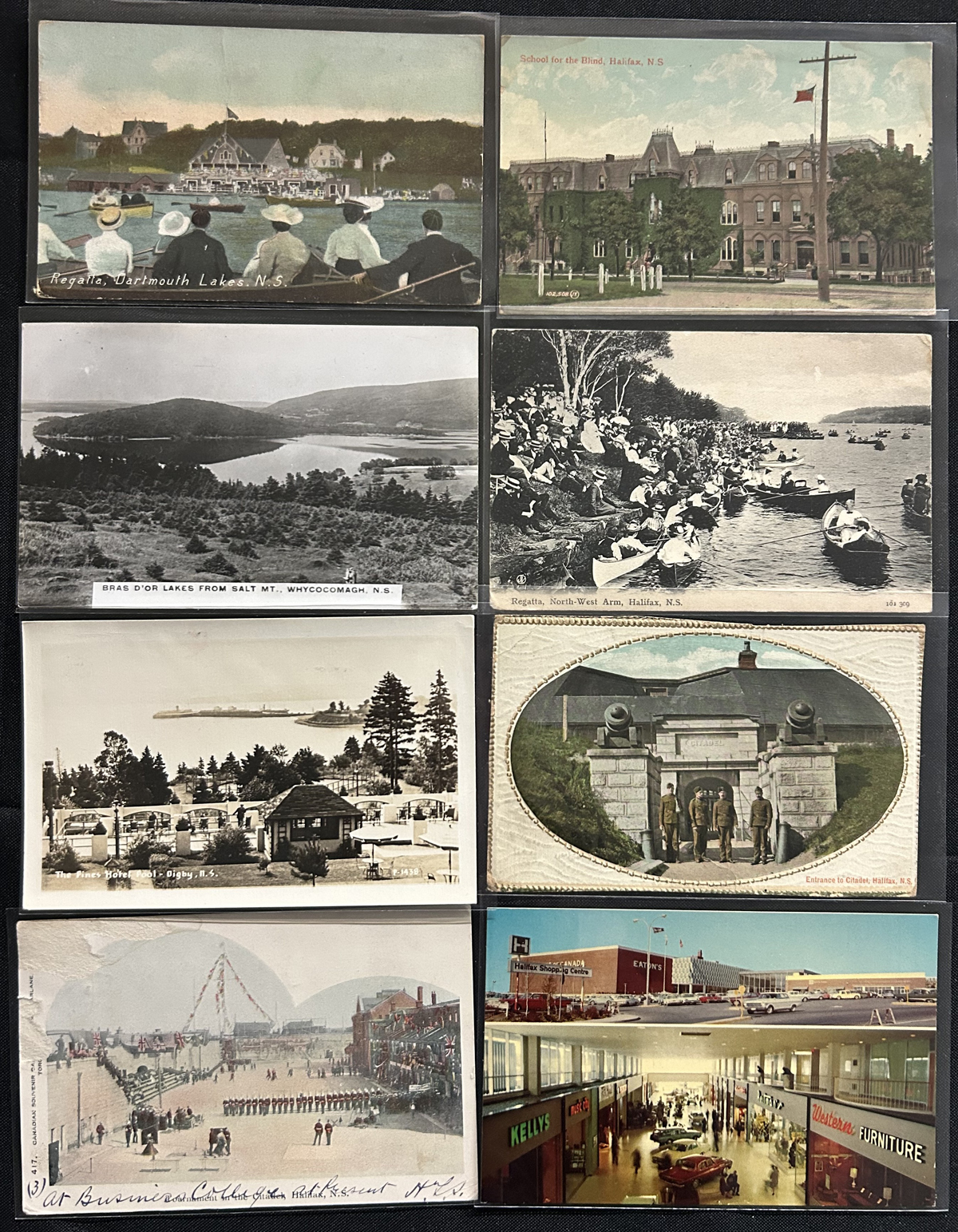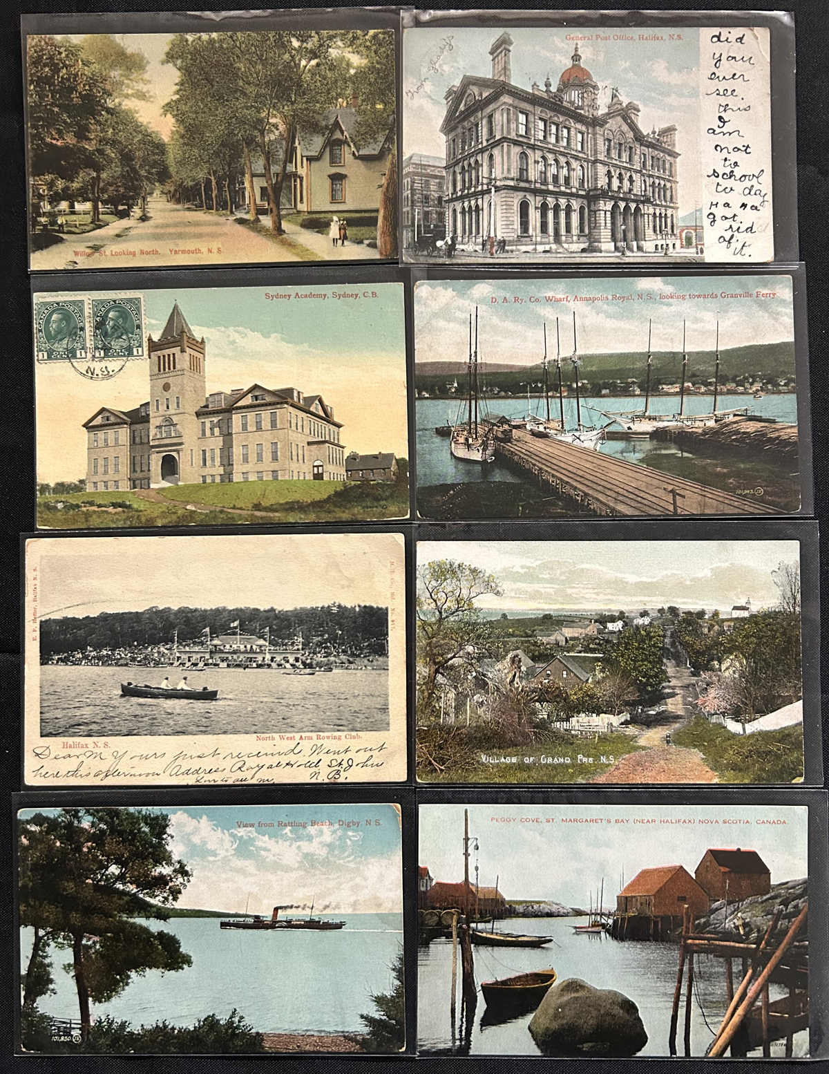 605 PC   imageGroup of About 600 Early Picture Postcards from Nova Scotia, including some from New Brunswick, with a good variety of town and country scenes, architecture, and much more. We estimate that about half of the cards were mailed, and the cards all appear to date between the early 1900s and the 1950s. Includes two unused postcard packs. Quality is overall nice, with the usual faults here and there. (Scan 1) (Scan 2) (Scan 3) (All Scans) (All Images)