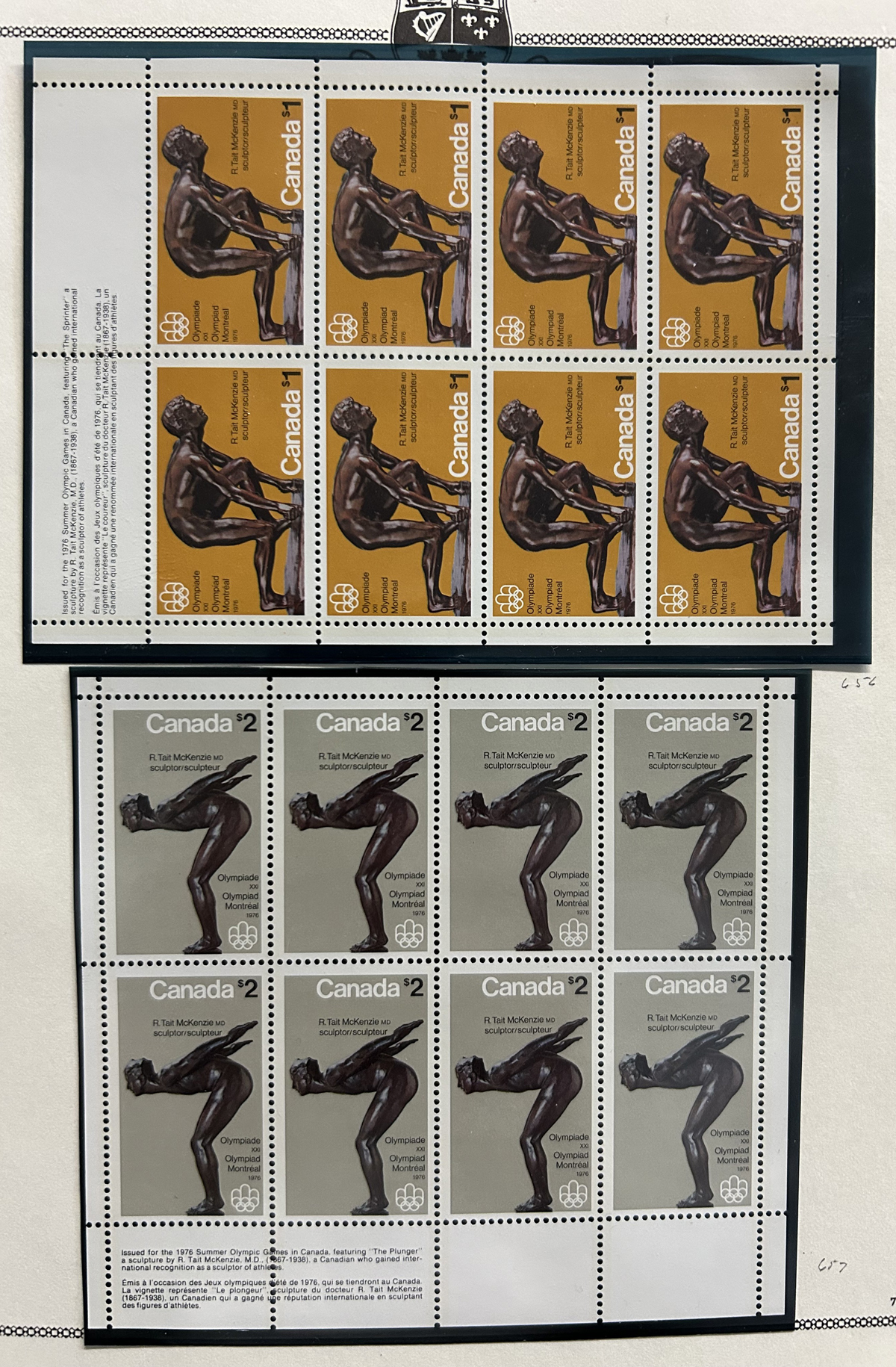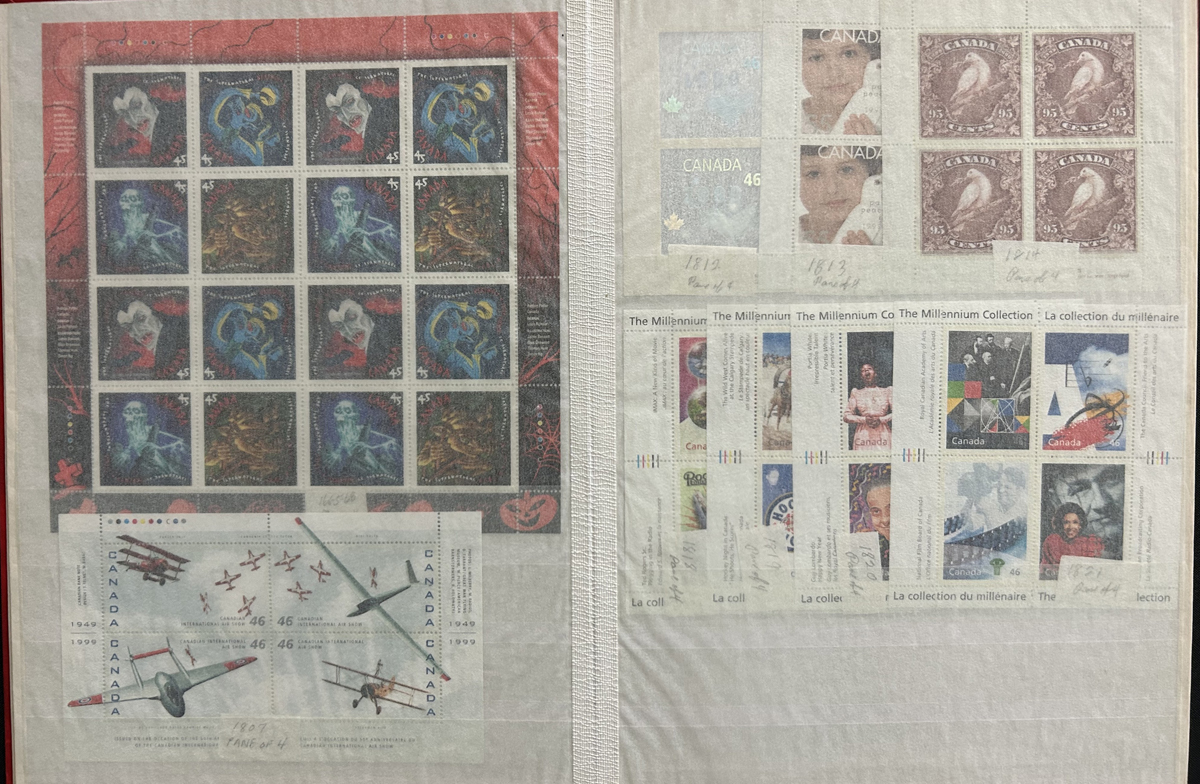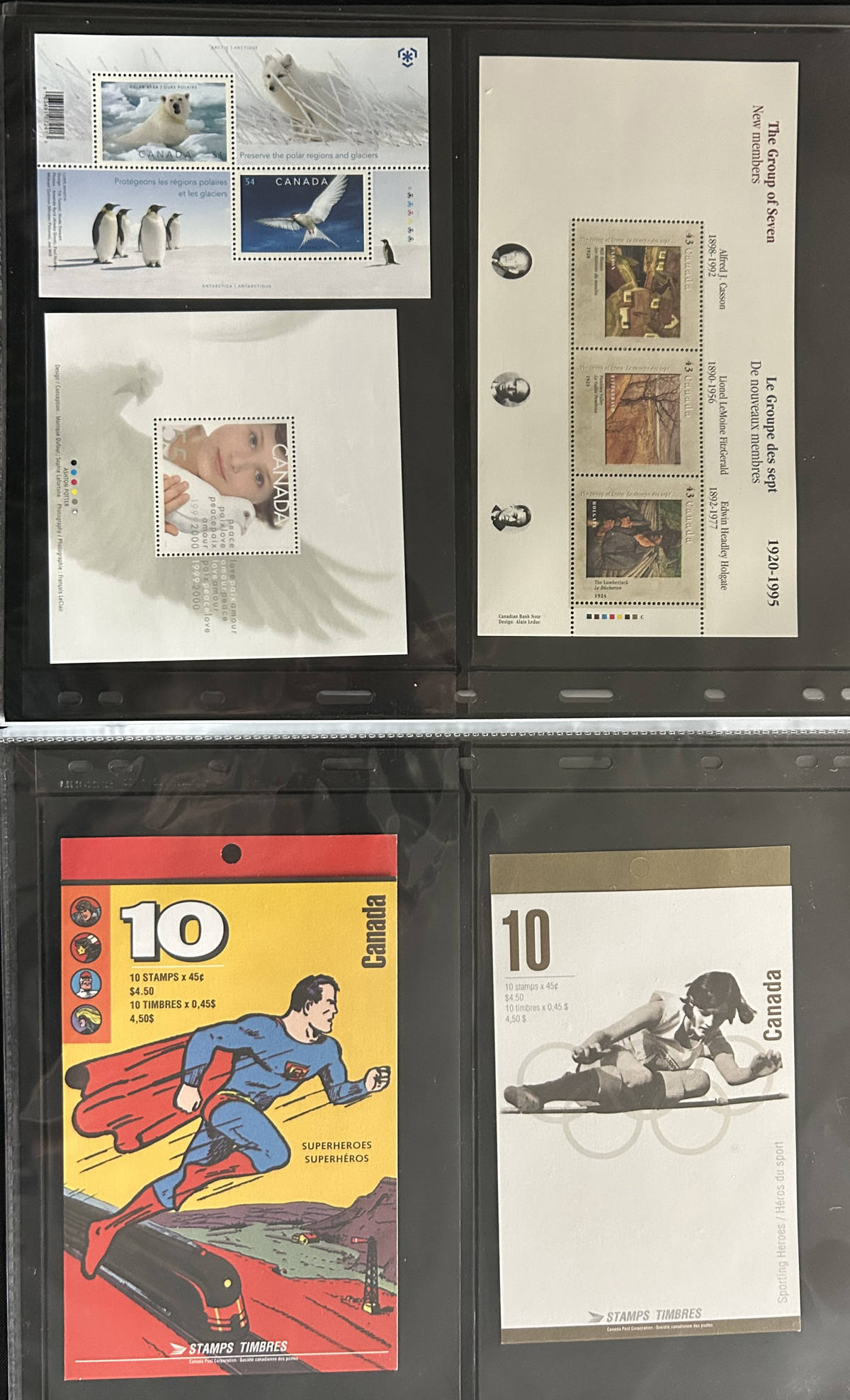 620 nh   imageCollection of Sheets, Mini Sheets and Souvenir Sheets, filling two stockbooks, from roughly the 17c to the 54c era, with good variety and some duplication, for example there are three sheets of 50 of the 38c Royal Regiment issue, etc. All mint never hinged and very fine. (Scan 1) (Scan 2) (Scan 3) (Scan 4) (Scan 5) (All Scans) (All Images)