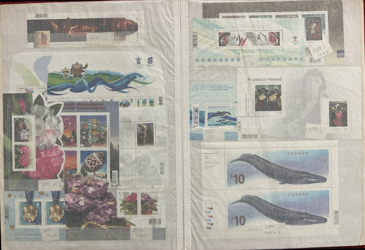 609 nh   imageCollection of Mint Never Hinged in Three Minkus Albums, 1953 to 2017, appears to be close to complete in period (last two years are 50% complete) for singles, sets, se-tenant multiples and booklet panes and includes lots of extras such as 5 cello-packs from the 1950s-60s, phosphor issues, many souvenir sheets, mini panes, modern coil strips, a 2015 Unesco recalled stamp, several listed minor varieties, and more. The face value given is for all stamps after 1988 plus only those 25c and up from 1953 to 1988. A very nice and clean collection, useful to postage users, collectors or dealers alike. (Scan 1) (Scan 2) (Scan 3) (Scan 4) (Scan 5) (Scan 6) (Scan 7) (Scan 8) (All Scans) (All Images)