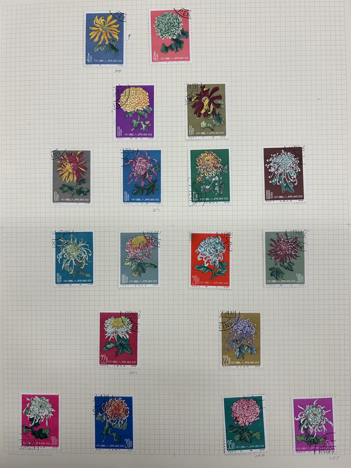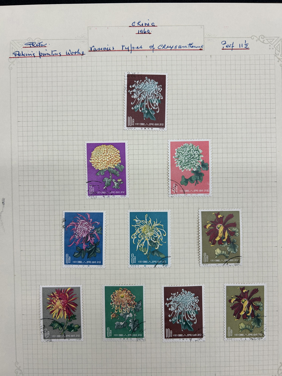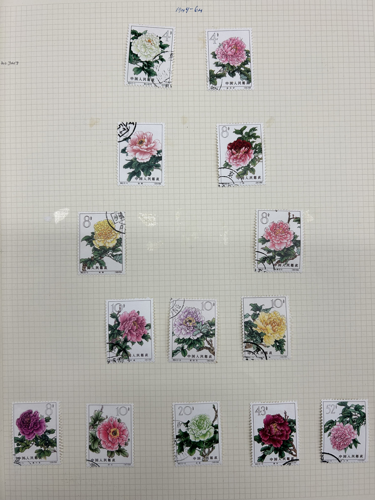 654 O/og   imageCollection of Mostly Used P.R.C., 1950-1964, an old time collection on 30 large quadrille pages, with a nice variety of singles, sets and part sets, along with a little duplication of some issues. We noted several better issues such as the Chrysanthemums, Mountain paintings, Butterflies, Panda Bears, Children's Day, Pigs, and more. We note C.T.O. cancels as well as postally used items, and most of the early issues appear to be reprints. An overall very fine collection, our photos only show a sampling. (Scan 1) (Scan 2) (Scan 3) (Scan 4) (Scan 5) (Scan 6) (Scan 7) (Scan 8) (Scan 9) (Scan 10) (All Scans) (All Images)