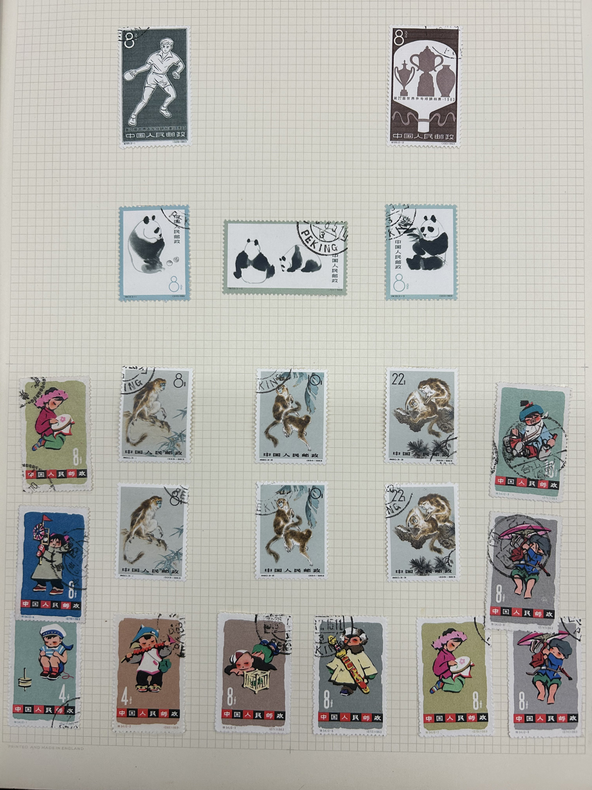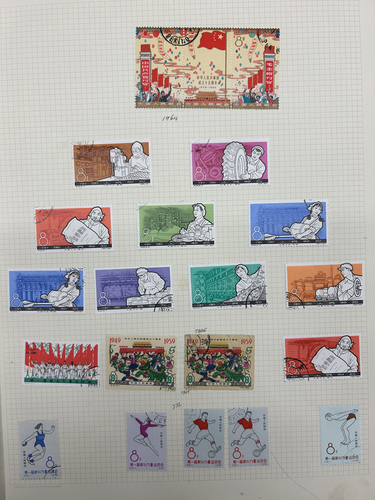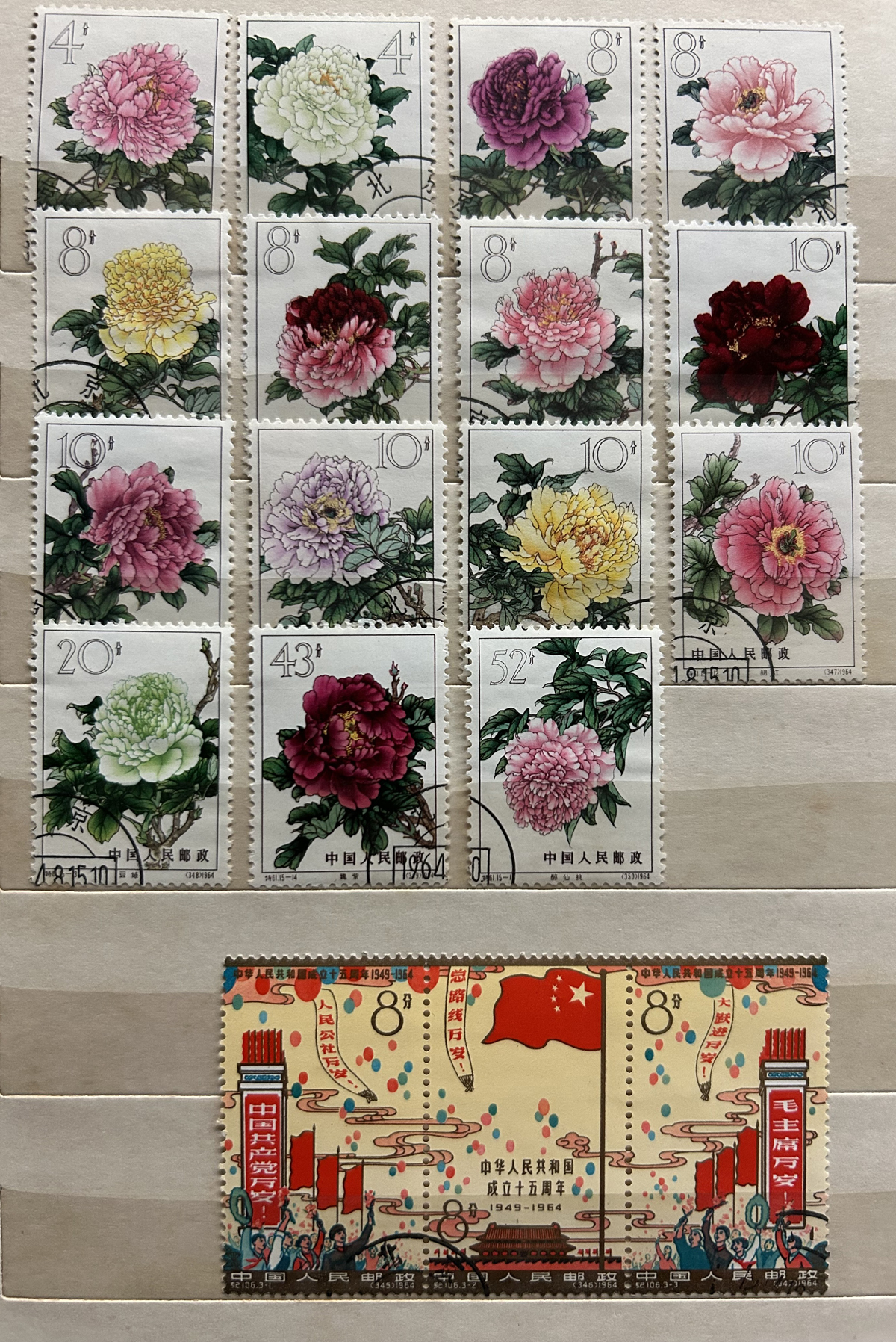 654 O/og   imageCollection of Mostly Used P.R.C., 1950-1964, an old time collection on 30 large quadrille pages, with a nice variety of singles, sets and part sets, along with a little duplication of some issues. We noted several better issues such as the Chrysanthemums, Mountain paintings, Butterflies, Panda Bears, Children's Day, Pigs, and more. We note C.T.O. cancels as well as postally used items, and most of the early issues appear to be reprints. An overall very fine collection, our photos only show a sampling. (Scan 1) (Scan 2) (Scan 3) (Scan 4) (Scan 5) (Scan 6) (Scan 7) (Scan 8) (Scan 9) (Scan 10) (All Scans) (All Images)