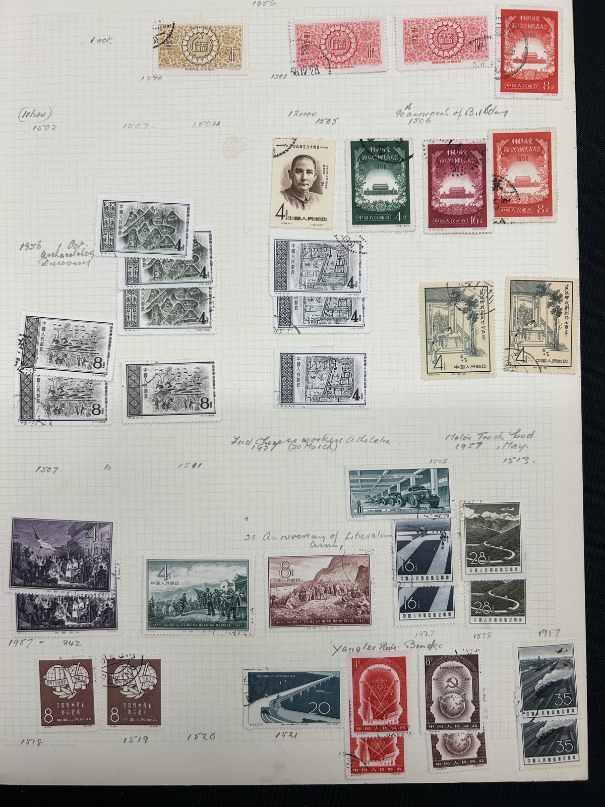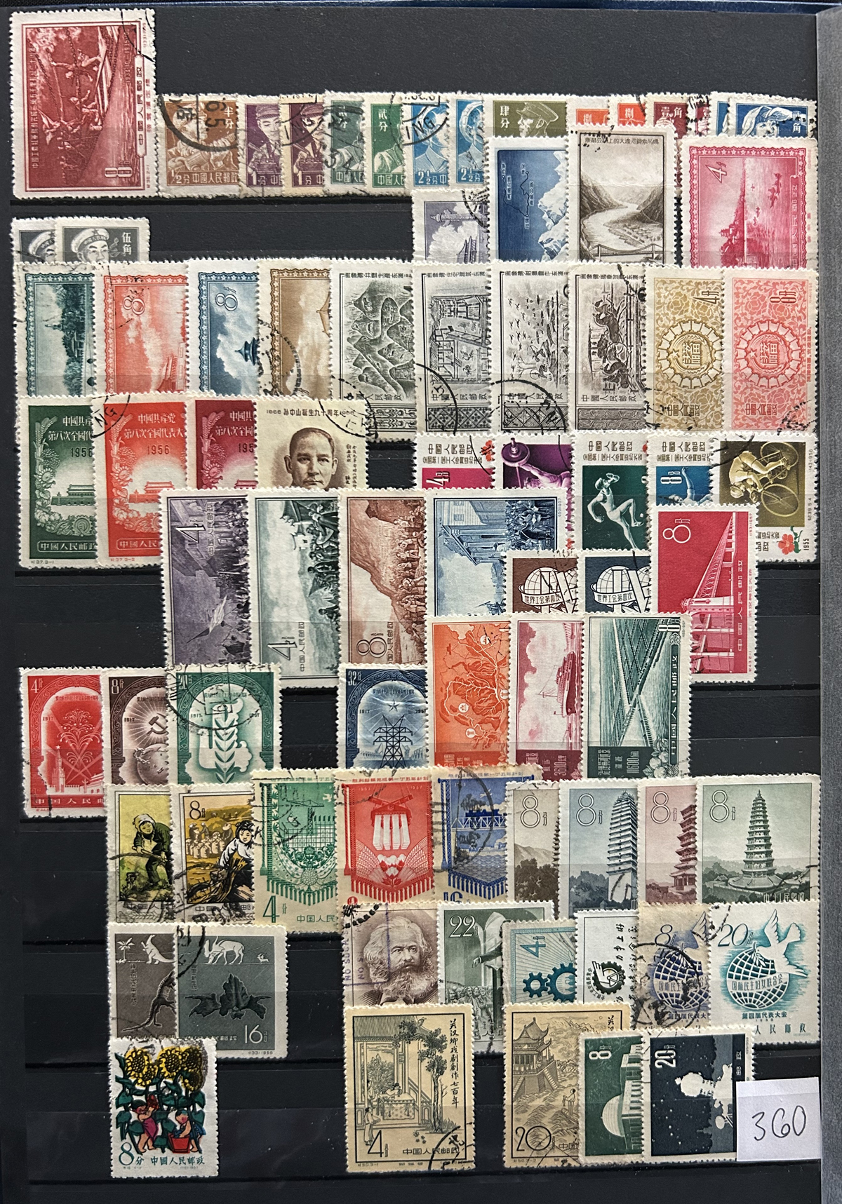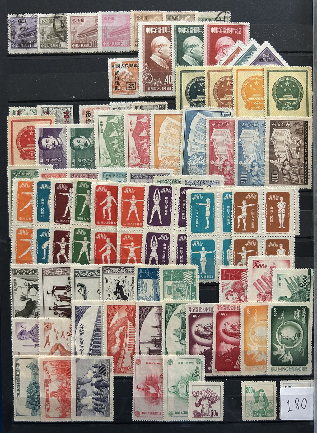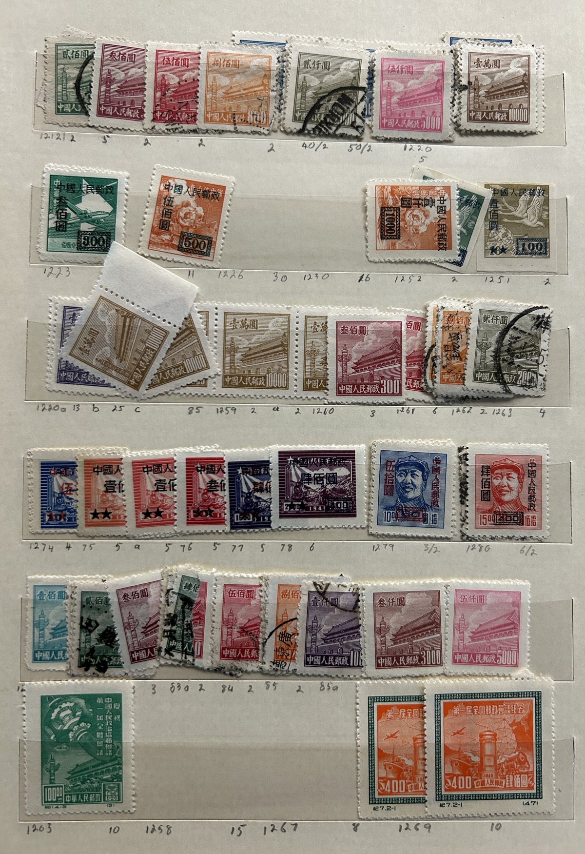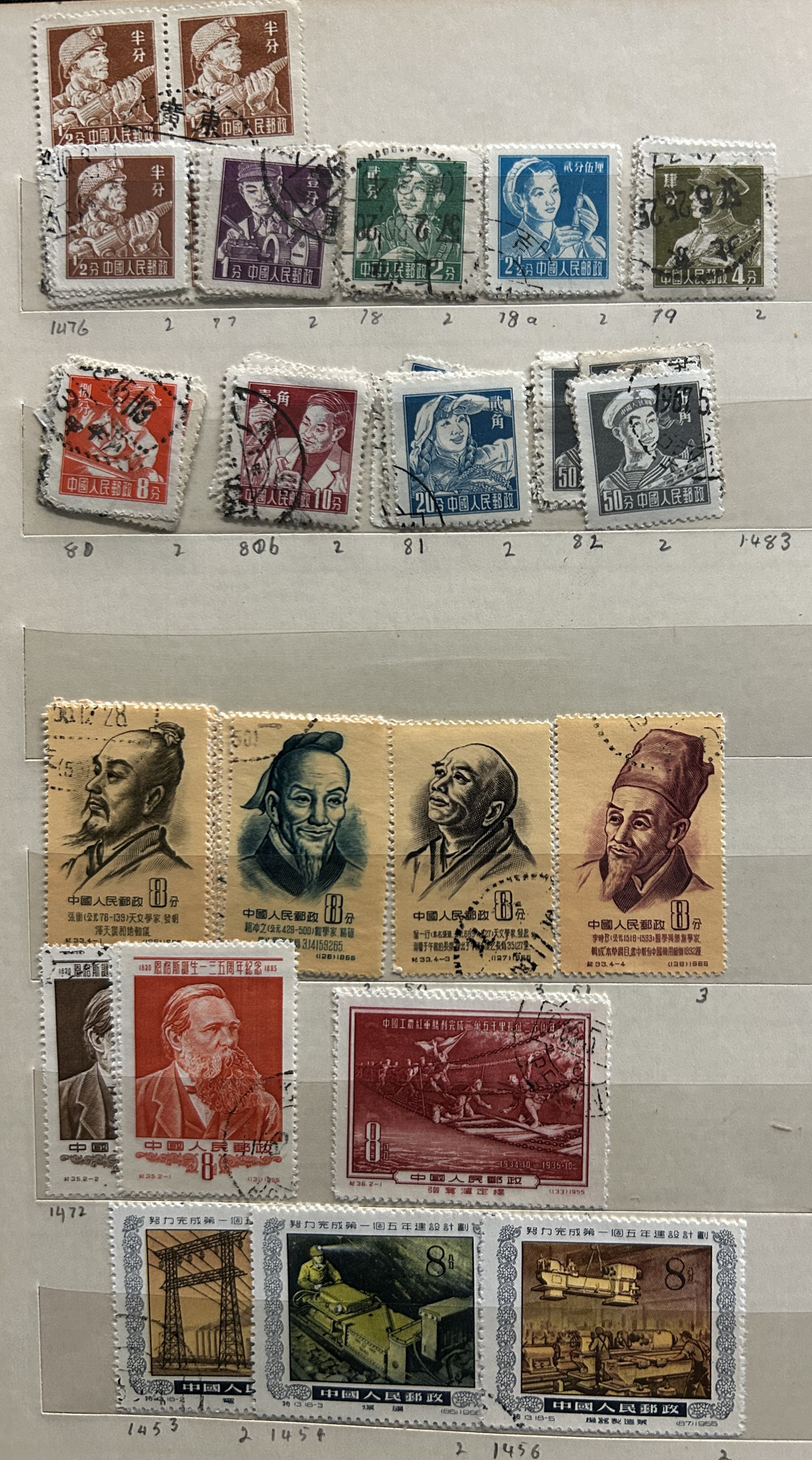 657 O/ng   imageCollection of Early P. R. China Issues in a Stockbook, 1950 to 1966, with over 280 different stamps (plus a little duplication), noting singles, complete and partial sets, with a mix of either used (postally used and C.T.O.), or mint (no gum, as issued). We also noted a mint never hinged set of Scott 1090-94 (U$141), etc. Overall fine or better, al pages are photographed online. (Scan 1) (Scan 2) (Scan 3) (Scan 4) (Scan 5) (Scan 6) (Scan 7) (Scan 8) (Scan 9) (Scan 10) (Scan 11) (All Scans) (All Images)