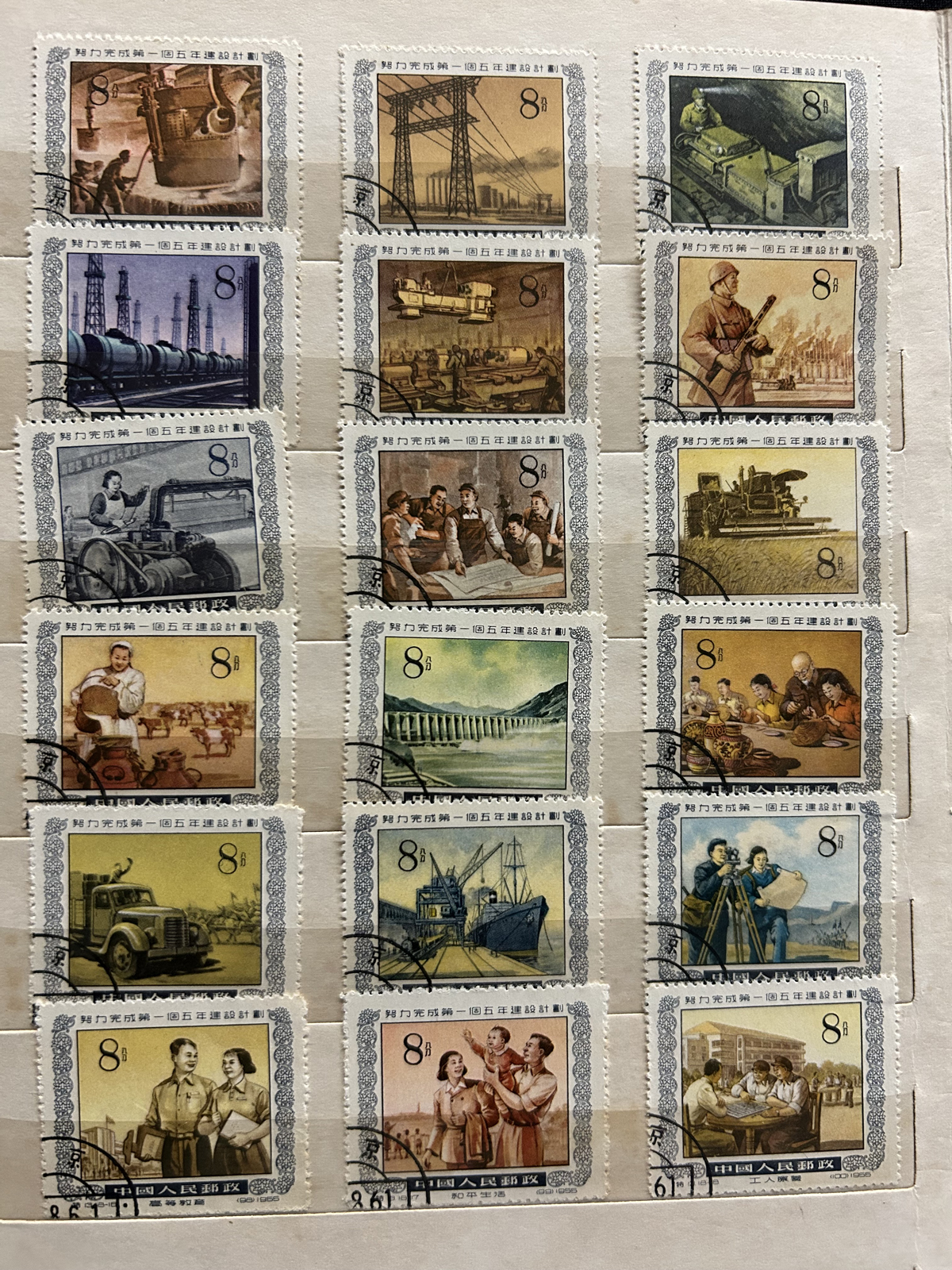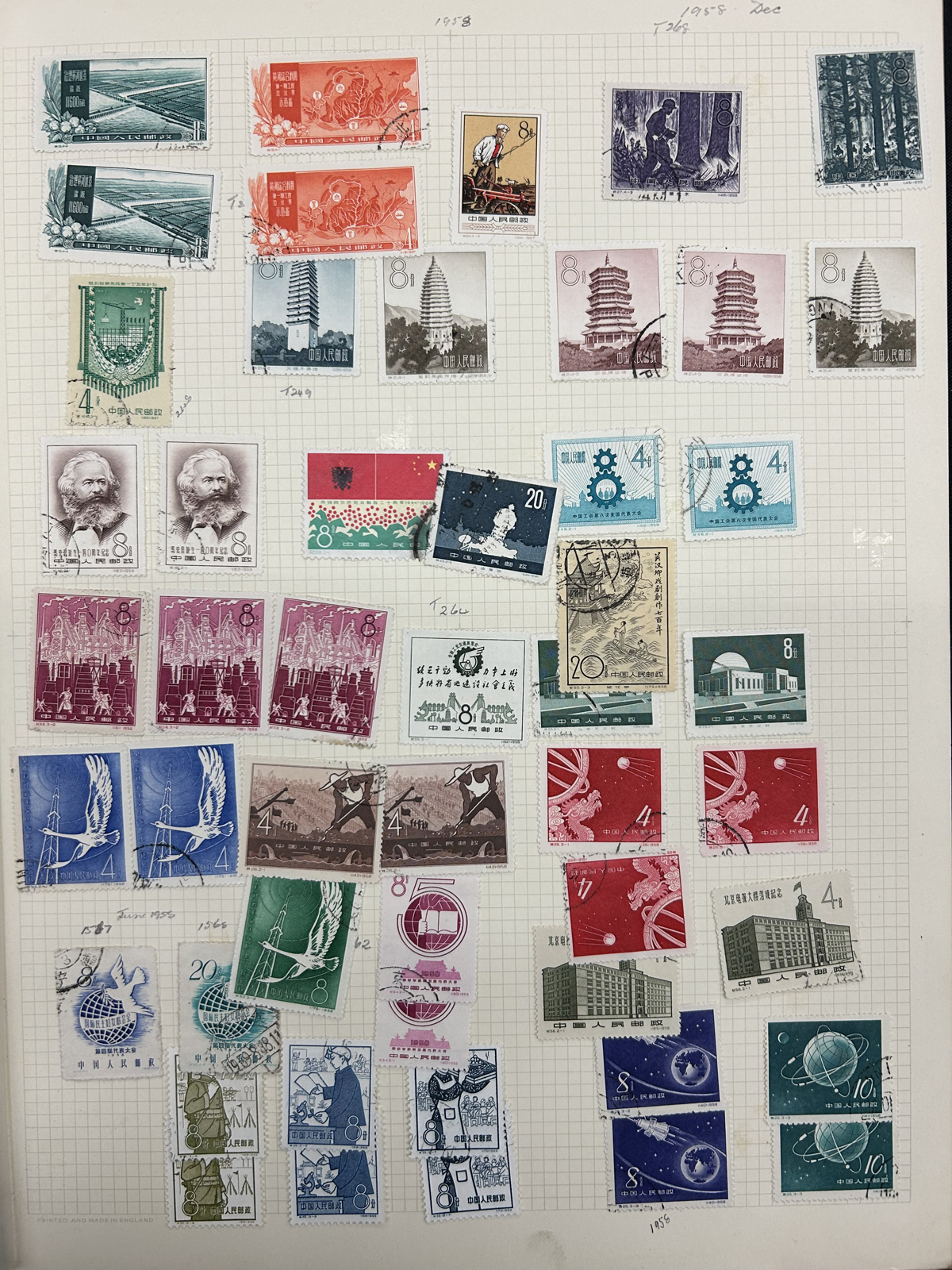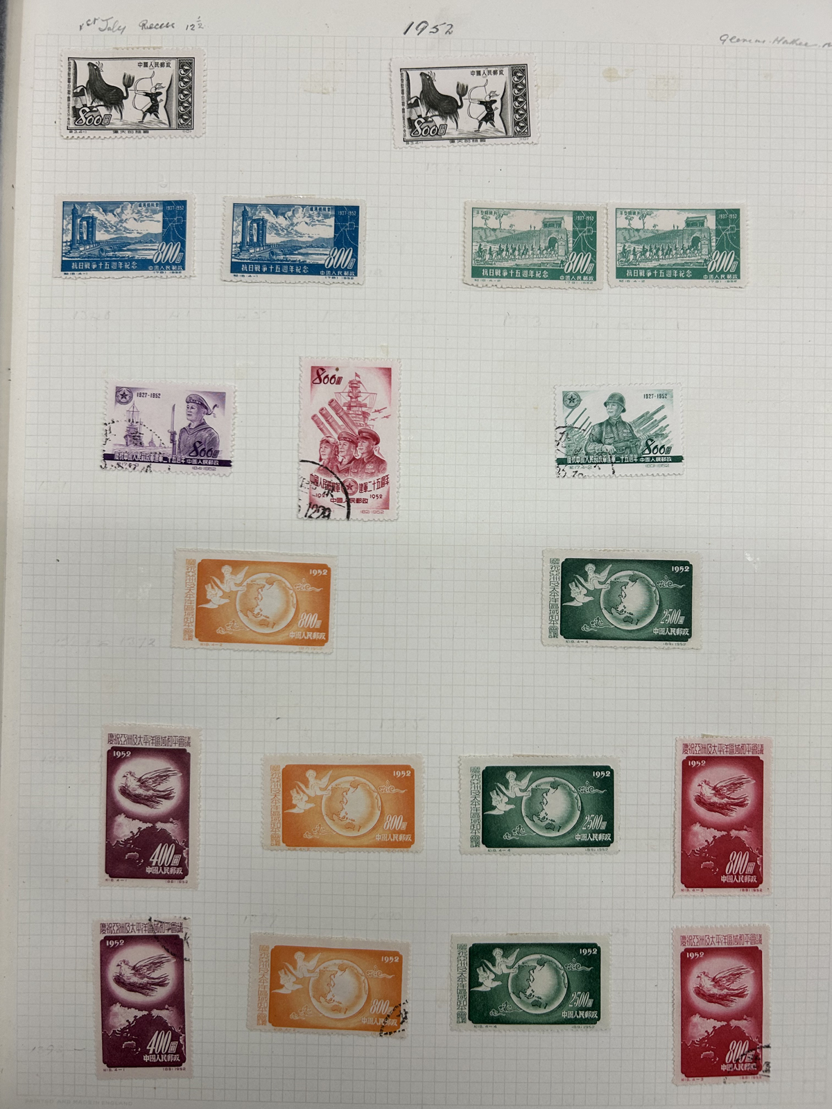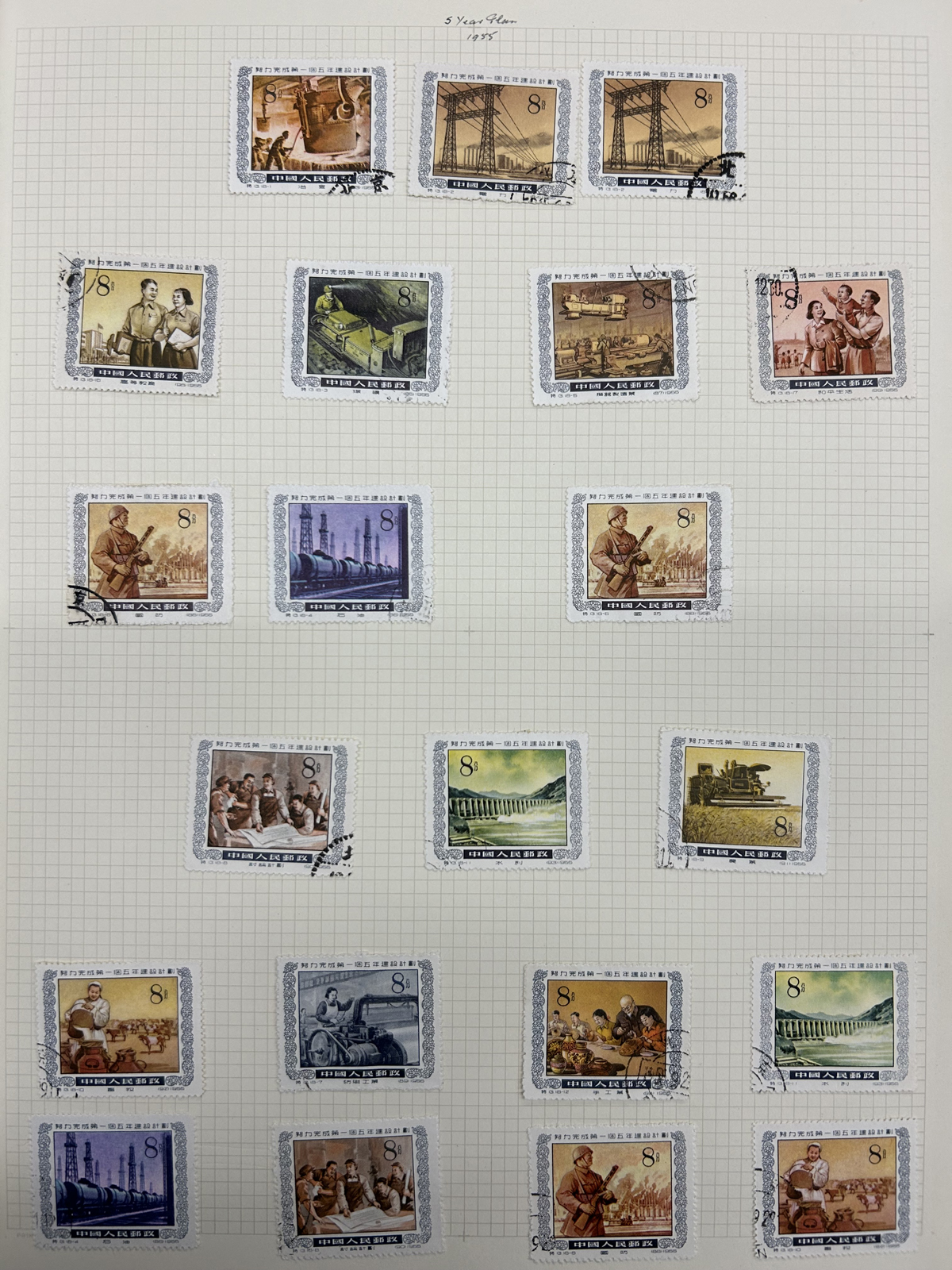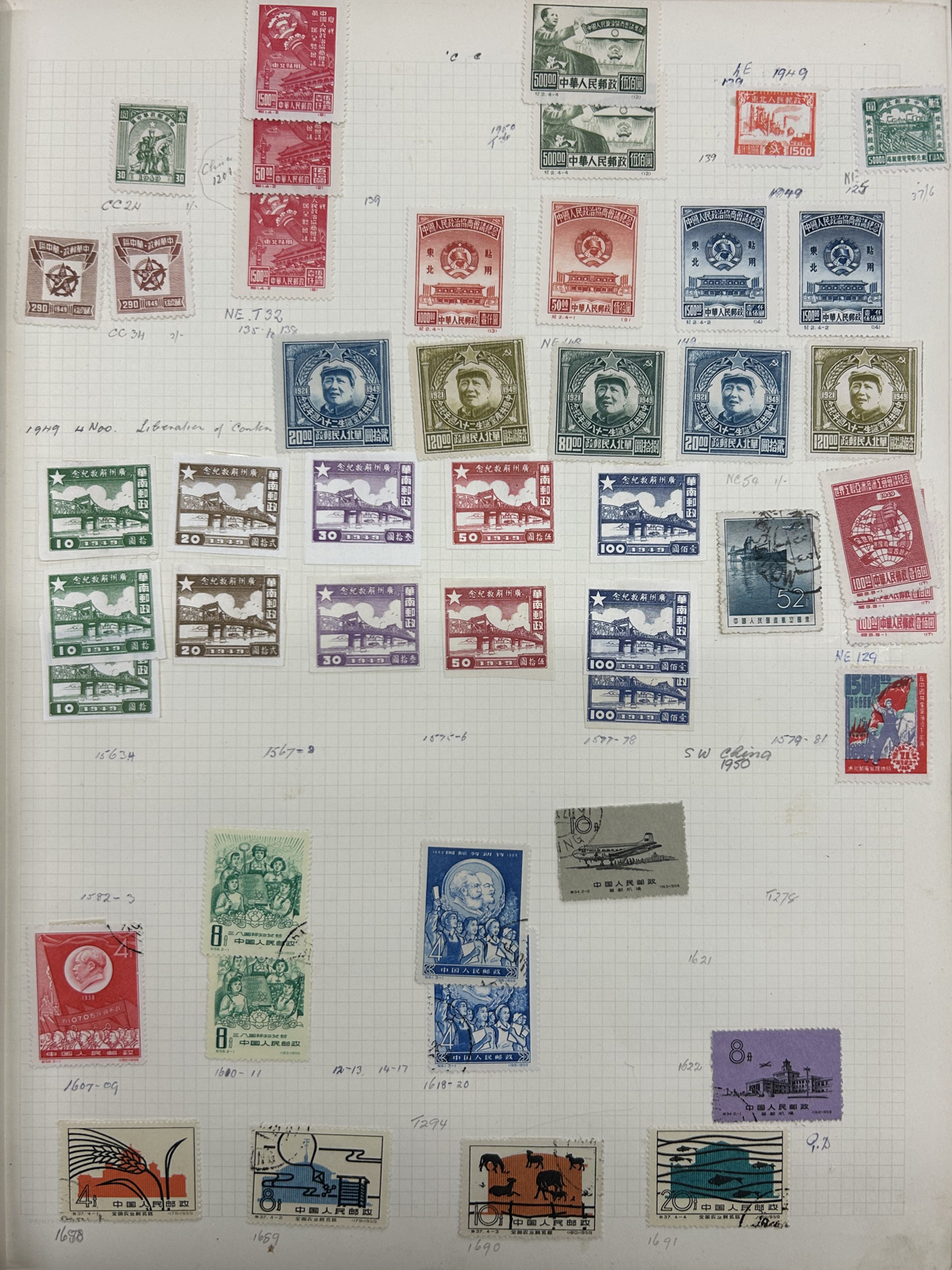 657 O/ng   imageCollection of Early P. R. China Issues in a Stockbook, 1950 to 1966, with over 280 different stamps (plus a little duplication), noting singles, complete and partial sets, with a mix of either used (postally used and C.T.O.), or mint (no gum, as issued). We also noted a mint never hinged set of Scott 1090-94 (U$141), etc. Overall fine or better, al pages are photographed online. (Scan 1) (Scan 2) (Scan 3) (Scan 4) (Scan 5) (Scan 6) (Scan 7) (Scan 8) (Scan 9) (Scan 10) (Scan 11) (All Scans) (All Images)