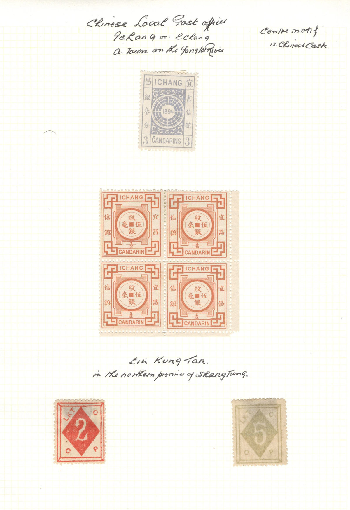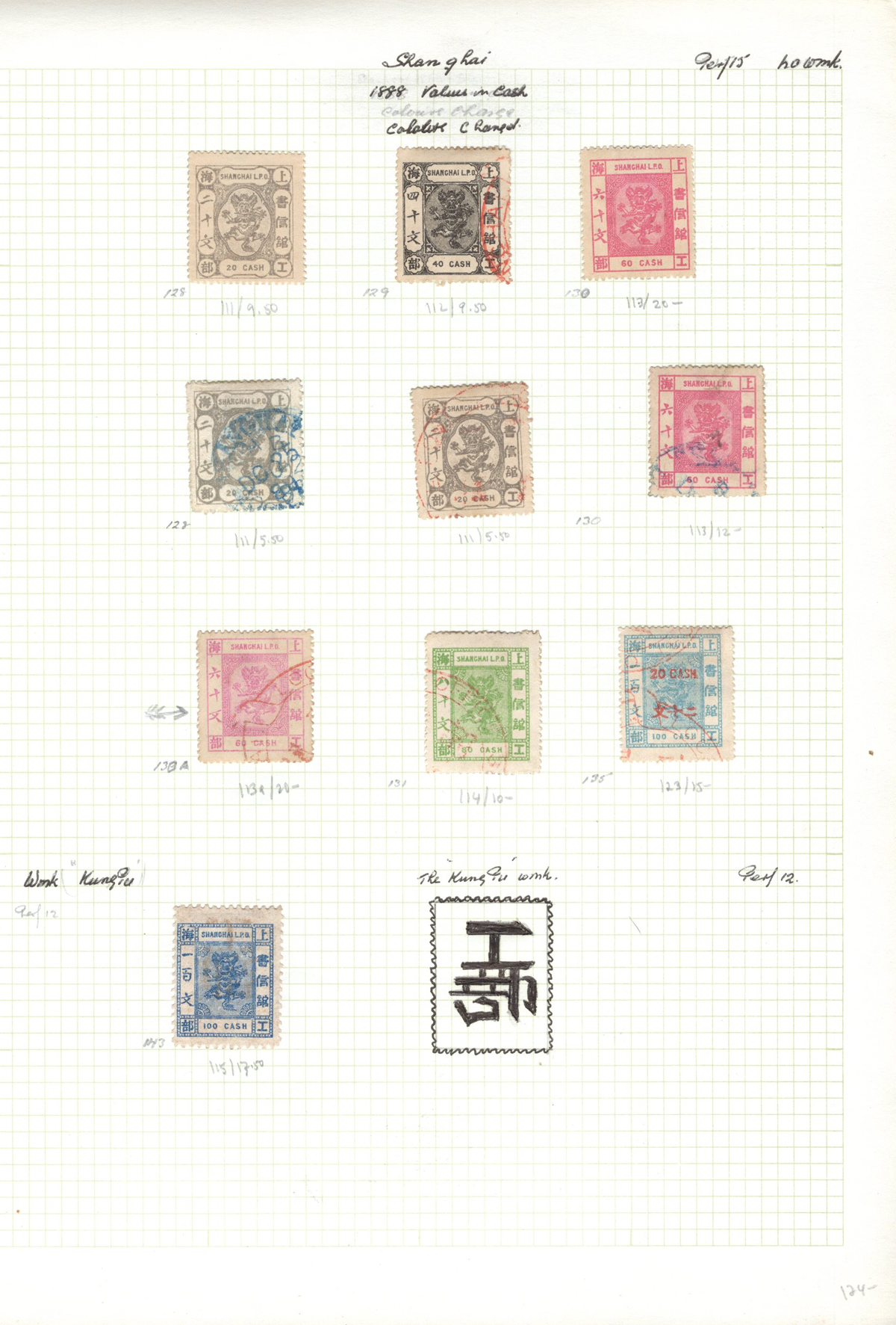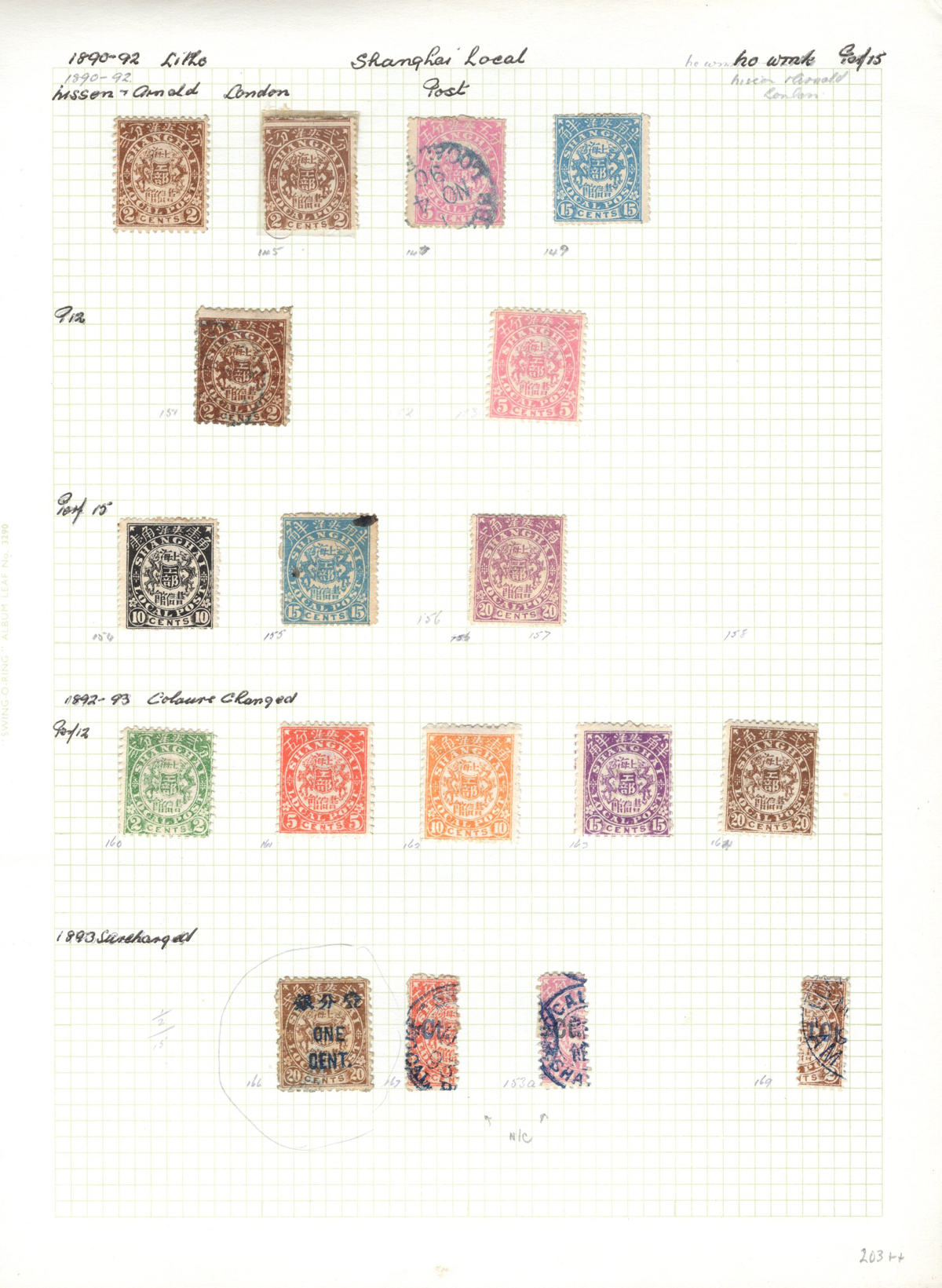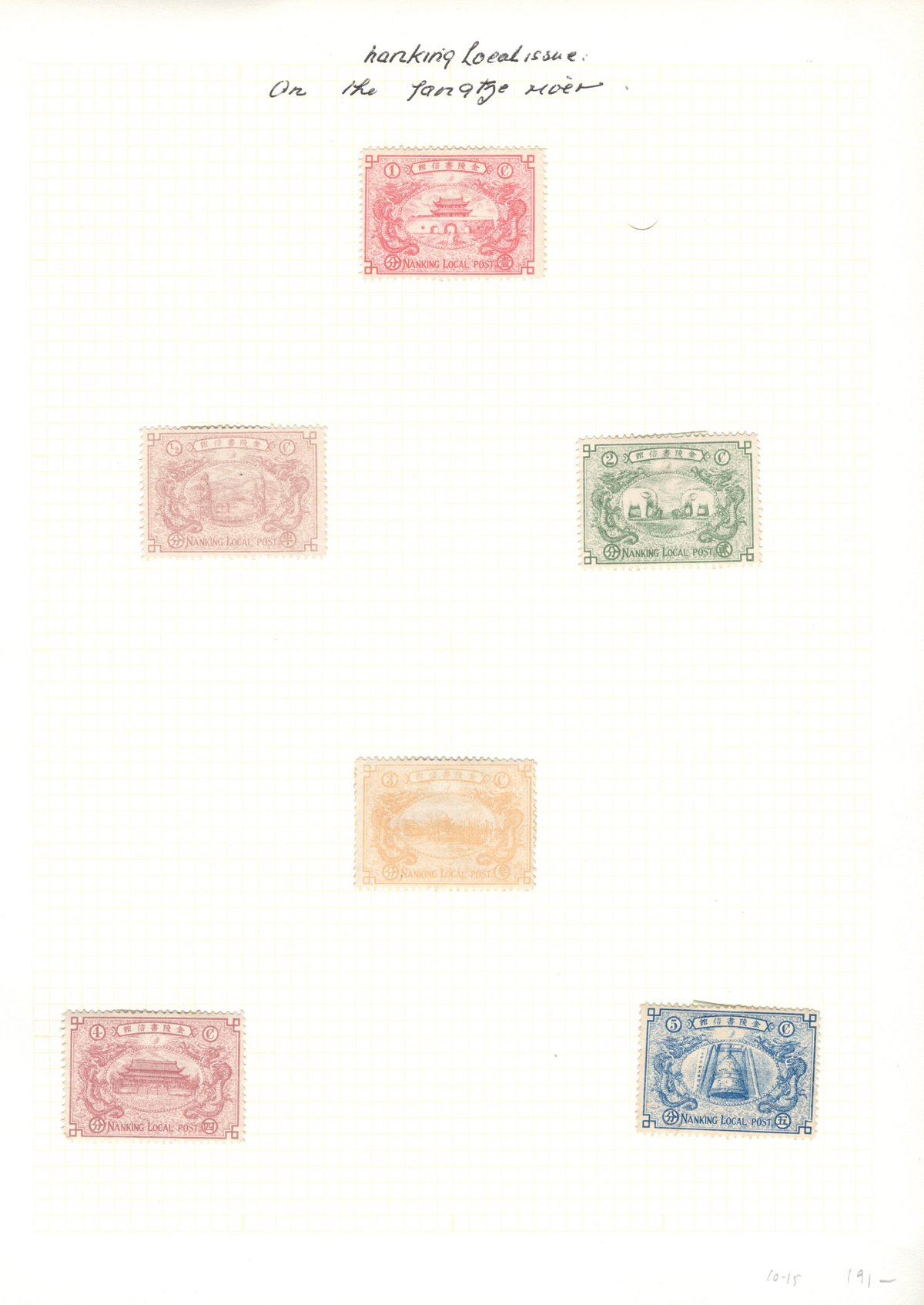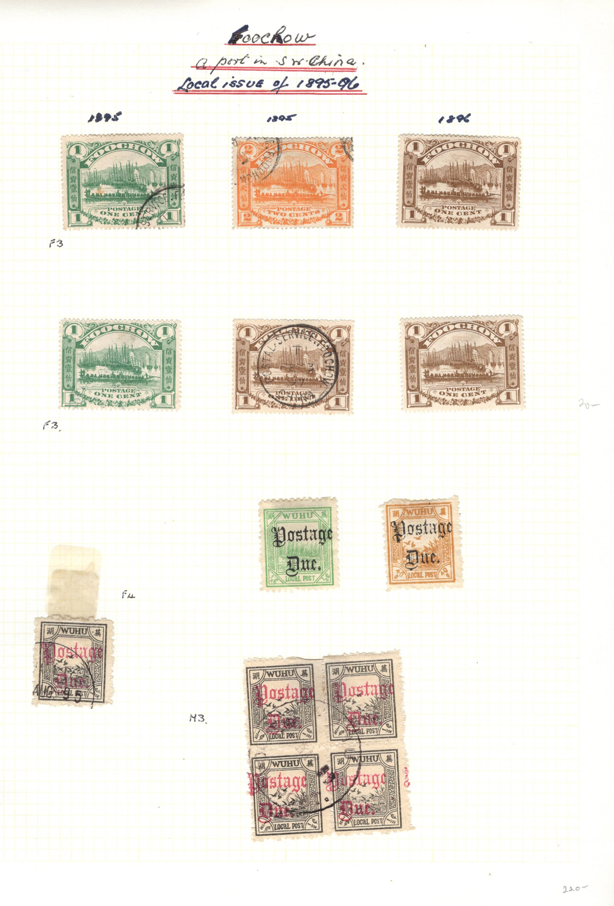 652 O/og/nh   imageValuable Old Time Extensive Collection of Offices in China, Shanghai and Chinese Local Post Office Issues, etc., carefully assembled and displayed on 55 quadrille pages, by a collector who lived in Hong Kong from the 1930s to the 1950s. A tremendously interesting collection, loaded with material not often seen. We noted a page of Italian Offices ($365), page of British Offices ($789), 11 pages of Shanghai Locals ($2,629), page of Yunnan-Fou overprints ($913), many pages of overprinted Indo-China issues including from Mongtseu ($346), Mong-Tseu ($606), a page of Mongtze overprint errors (€1,328 in Yvert Colonies catalogue), Mongtze #13 strip of 5 ($650), another page of Mongtze overprints ($1,559), 2 pages of French Colonies issues for China ($391), page of Hankow Local issues ($652), Nanking Local Post #1-15 ($381), also stamps from Foochow, Chungking, Chefoo ($357), Chinkiang, 2 pages of Amoy issues ($533), 2 pages of German Offices ($485), and more, including a few stationery cards (with staple holes). Very nice quality throughout, with many postmarks which should be of interest. The Scott catalogue value given assumes that all items are genuine, and does not include the pages either not counted, or counted in Euros using the Yvert Colonies catalogue. All pages have been scanned online. A great opportunity to acquire such an interesting and intact collection. (Scan 1) (Scan 2) (Scan 3) (Scan 4) (Scan 5) (Scan 6) (Scan 7) (Scan 8) (Scan 9) (Scan 10) (Scan 11) (Scan 12) (Scan 13) (Scan 14) (Scan 15) (Scan 16) (Scan 17) (Scan 18) (Scan 19) (Scan 20) (Scan 21) (Scan 22) (Scan 23) (Scan 24) (Scan 25) (Scan 26) (Scan 27) (Scan 28) (Scan 29) (Scan 30) (Scan 31) (Scan 32) (Scan 33) (Scan 34) (Scan 35) (Scan 36) (Scan 37) (Scan 38) (Scan 39) (Scan 40) (Scan 41) (Scan 42) (Scan 43) (Scan 44) (Scan 45) (Scan 46) (Scan 47) (Scan 48) (Scan 49) (Scan 50) (Scan 51) (Scan 52) (Scan 53) (Scan 54) (Scan 55) (All Scans) (All Images)