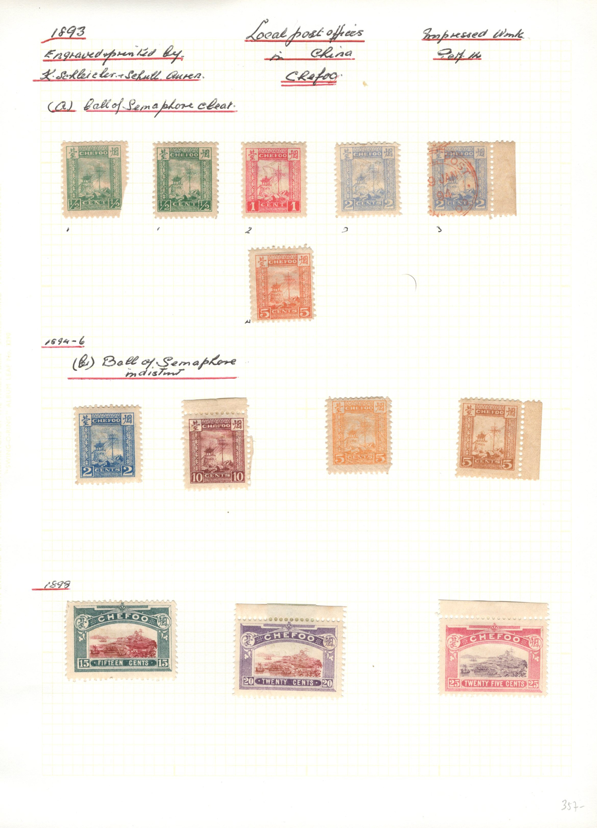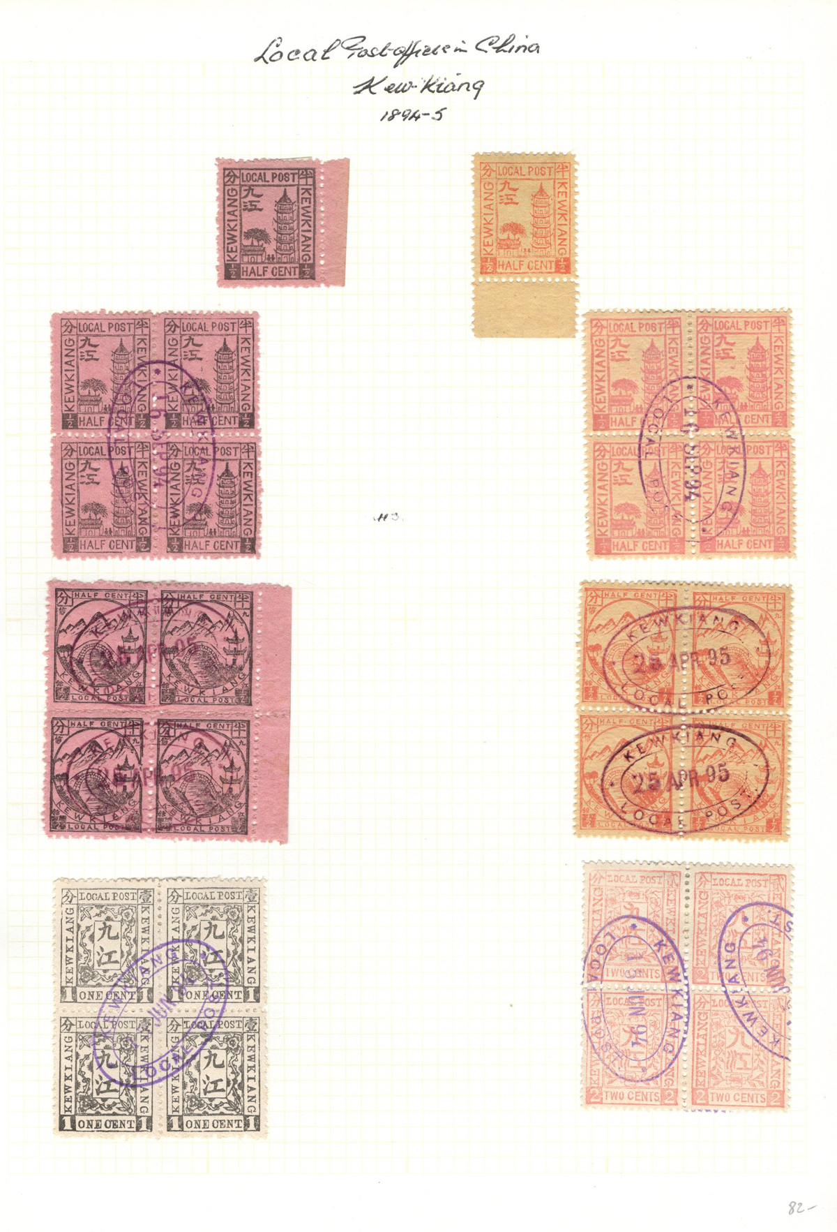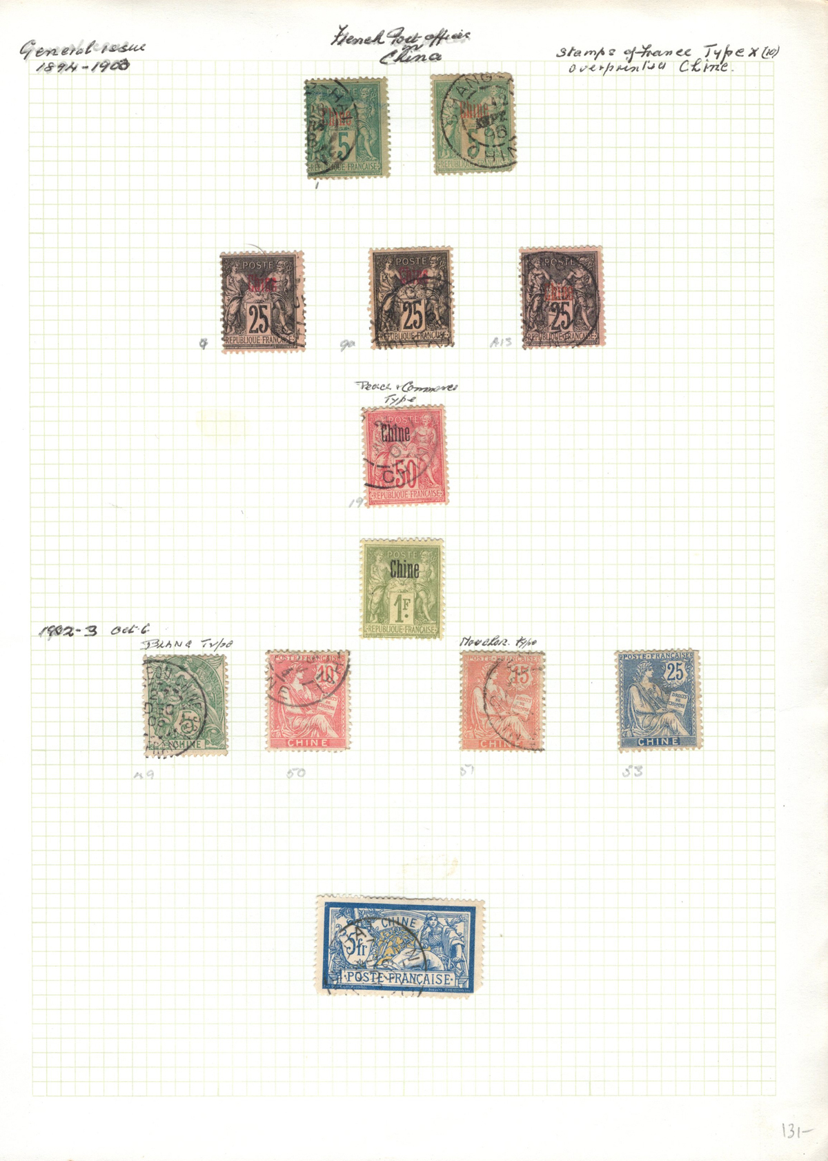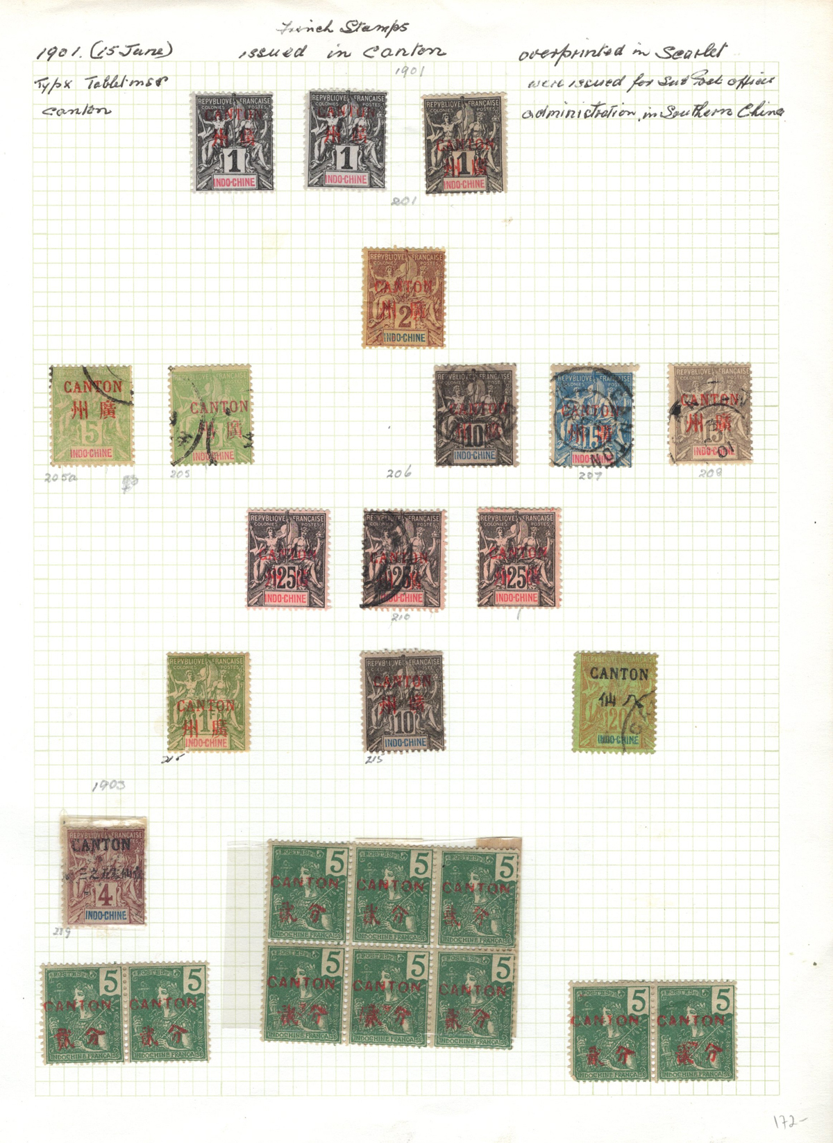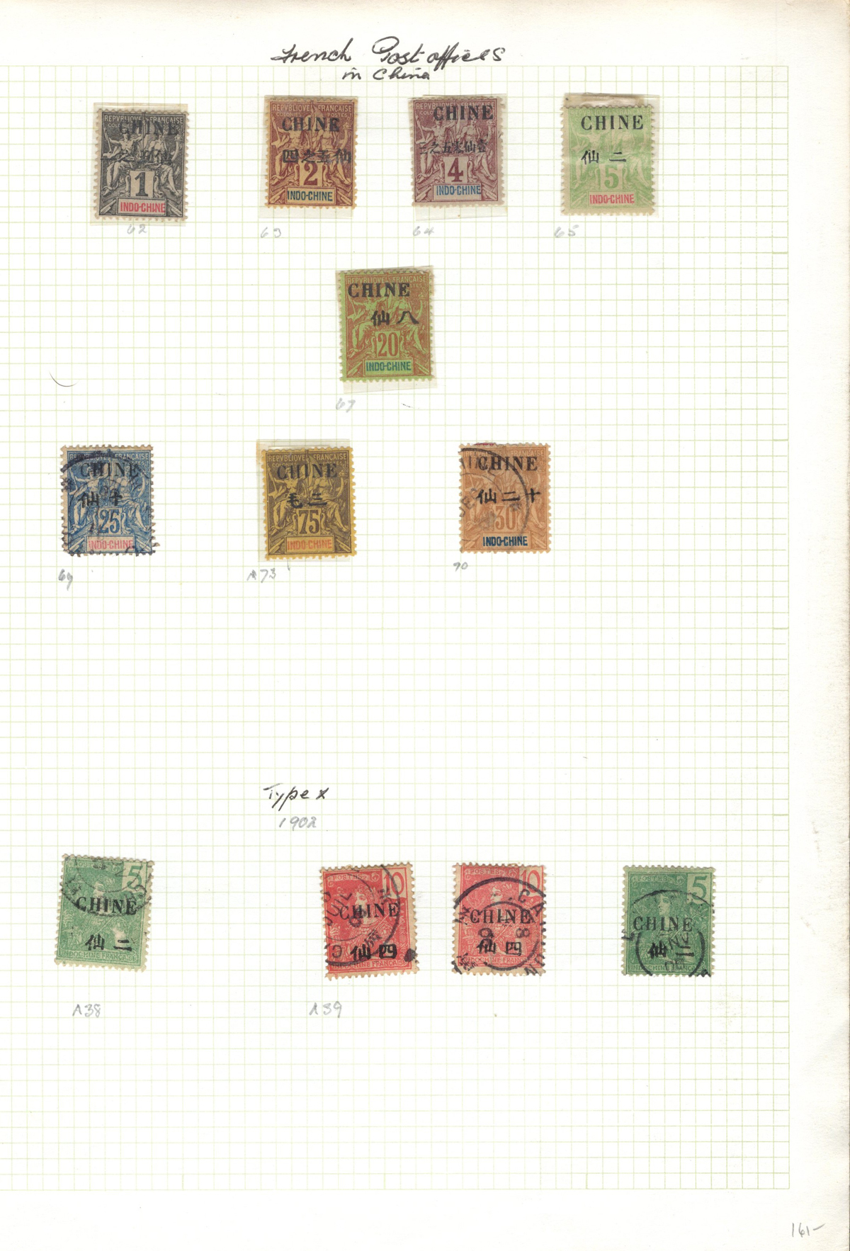 652 O/og/nh   imageValuable Old Time Extensive Collection of Offices in China, Shanghai and Chinese Local Post Office Issues, etc., carefully assembled and displayed on 55 quadrille pages, by a collector who lived in Hong Kong from the 1930s to the 1950s. A tremendously interesting collection, loaded with material not often seen. We noted a page of Italian Offices ($365), page of British Offices ($789), 11 pages of Shanghai Locals ($2,629), page of Yunnan-Fou overprints ($913), many pages of overprinted Indo-China issues including from Mongtseu ($346), Mong-Tseu ($606), a page of Mongtze overprint errors (€1,328 in Yvert Colonies catalogue), Mongtze #13 strip of 5 ($650), another page of Mongtze overprints ($1,559), 2 pages of French Colonies issues for China ($391), page of Hankow Local issues ($652), Nanking Local Post #1-15 ($381), also stamps from Foochow, Chungking, Chefoo ($357), Chinkiang, 2 pages of Amoy issues ($533), 2 pages of German Offices ($485), and more, including a few stationery cards (with staple holes). Very nice quality throughout, with many postmarks which should be of interest. The Scott catalogue value given assumes that all items are genuine, and does not include the pages either not counted, or counted in Euros using the Yvert Colonies catalogue. All pages have been scanned online. A great opportunity to acquire such an interesting and intact collection. (Scan 1) (Scan 2) (Scan 3) (Scan 4) (Scan 5) (Scan 6) (Scan 7) (Scan 8) (Scan 9) (Scan 10) (Scan 11) (Scan 12) (Scan 13) (Scan 14) (Scan 15) (Scan 16) (Scan 17) (Scan 18) (Scan 19) (Scan 20) (Scan 21) (Scan 22) (Scan 23) (Scan 24) (Scan 25) (Scan 26) (Scan 27) (Scan 28) (Scan 29) (Scan 30) (Scan 31) (Scan 32) (Scan 33) (Scan 34) (Scan 35) (Scan 36) (Scan 37) (Scan 38) (Scan 39) (Scan 40) (Scan 41) (Scan 42) (Scan 43) (Scan 44) (Scan 45) (Scan 46) (Scan 47) (Scan 48) (Scan 49) (Scan 50) (Scan 51) (Scan 52) (Scan 53) (Scan 54) (Scan 55) (All Scans) (All Images)
