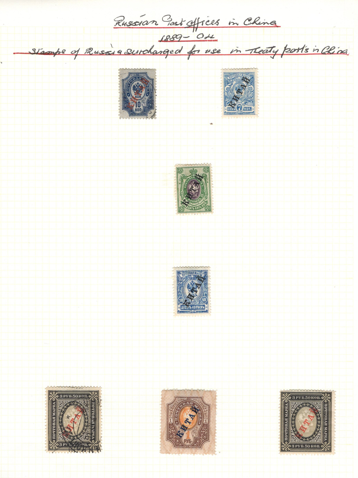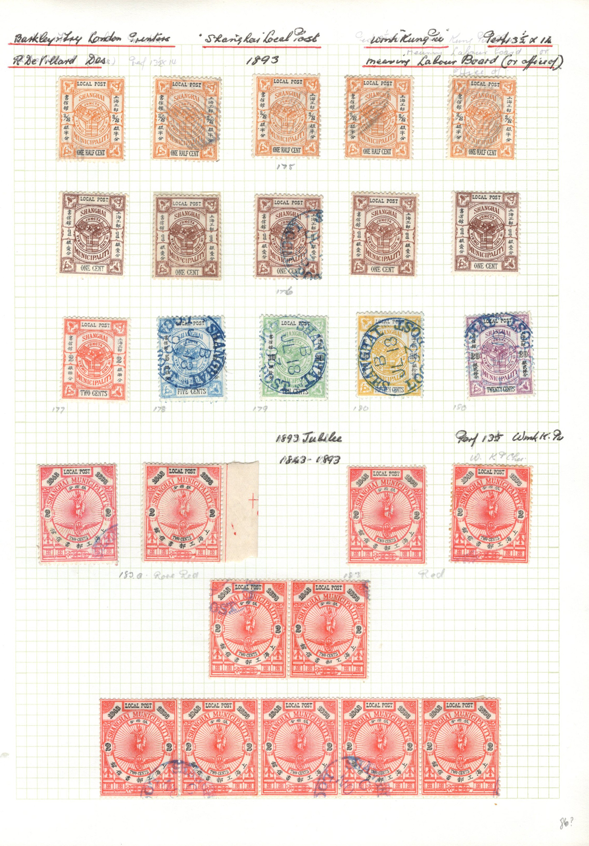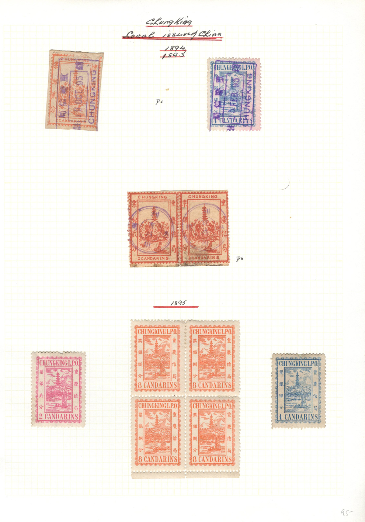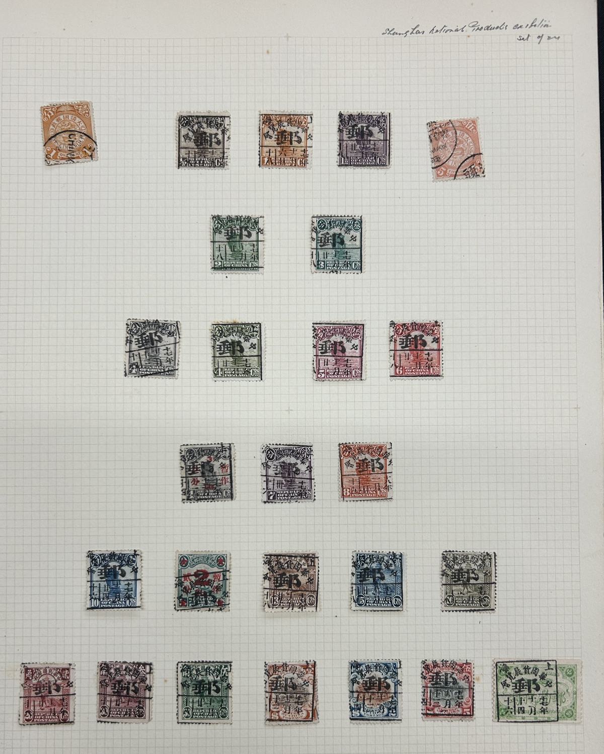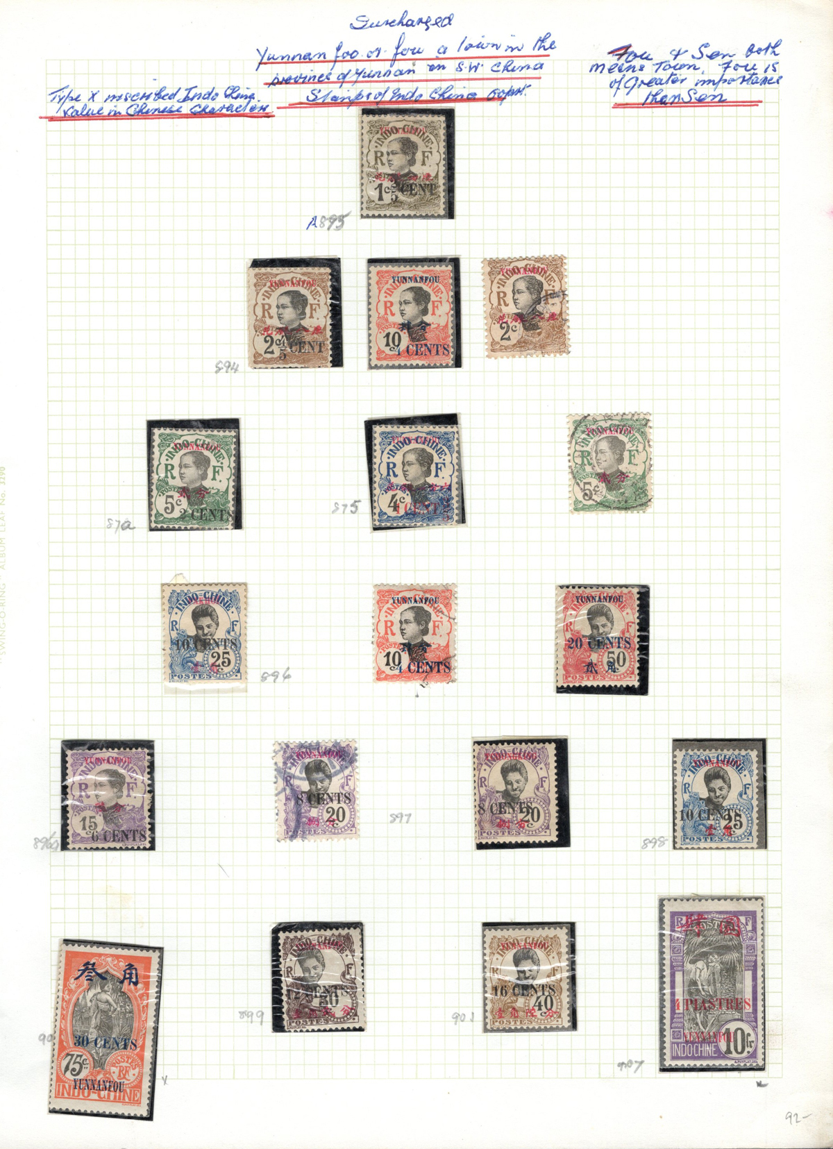 652 O/og/nh   imageValuable Old Time Extensive Collection of Offices in China, Shanghai and Chinese Local Post Office Issues, etc., carefully assembled and displayed on 55 quadrille pages, by a collector who lived in Hong Kong from the 1930s to the 1950s. A tremendously interesting collection, loaded with material not often seen. We noted a page of Italian Offices ($365), page of British Offices ($789), 11 pages of Shanghai Locals ($2,629), page of Yunnan-Fou overprints ($913), many pages of overprinted Indo-China issues including from Mongtseu ($346), Mong-Tseu ($606), a page of Mongtze overprint errors (€1,328 in Yvert Colonies catalogue), Mongtze #13 strip of 5 ($650), another page of Mongtze overprints ($1,559), 2 pages of French Colonies issues for China ($391), page of Hankow Local issues ($652), Nanking Local Post #1-15 ($381), also stamps from Foochow, Chungking, Chefoo ($357), Chinkiang, 2 pages of Amoy issues ($533), 2 pages of German Offices ($485), and more, including a few stationery cards (with staple holes). Very nice quality throughout, with many postmarks which should be of interest. The Scott catalogue value given assumes that all items are genuine, and does not include the pages either not counted, or counted in Euros using the Yvert Colonies catalogue. All pages have been scanned online. A great opportunity to acquire such an interesting and intact collection. (Scan 1) (Scan 2) (Scan 3) (Scan 4) (Scan 5) (Scan 6) (Scan 7) (Scan 8) (Scan 9) (Scan 10) (Scan 11) (Scan 12) (Scan 13) (Scan 14) (Scan 15) (Scan 16) (Scan 17) (Scan 18) (Scan 19) (Scan 20) (Scan 21) (Scan 22) (Scan 23) (Scan 24) (Scan 25) (Scan 26) (Scan 27) (Scan 28) (Scan 29) (Scan 30) (Scan 31) (Scan 32) (Scan 33) (Scan 34) (Scan 35) (Scan 36) (Scan 37) (Scan 38) (Scan 39) (Scan 40) (Scan 41) (Scan 42) (Scan 43) (Scan 44) (Scan 45) (Scan 46) (Scan 47) (Scan 48) (Scan 49) (Scan 50) (Scan 51) (Scan 52) (Scan 53) (Scan 54) (Scan 55) (All Scans) (All Images)