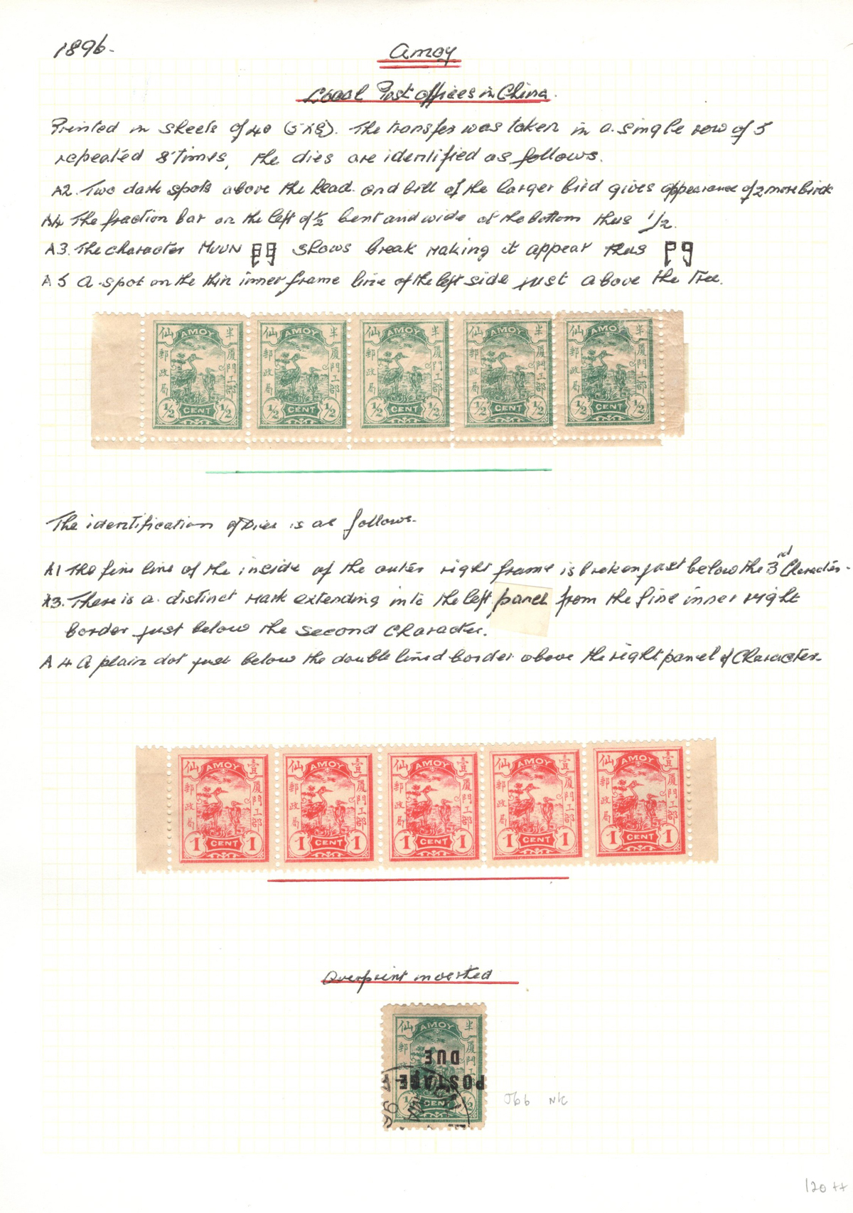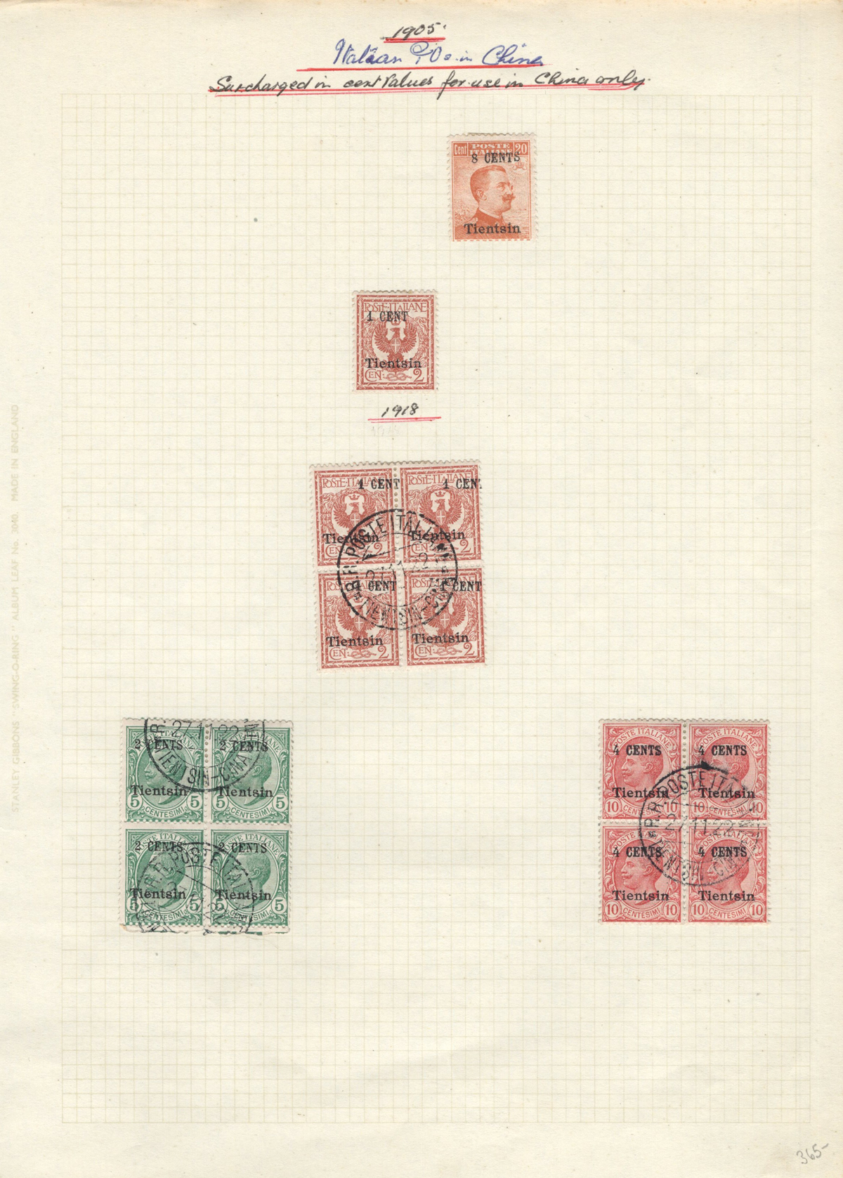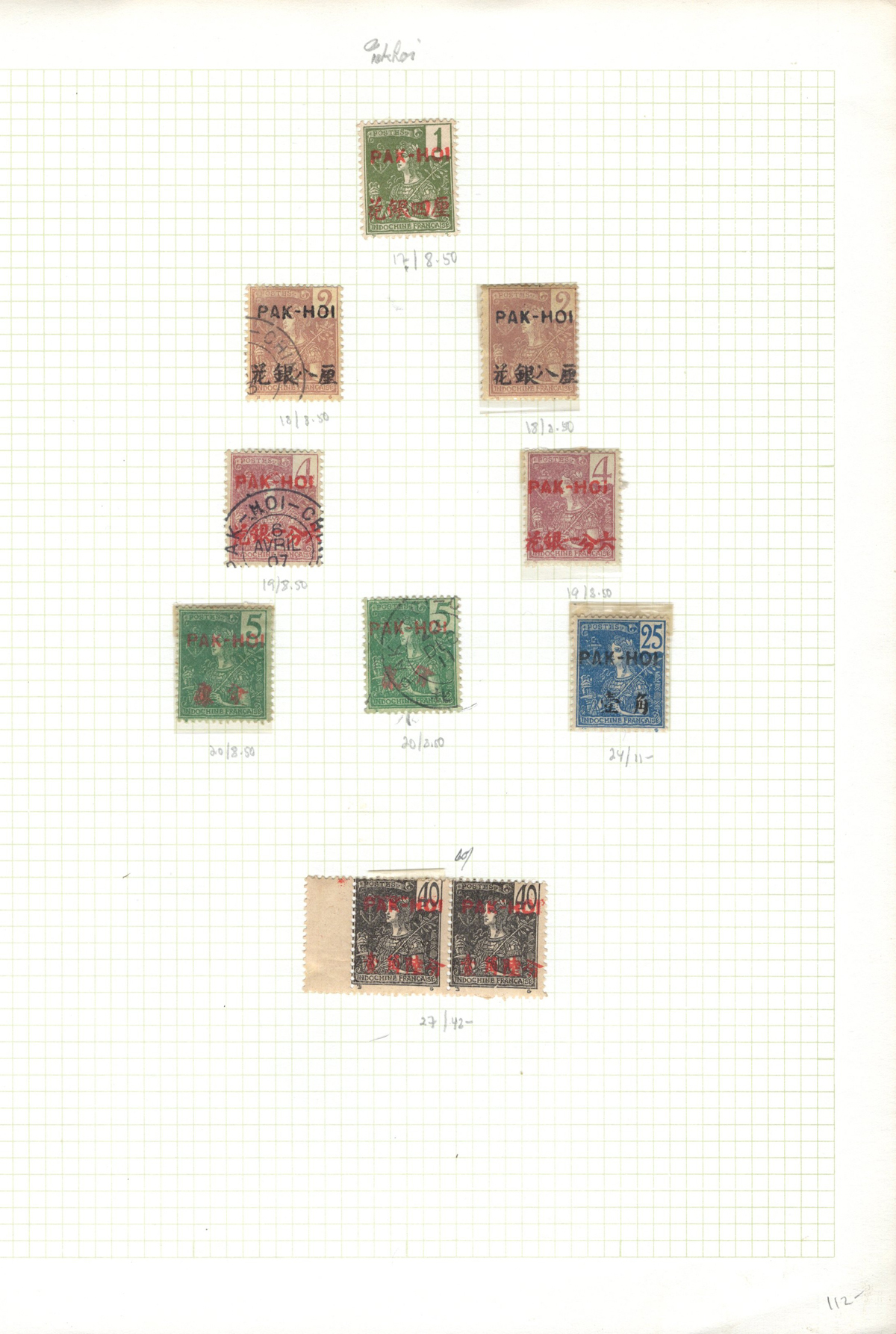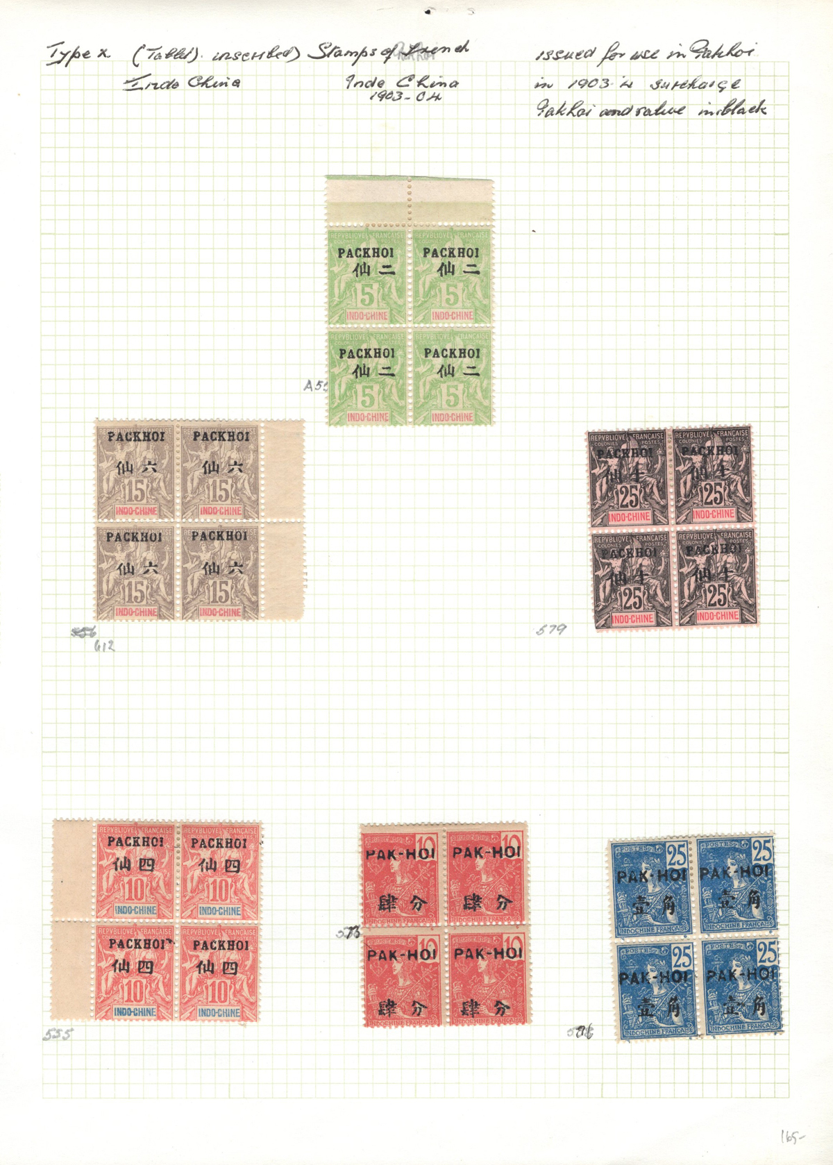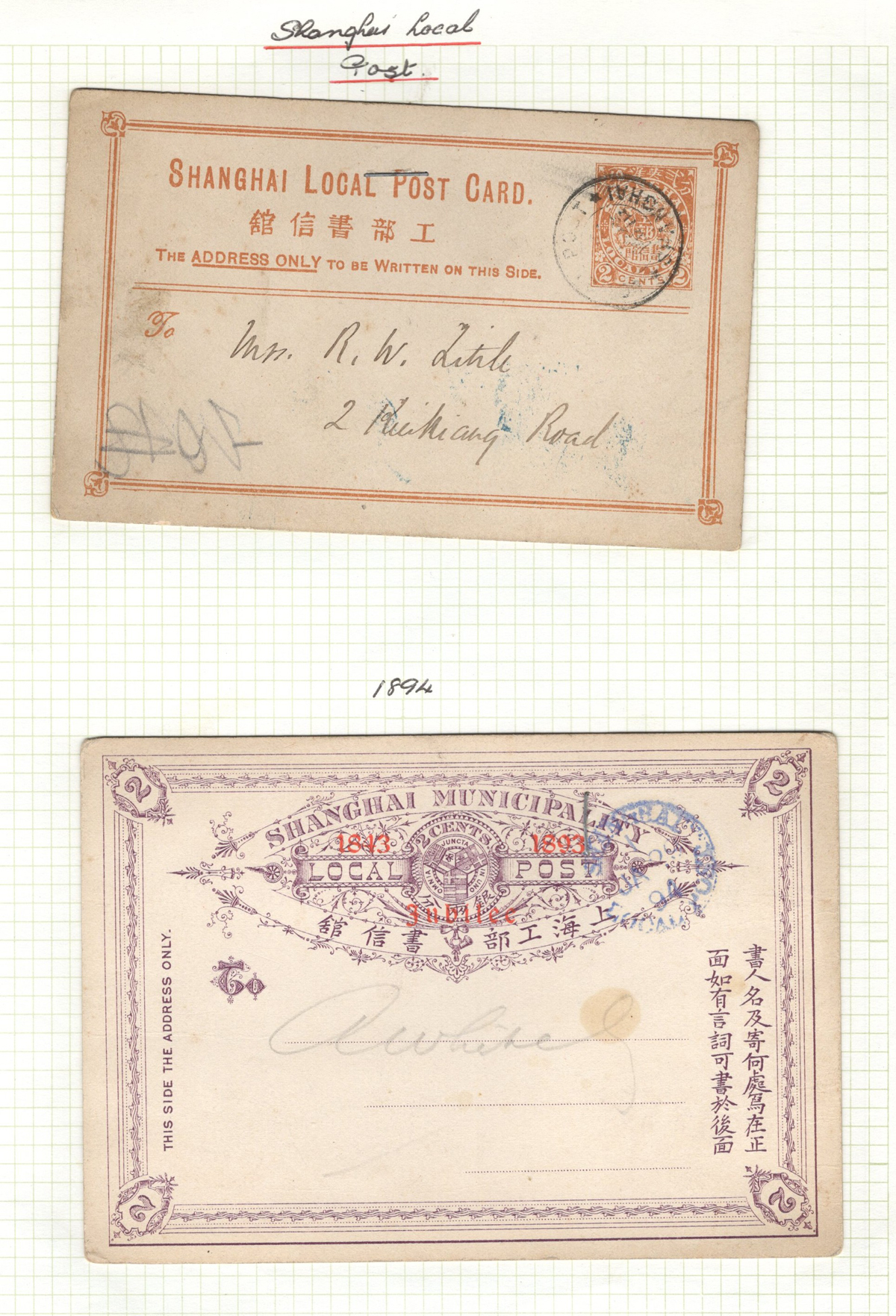 652 O/og/nh   imageValuable Old Time Extensive Collection of Offices in China, Shanghai and Chinese Local Post Office Issues, etc., carefully assembled and displayed on 55 quadrille pages, by a collector who lived in Hong Kong from the 1930s to the 1950s. A tremendously interesting collection, loaded with material not often seen. We noted a page of Italian Offices ($365), page of British Offices ($789), 11 pages of Shanghai Locals ($2,629), page of Yunnan-Fou overprints ($913), many pages of overprinted Indo-China issues including from Mongtseu ($346), Mong-Tseu ($606), a page of Mongtze overprint errors (€1,328 in Yvert Colonies catalogue), Mongtze #13 strip of 5 ($650), another page of Mongtze overprints ($1,559), 2 pages of French Colonies issues for China ($391), page of Hankow Local issues ($652), Nanking Local Post #1-15 ($381), also stamps from Foochow, Chungking, Chefoo ($357), Chinkiang, 2 pages of Amoy issues ($533), 2 pages of German Offices ($485), and more, including a few stationery cards (with staple holes). Very nice quality throughout, with many postmarks which should be of interest. The Scott catalogue value given assumes that all items are genuine, and does not include the pages either not counted, or counted in Euros using the Yvert Colonies catalogue. All pages have been scanned online. A great opportunity to acquire such an interesting and intact collection. (Scan 1) (Scan 2) (Scan 3) (Scan 4) (Scan 5) (Scan 6) (Scan 7) (Scan 8) (Scan 9) (Scan 10) (Scan 11) (Scan 12) (Scan 13) (Scan 14) (Scan 15) (Scan 16) (Scan 17) (Scan 18) (Scan 19) (Scan 20) (Scan 21) (Scan 22) (Scan 23) (Scan 24) (Scan 25) (Scan 26) (Scan 27) (Scan 28) (Scan 29) (Scan 30) (Scan 31) (Scan 32) (Scan 33) (Scan 34) (Scan 35) (Scan 36) (Scan 37) (Scan 38) (Scan 39) (Scan 40) (Scan 41) (Scan 42) (Scan 43) (Scan 44) (Scan 45) (Scan 46) (Scan 47) (Scan 48) (Scan 49) (Scan 50) (Scan 51) (Scan 52) (Scan 53) (Scan 54) (Scan 55) (All Scans) (All Images)