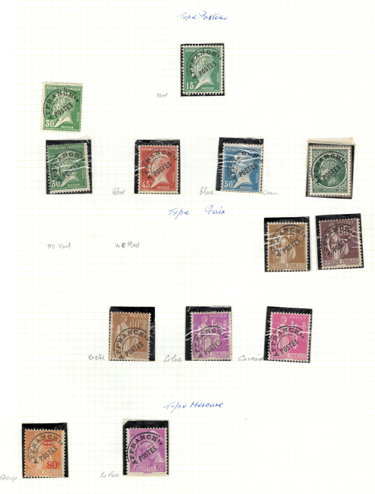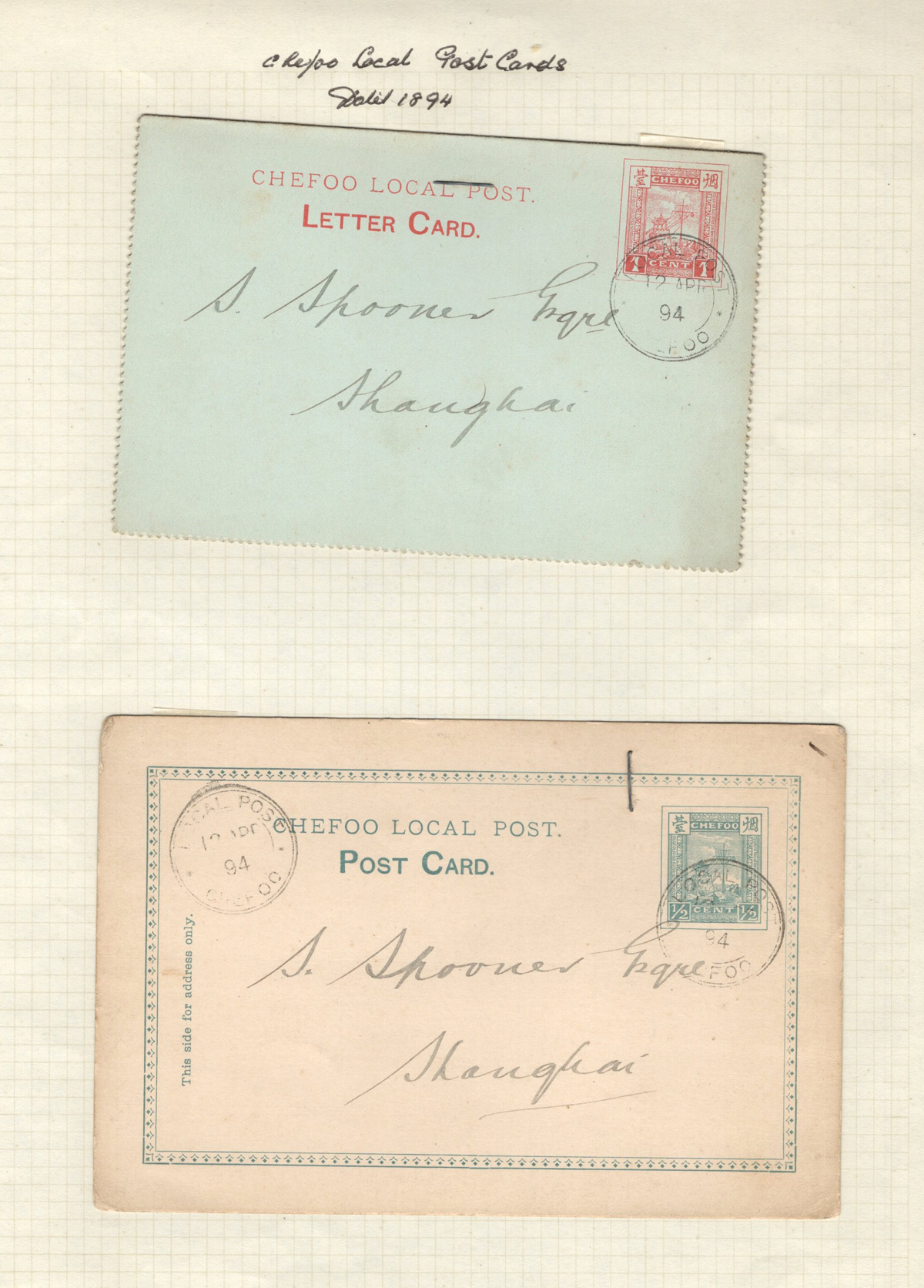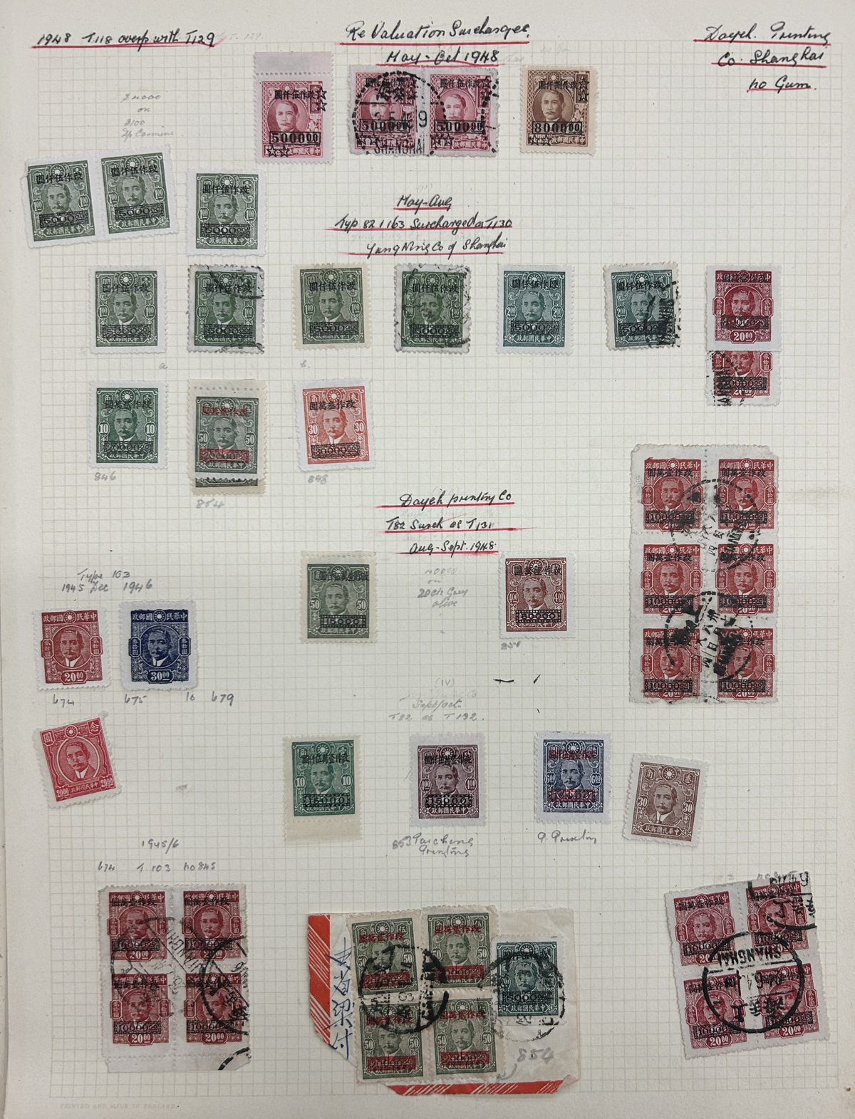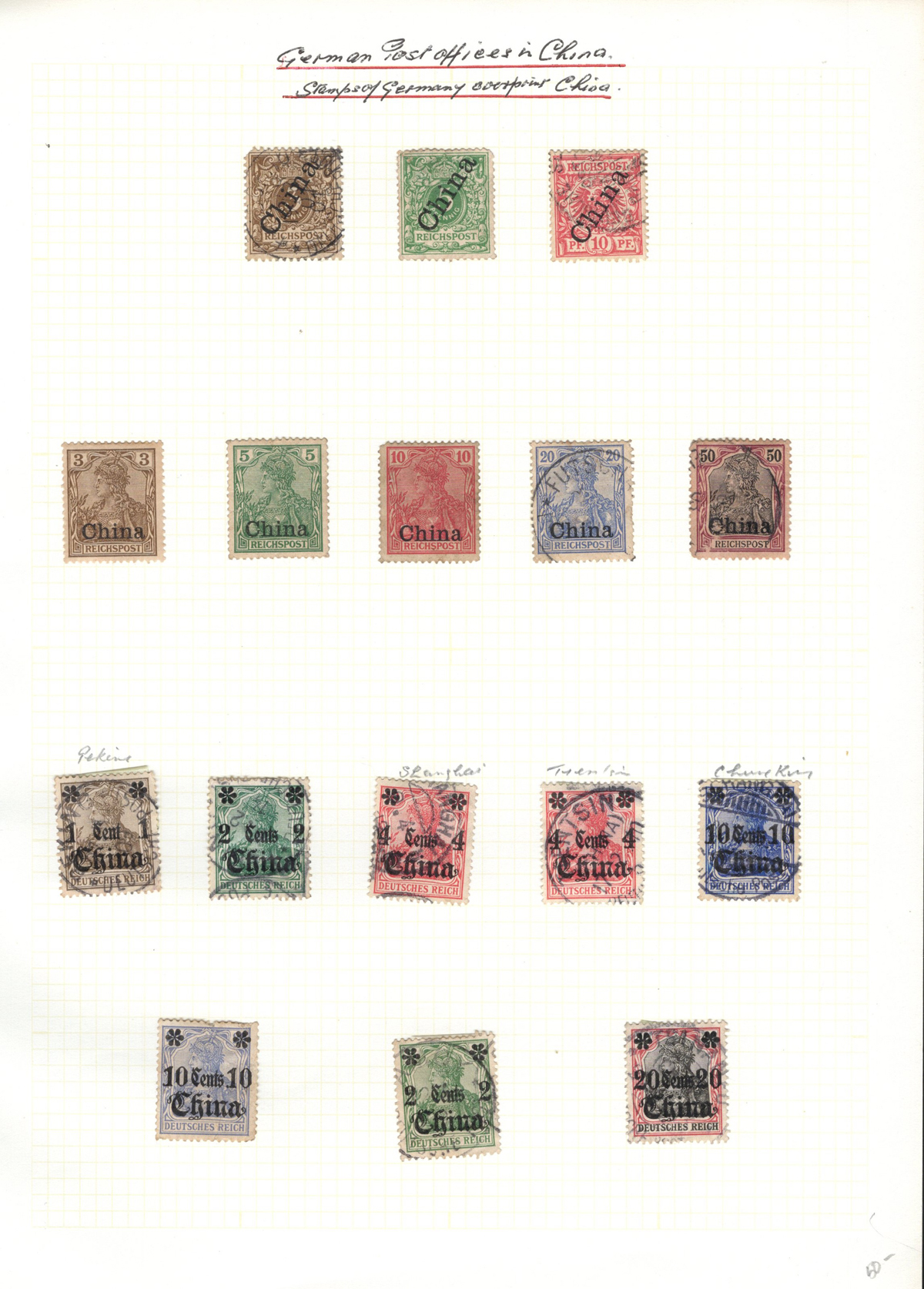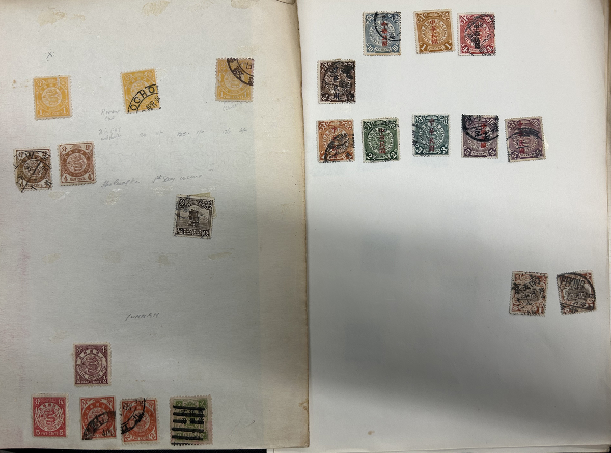 652 O/og/nh   imageValuable Old Time Extensive Collection of Offices in China, Shanghai and Chinese Local Post Office Issues, etc., carefully assembled and displayed on 55 quadrille pages, by a collector who lived in Hong Kong from the 1930s to the 1950s. A tremendously interesting collection, loaded with material not often seen. We noted a page of Italian Offices ($365), page of British Offices ($789), 11 pages of Shanghai Locals ($2,629), page of Yunnan-Fou overprints ($913), many pages of overprinted Indo-China issues including from Mongtseu ($346), Mong-Tseu ($606), a page of Mongtze overprint errors (€1,328 in Yvert Colonies catalogue), Mongtze #13 strip of 5 ($650), another page of Mongtze overprints ($1,559), 2 pages of French Colonies issues for China ($391), page of Hankow Local issues ($652), Nanking Local Post #1-15 ($381), also stamps from Foochow, Chungking, Chefoo ($357), Chinkiang, 2 pages of Amoy issues ($533), 2 pages of German Offices ($485), and more, including a few stationery cards (with staple holes). Very nice quality throughout, with many postmarks which should be of interest. The Scott catalogue value given assumes that all items are genuine, and does not include the pages either not counted, or counted in Euros using the Yvert Colonies catalogue. All pages have been scanned online. A great opportunity to acquire such an interesting and intact collection. (Scan 1) (Scan 2) (Scan 3) (Scan 4) (Scan 5) (Scan 6) (Scan 7) (Scan 8) (Scan 9) (Scan 10) (Scan 11) (Scan 12) (Scan 13) (Scan 14) (Scan 15) (Scan 16) (Scan 17) (Scan 18) (Scan 19) (Scan 20) (Scan 21) (Scan 22) (Scan 23) (Scan 24) (Scan 25) (Scan 26) (Scan 27) (Scan 28) (Scan 29) (Scan 30) (Scan 31) (Scan 32) (Scan 33) (Scan 34) (Scan 35) (Scan 36) (Scan 37) (Scan 38) (Scan 39) (Scan 40) (Scan 41) (Scan 42) (Scan 43) (Scan 44) (Scan 45) (Scan 46) (Scan 47) (Scan 48) (Scan 49) (Scan 50) (Scan 51) (Scan 52) (Scan 53) (Scan 54) (Scan 55) (All Scans) (All Images)