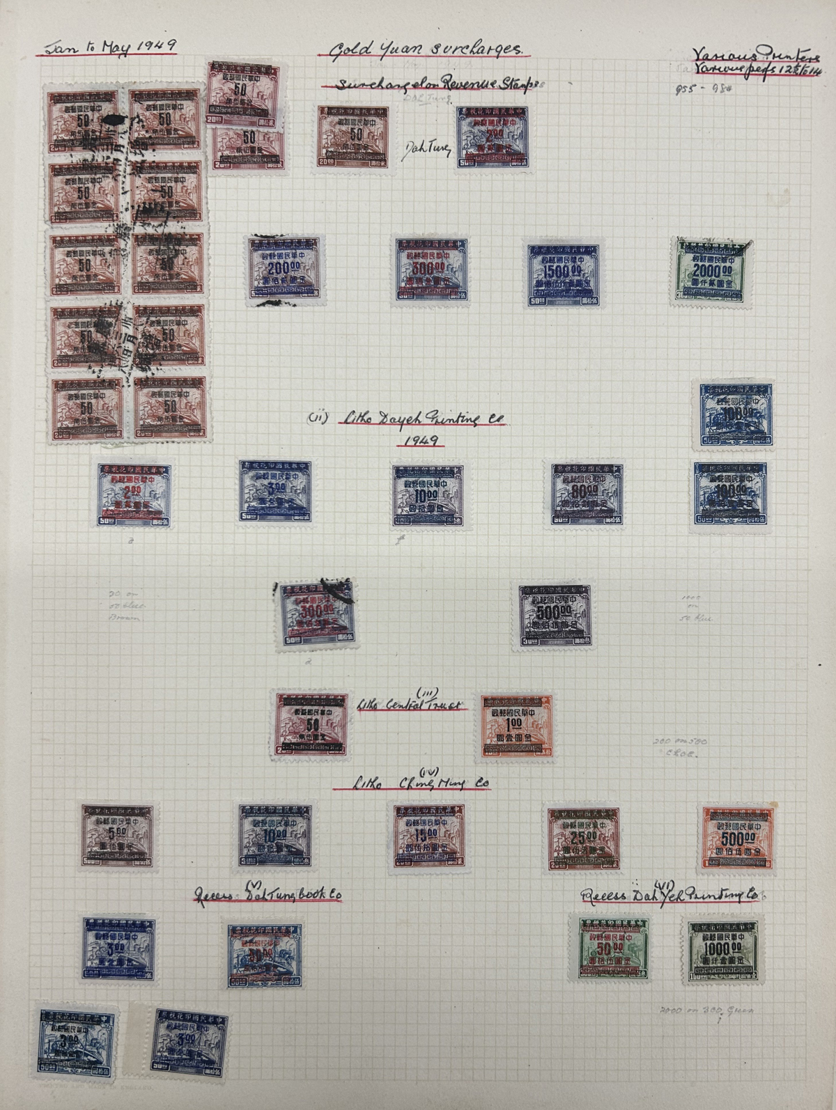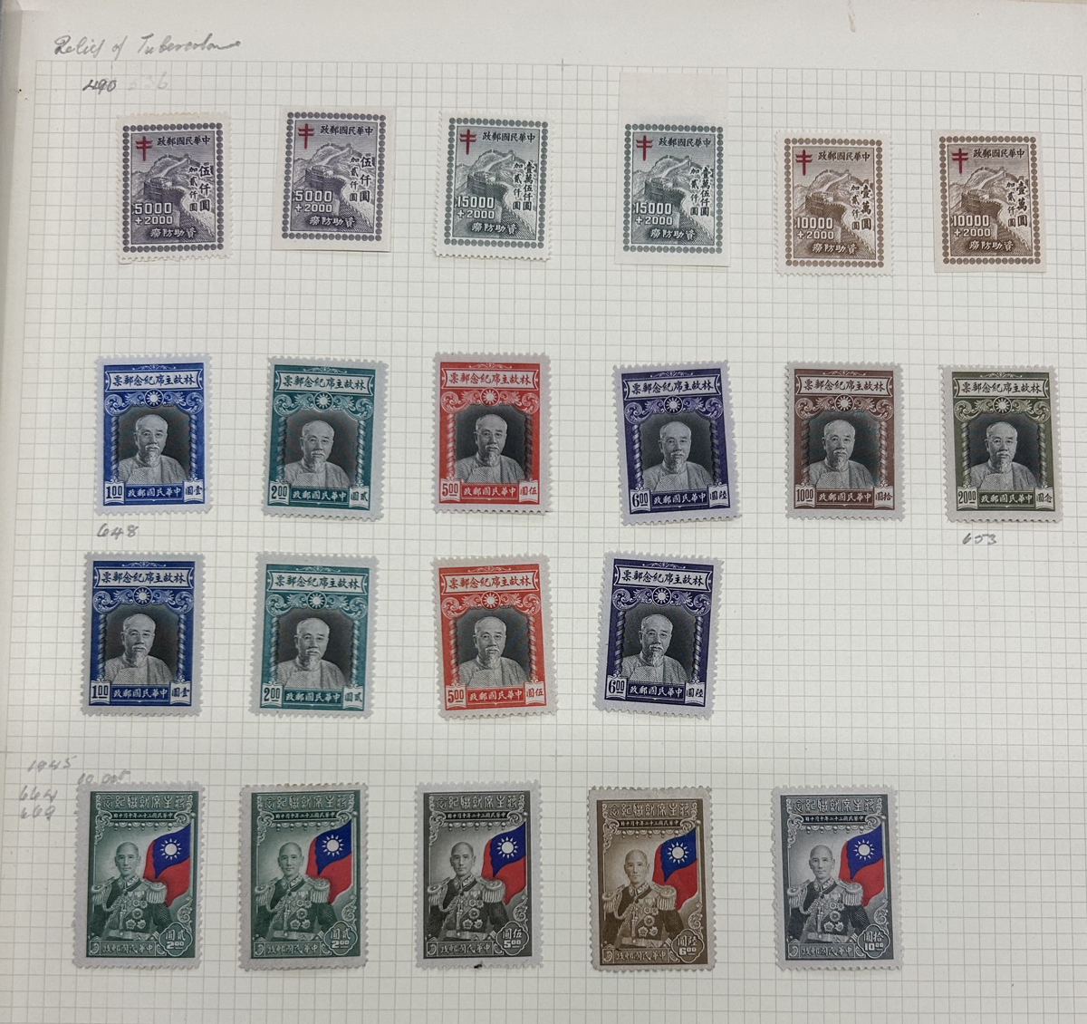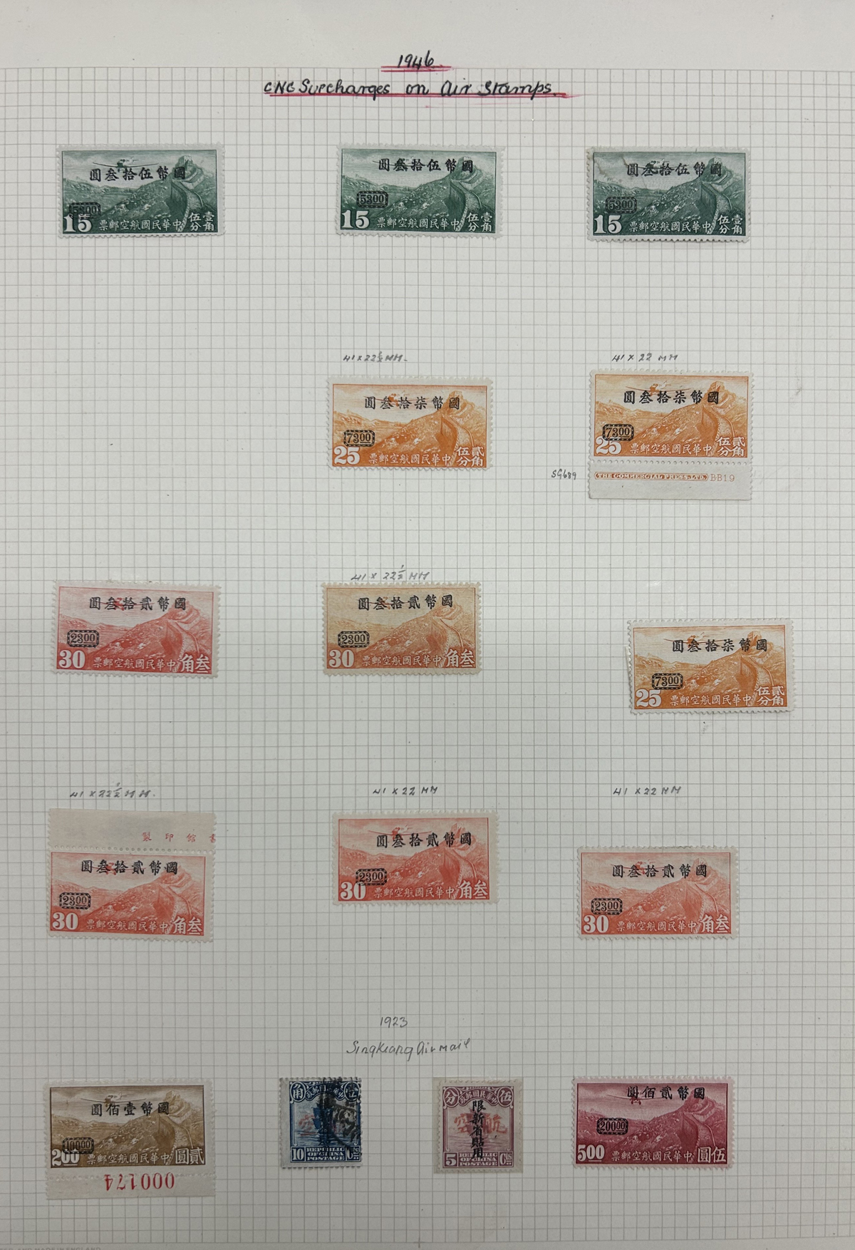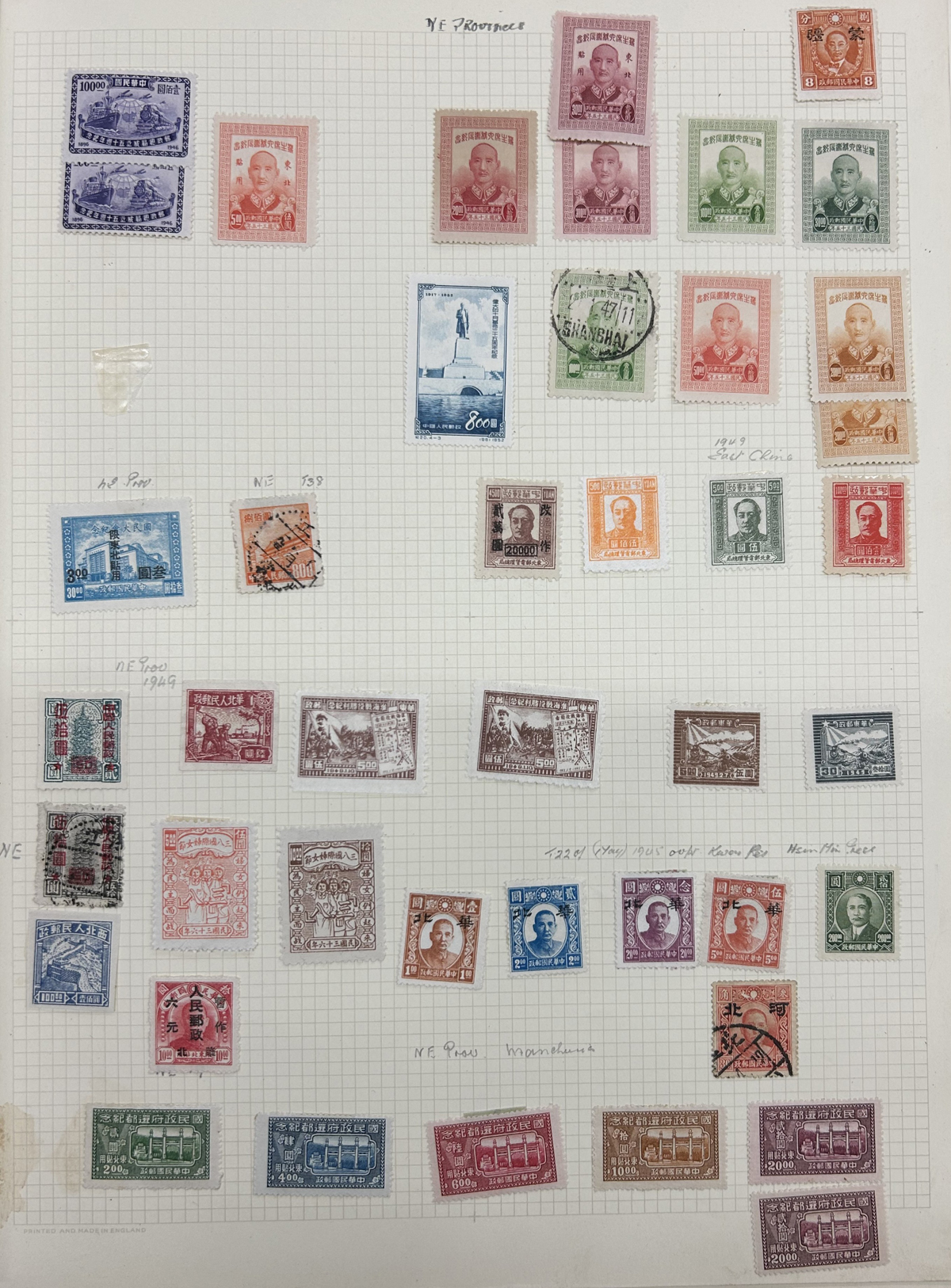 651 O/og   imageOld Time Collection of China, Republic of China and Provinces, 1898 to 1950, with about 1,500 stamps mounted on 37 large plus 23 small pages. The collection contains many complete sets of regular and overprinted stamps, in a mix of mint and used, plus some blocks of four or larger, as well as some back of the book including three Officially Sealed labels and a few pages of Airmail sets. The collector used a variety of hinges, including some old thick ones that tend to remain on the stamps when removed from the pages, else an overall fine collection with fresh colours. A very useful collection for the dedicated collector, should easily be worth our estimate. See photos for a glance of the contents. (Scan 1) (Scan 2) (Scan 3) (Scan 4) (Scan 5) (Scan 6) (Scan 7) (Scan 8) (Scan 9) (Scan 10) (Scan 11) (Scan 12) (Scan 13) (Scan 14) (Scan 15) (Scan 16) (Scan 17) (Scan 18) (Scan 19) (Scan 20) (Scan 21) (Scan 22) (Scan 23) (Scan 24) (Scan 25) (Scan 26) (Scan 27) (All Scans) (All Images)