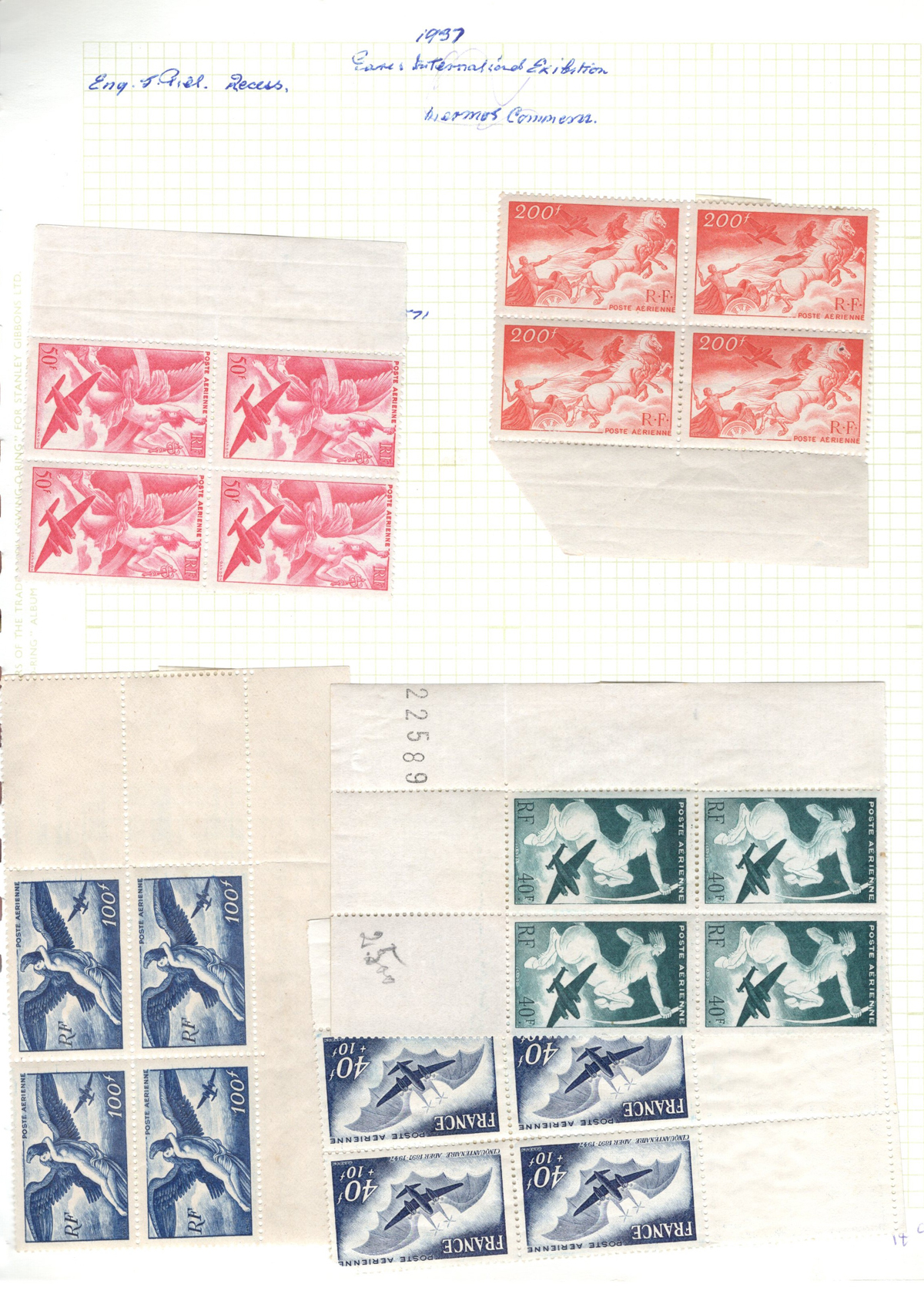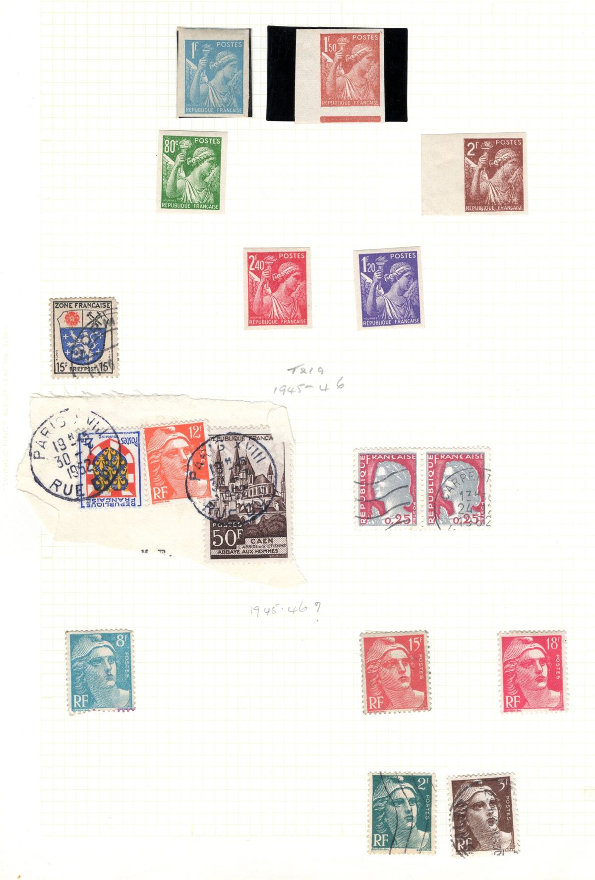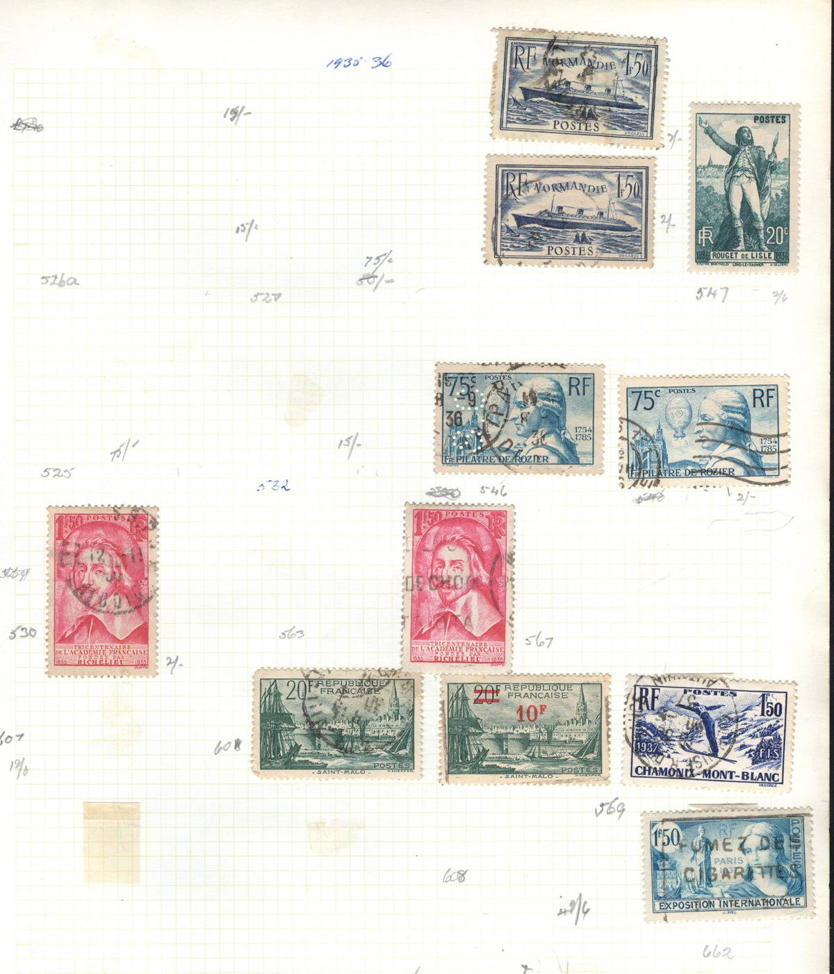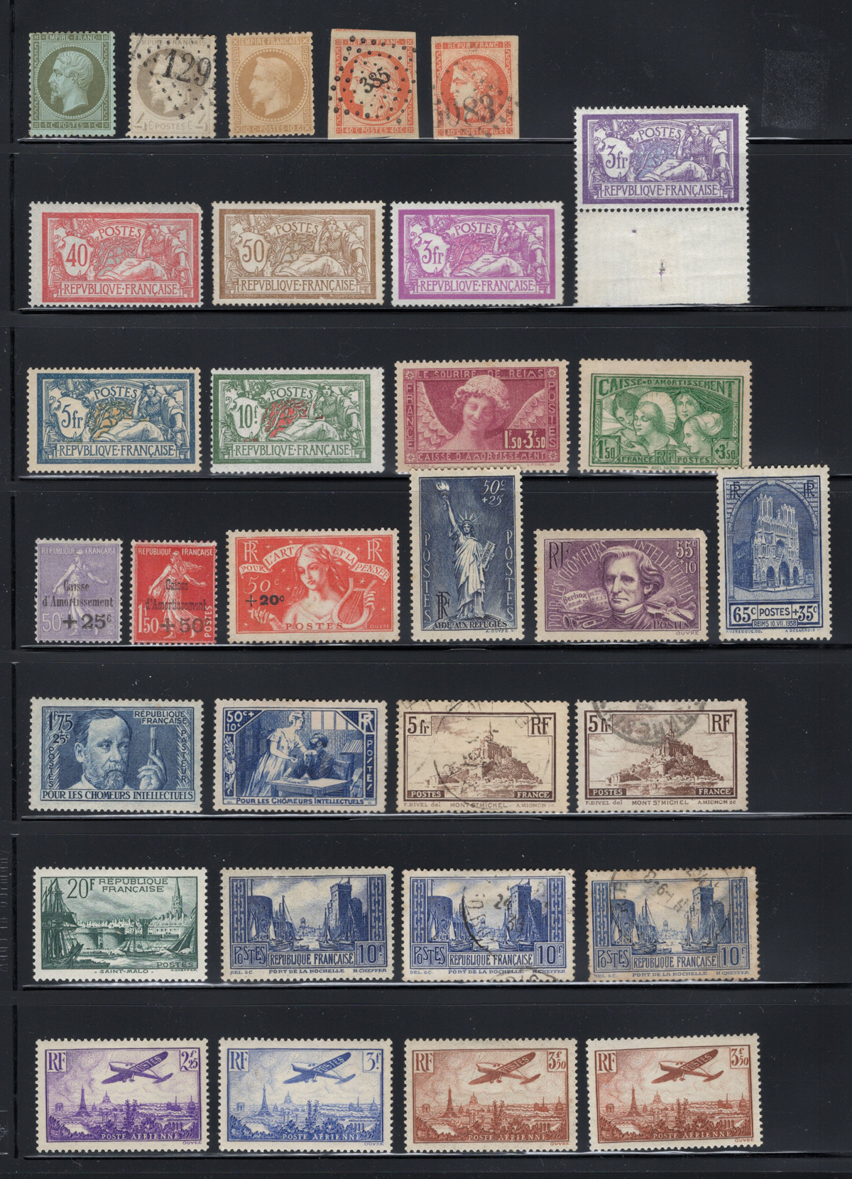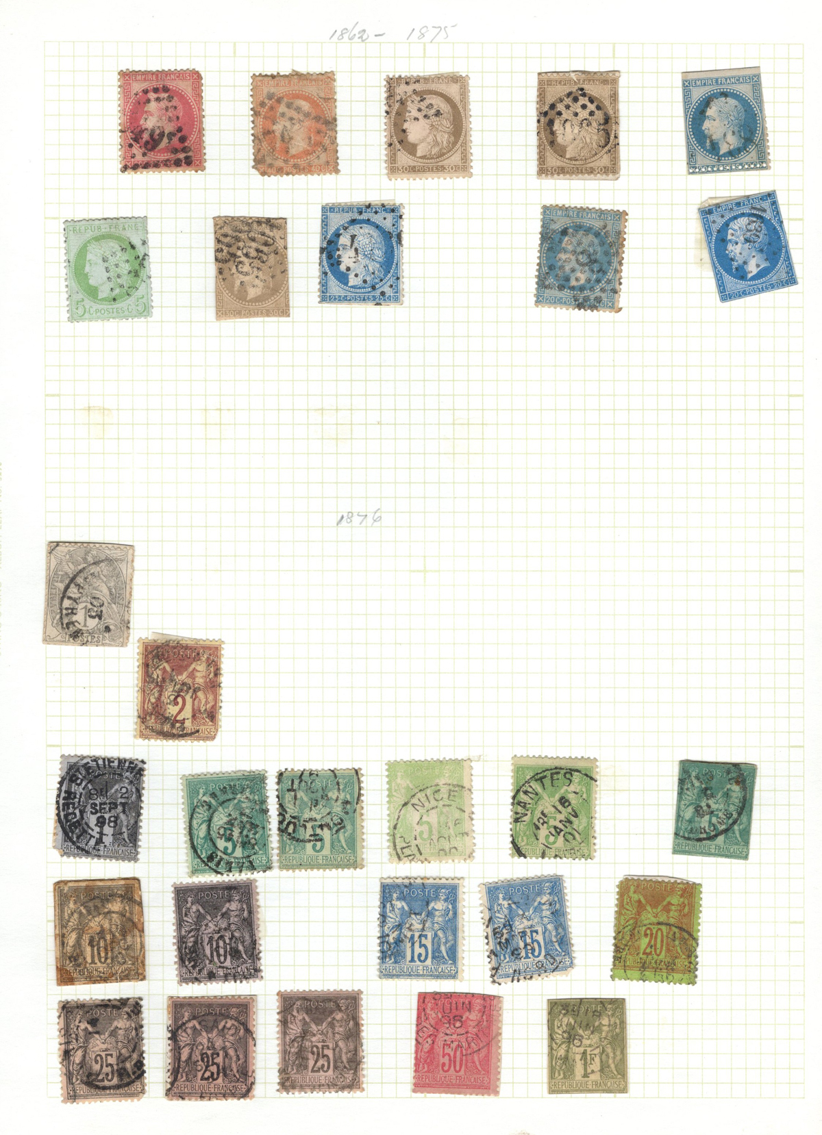 660 O/og/nh   imageCollection of Mint and Used France and Colonies, 1870s-1940s, with a double-sided black stock page of better items, as well as a collection mounted on 25 old time quadrille pages. We note several better France issues such as Scott #s 22 (mint, $140), 32 (mint, $215), 47 (used, $100), 47b (used, $190), 123 (mint, $100), 128 (NH, $52), 252 (mint, $70), B34 (mint, $80), B35 (mint, $125), C13 (two mint singles, $62 each), saw 2 pages of Precancels, a group of imperforate 1944 Iris issues, some used tête-bêche parcel post issues, lots of mint and used Airmails (incl. mint blocks of four), some semi-postal cinderellas, etc. Also includes 4 pages of Colonies, including general issues (with a page of postage dues) plus a few Algeria, Somali Coast, etc. Mix of mint and used throughout, some of the mint on the quadrille pages have glassine backing stuck to them, else overall fine to very fine. (Scan 1) (Scan 2) (Scan 3) (Scan 4) (Scan 5) (Scan 6) (Scan 7) (Scan 8) (Scan 9) (Scan 10) (Scan 11) (Scan 12) (All Scans) (All Images)