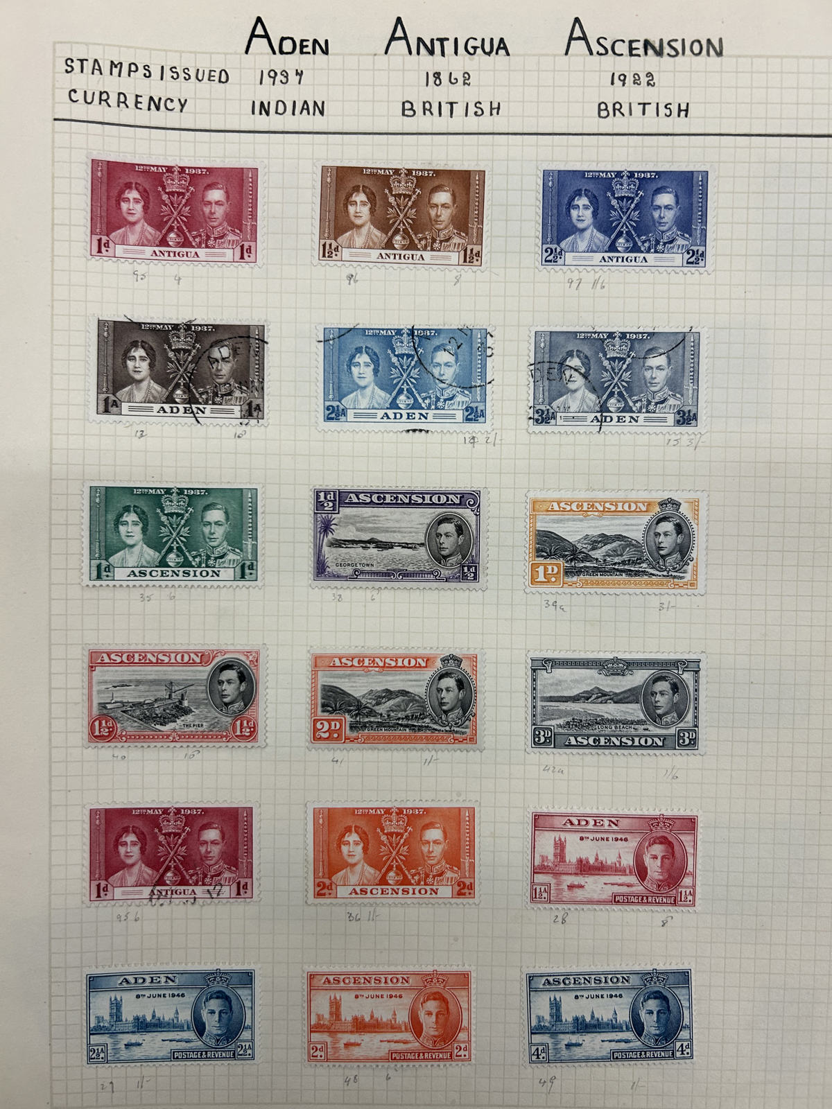 641 O/og   imageOld Time Collection of Mint and Used British Commonwealth, QV to KGVI, mounted on about 70 album pages (of which 4 are USA stamps) in a springback album. Good coverage of countries, noting Canada, Ceylon, India and States, Australia, K.U.T., and many more. Not too many high values or rare stamps, still a few hundred at least that could fill empty spaces in your collection. Quality is quite nice overall. See our pictures showing several random pages. (Scan 1) (Scan 2) (Scan 3) (Scan 4) (Scan 5) (Scan 6) (Scan 7) (Scan 8) (Scan 9) (Scan 10) (Scan 11) (Scan 12) (Scan 13) (Scan 14) (Scan 15) (Scan 16) (All Scans) (All Images)