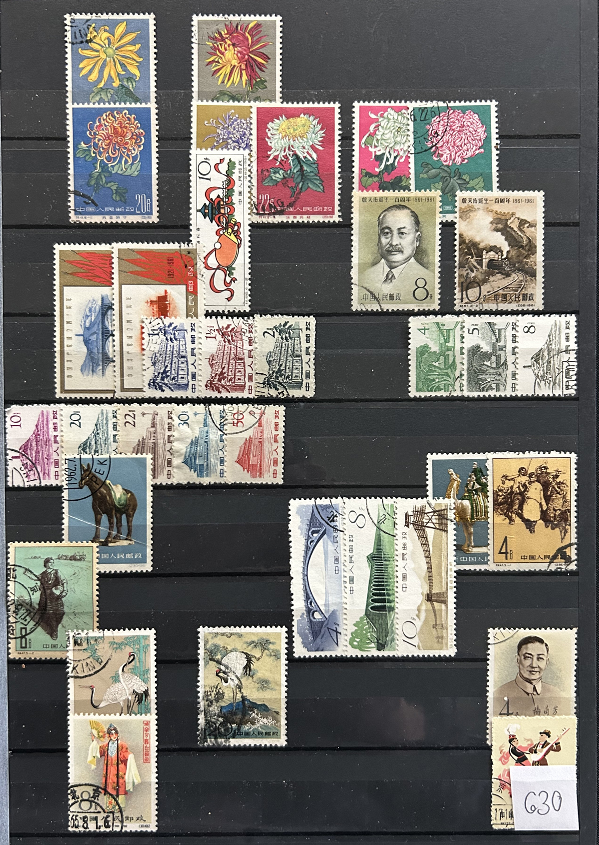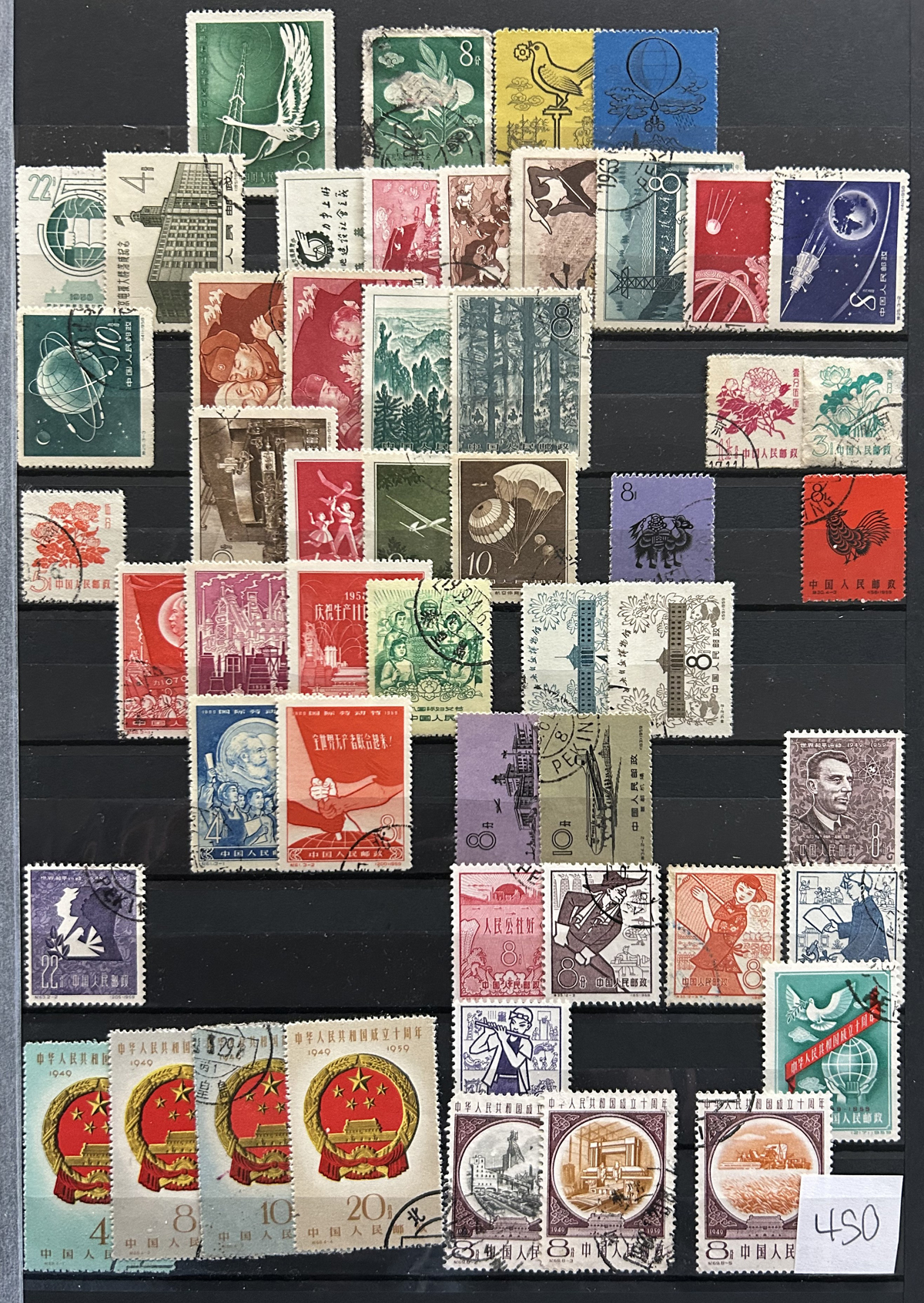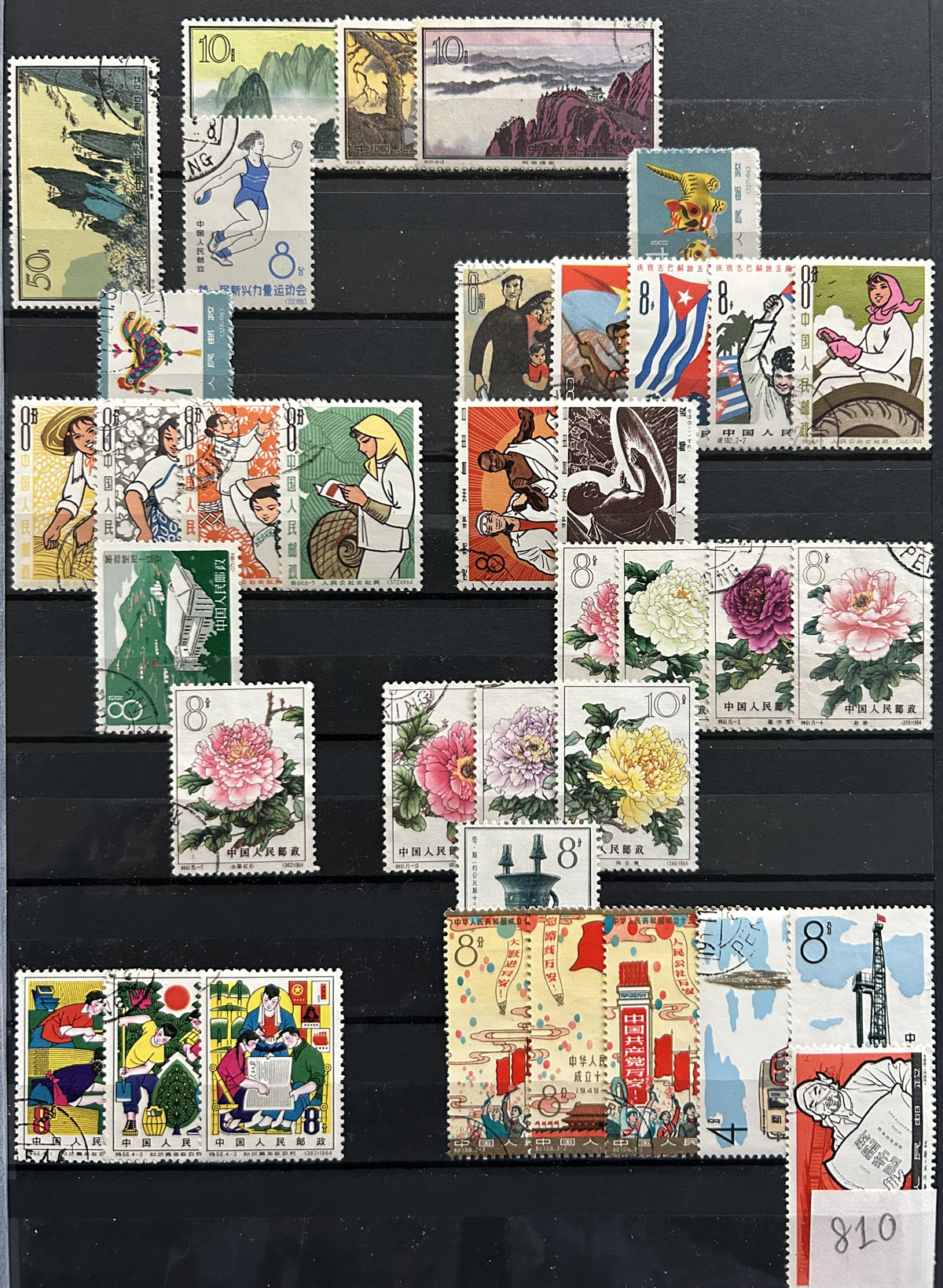 656 O/og   imageSmall Collection of Mostly Used People's Republic of China, includes a special album with the stamps of 1993 (complete except for missing the last souvenir sheet) as well as a 16-page stockbook containing a variety of mostly used sets and part sets, from the late 1940s to about 1965, noting used #s 249-266 ($16), 716-731 ($206), 767-781 ($100), 798b ($80), 834-841 ($52), 842-849 ($65), 886-890 ($16) to name just a few. Overall fine to very fine. Our photos only show a portion of the lot. (Scan 1) (Scan 2) (Scan 3) (Scan 4) (Scan 5) (Scan 6) (Scan 7) (All Scans) (All Images)