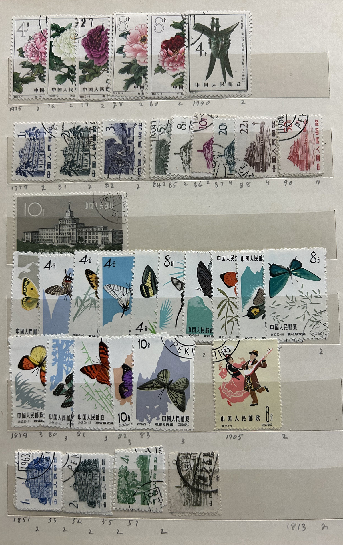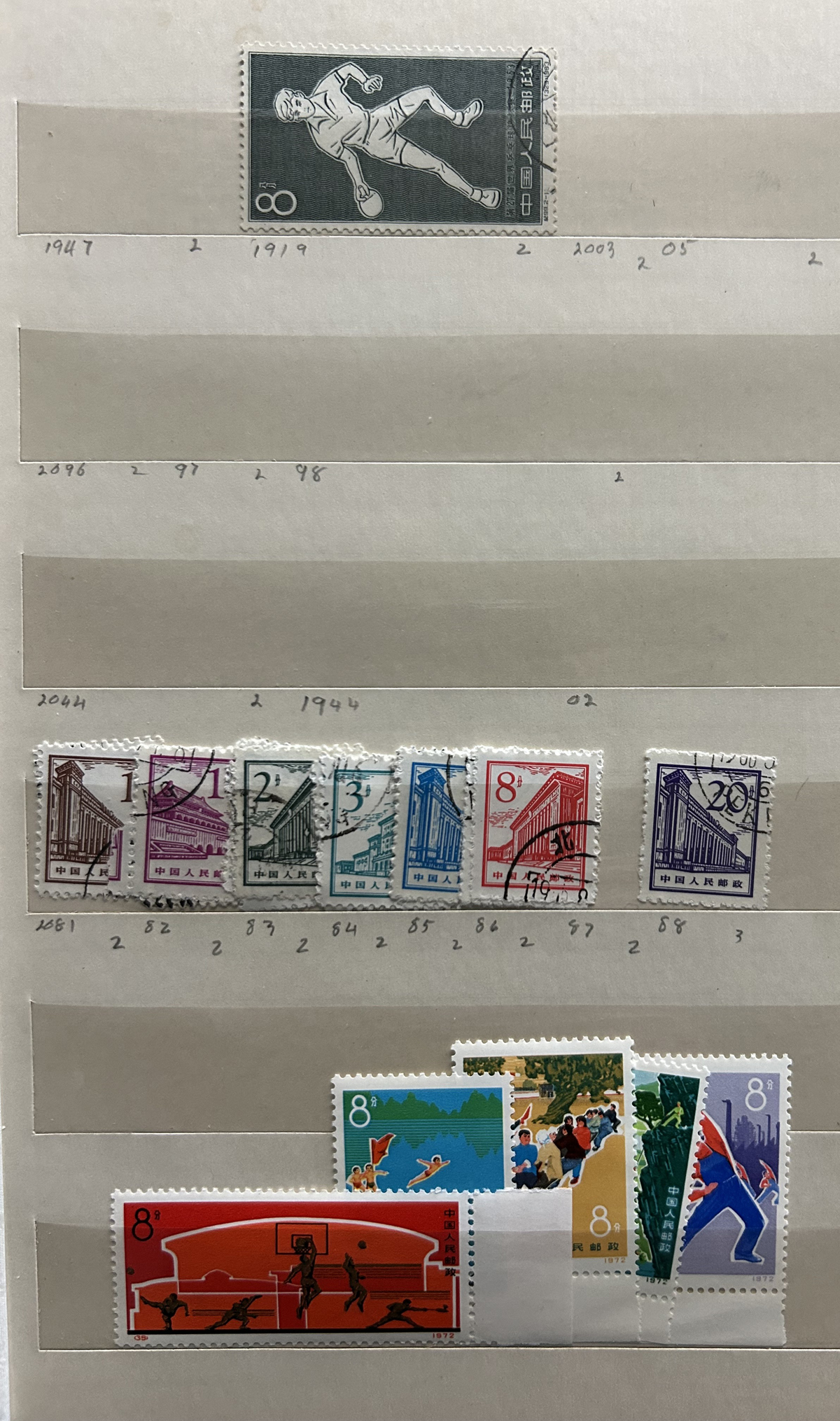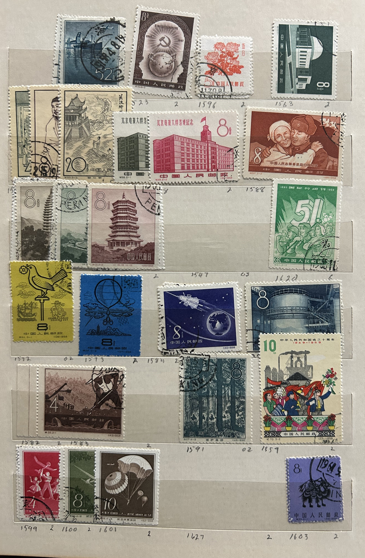 656 O/og   imageSmall Collection of Mostly Used People's Republic of China, includes a special album with the stamps of 1993 (complete except for missing the last souvenir sheet) as well as a 16-page stockbook containing a variety of mostly used sets and part sets, from the late 1940s to about 1965, noting used #s 249-266 ($16), 716-731 ($206), 767-781 ($100), 798b ($80), 834-841 ($52), 842-849 ($65), 886-890 ($16) to name just a few. Overall fine to very fine. Our photos only show a portion of the lot. (Scan 1) (Scan 2) (Scan 3) (Scan 4) (Scan 5) (Scan 6) (Scan 7) (All Scans) (All Images)