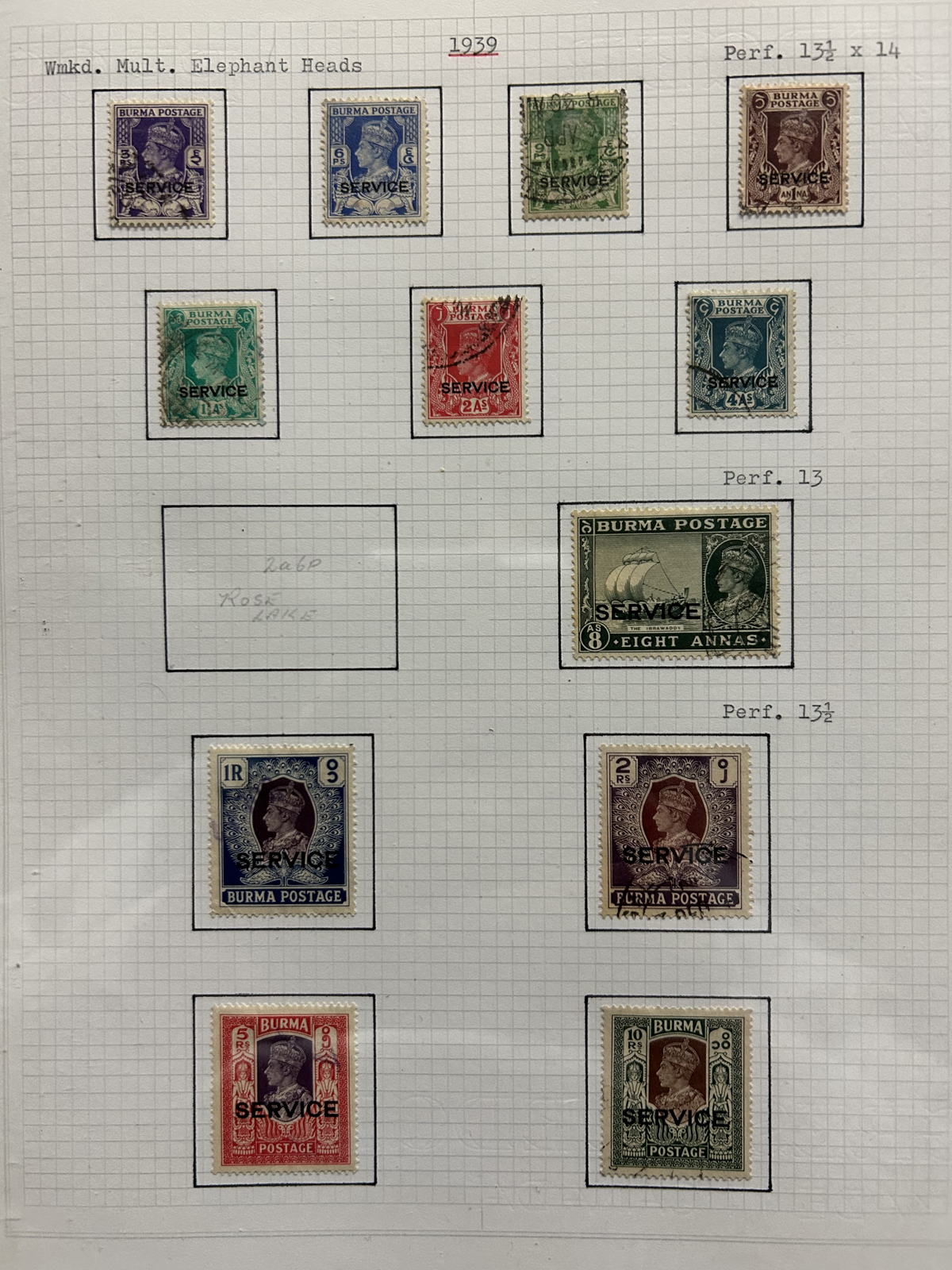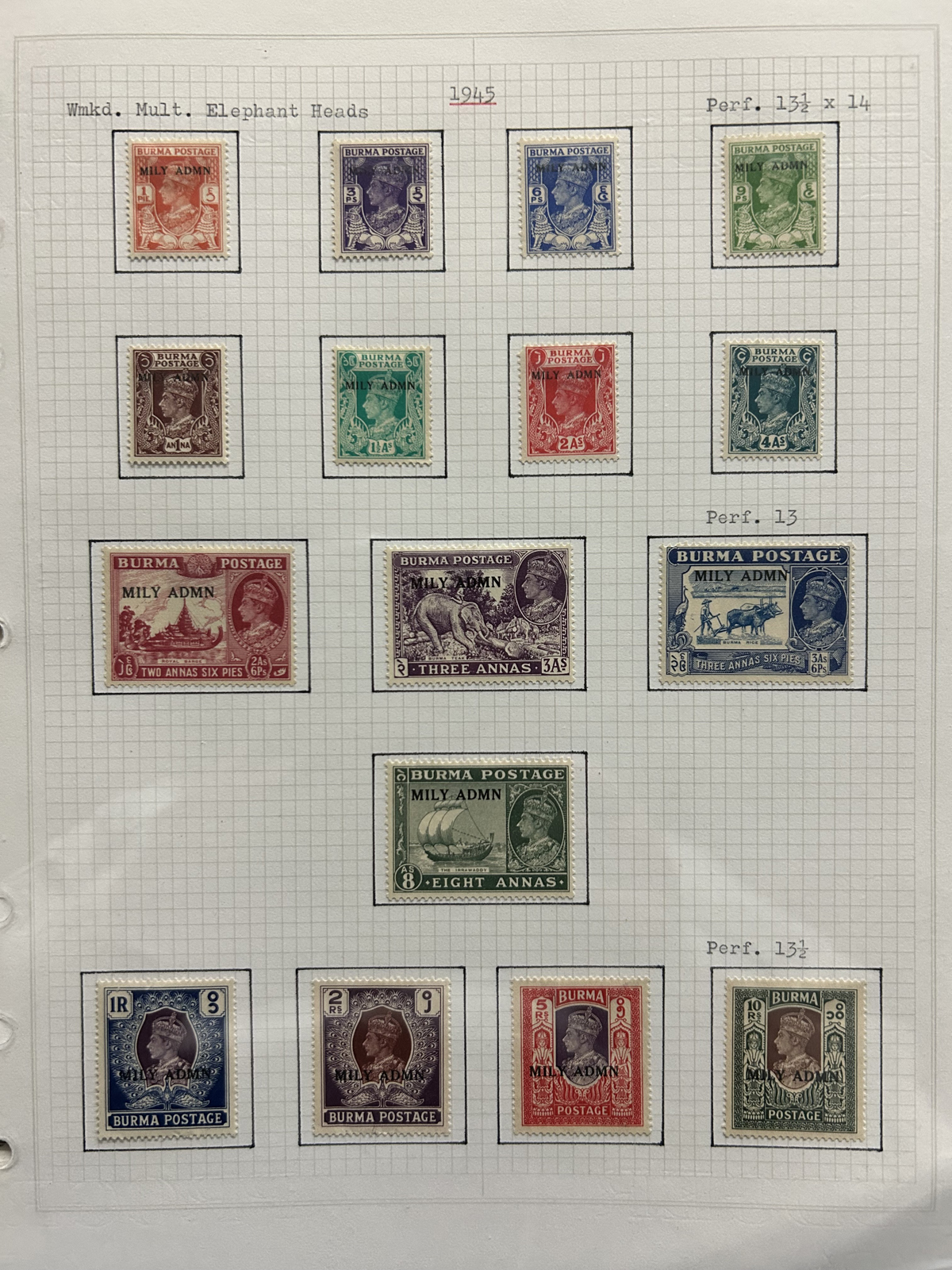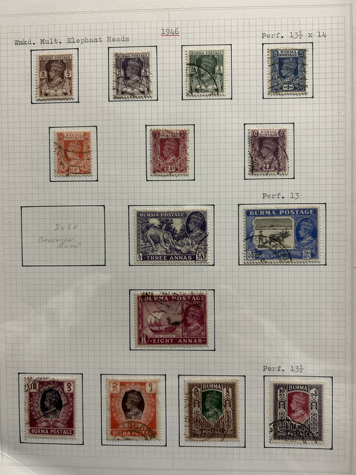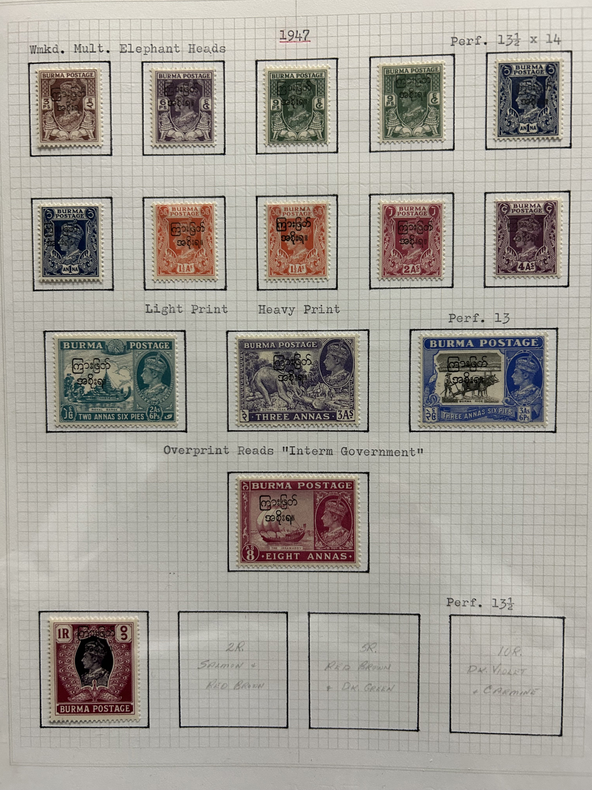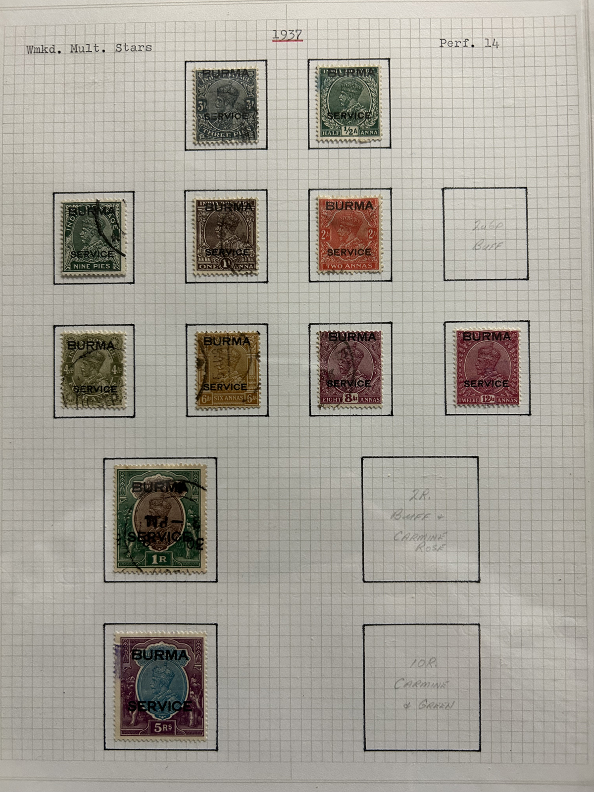 648 O/og   imageCollection of Mint and Used Burma, 1937-1948, mounted on quadrille pages, Scott pages and one stock page. Noted complete sets, mix of mint and used (usually a set will be either mint or used), etc., including Officials. Overall fine or better. (Scan 1) (Scan 2) (Scan 3) (Scan 4) (Scan 5) (Scan 6) (Scan 7) (All Scans) (All Images)