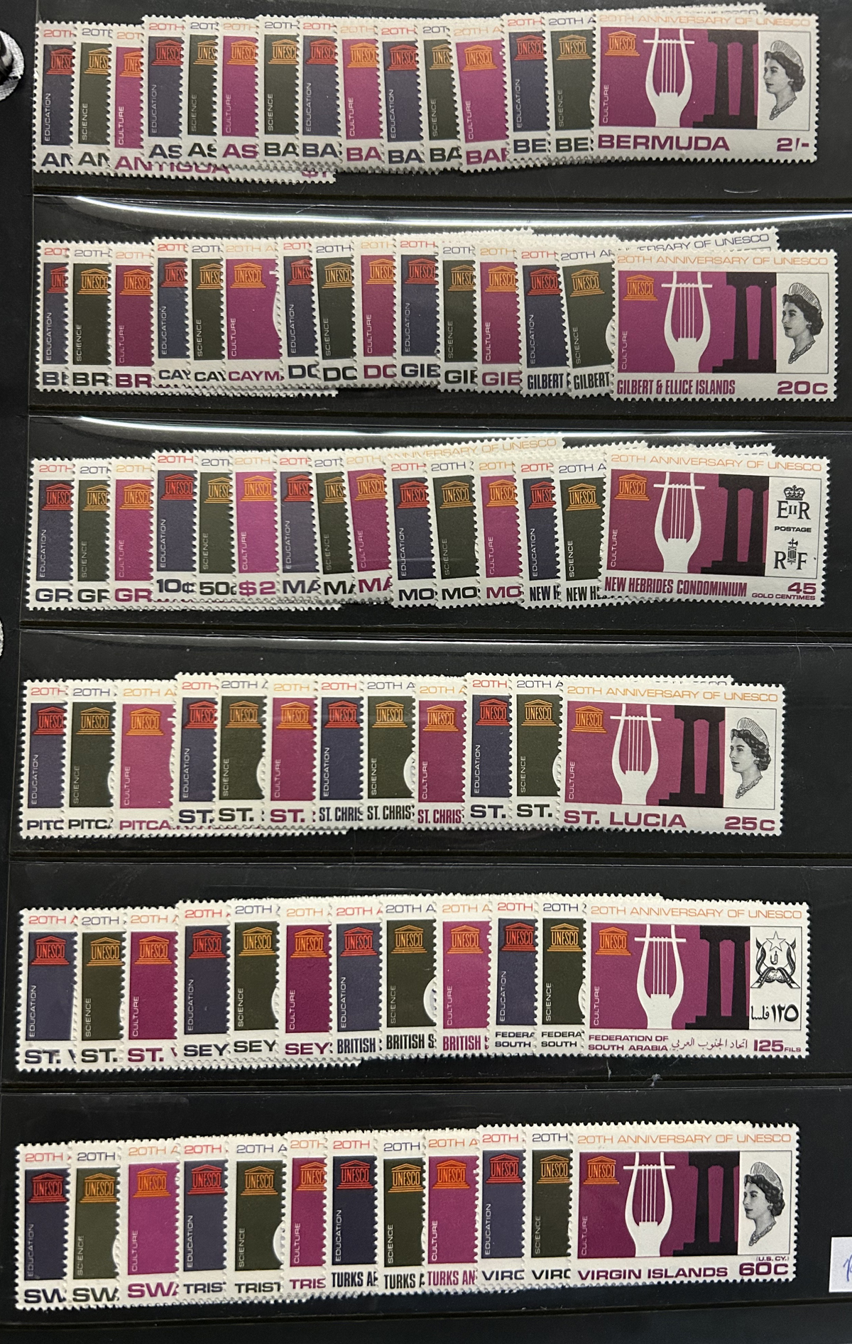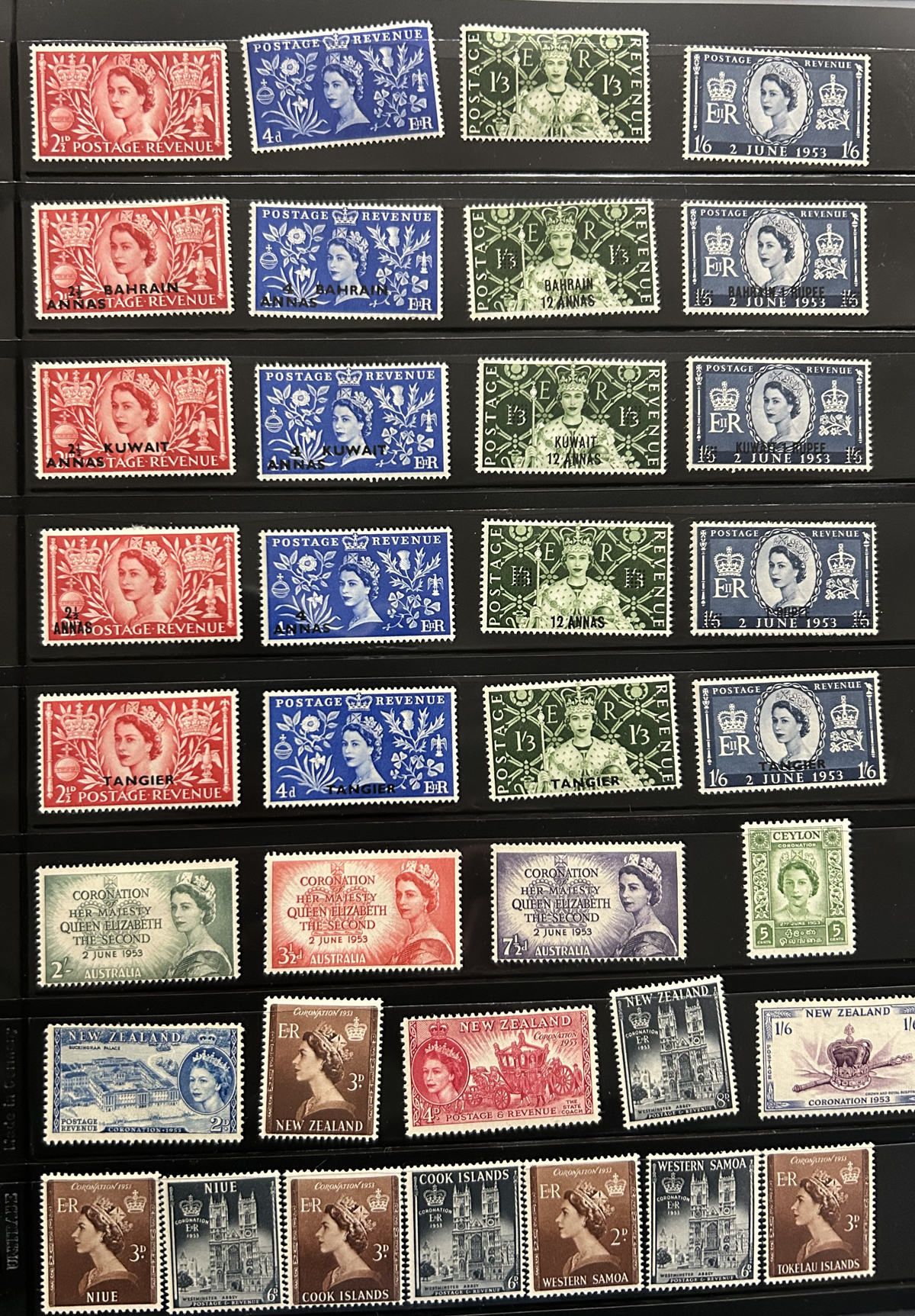 644 og/nh   imageBinder Full of Omnibus Common Design Issues, starts with what appears to be a complete collection of the 1937 Coronation (hinged onto special pages, first page has toning, rest are fine), and the rest appear to be all NH, including a group of 1951 Coronation issues, a set of 1953 Freedom from Hunger issues, a set of 1963 Red Cross Centenary issues, a set of Unesco 20th Anniversary, set of 1965 ITU, several Queen Mother issues and more. Overall fresh and very fine, pictures show a sampling. (Scan 1) (Scan 2) (Scan 3) (Scan 4) (Scan 5) (Scan 6) (Scan 7) (All Scans) (All Images)