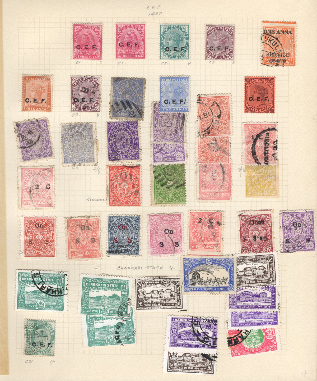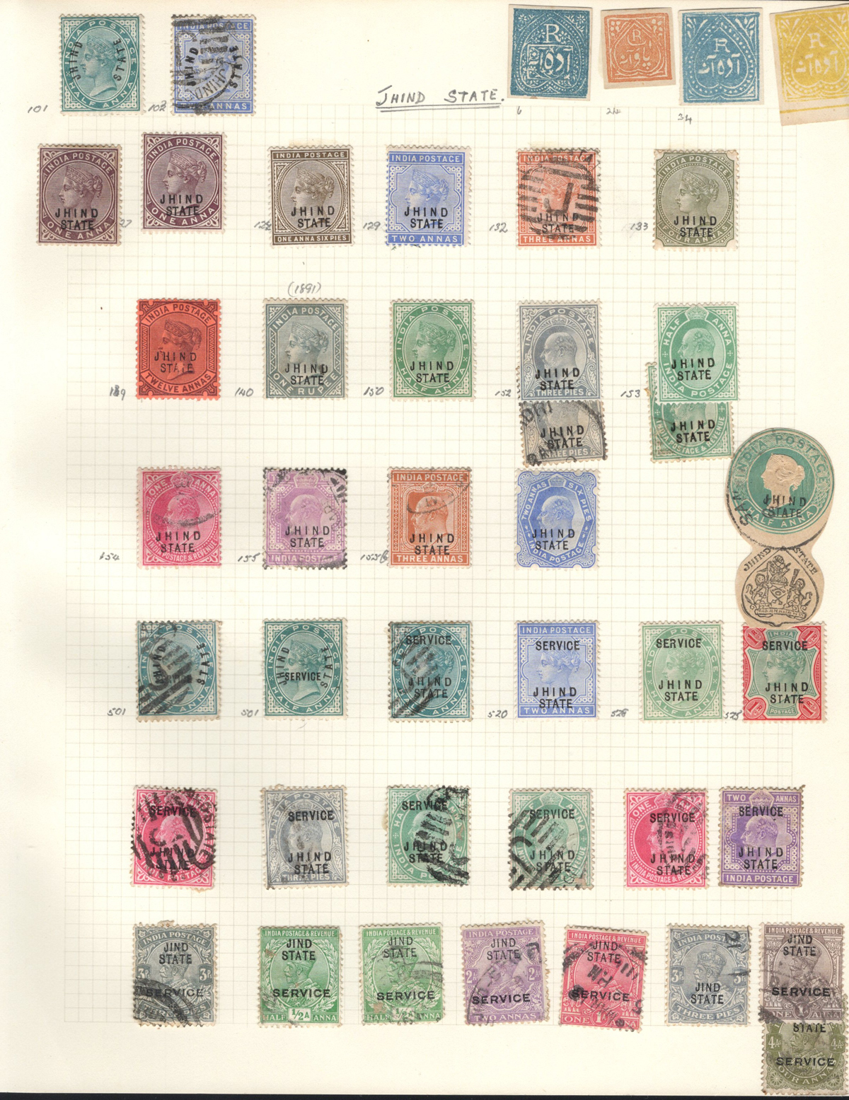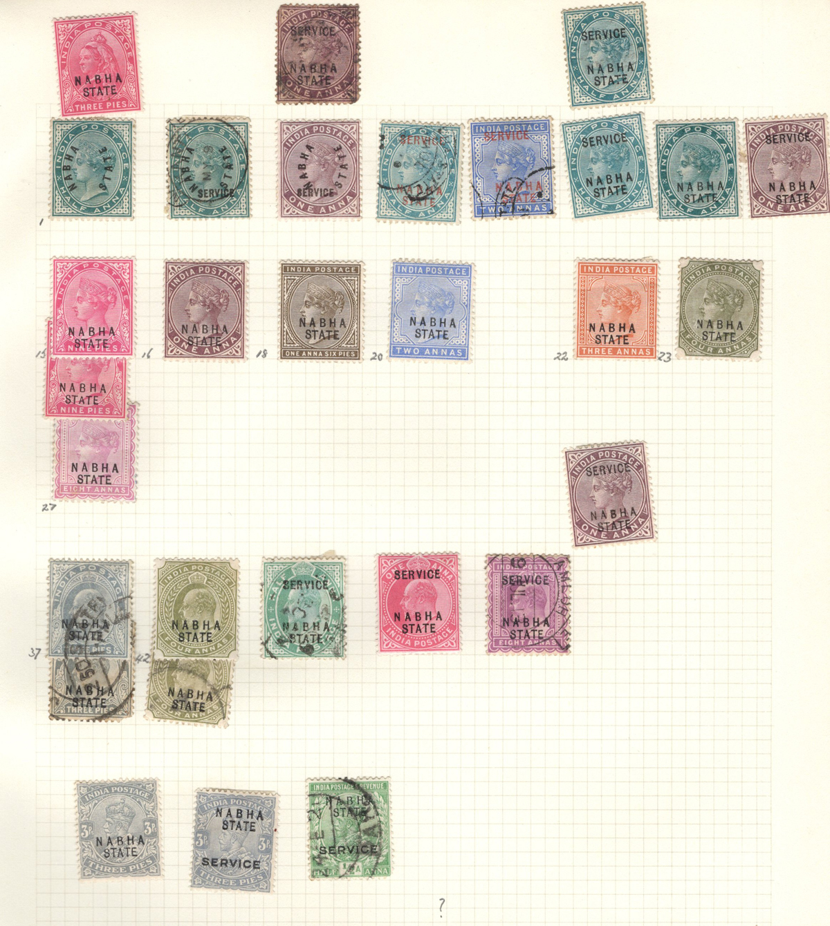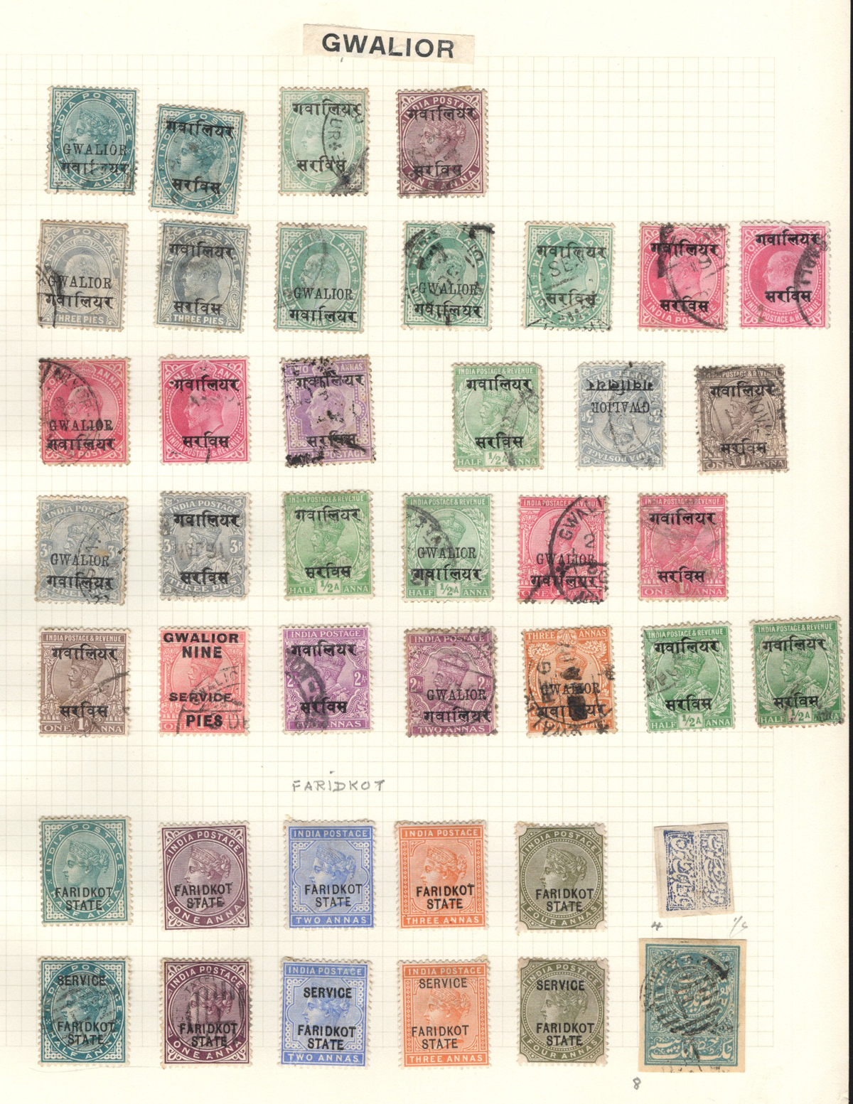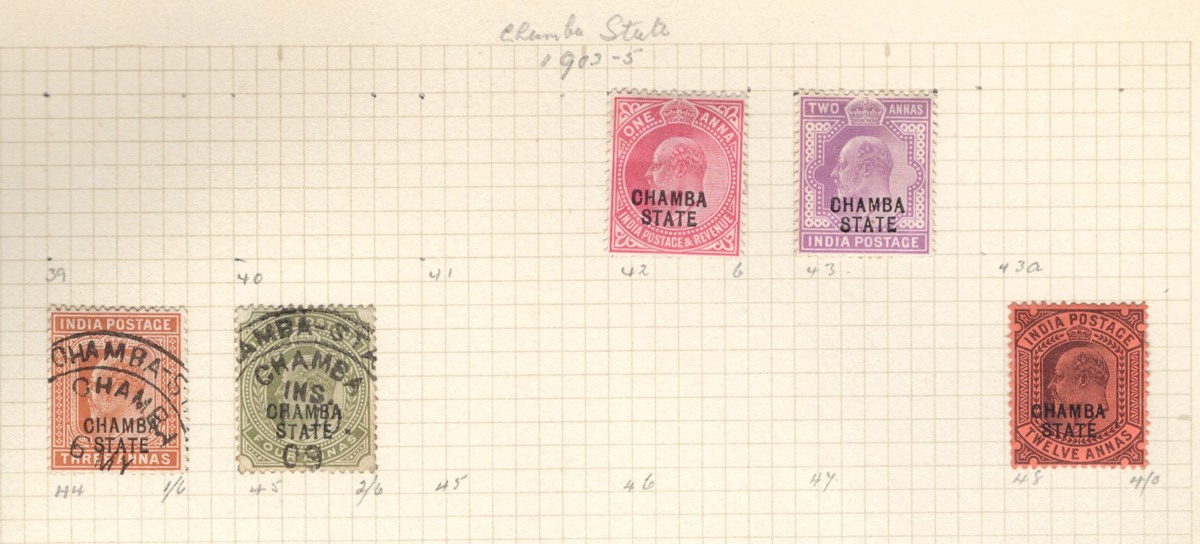 678 O/og   imageOld Time Collection of Mint and Used Indian States, with both Feudatory and Convention States, mounted on 18 quadrille pages. We noted a good variety of QV to KEVII material from several different States, with both mint and used, including many Officials and a bit of duplication. Our cursory browse through the collection revealed many $10 to $20 stamps plus higher cataloguing ones such as for example a used (very lightly cancelled) Patialla #5 ($225), mint O1 ($35), Gwalior mint #2 ($120), Jhind used #35 ($32), and more. Also includes a small group of mint C.E.F. overprints, including M9 ($30). Overall fine or better, the entire lot is scanned online. (Scan 1) (Scan 2) (Scan 3) (Scan 4) (Scan 5) (Scan 6) (Scan 7) (Scan 8) (Scan 9) (Scan 10) (Scan 11) (Scan 12) (Scan 13) (Scan 14) (Scan 15) (Scan 16) (Scan 17) (Scan 18) (All Scans) (All Images)