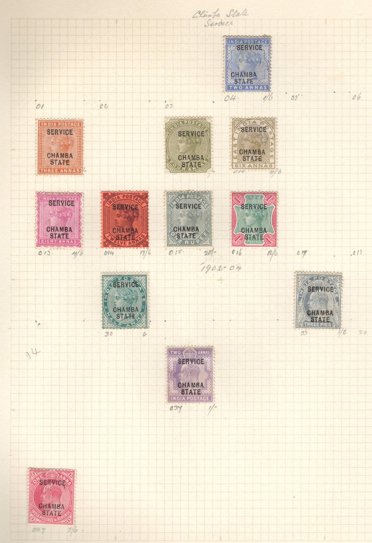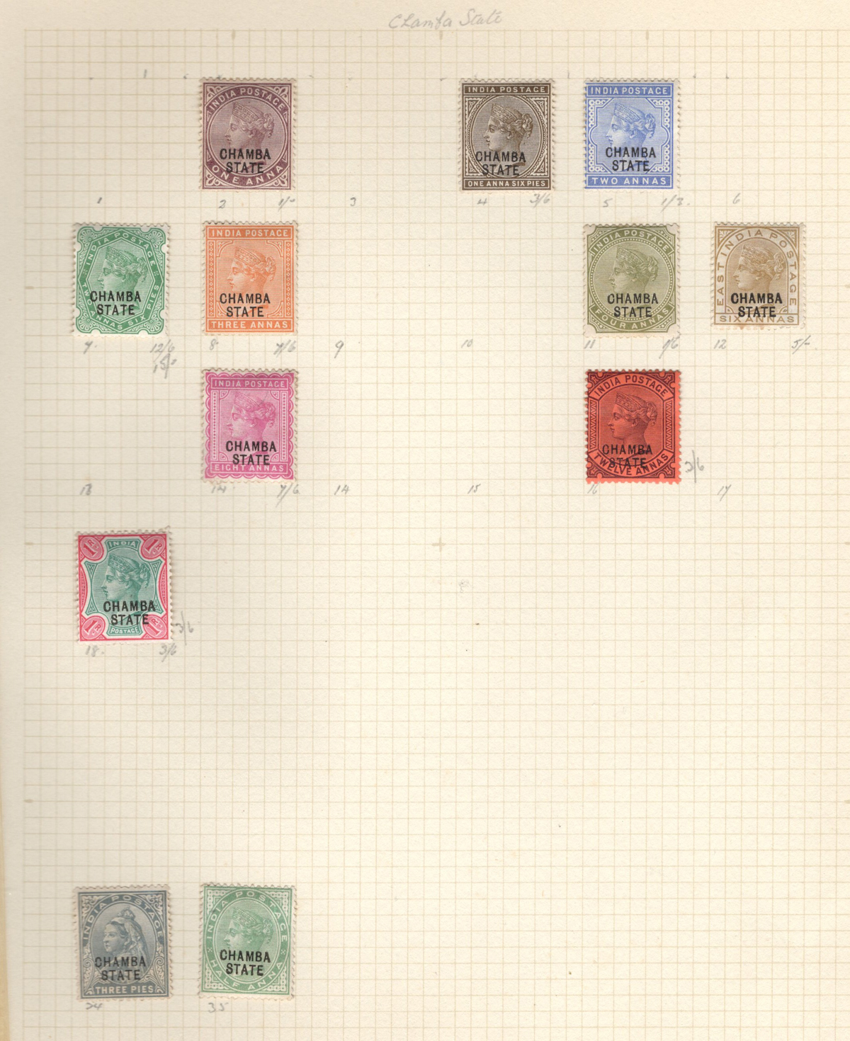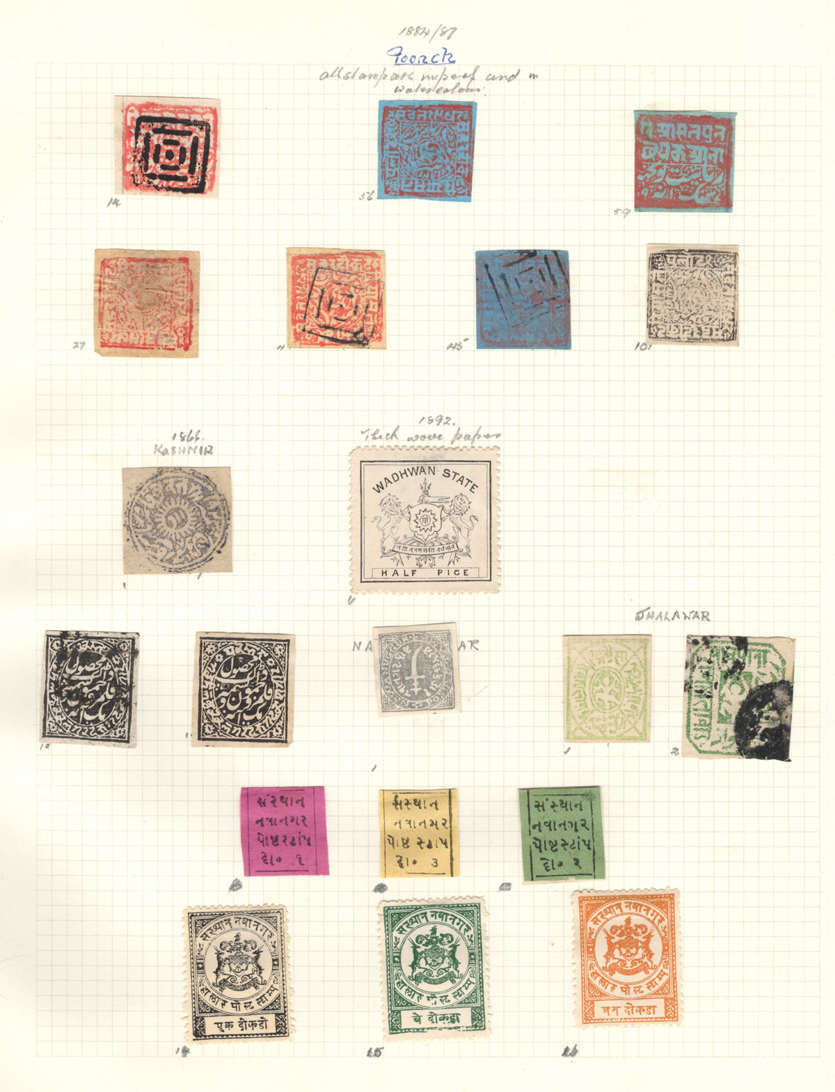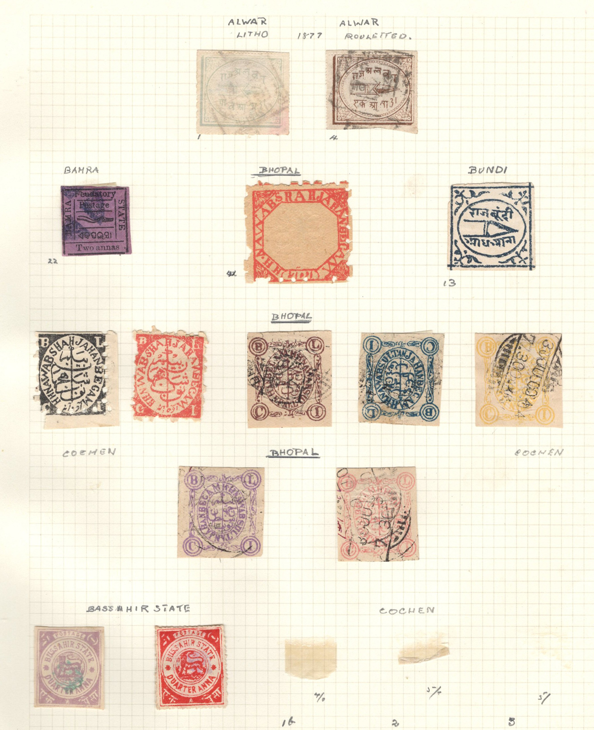 678 O/og   imageOld Time Collection of Mint and Used Indian States, with both Feudatory and Convention States, mounted on 18 quadrille pages. We noted a good variety of QV to KEVII material from several different States, with both mint and used, including many Officials and a bit of duplication. Our cursory browse through the collection revealed many $10 to $20 stamps plus higher cataloguing ones such as for example a used (very lightly cancelled) Patialla #5 ($225), mint O1 ($35), Gwalior mint #2 ($120), Jhind used #35 ($32), and more. Also includes a small group of mint C.E.F. overprints, including M9 ($30). Overall fine or better, the entire lot is scanned online. (Scan 1) (Scan 2) (Scan 3) (Scan 4) (Scan 5) (Scan 6) (Scan 7) (Scan 8) (Scan 9) (Scan 10) (Scan 11) (Scan 12) (Scan 13) (Scan 14) (Scan 15) (Scan 16) (Scan 17) (Scan 18) (All Scans) (All Images)