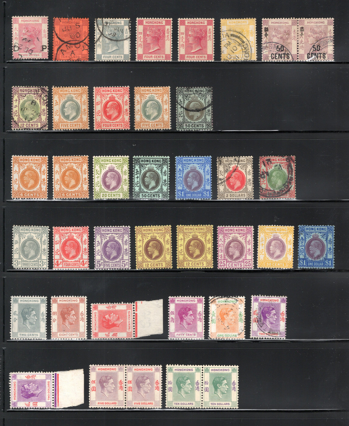 672 O/og   imageGroup of Mint and Used Early Hong Kong Issues, QV to KGVI, with a total of 39 stamps, including several better, such as Scott #s used #9 ($47), mint 119 ($47), mint 120 ($90), used 121 ($90), used 127 ($400), mint pair of 165 ($70), mint 166 pair ($700) and many more in the $10 to $40 range. Overall fresh and fine-very fine.