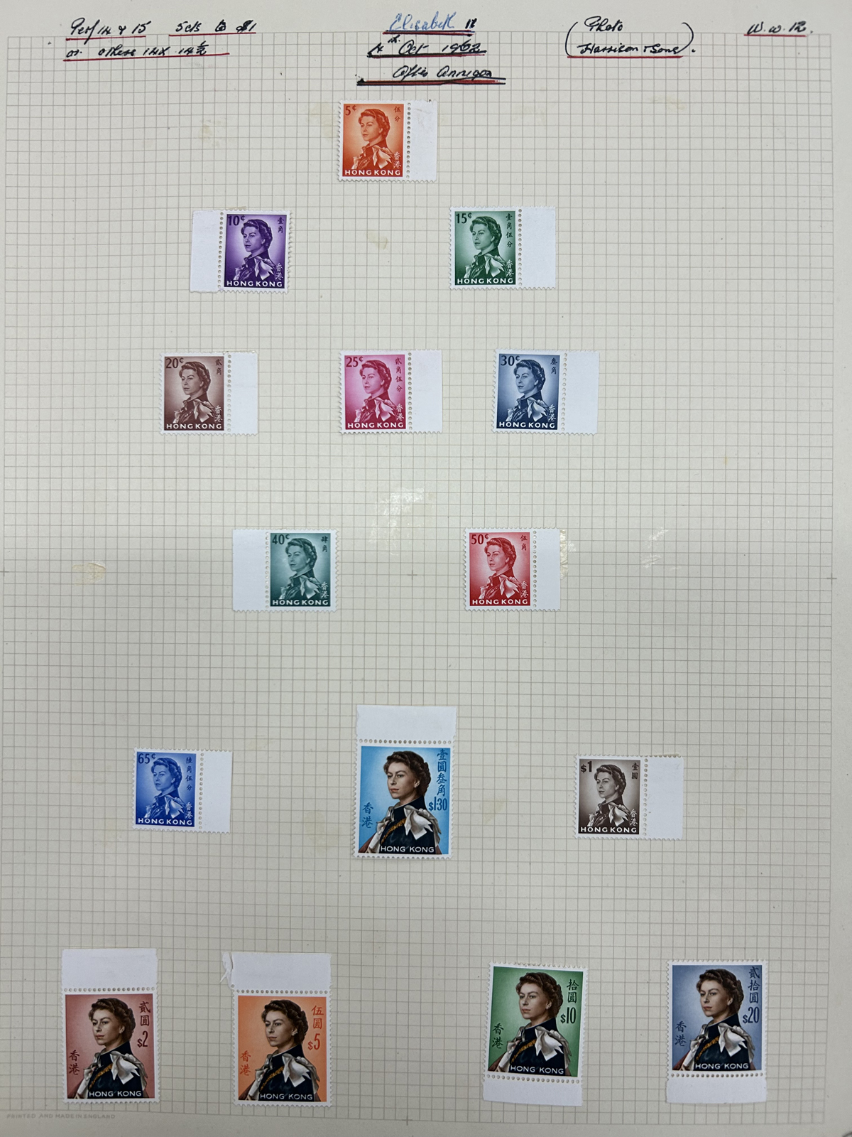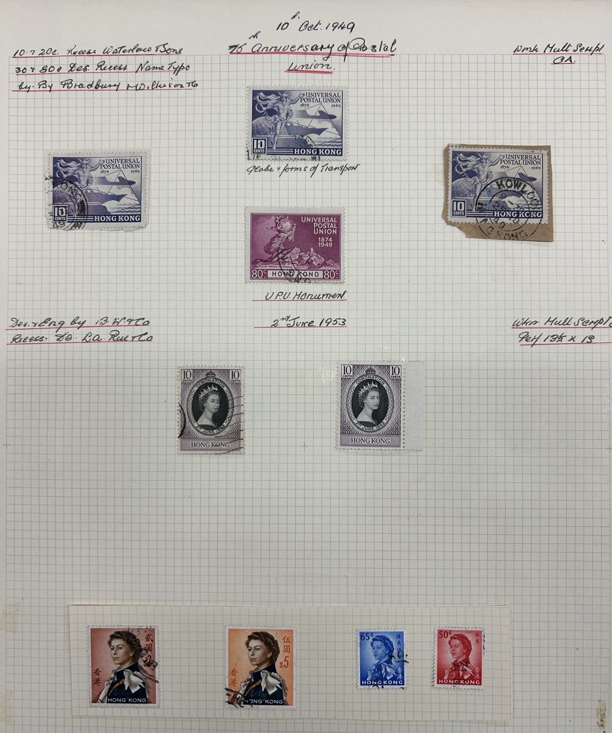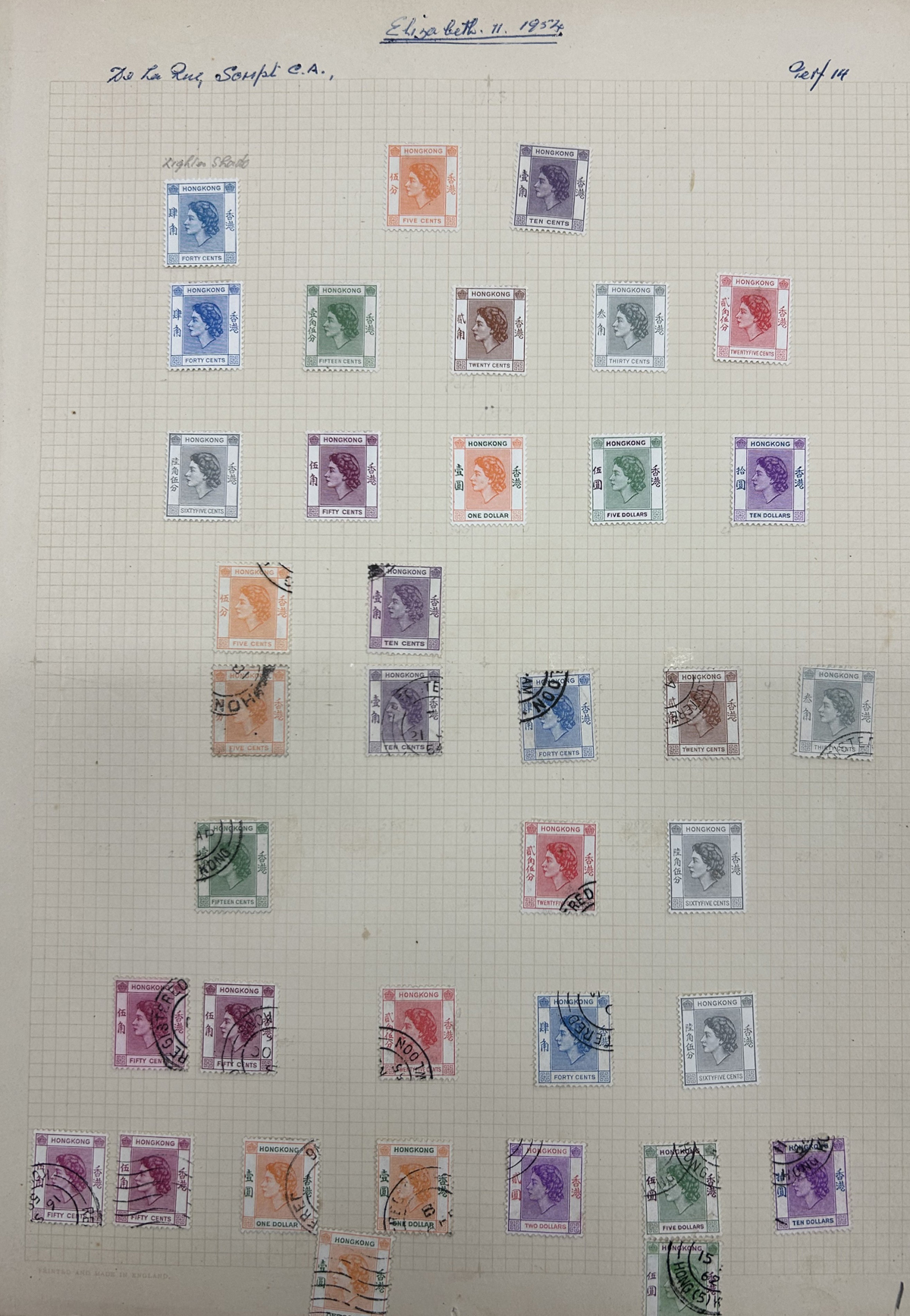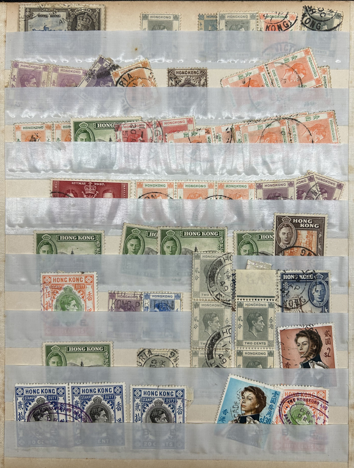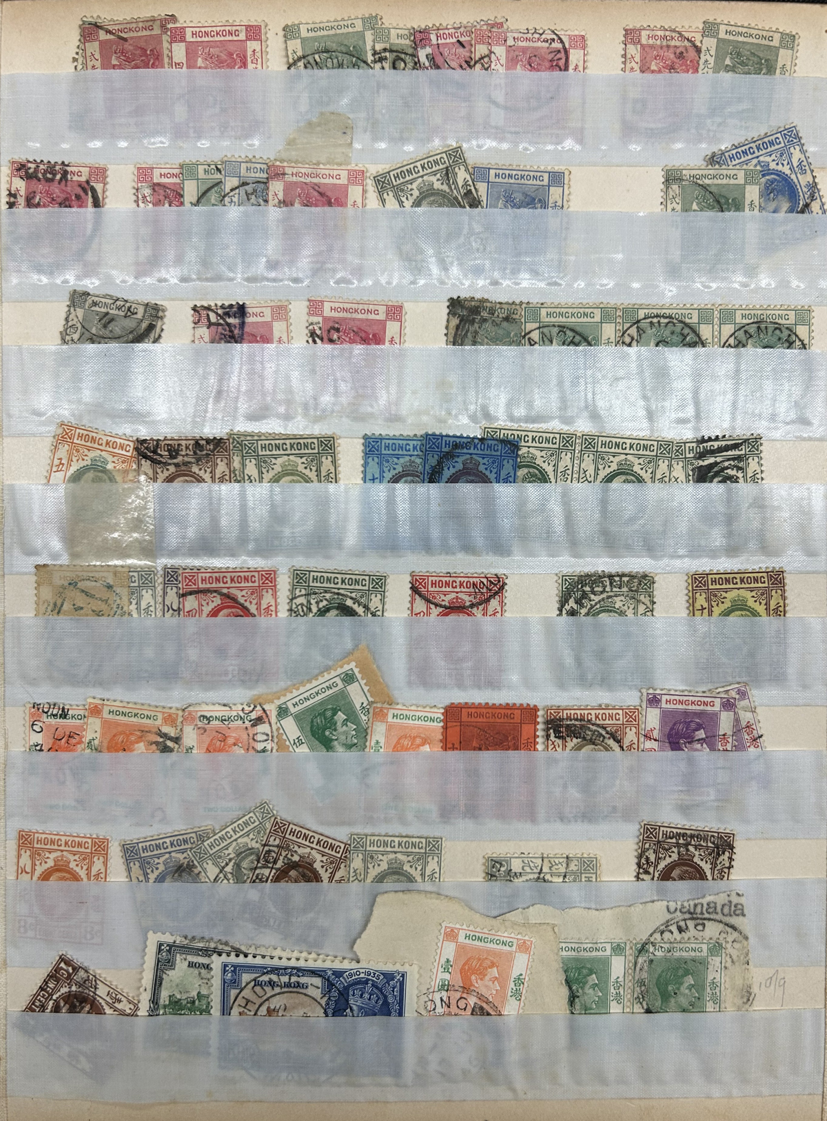 673 O/og   imageCollection / Accumulation of Mint and Used Hong Kong, QV to 1962, on 9 quadrille pages plus 4 filled stock pages. We note a good representation of issues from QV, all three Kings up to early QEII, noting many high denominations (noted KGV and KGVI to the $5) with many nice postmarks, several mint scattered throughout (incl. one page with QV to KGVI mint blocks / multiples), a page with a mint set of #s 203-217 and much more. Also includes 4 stuffed pages of mostly used stamps in the same QV to QEII range, with duplication, but also blocks, multiples, nice postmarks, etc. The entire lot is scanned online, so please have a close look, as there are potentially many high value items in here (a quick glance revealed several $50 to $100 items). Overall fine or better, and well worth our low estimate. (Scan 1) (Scan 2) (Scan 3) (Scan 4) (Scan 5) (Scan 6) (Scan 7) (Scan 8) (Scan 9) (Scan 10) (Scan 11) (Scan 12) (Scan 13) (All Scans) (All Images)