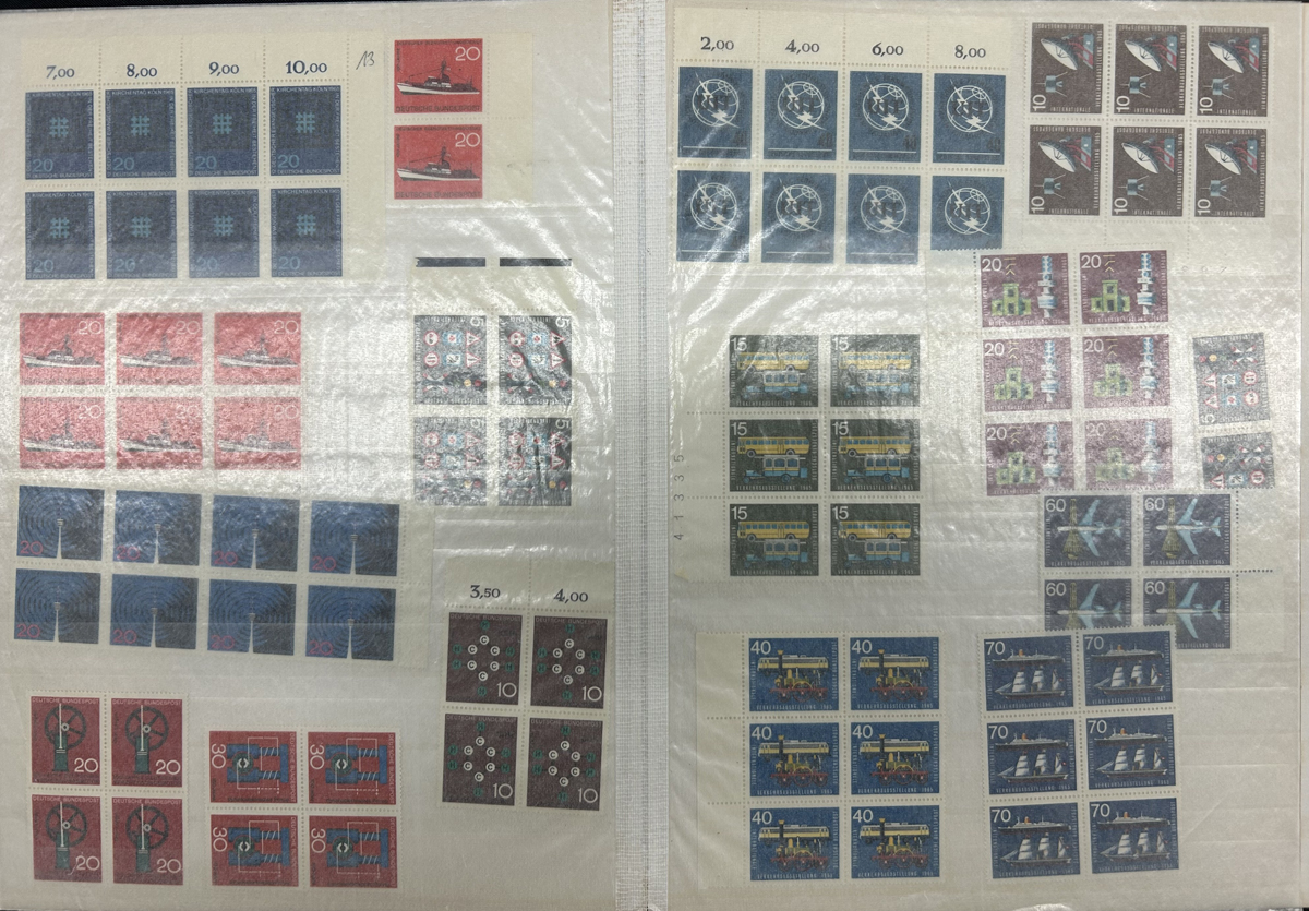 664 O/og/nh   imageCollection of Mint and Used Germany and Area, to the 1960s, a binder contains an old time duplicated collection mounted on about 75 quadrille pages with Germany from the 1870s to 1950s, with a mix of mint and used singles and sets, including back of the book. Also saw some Moravia & Bohemia, East Germany, and more, including over 75 commercial and FD covers (all stapled to the pages). A 14-page stockbook is filled with mint never hinged blocks of four of German stamps from the 1960s, and also includes an envelope of odds and ends including a Hitler souvenir sheet, a glassine full of semi-postal War time never hinged sets, and more. (Scan 1) (Scan 2) (Scan 3) (Scan 4) (Scan 5) (Scan 6) (Scan 7) (Scan 8) (Scan 9) (All Scans) (All Images)