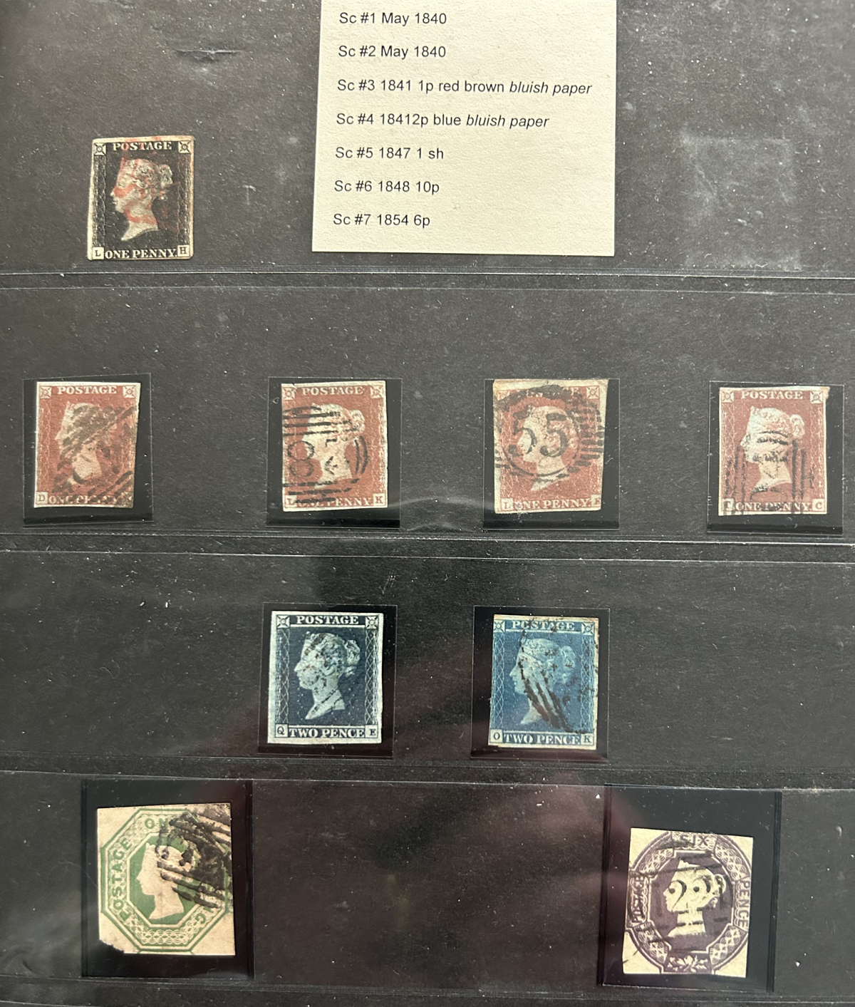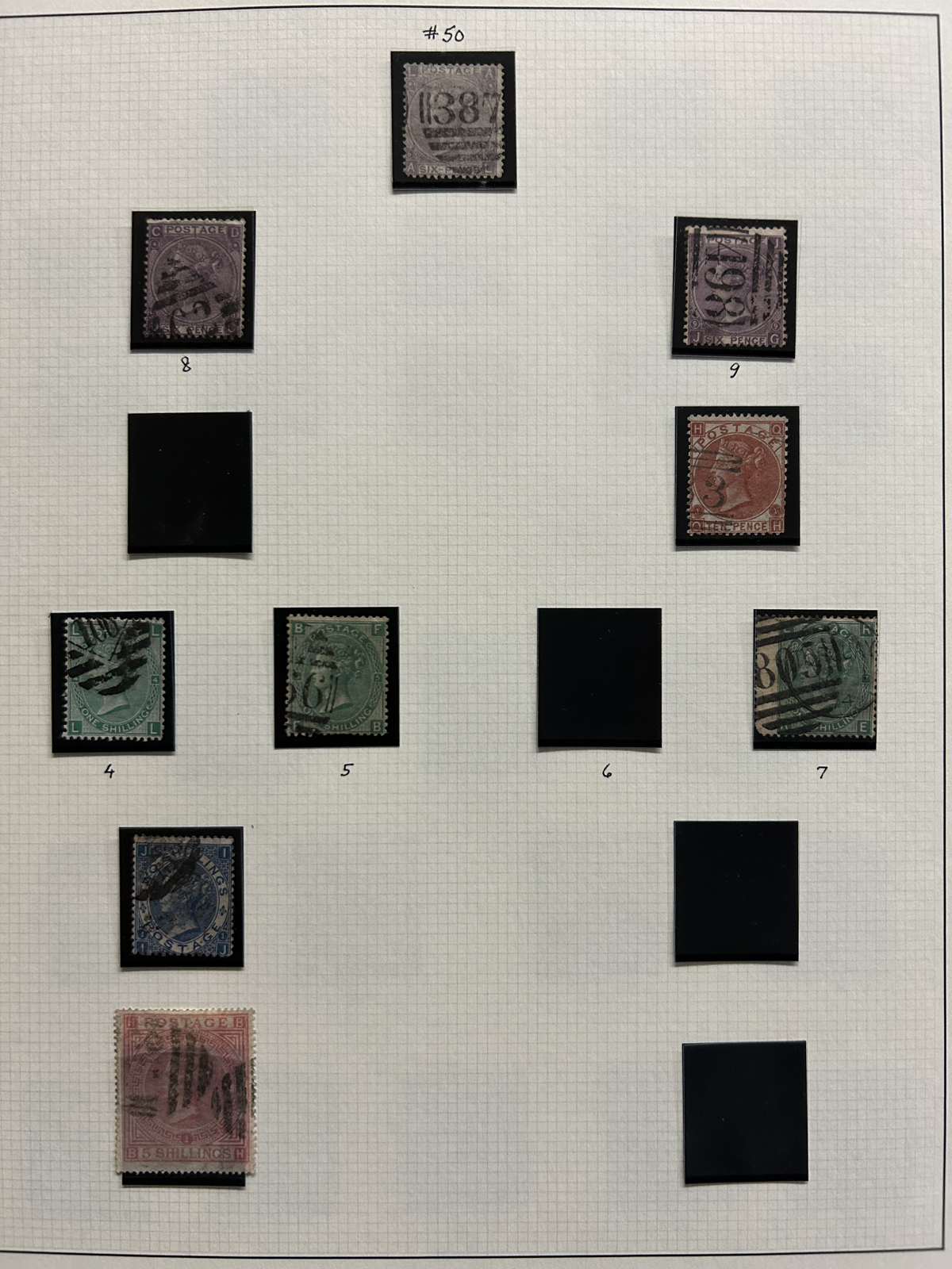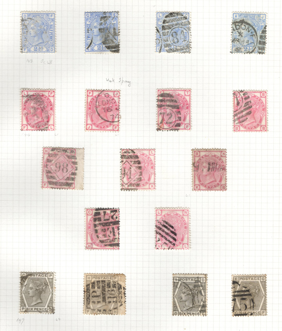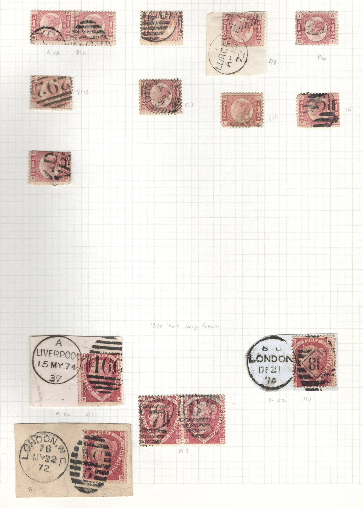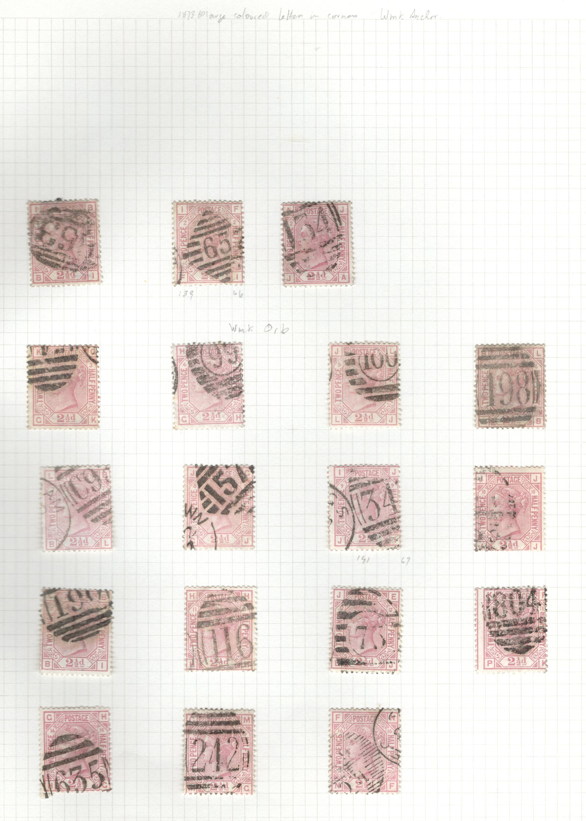 669 O 1/126 imageValuable and Extensive Collection of Queen Victoria Issues, 1840 to 1900, all displayed on 22 quadrille pages. Starts off with 5 Penny Blacks ($375 each), 17 imperforate Penny Reds with Maltese Cross cancels ($977 total), 12 imperforate 2d blue 1841 issues (with varieties, a pair, a strip of three), 9 perforated Penny Reds (incl. 2 pairs, a few perf. 16, etc.), 2 pages (12 stamps) of the perforated 2d blue issues (incl. at least one perf. 16), and the following Scott #s: 22 ($500), 24 ($625), 25 ($600), 26 (x4, $175 each), 27 (x3 shades, $140 each), 28 (x3, $400 each), 32 (x5, chosen for dated town cancels, $80 each), 34 (x3, $150 each), 37 ($375), 39 (x4, $160 each), 40 (x2, $550 each), 42 ($350), 43 (x4, $62 each), 44 ($275), 45 (x3, $160), 46 ($700), 48 (x3, $325 each), 49 (x5, with diff. plate #s, $477 total), 50 (x2, $210 each), 51 (x3, with plates 8 and 9, $430 total), 52 (x2, $350 each), 53 (x2, $475 each), 54 (x4, plates 4 to 7, $285 total), 55 ($260), 57 (x2, $775 each), 58 (x10, with at least 7 diff. plates), 59 (x4, $75 each), 60 (x2, $350 each), 61 (x9, plates 11 to 20, $905 total), 62 (x4, plates 13 to 16, $420 total), 64 (x6, plates 8 to 13, $1,155 total), 65 ($650), 66 (x3, $140 each), 67 (x15, plates 3 to 16, $1,575 total), 68 (x4, plates 17 to 20, $282 total), 69 ($550), 70 (x2, plates 15, 16, $725 total), 71 ($575), 73 (x2, $400 each), 74 ($3,750), 78 (x2), 79, 80, 81 (x2, $140 each), 82 (x5, plates 21 and 22, $262 total), 83 (x2, plates 20 and 21, $290 total), 84 (x2, plates 17 and 18, $180 total), 85 ($200), 86 (x3, plates 17 and 18, $277 total), 87 (x2, plates 13 and 14, $400 total), 88 (x3, $52 each), 89 (x3), 94 (x3, $185 each), 96 ($185), 98, 99 ($52), 100 ($92), 101, 102 (x2, $115 each), 103 (x2, $245 each), 104 ($245), 105 (x2 $280 each), 107 ($380), 108 (x3, $290 each), 109 (x3, $615 each), and 111-122 (set, plus extras, $751 total). A clean collection, with many better cancels (incl. c.d.s.) and better stamps (as noted above), also useful for its shades and different plate numbers, and more. Scott catalogue value approaches the U$40,000 mark, overall fine or better, and generally better quality than is often seen. All pages scanned online. (Scan 1) (Scan 2) (Scan 3) (Scan 4) (Scan 5) (Scan 6) (Scan 7) (Scan 8) (Scan 9) (Scan 10) (Scan 11) (Scan 12) (Scan 13) (Scan 14) (Scan 15) (Scan 16) (Scan 17) (Scan 18) (Scan 19) (Scan 20) (Scan 21) (All Scans) (All Images)