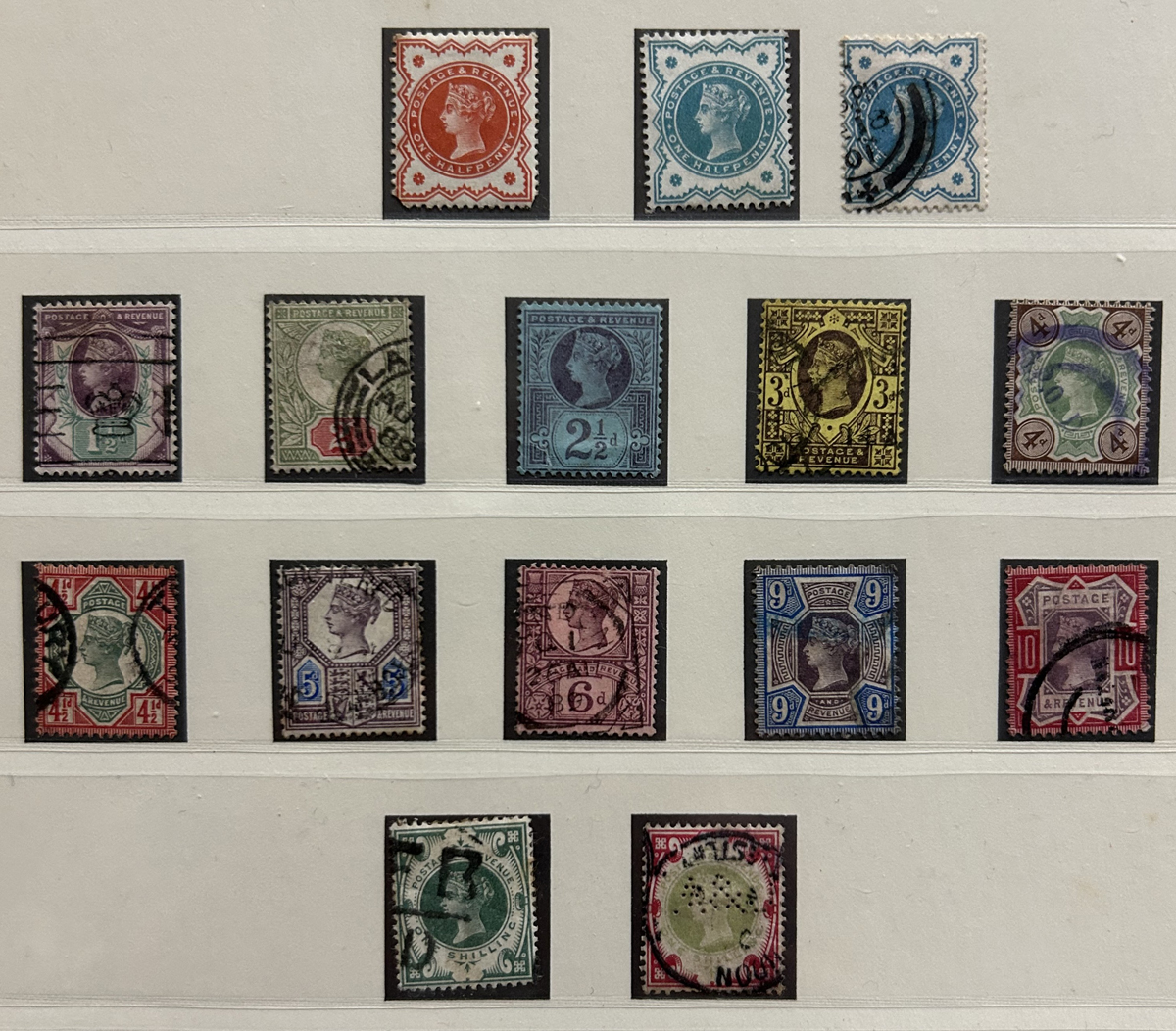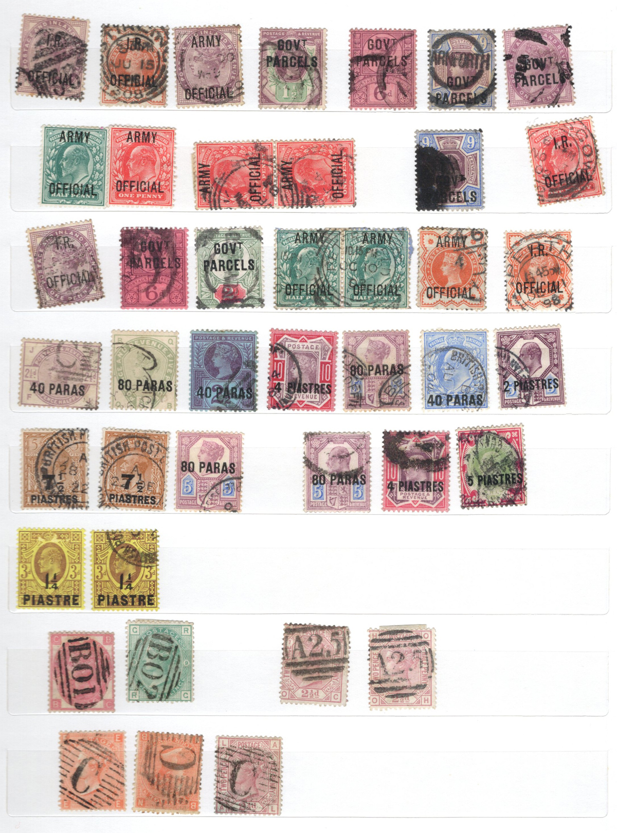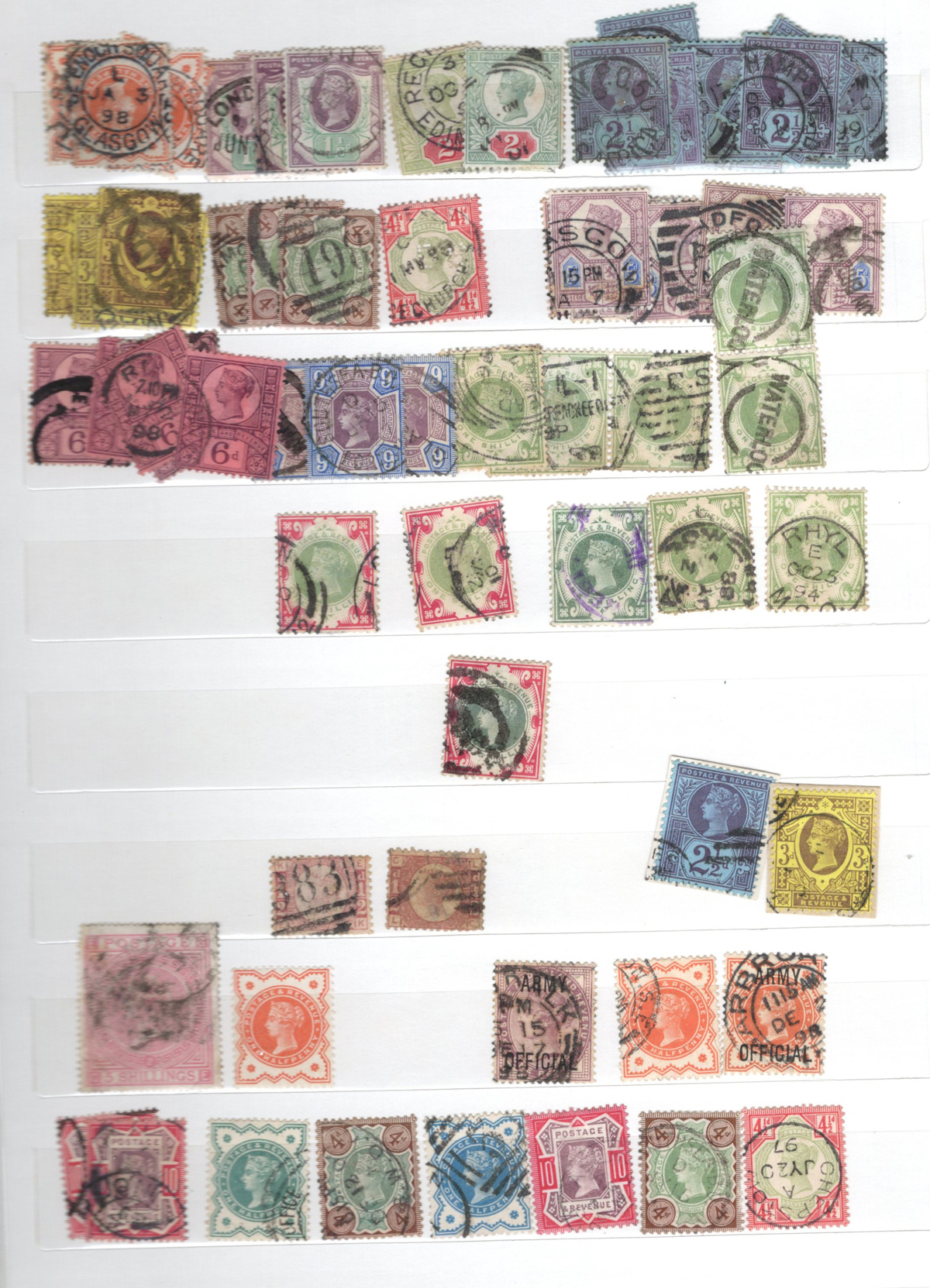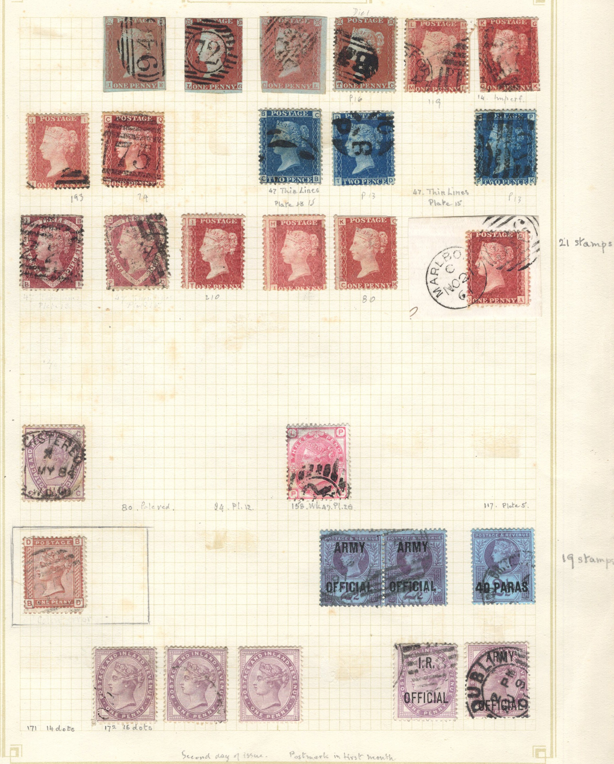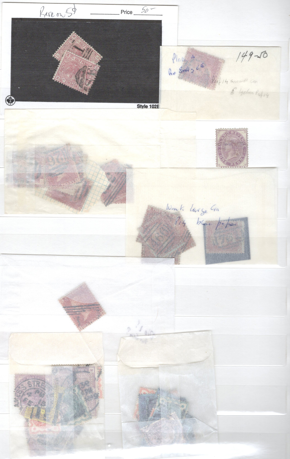 665 O/og   imageOld Time Holding of Mostly Queen Victoria to King George V Issues, all in a stockbook plus two collections on pages. The stockbook contains a mostly jumbled mix of material, with many valuable items such as a page containing early QV items including a nice embossed 6d stamp, etc. Also saw the 2sh6d QV issues (x9 used, several with nice postmarks), the 5sh QV (x2), a page of Officials and QV stamps postmarked or overprinted for use elsewhere, a page containing 4 pieces with QV stamps postmarked in 1899 "F.P.O. British Army Africa", 2 pages of mint and used early Postage Dues, as well as numerous other QV to KGV duplicated material. A high catalogue value in this stockbook. Also two very old collections that have been picked but still contain useful material, mostly QV to KGV, noting several imperforate Penny Reds, a plating exercise for the perforated Penny Red issue (missing 175 and 225) and much more. Quality varies drastically (especially in one of the old collections) still a great number of sound, useful and valuable stamps throughout. Our photos only show part of the lot, should easily be worth our low estimate. (Scan 1) (Scan 2) (Scan 3) (Scan 4) (Scan 5) (Scan 6) (Scan 7) (Scan 8) (Scan 9) (Scan 10) (Scan 11) (Scan 12) (Scan 13) (Scan 14) (Scan 15) (Scan 16) (Scan 17) (Scan 18) (All Scans) (All Images)