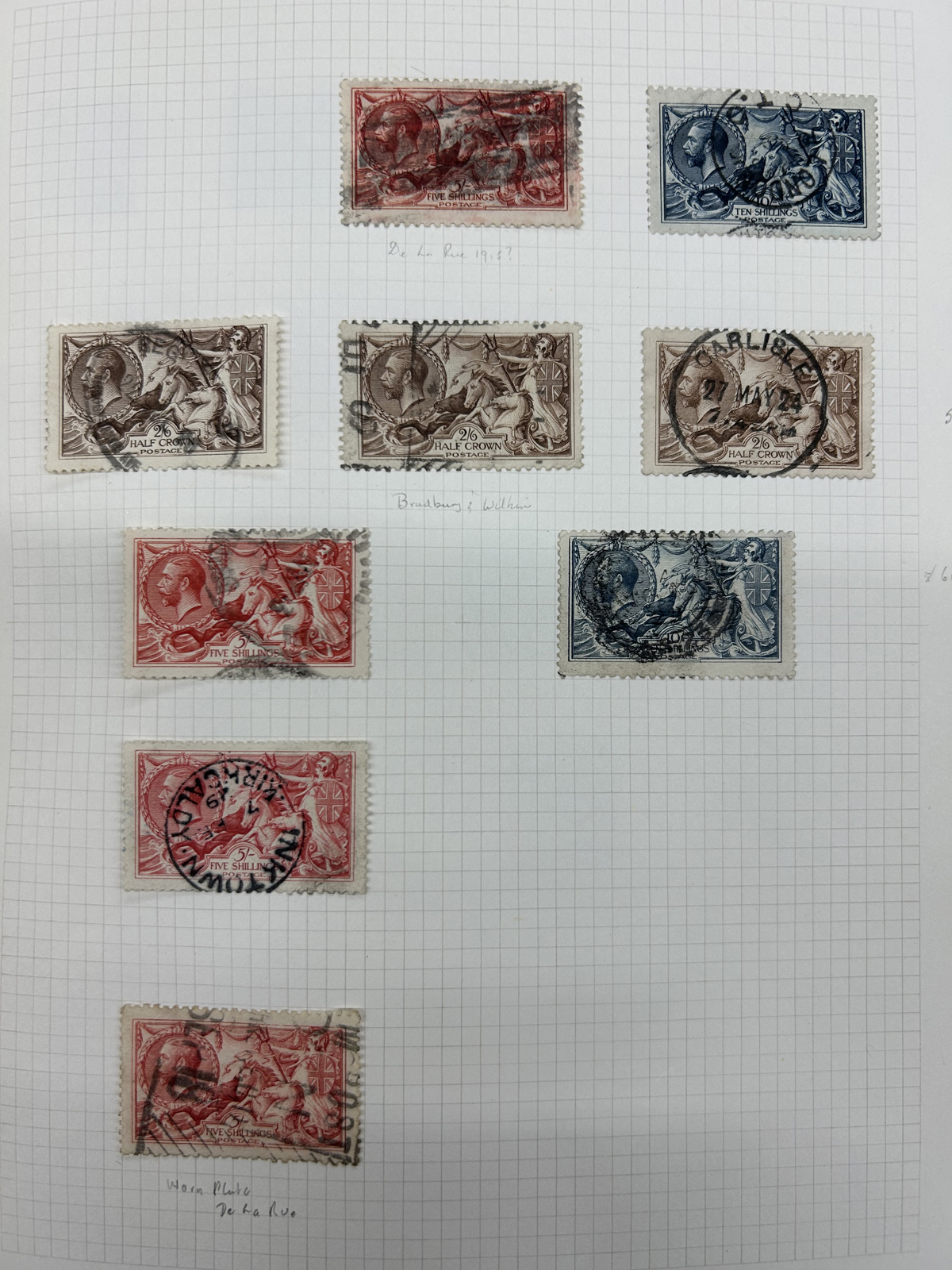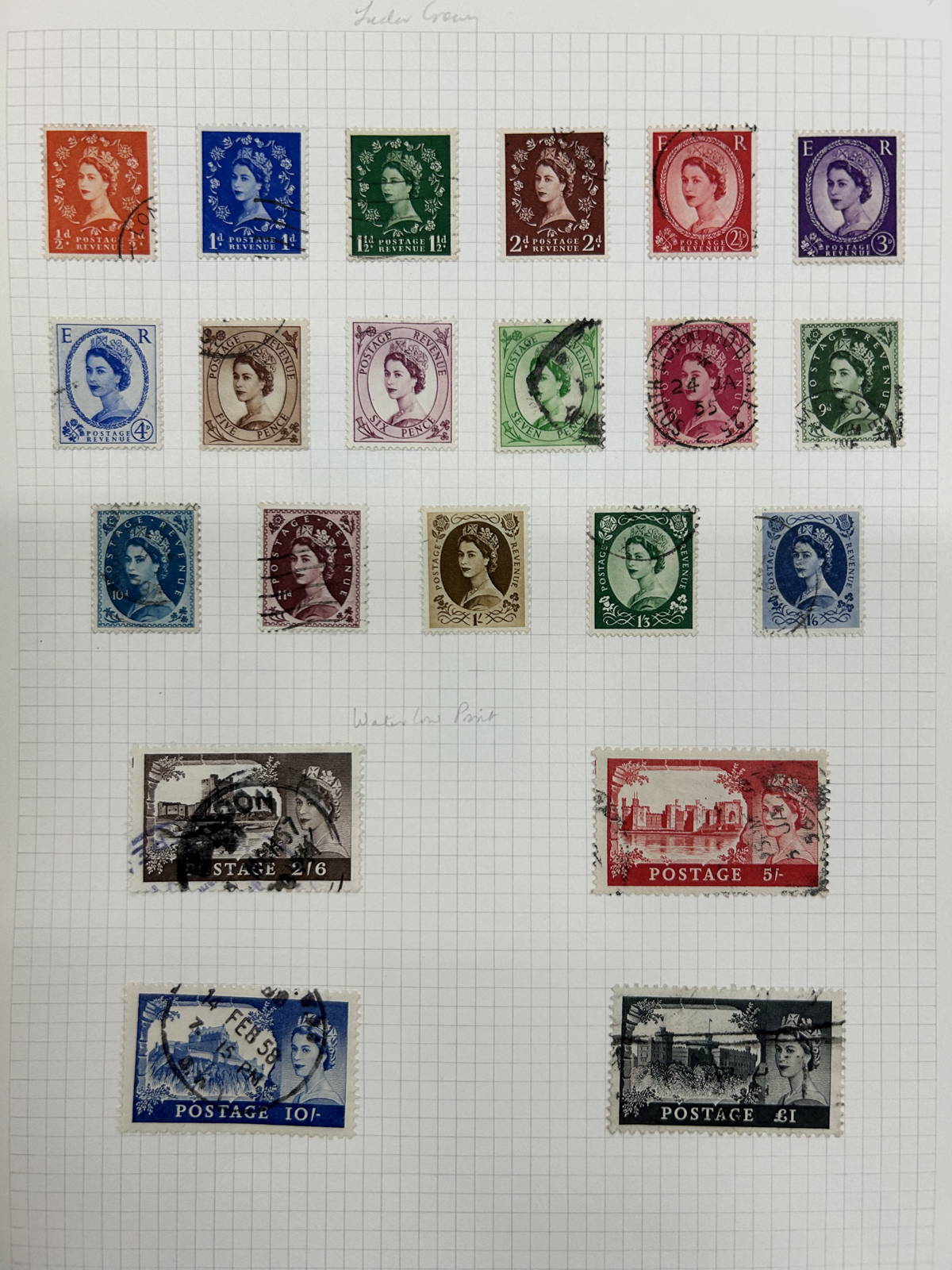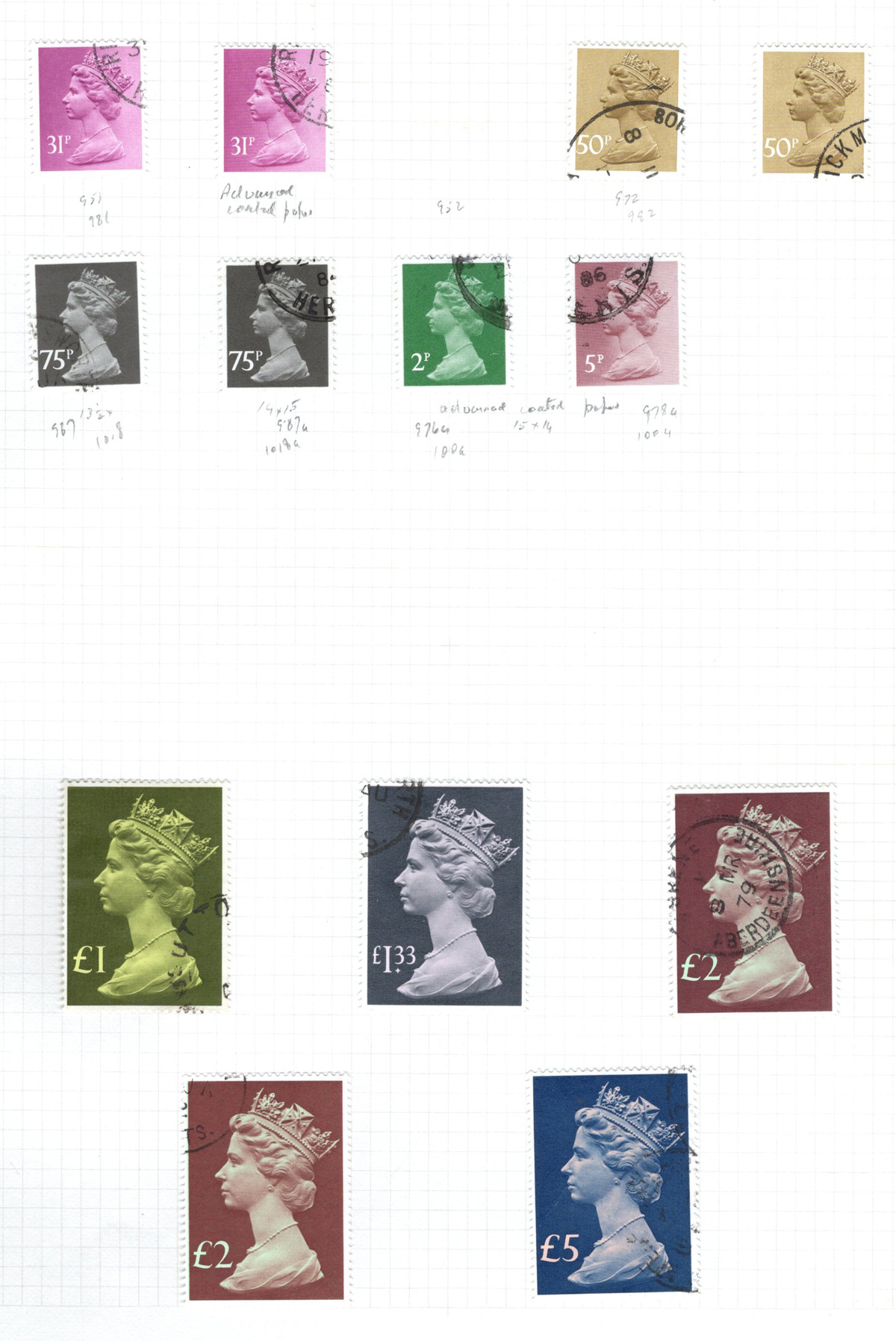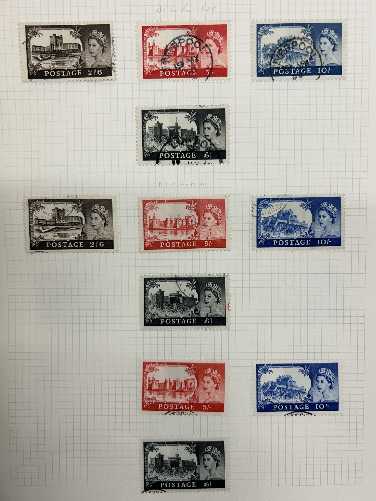 667 O/og/nh   imageCollection of Used Great Britain, KGV to the 1990s, neatly displayed on quadrille pages filling two S.G. Springback albums. King George V (incl. some Seahorses) issues fill 12 pages with shades, different printings, etc. KGVI is just as extensive and mostly complete, as well as QEII issues to the end and includes all the Castles, several souvenir sheets or se-tenant blocks, but no Machins. A very clean collection, with mostly choice cancels and good quality throughout. The lot is accompanied by mint and used filling dozens of glassines, a small stockbook and a stock page, noting several high denomination KGVI issues to the £ (mint, Scott c.v. $467 alone) as well as many KGV and KEVII issues with some watermark varieties, shades, etc. Well worth a close look as there should be good value in there. Overall fine or better, our photos only show a small portion of the lot. (Scan 1) (Scan 2) (Scan 3) (Scan 4) (Scan 5) (Scan 6) (Scan 7) (Scan 8) (Scan 9) (Scan 10) (Scan 11) (Scan 12) (Scan 13) (Scan 14) (Scan 15) (All Scans) (All Images)