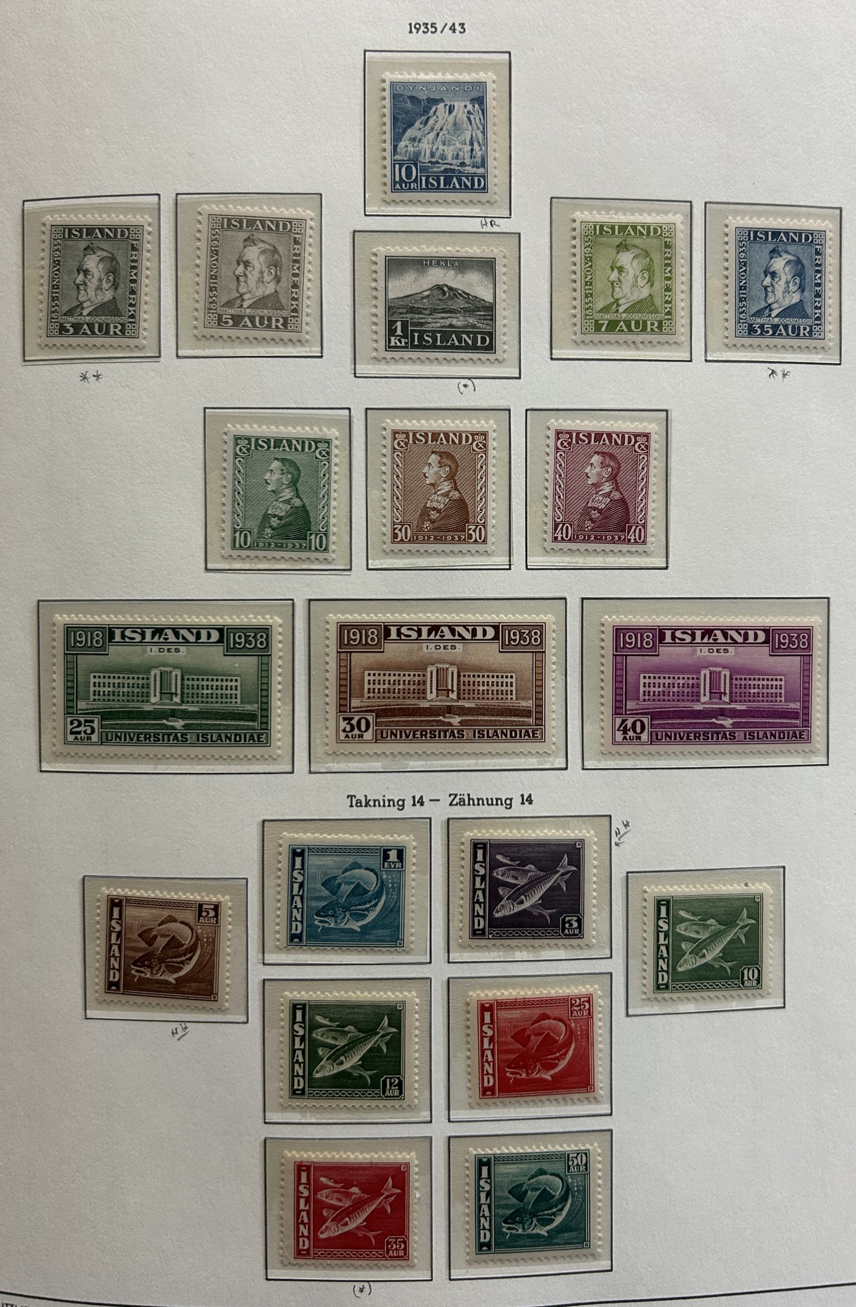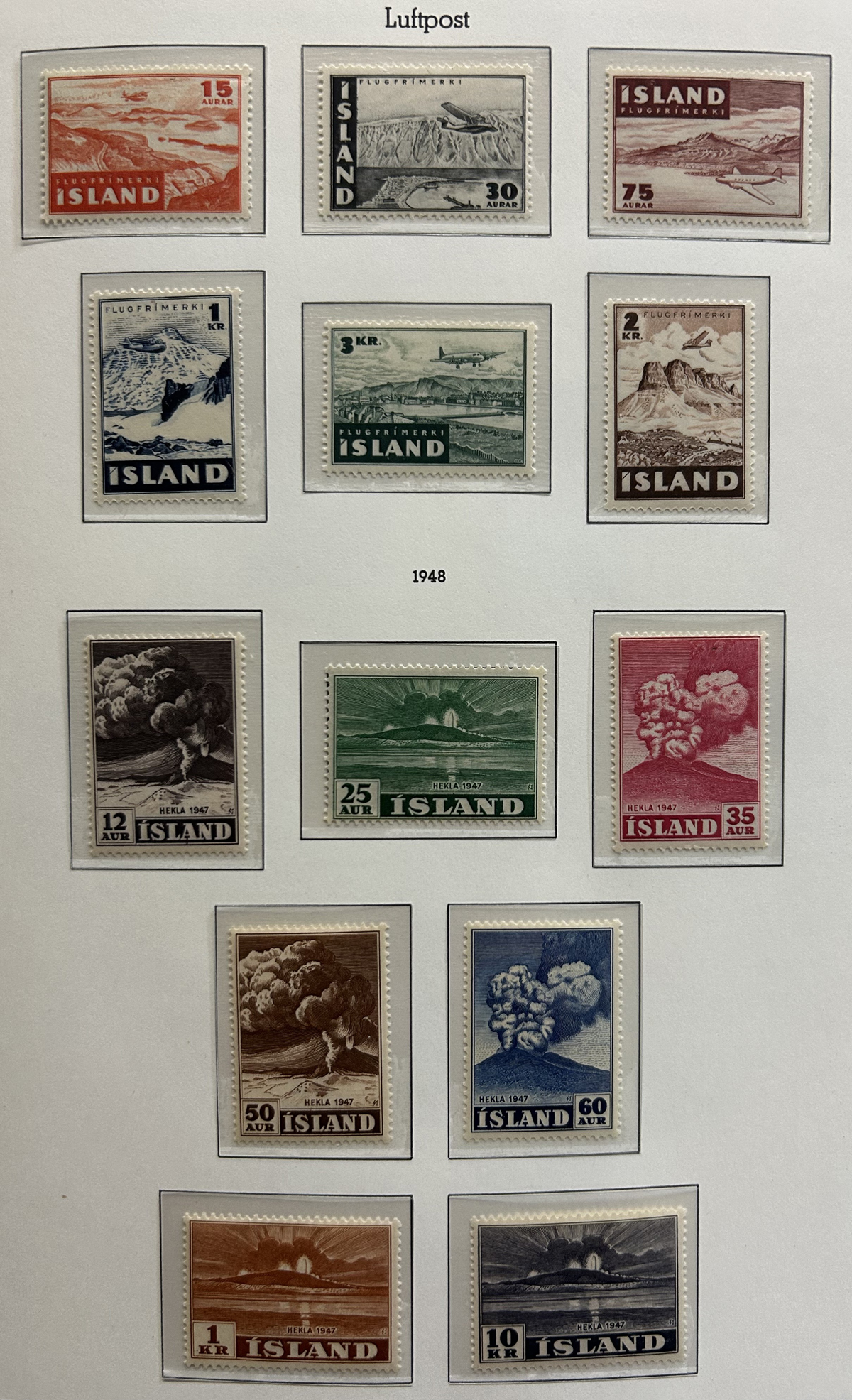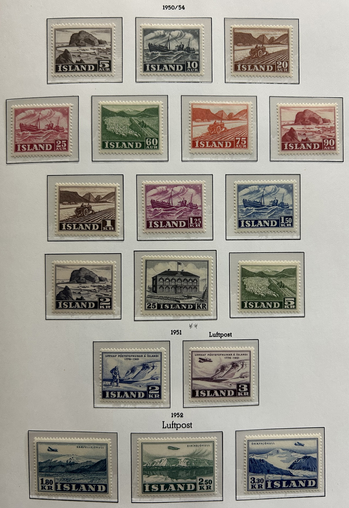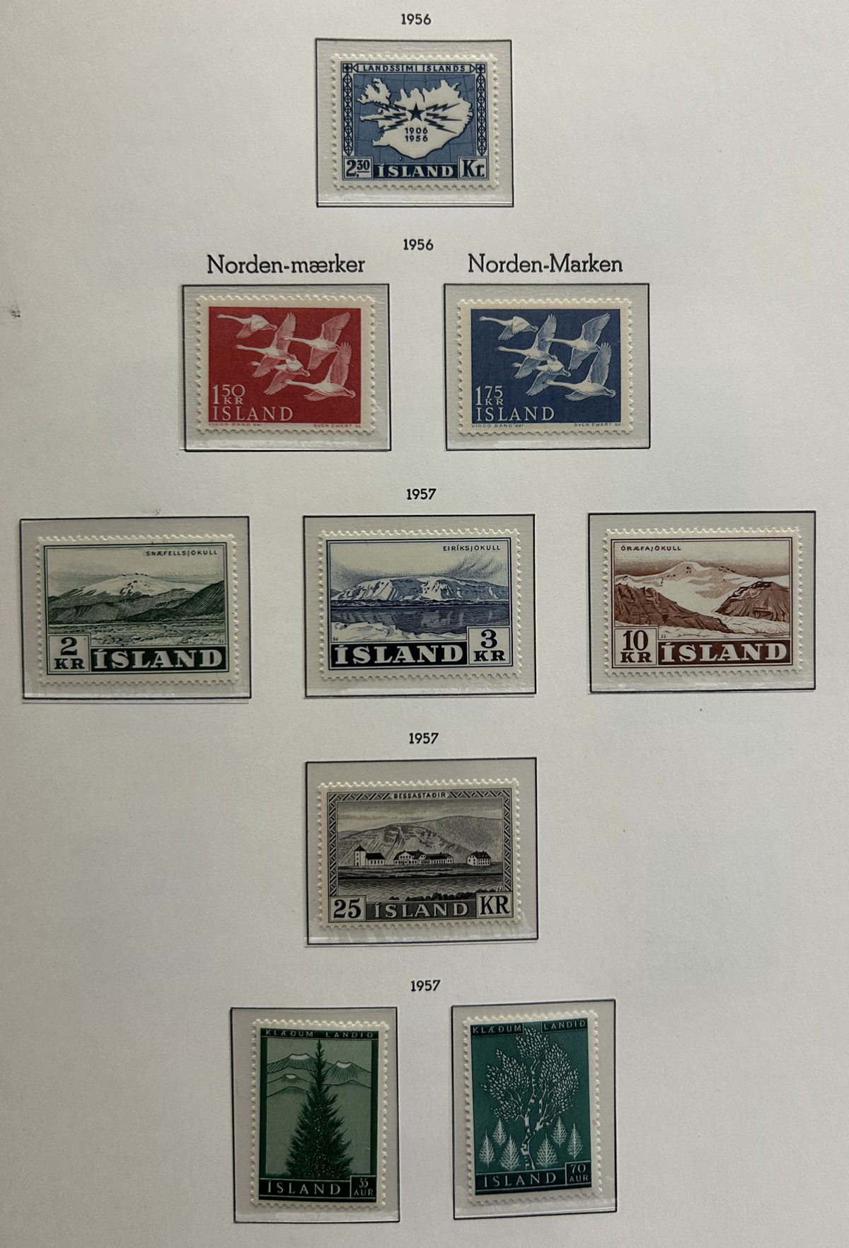 675 og/nh   imageCollection of Mint Iceland in Two Lighthouse Hingeless Albums, 1902 to 2023, complete from 1935 (Scott #193) to 2023 (#1531) including back of the book and all souvenir sheets. From 1902 to 1935 the collection has #s 34-44B ($299), 99-107 ($408), 152-166 ($372), B1-4 ($14), C1-2 ($60), C3 ($52), C4-8 ($246), C9-11 ($179), C15-20 (with a few perf varieties, $213) and CO1 ($25). Up to about 1960 there is a mix of lightly hinged and never hinged, and from 1960 to the end it is assumed everything is never hinged (spot checked a large sampling). We counted the catalogue value up to 1970 only, which comes to U$3,775 plus there is a very good additional value from 1971 to the end. Excellent and fresh condition throughout, generally fine to very fine and not often offered, especially so complete. (Scan 1) (Scan 2) (Scan 3) (Scan 4) (Scan 5) (Scan 6) (Scan 7) (Scan 8) (Scan 9) (Scan 10) (Scan 11) (Scan 12) (Scan 13) (Scan 14) (Scan 15) (Scan 16) (Scan 17) (All Scans) (All Images)