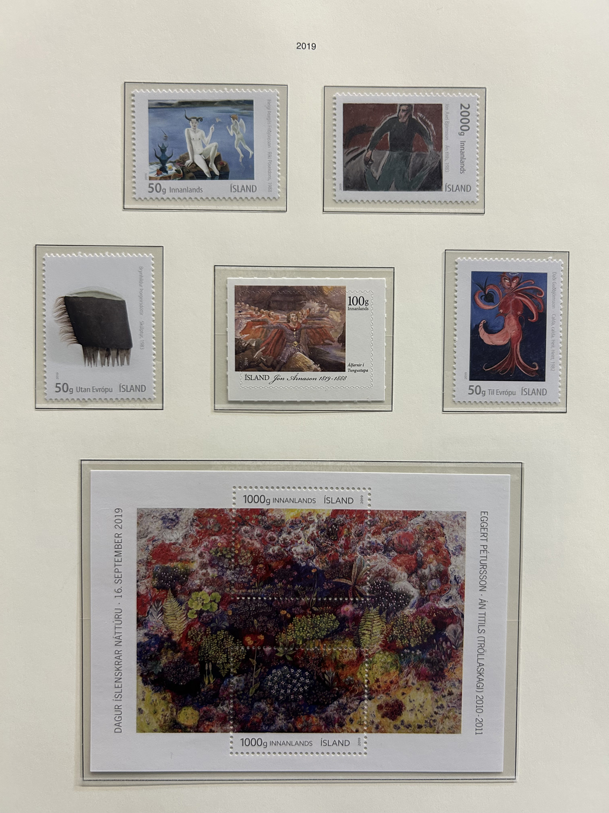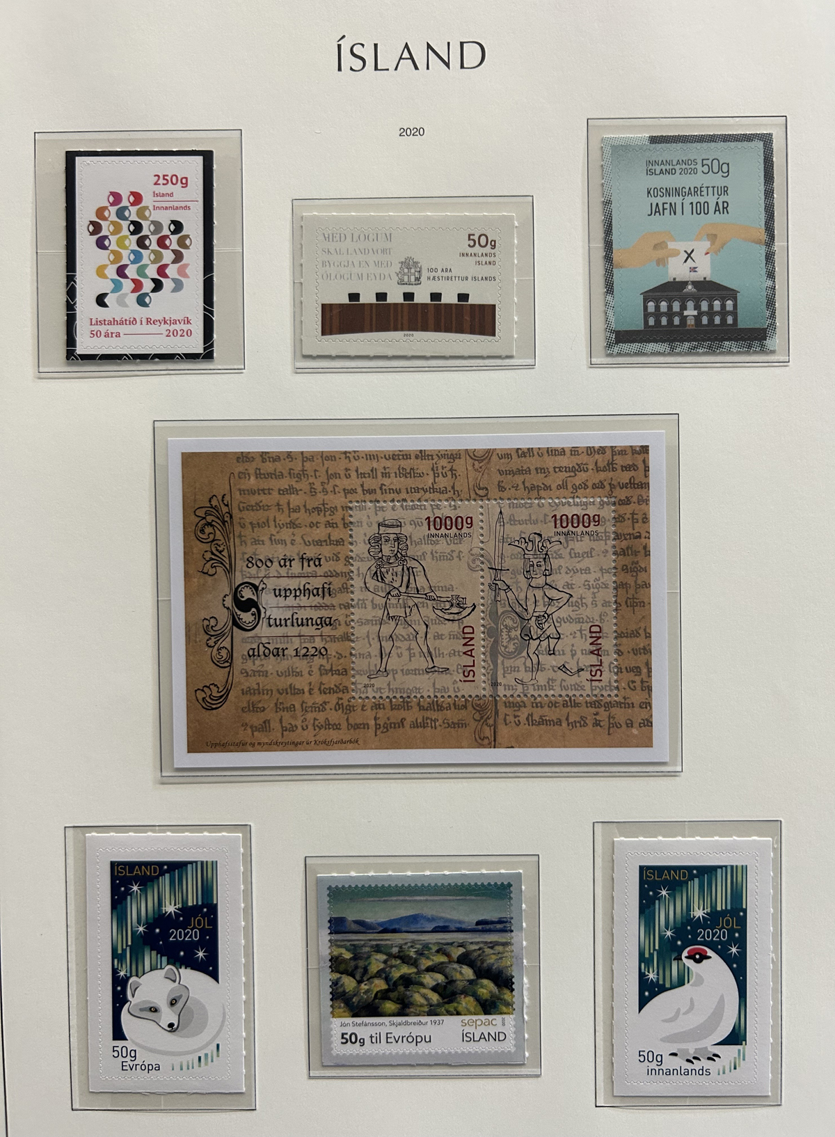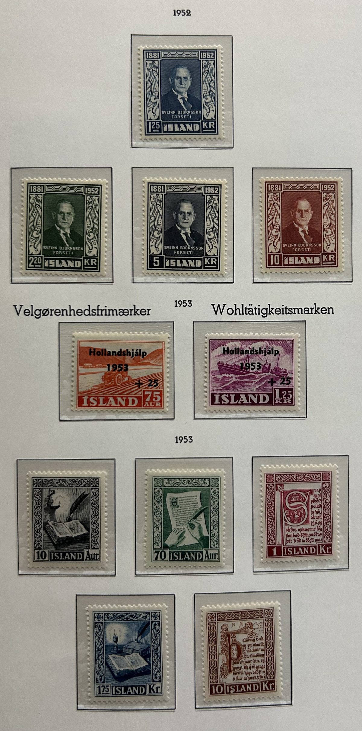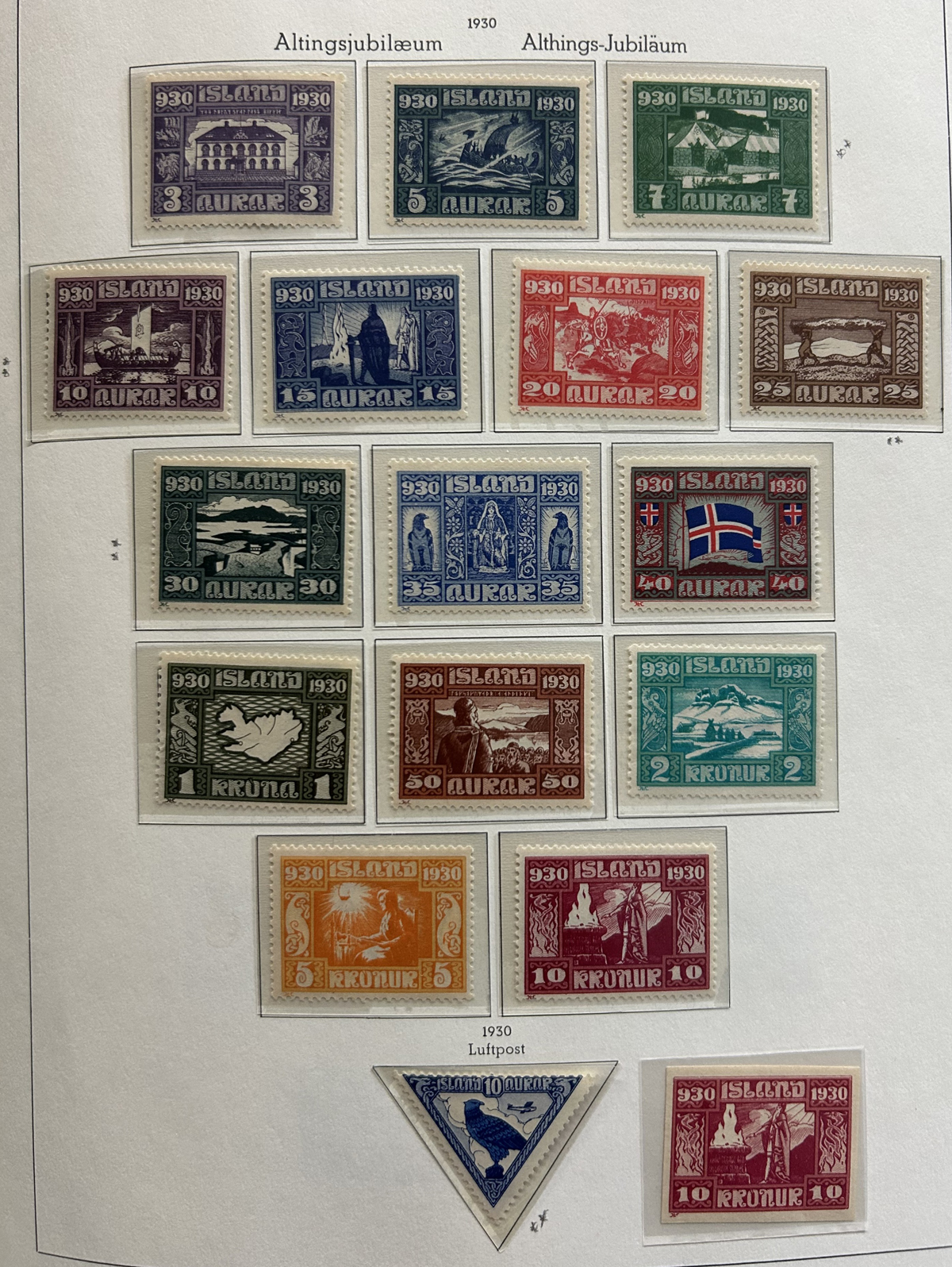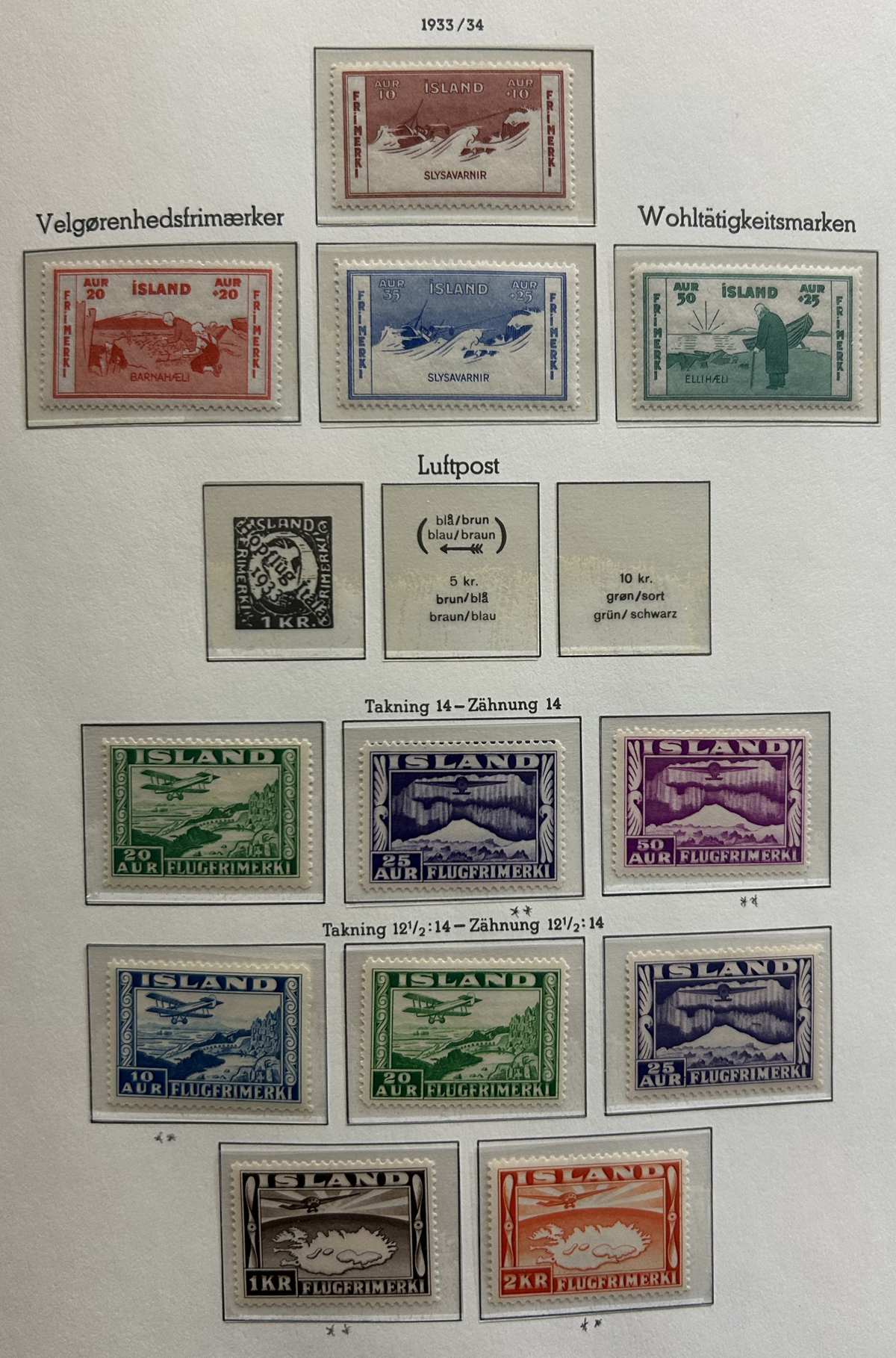 675 og/nh   imageCollection of Mint Iceland in Two Lighthouse Hingeless Albums, 1902 to 2023, complete from 1935 (Scott #193) to 2023 (#1531) including back of the book and all souvenir sheets. From 1902 to 1935 the collection has #s 34-44B ($299), 99-107 ($408), 152-166 ($372), B1-4 ($14), C1-2 ($60), C3 ($52), C4-8 ($246), C9-11 ($179), C15-20 (with a few perf varieties, $213) and CO1 ($25). Up to about 1960 there is a mix of lightly hinged and never hinged, and from 1960 to the end it is assumed everything is never hinged (spot checked a large sampling). We counted the catalogue value up to 1970 only, which comes to U$3,775 plus there is a very good additional value from 1971 to the end. Excellent and fresh condition throughout, generally fine to very fine and not often offered, especially so complete. (Scan 1) (Scan 2) (Scan 3) (Scan 4) (Scan 5) (Scan 6) (Scan 7) (Scan 8) (Scan 9) (Scan 10) (Scan 11) (Scan 12) (Scan 13) (Scan 14) (Scan 15) (Scan 16) (Scan 17) (All Scans) (All Images)