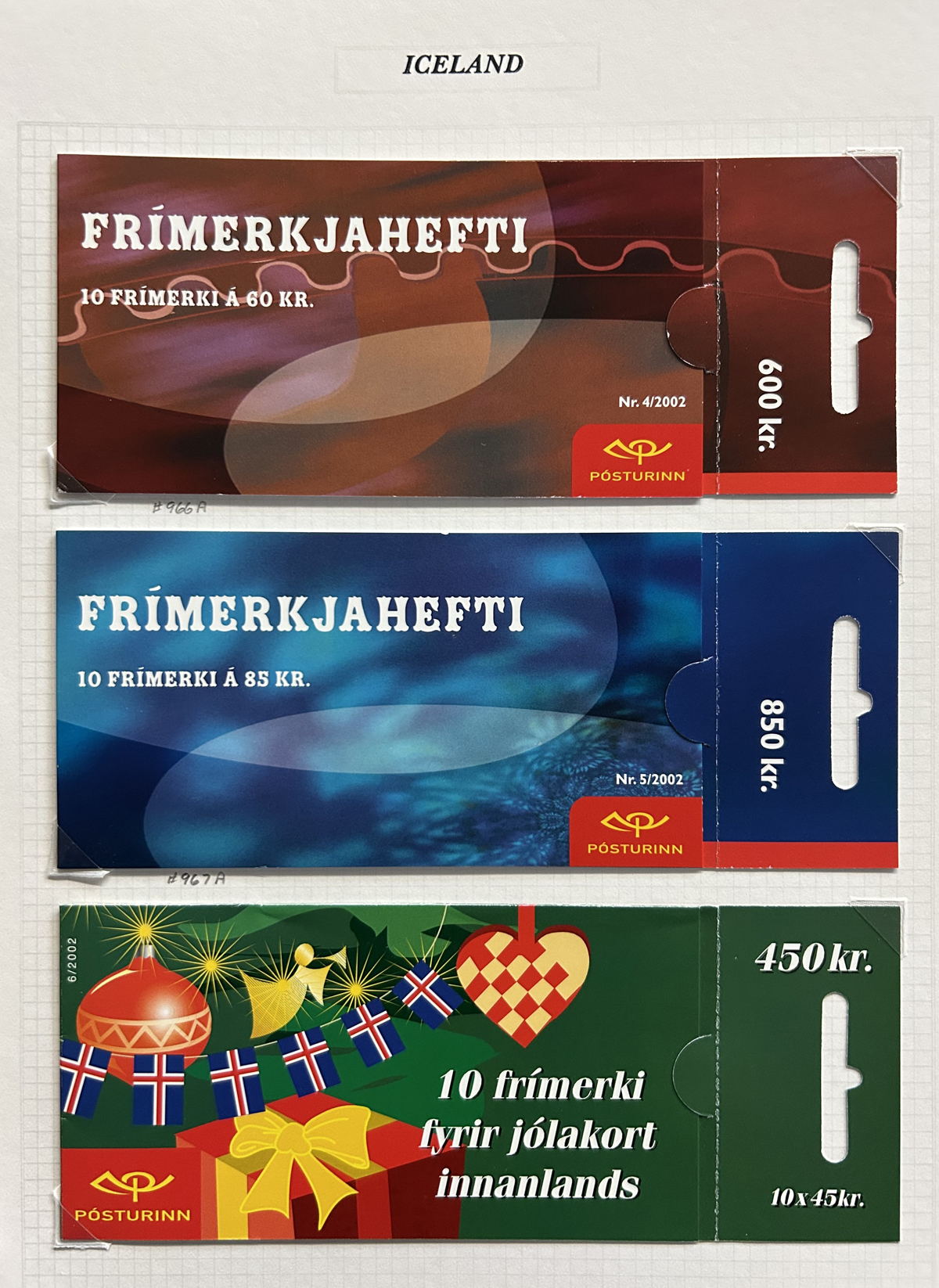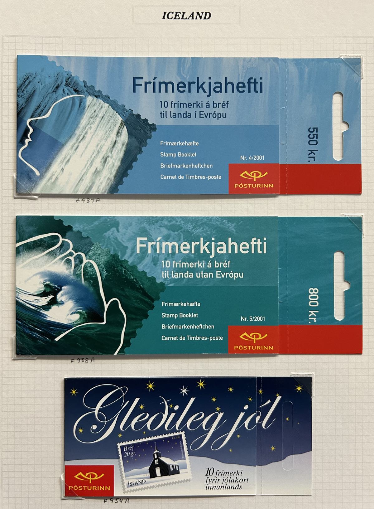 674 nh   imageCollection of Iceland Complete Booklets, 1987-2016, neatly displayed in two albums, with 123 different booklets, including prestige, etc. All very fine and fresh, catalogue value does not include 5 or 6 that are not listed as booklets in Scott. A great opportunity to acquire this not often offered group. (Scan 1) (Scan 2) (Scan 3) (Scan 4) (Scan 5) (Scan 6) (Scan 7) (Scan 8) (All Scans) (All Images)