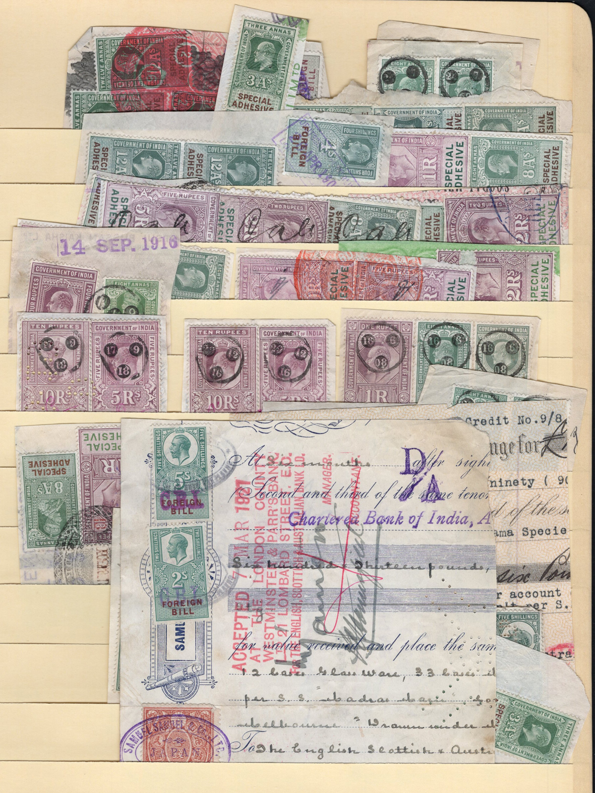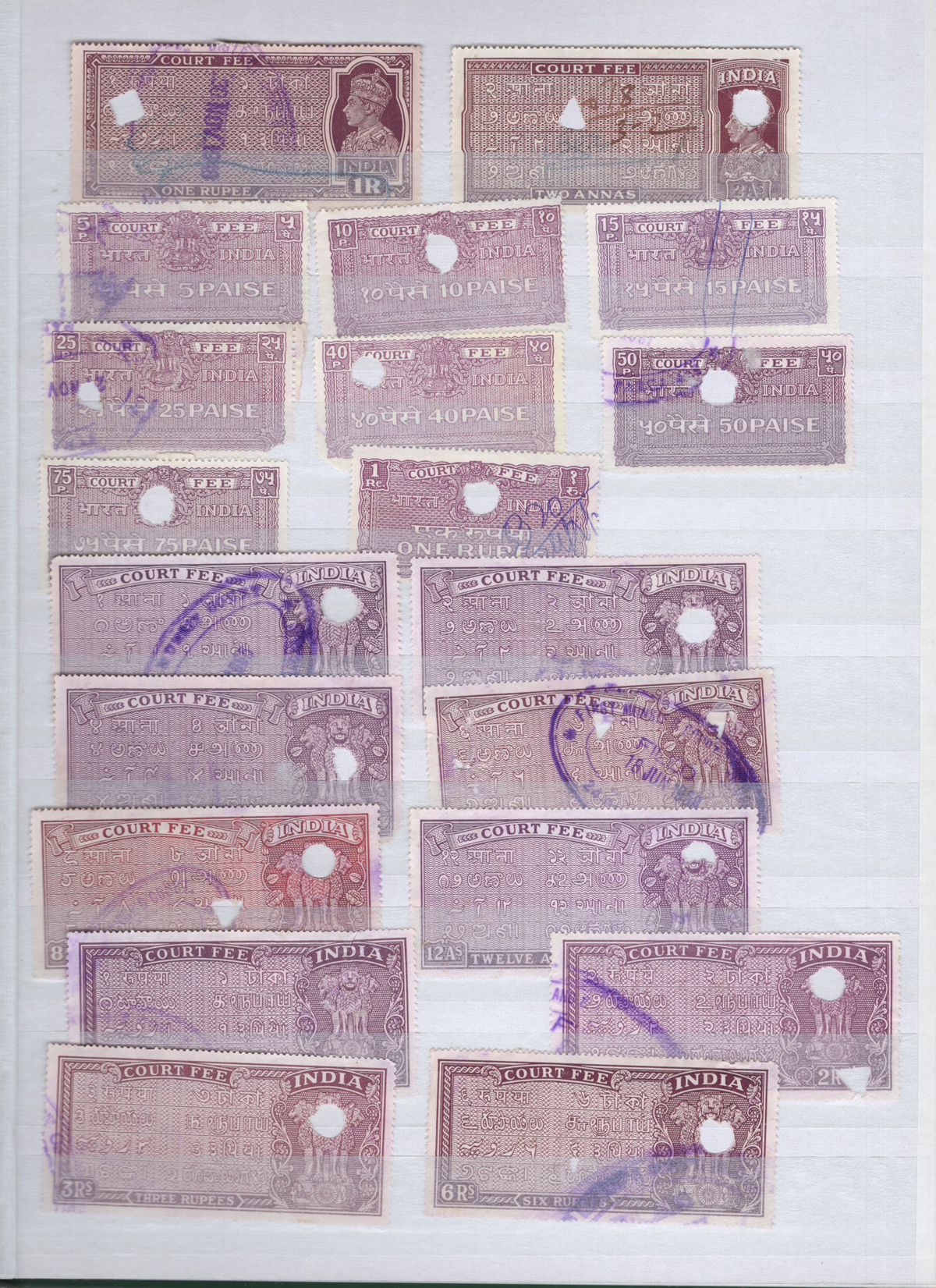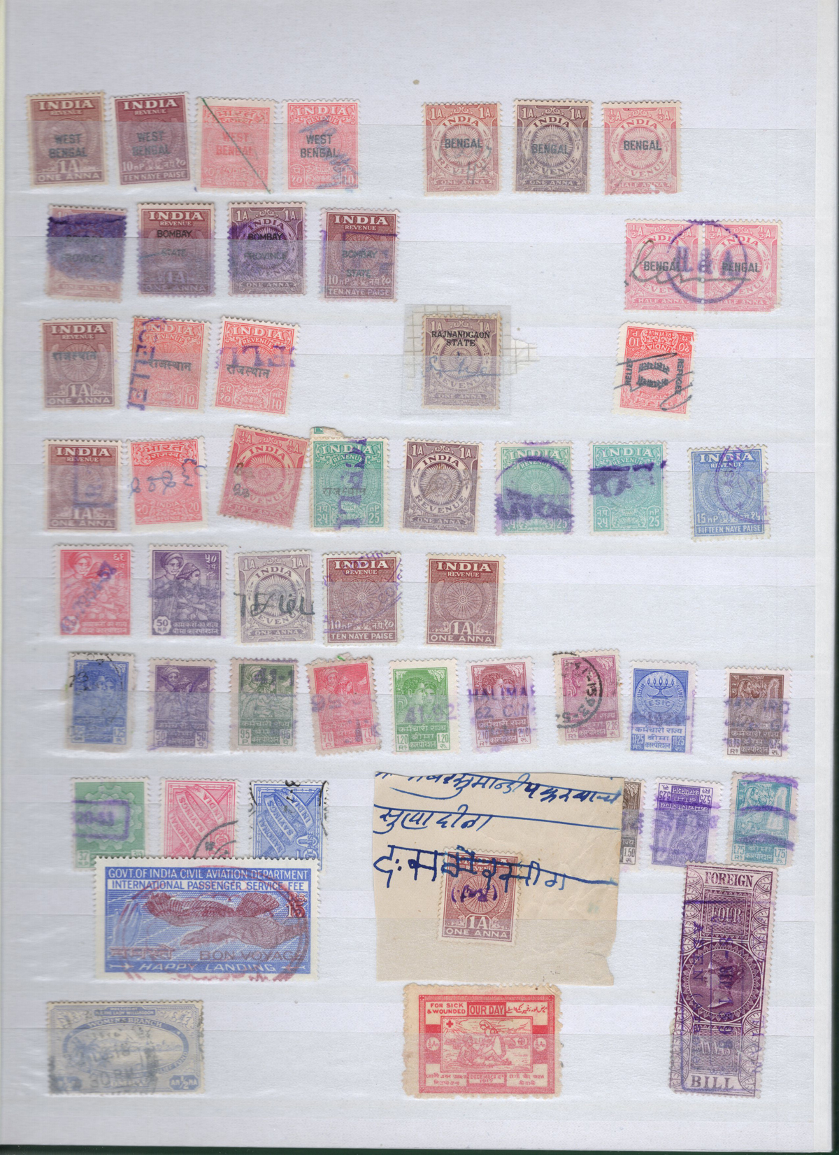 677 O   imageCollection / Stock of Used India Revenues, filling 9 pages of a stock book plus 10 Manila stock pages. We note a wide variety of Revenue types, from Queen Victoria to George VI, with a range of no duplication to dozens for a total of probably over one thousand. See our sample photos for an idea. Overall fine to very fine, with the usual faults here and there. (Scan 1) (Scan 2) (Scan 3) (Scan 4) (Scan 5) (Scan 6) (Scan 7) (Scan 8) (All Scans) (All Images)