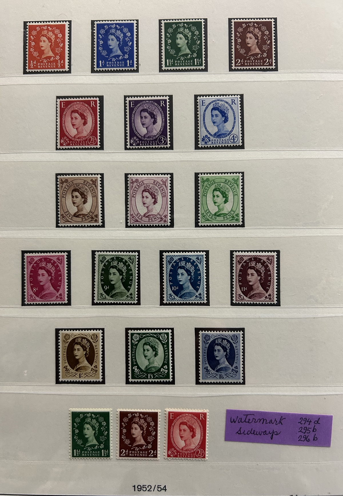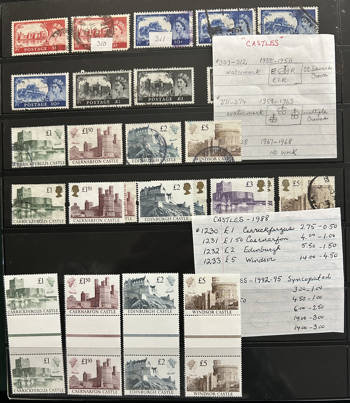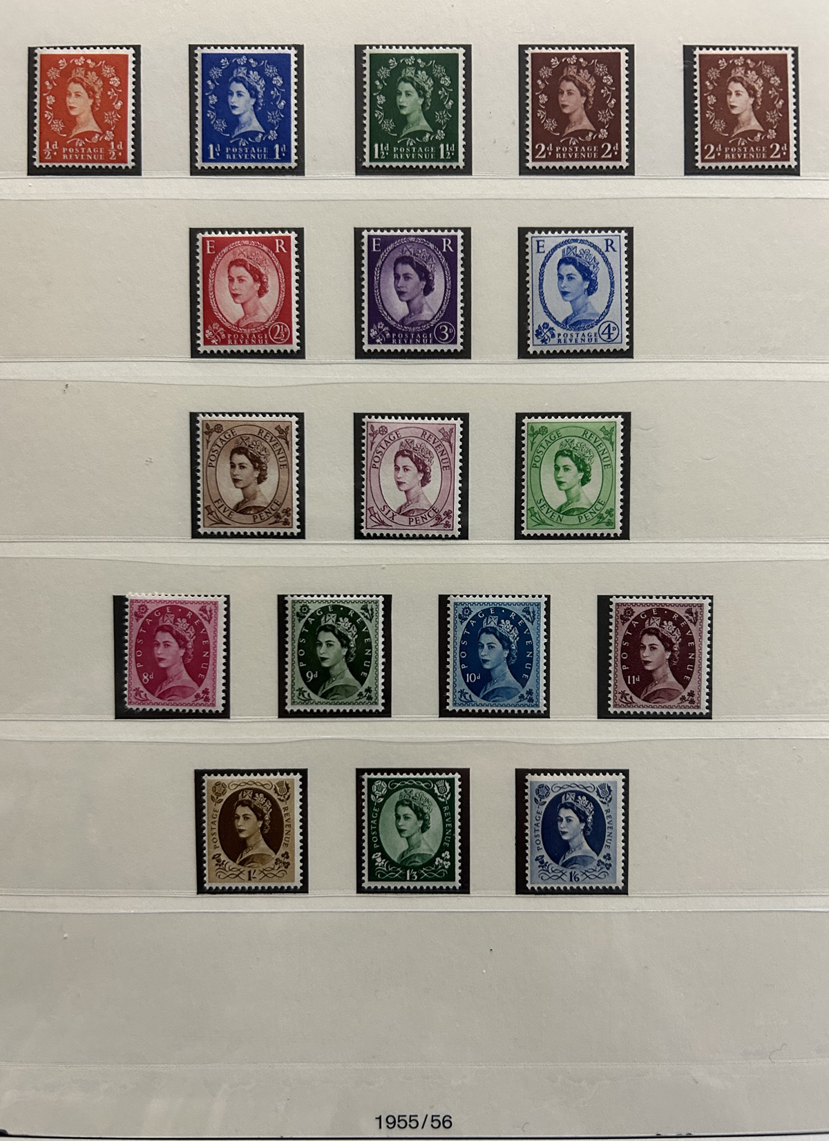 668 O/og/nh   imageCollection of Mint and Used Great Britain, 1952-1970, in a Lindner hingeless album, looks to be about 80% complete in period. Includes the first and second QEII sets (mint), first Castles set (used), 1958 Wilding set (used), and starts to be close to complete (mix of mint and used) from the late 1960s to the end. The back of the album includes four full stock pages of mint and used Machins (to the £5), seven Machin FDC (1967 to 1980) a stock page full of 2/6 and 5sh used Seahorses and many Castle issues (from the early used issues to the 1988 mint £1 to £5 gutter pairs) and more. Overall fine to very fine, see photos for a sampling. (Scan 1) (Scan 2) (Scan 3) (Scan 4) (Scan 5) (Scan 6) (Scan 7) (Scan 8) (Scan 9) (All Scans) (All Images)
