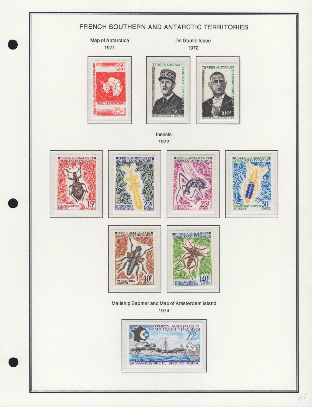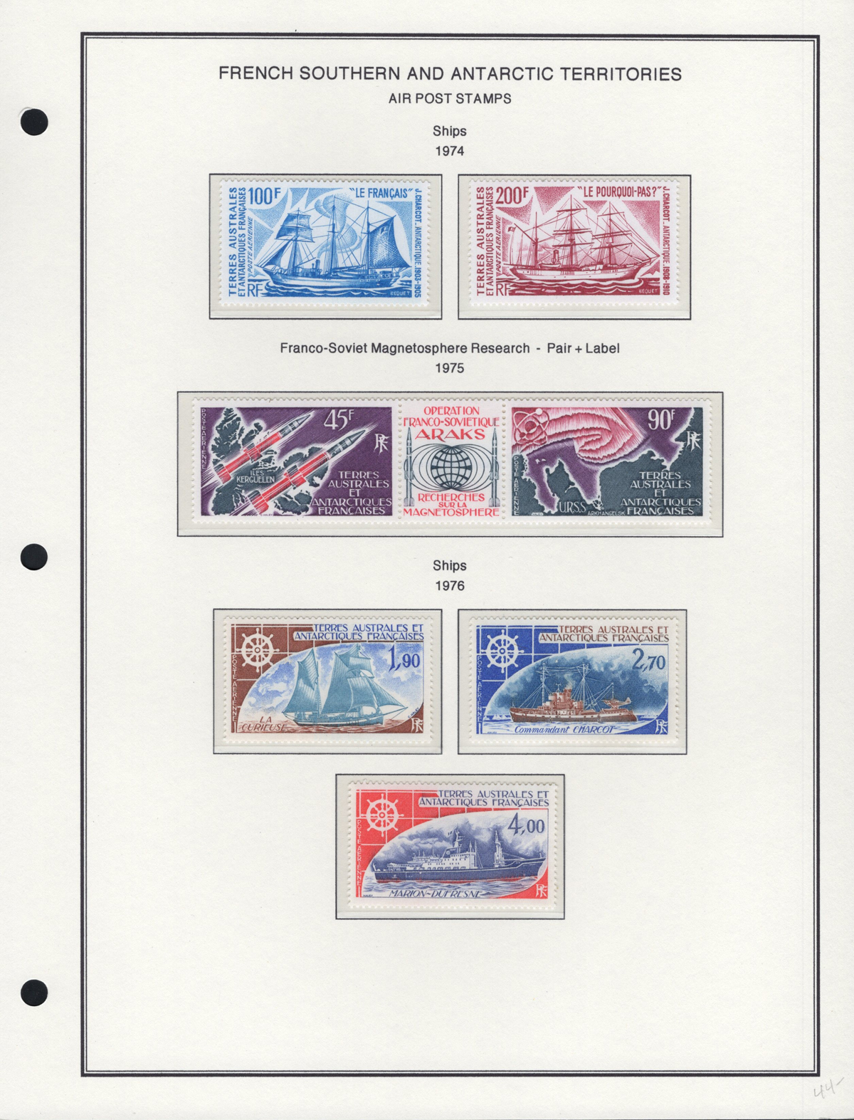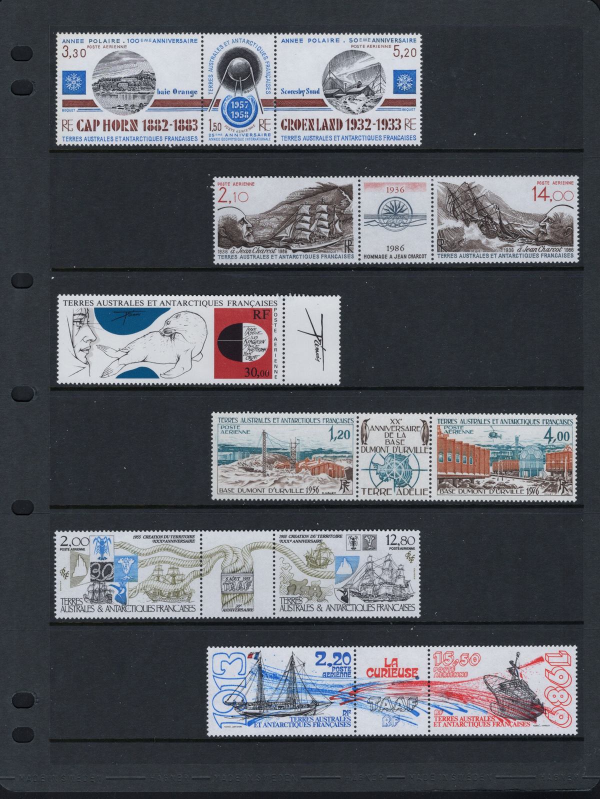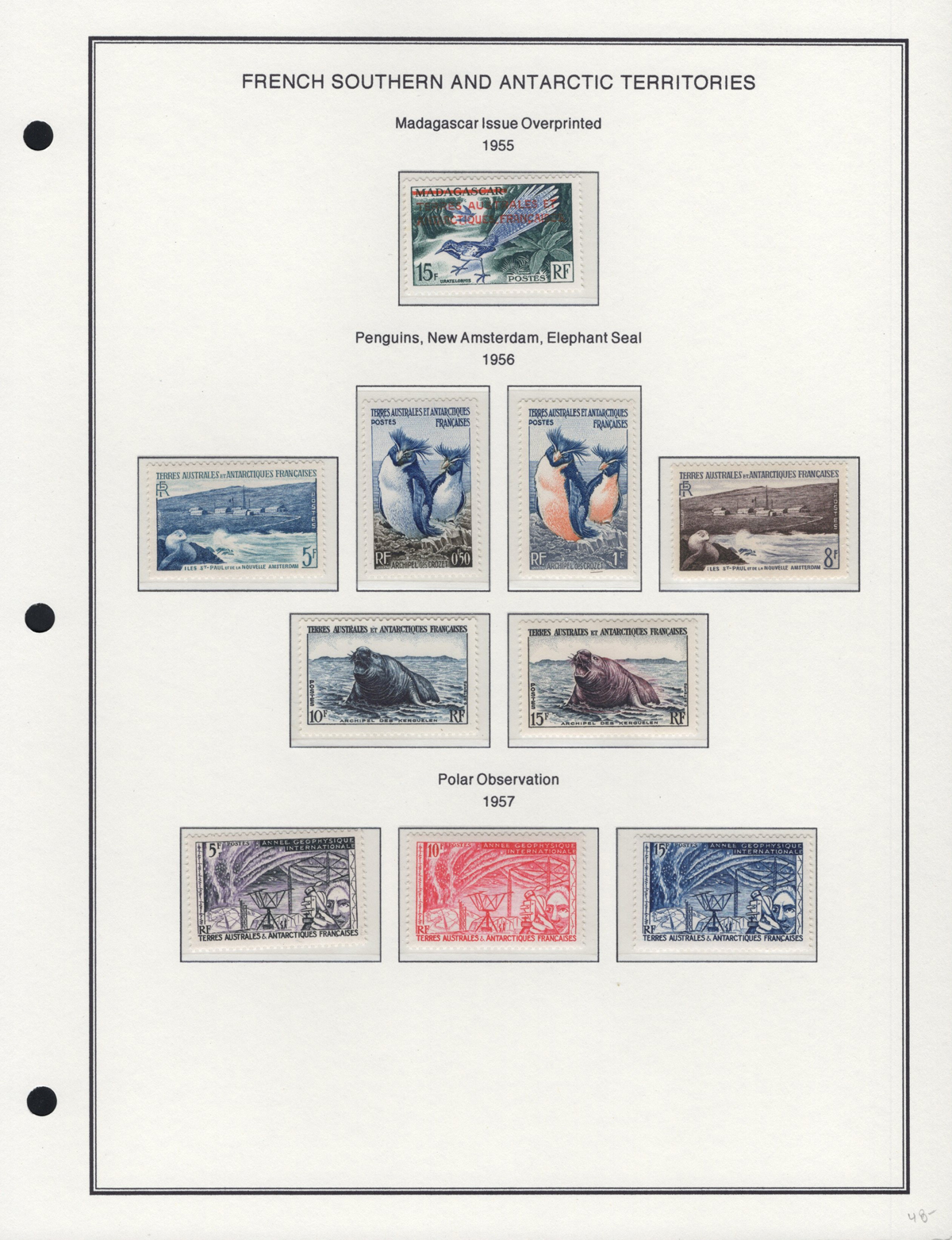 663 nh   imageCollection of Mint Never Hinged French Southern and Antarctic Territories, 1955-1989, consisting of a collection of regular issues 1955-1973 (on album pages, missing only one stamp) and Airmail issues 1956 to 1976 (on album pages, complete in period) plus a selection of 9 different issues with labels (1976 to 1989 on 2 stock sheets). We note no duplication, all stamps are fresh and very fine. (Scan 1) (Scan 2) (Scan 3) (Scan 4) (Scan 5) (Scan 6) (Scan 7) (Scan 8) (Scan 9) (Scan 10) (Scan 11) (Scan 12) (Scan 13) (Scan 14) (All Scans) (All Images)