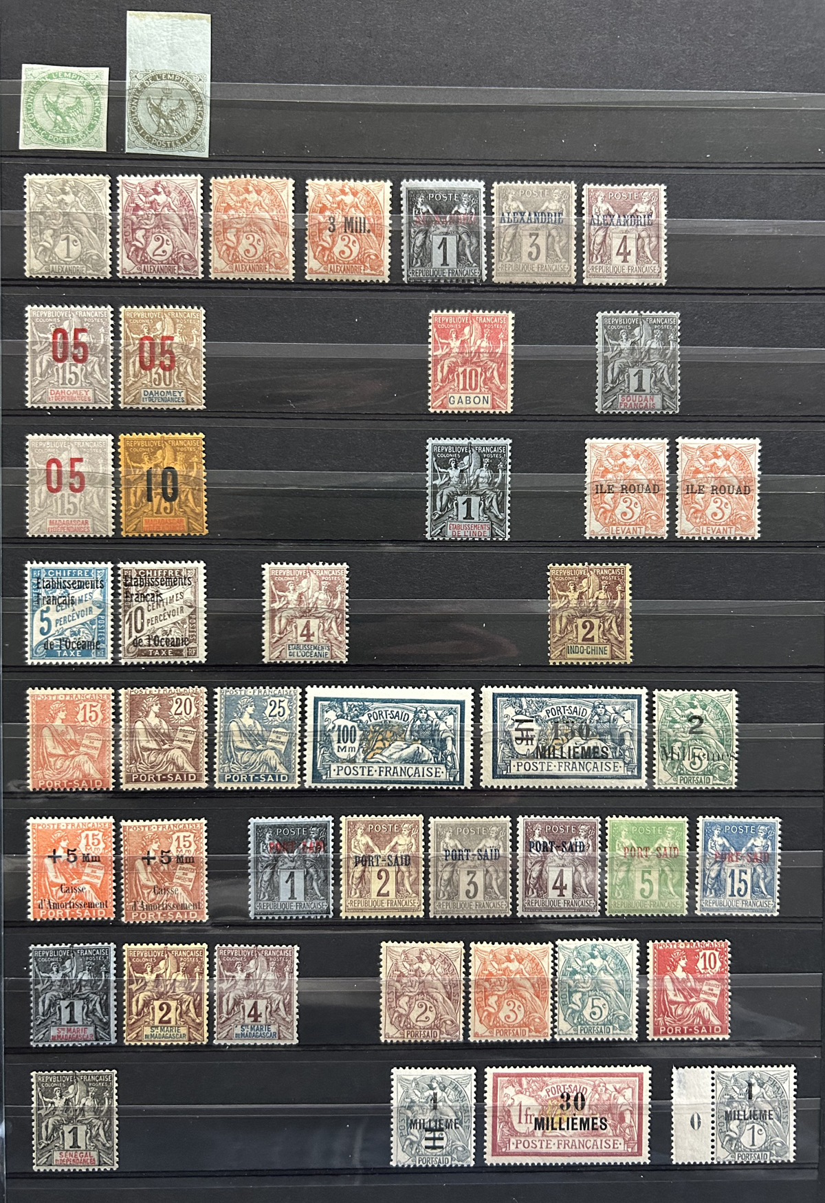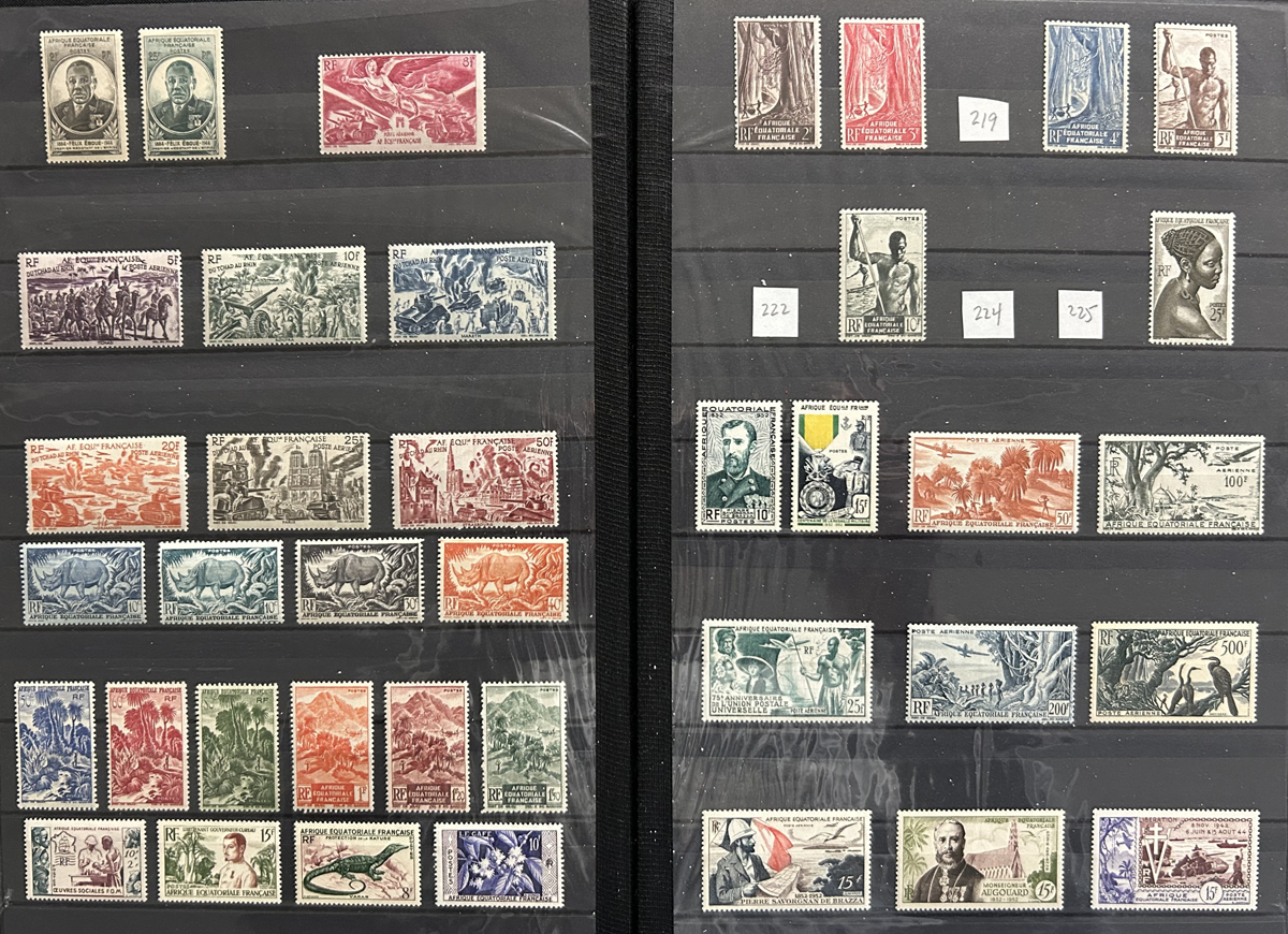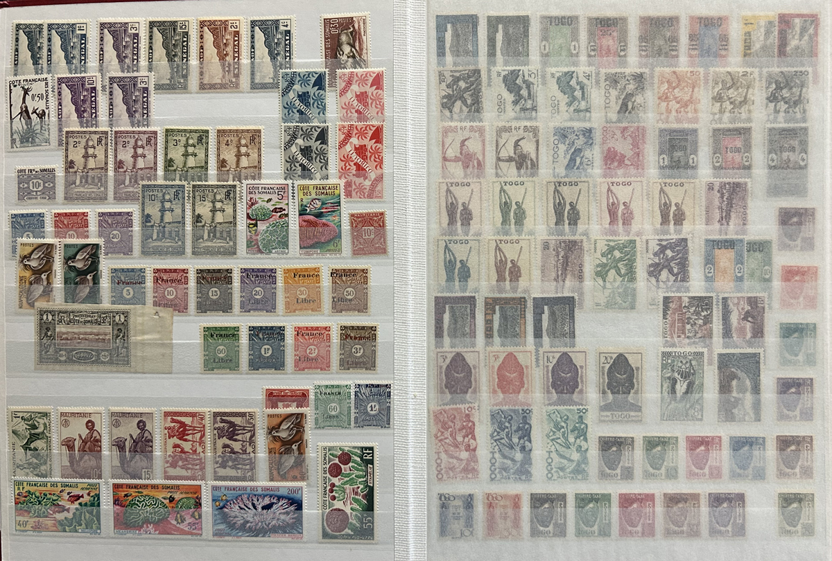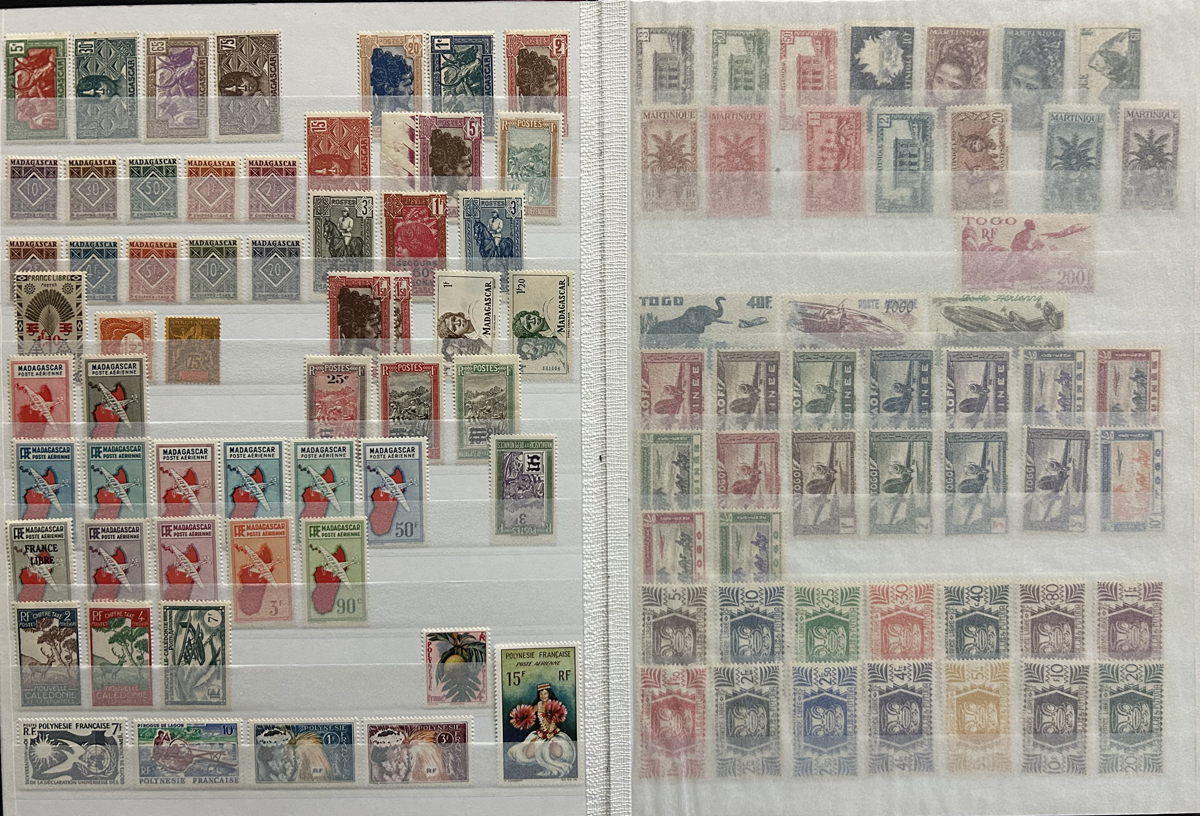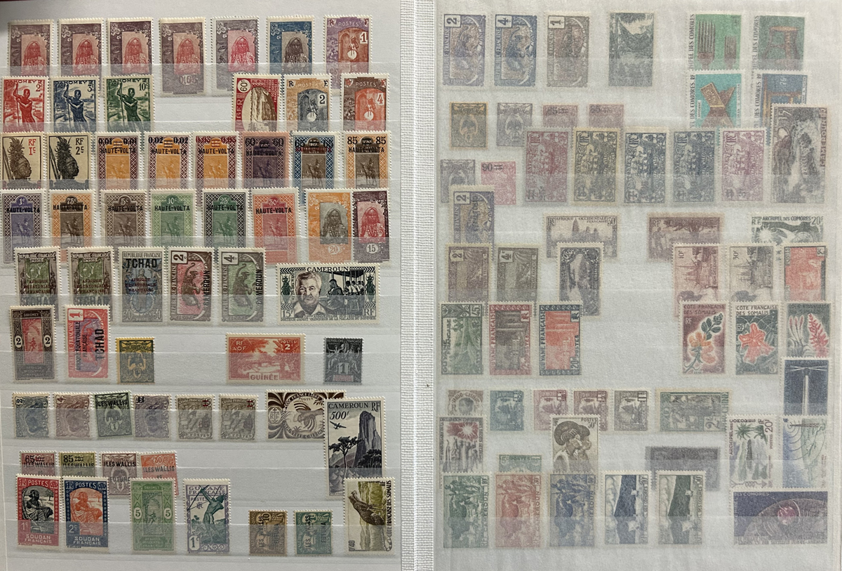 662 og/nh   imageExtensive Collection of Mint French Colonies in Three Stockbooks, the great majority of which is mint never hinged, with very few that are lightly hinged. The collection fills the equivalent of 49 stock pages with complete sets, part sets, singles, common design issues, etc. One page is populated with 47 19th Century issues, which appear to be all NH (scarce thus). The overall quality of this collection is better than is often seen, the stamps are for the most part quite fresh and very fine. See our many photos to get a good idea. (Scan 1) (Scan 2) (Scan 3) (Scan 4) (Scan 5) (Scan 6) (Scan 7) (Scan 8) (Scan 9) (Scan 10) (Scan 11) (Scan 12) (Scan 13) (All Scans) (All Images)
