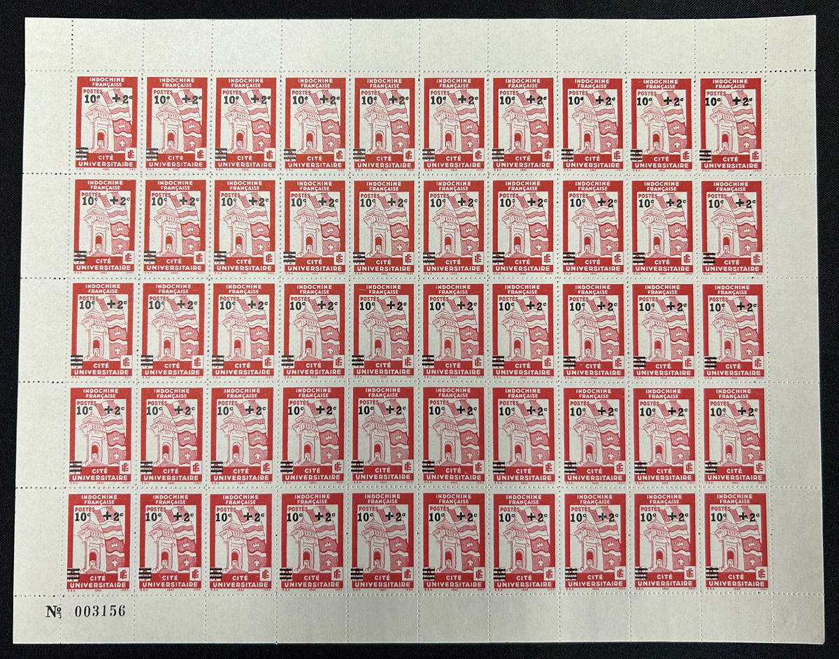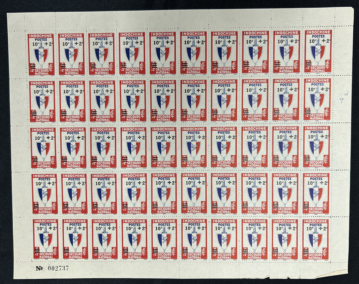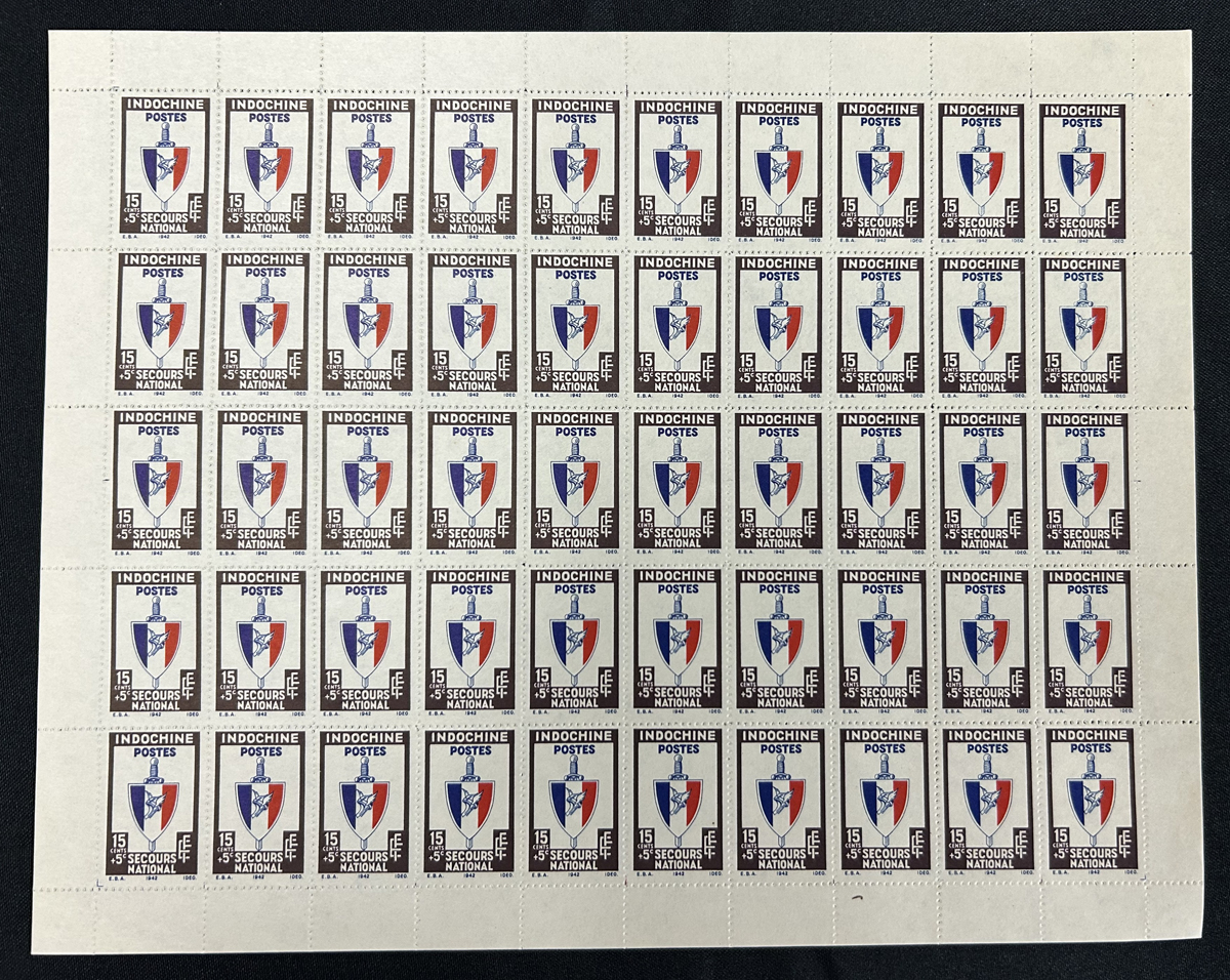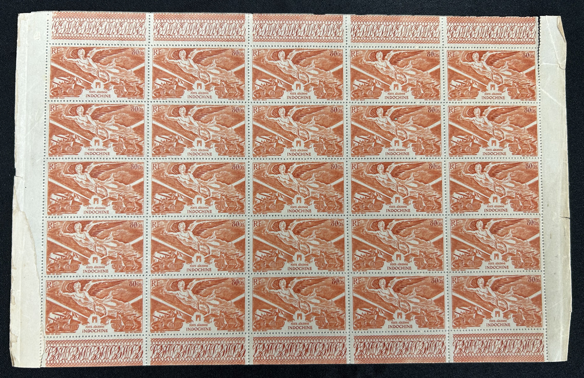 683 nh   imageCollection of Indo-China Sheets, Part Sheets and Large Multiples, 1931-1945, all stored in three thick sheet files, with approximately 115 complete sheets or part sheets, plus a number of smaller multiples not counted, including a little duplication of some. We note regular issues, Airmail, Semi-Postal and a few sheets from France from the same period. Appears to be all never hinged and fine to very fine, we saw a few part sheets that have gum glazing from the inter-leaving. Would be useful to create sets, etc. See pictures for only a few random items. (Scan 1) (Scan 2) (Scan 3) (Scan 4) (Scan 5) (Scan 6) (Scan 7) (Scan 8) (Scan 9) (All Scans) (All Images)