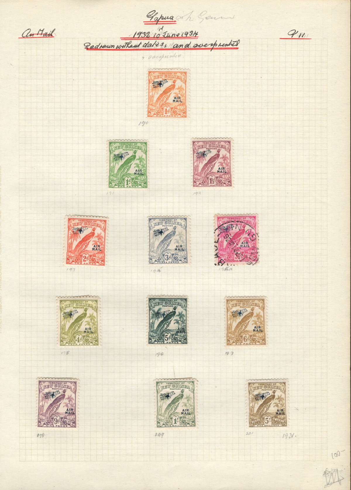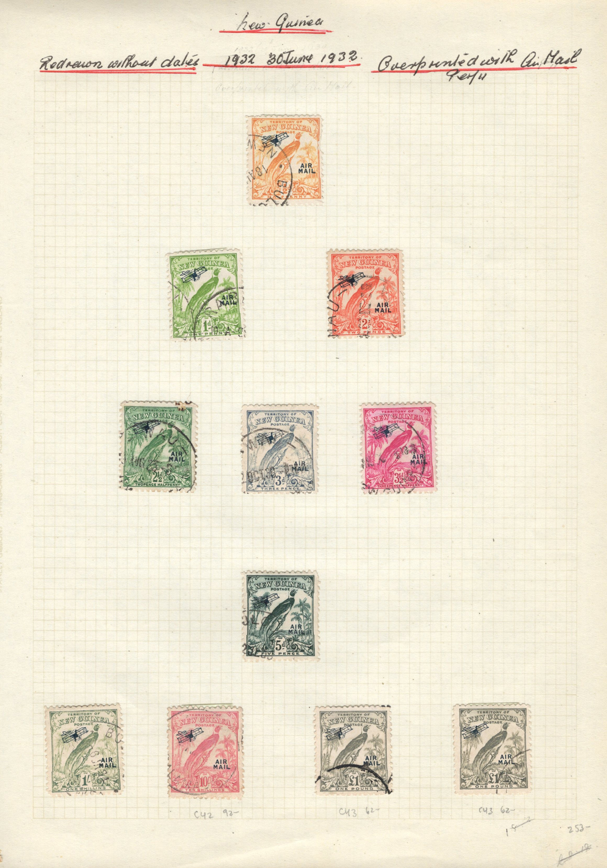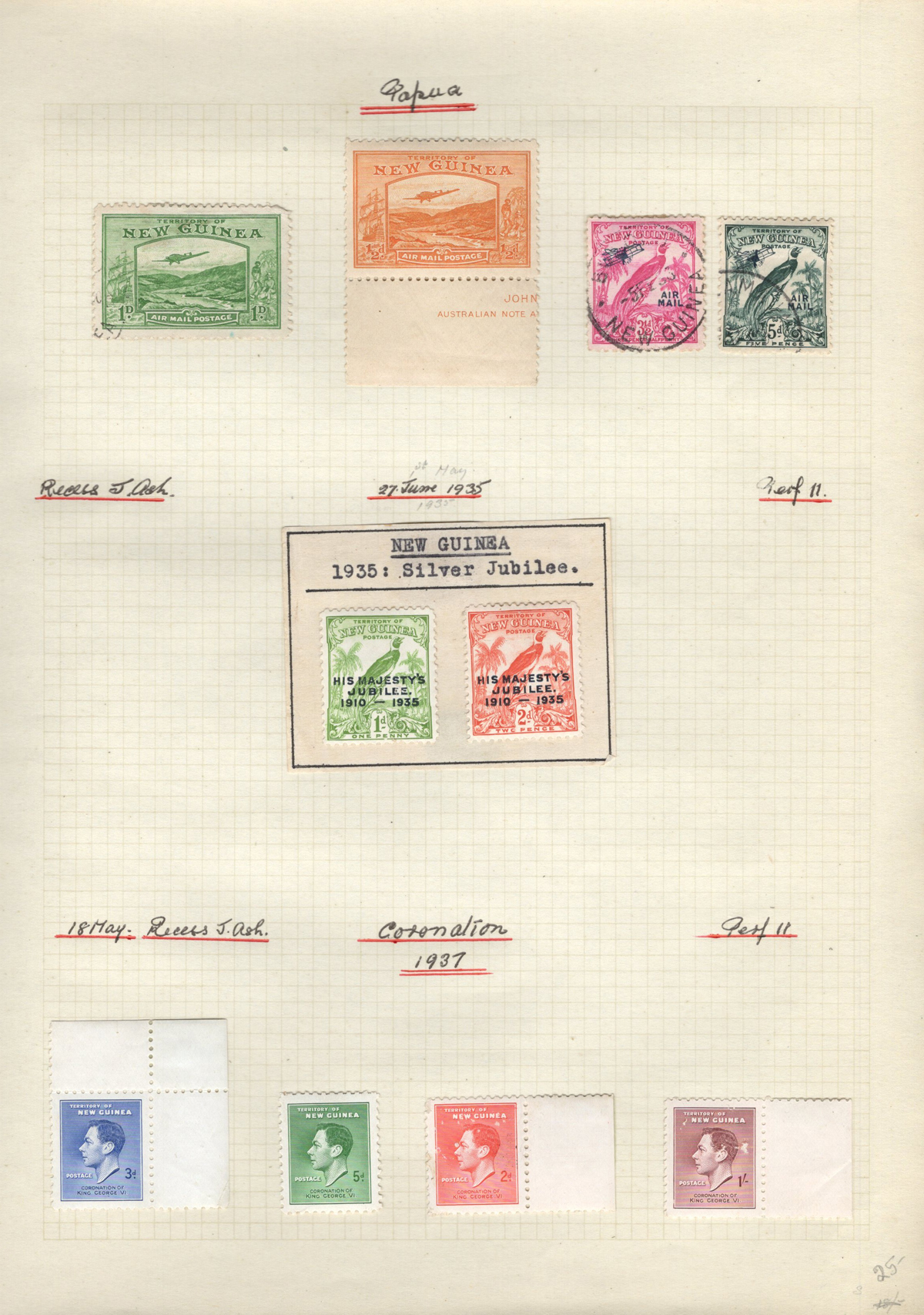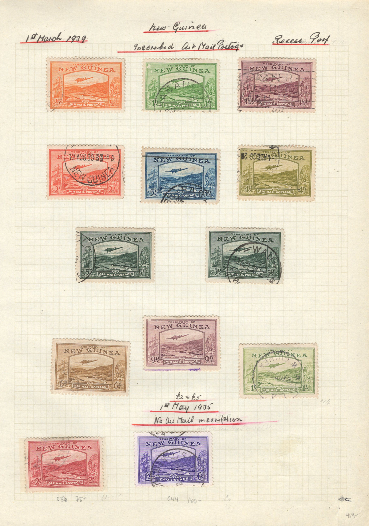 695 O/og   imageCollection of Mint and Used New Guinea, 1925-1939, mounted on 7 quadrille pages. We note complete, and part-complete sets of regular, and Airmail issues in either mint or used (some mixed), including a little duplication. Includes a few higher cataloguing used items such as #s C42 ($92), C43 (two copies, $62 each), C44 ($160), C56 ($75) and more. A fine to very fine collection, all pages scanned. (Scan 1) (Scan 2) (Scan 3) (Scan 4) (Scan 5) (Scan 6) (Scan 7) (All Scans) (All Images)