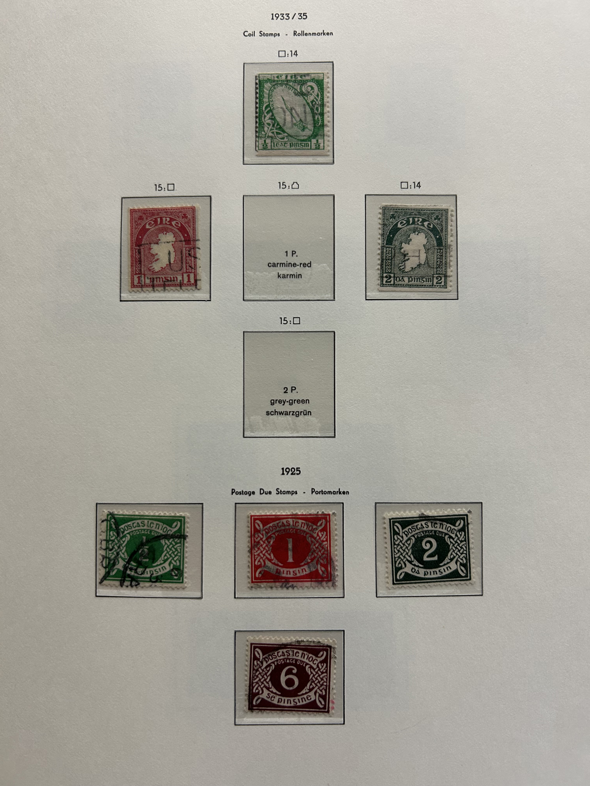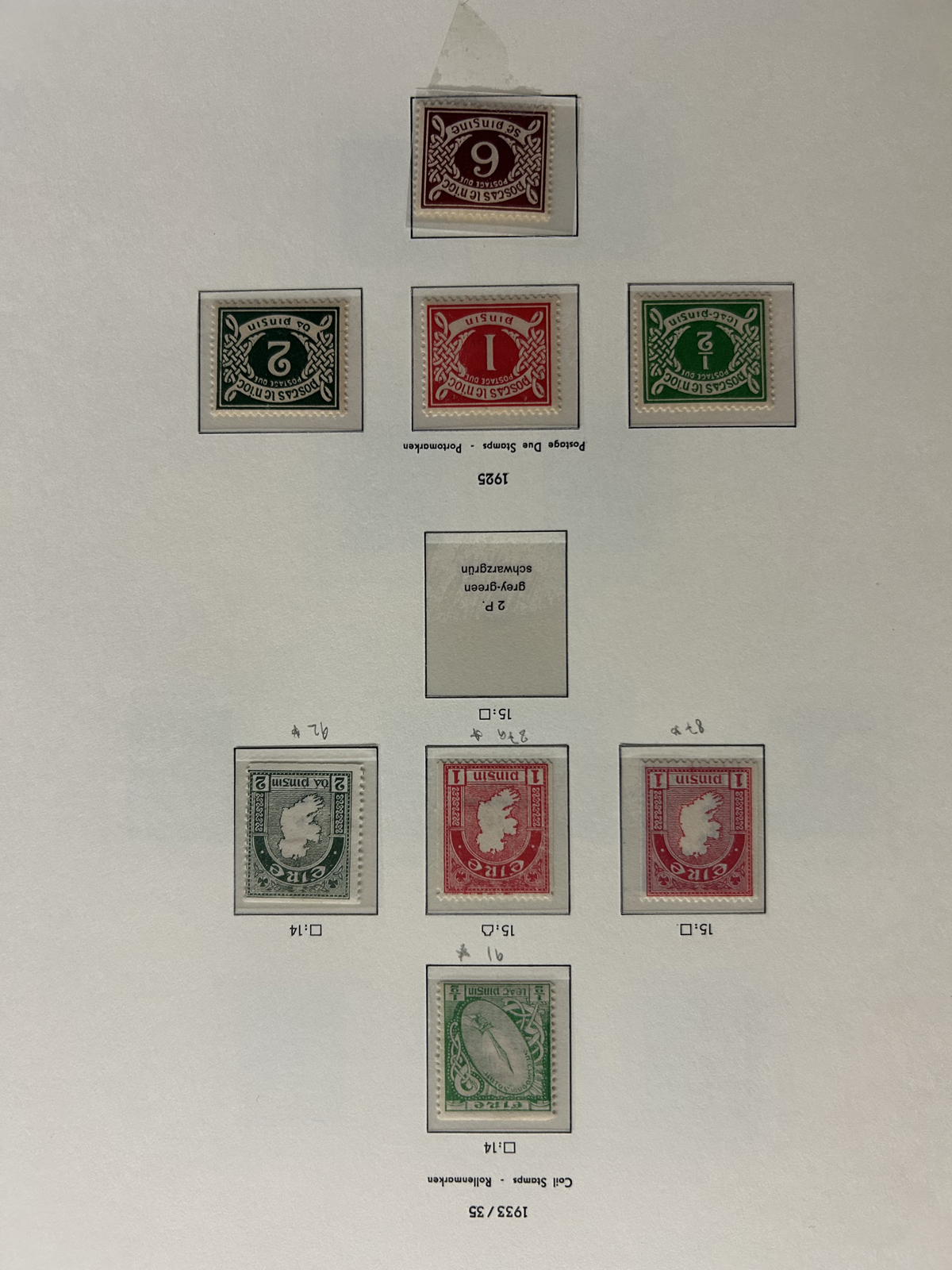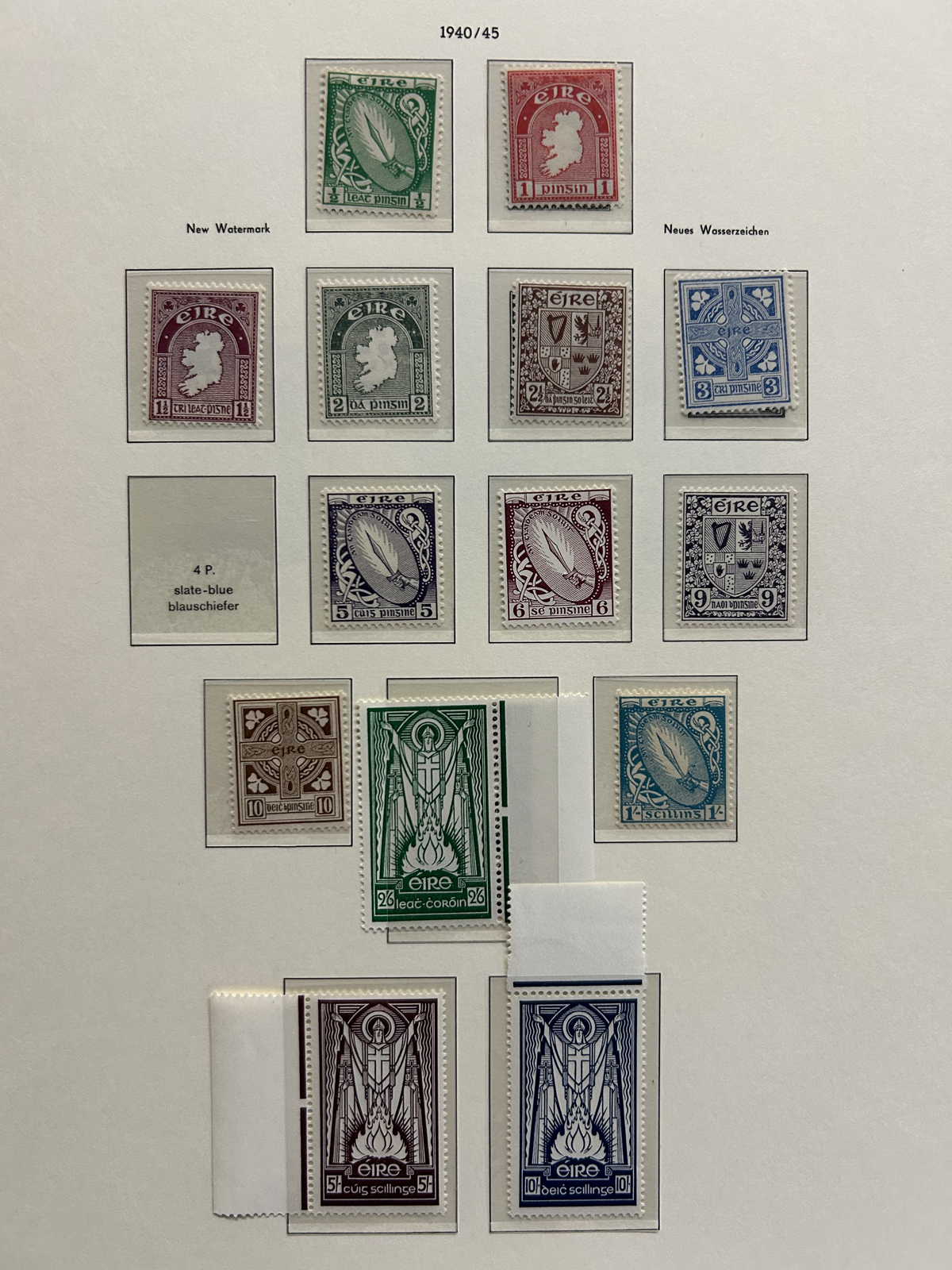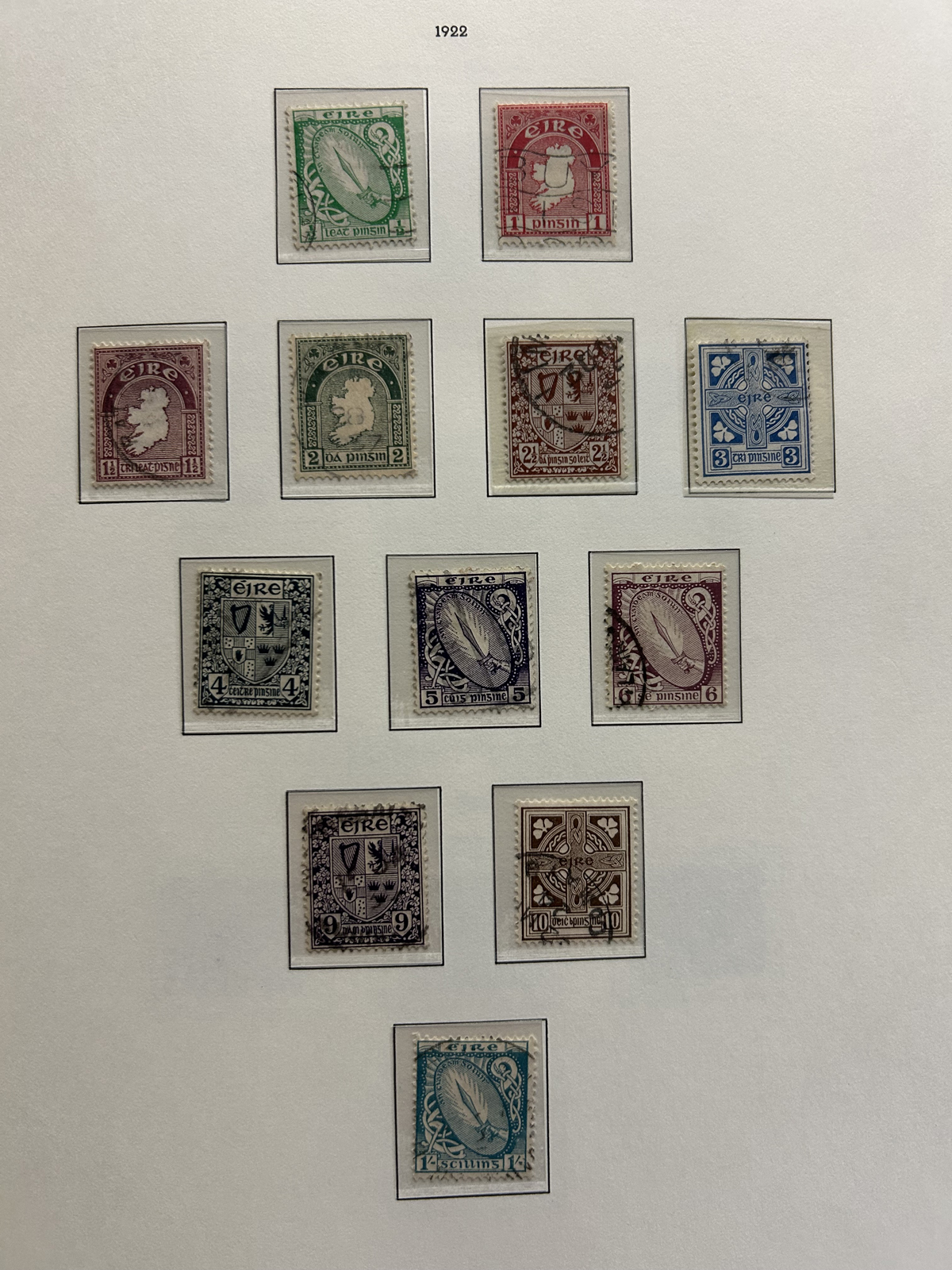686 nh   imageCollection of Mint Never Hinged Ireland in Two Lighthouse Hingeless Albums, with slipcases, running from 1922 to 1994. The collection is never hinged except for the first Postage Due set and first coil set, which are lightly hinged. It starts right after the first overprints, and is complete, except for the missing first St Patrick set (offered in our singles and sets section), three souvenir sheets and about a half dozen stamps here and there. Quite a fresh and clean collection, with mostly very fine stamps throughout, we counted a catalogue value of U$1,963 to 1974 only, not including the last 20 years. See our representative photos online. (Scan 1) (Scan 2) (Scan 3) (Scan 4) (Scan 5) (Scan 6) (Scan 7) (Scan 8) (Scan 9) (All Scans) (All Images)