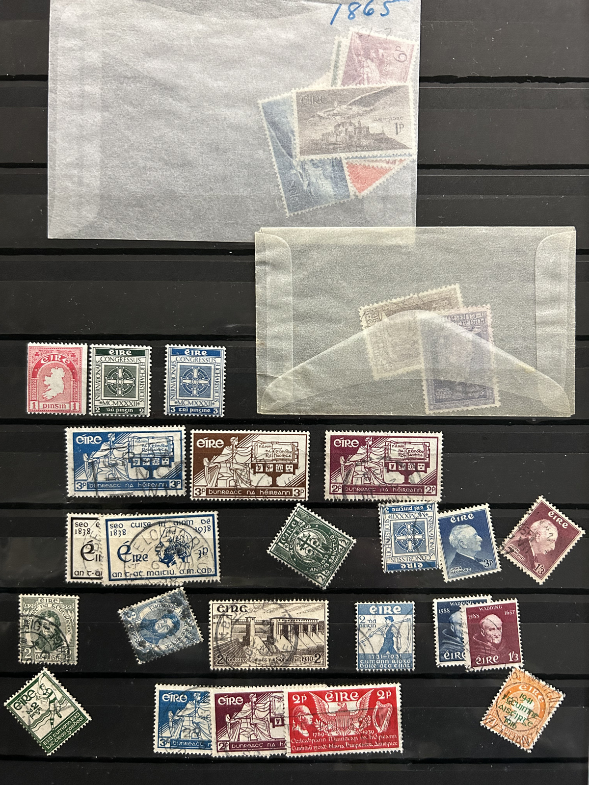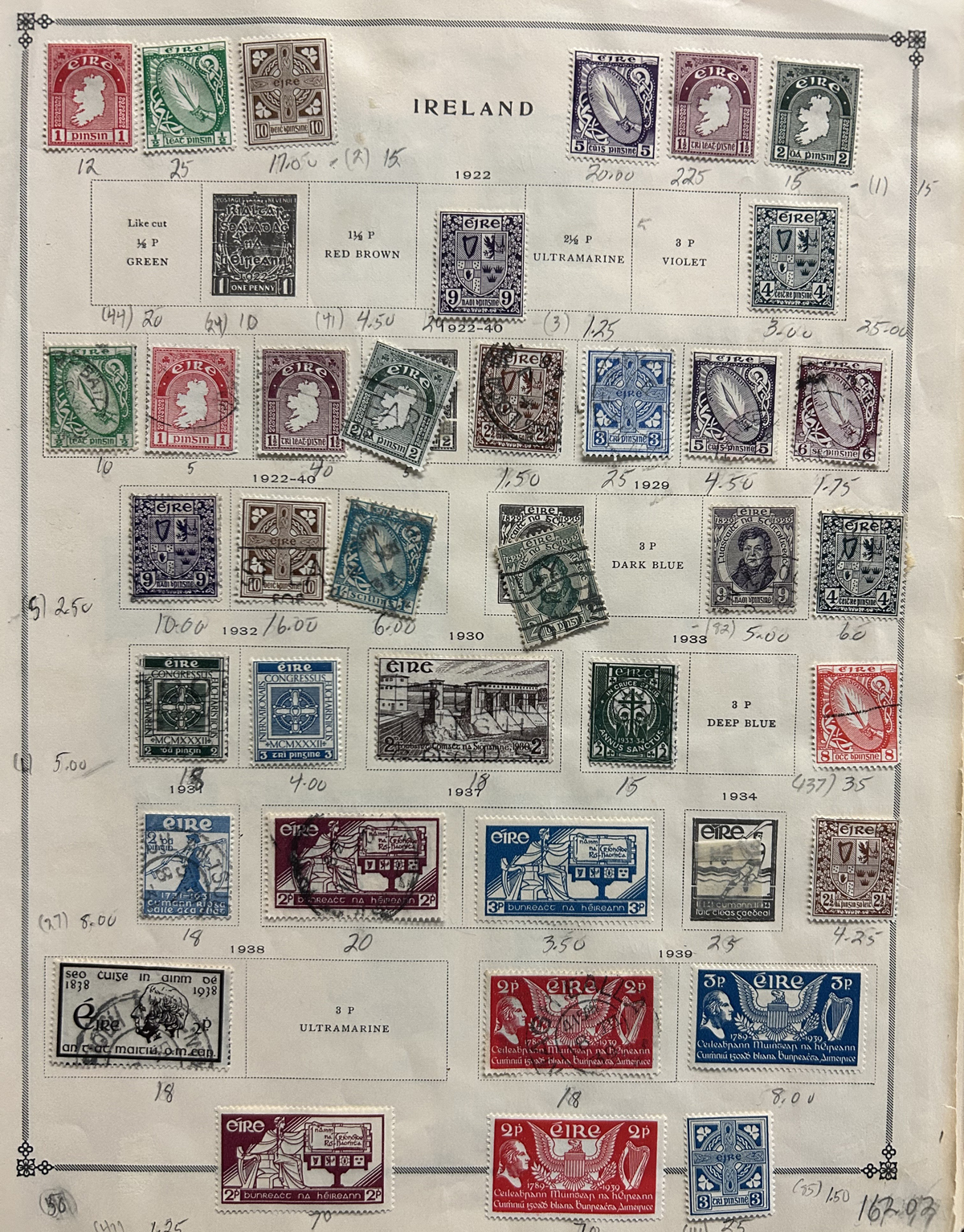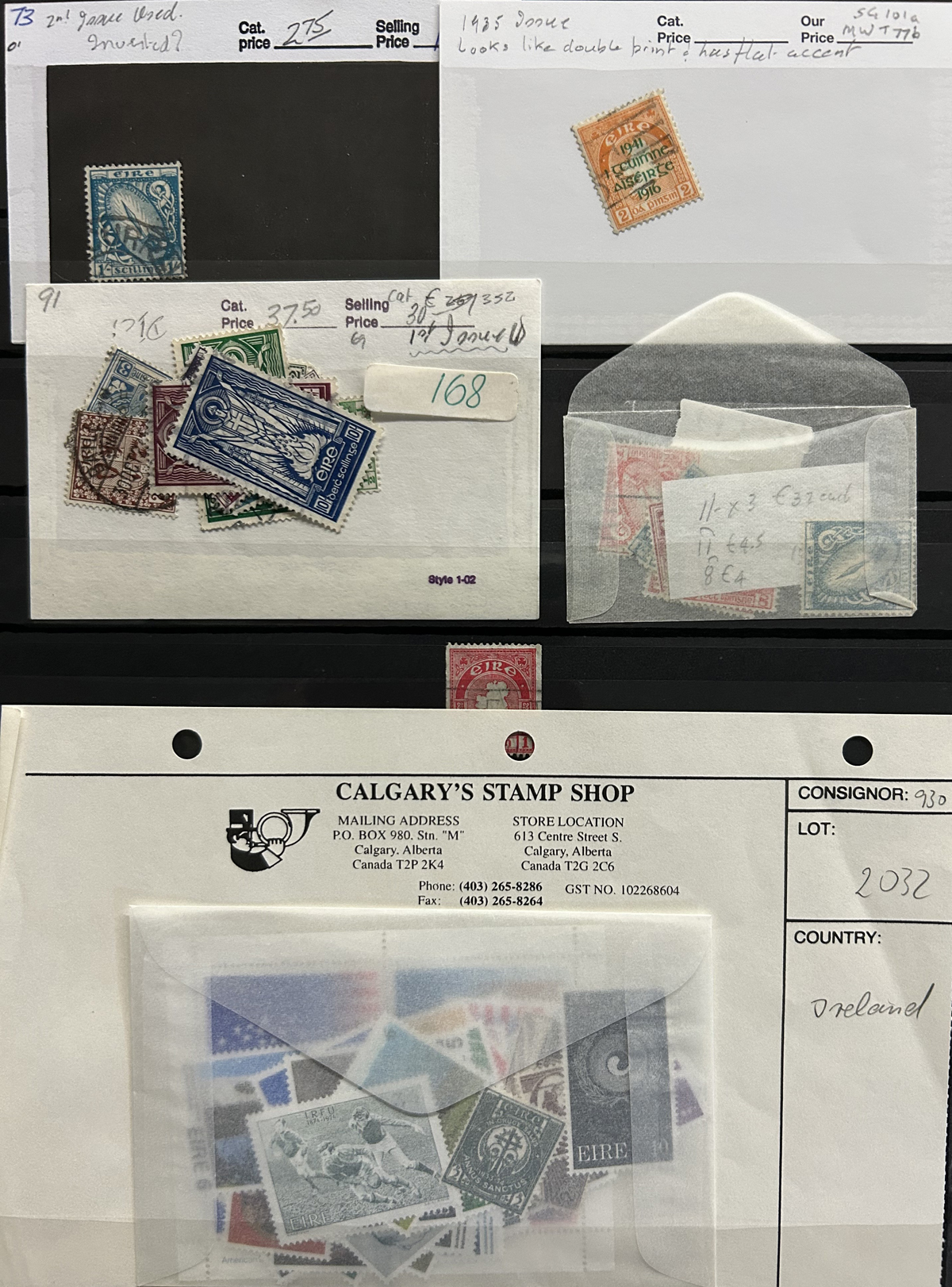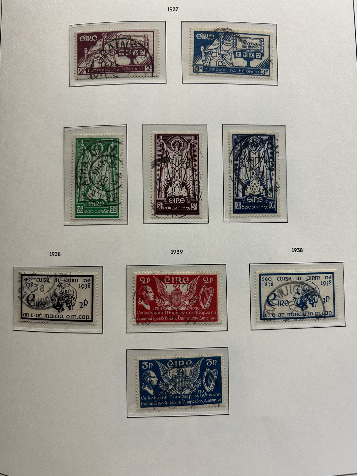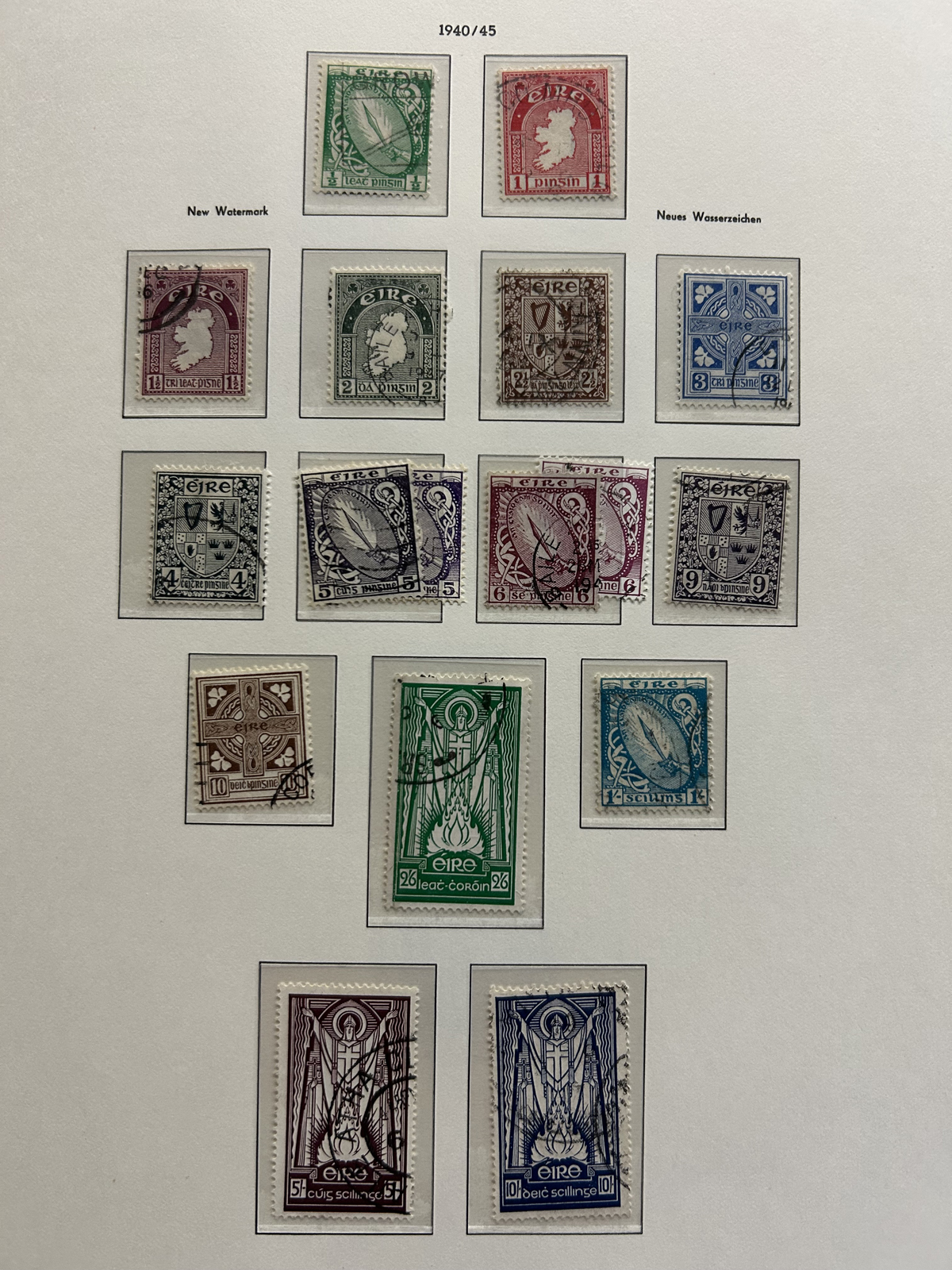 687 O/og/nh   imageCollection of Used Ireland, Plus a Good Selection of extra Mint and Used Various Issues, the mail collection is in a Lighthouse hingeless album and runs from just after the first overprints, to 1992. This collection is complete, save for a dozen or so missing sets / souvenir sheets near the end, plus some of the Dog / Ox sets (which are present in the accompanying stockbook). The catalogue value for up to 1970 comes to U$1,221. Also comes with a 16-page stockbook filled with mint and used singles and sets, including several Dog / Ox definitives, a page of early Great Britain stamps used in Ireland, booklet panes, many early issues (no overprints), early coils, etc. Last but not least is a folder containing about 25 album pages with mainly mint and used early issues, plus more modern such as a page of mint Dog booklet panes, and more. Very nice quality throughout, with mostly light c.d.s. cancels on the used, and many NH in the mint, see our online photos for a sampling. (Scan 1) (Scan 2) (Scan 3) (Scan 4) (Scan 5) (Scan 6) (Scan 7) (Scan 8) (Scan 9) (Scan 10) (Scan 11) (Scan 12) (Scan 13) (Scan 14) (Scan 15) (Scan 16) (Scan 17) (Scan 18) (All Scans) (All Images)