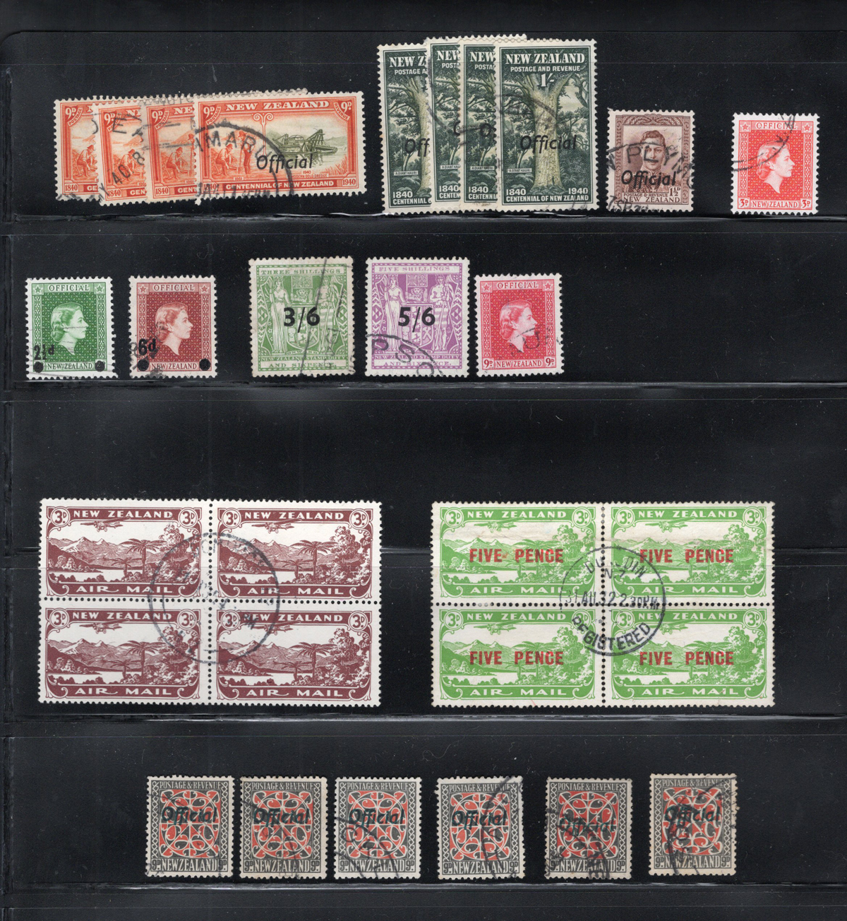 698 O   imageGroup of Used Back of the Book New Zealand, with Health, Airmail (a couple of blocks) and Official, plus a couple of postal fiscals. Moderate duplication and several better. Most are lightly cancelled and no obvious faults were noted. 2024 Scott catalogue value US$ 1603. (Scan 1) (Scan 2) (All Scans) (All Images)