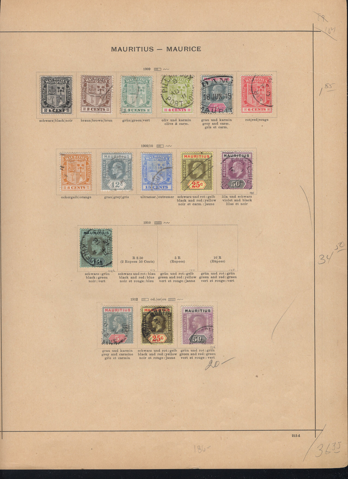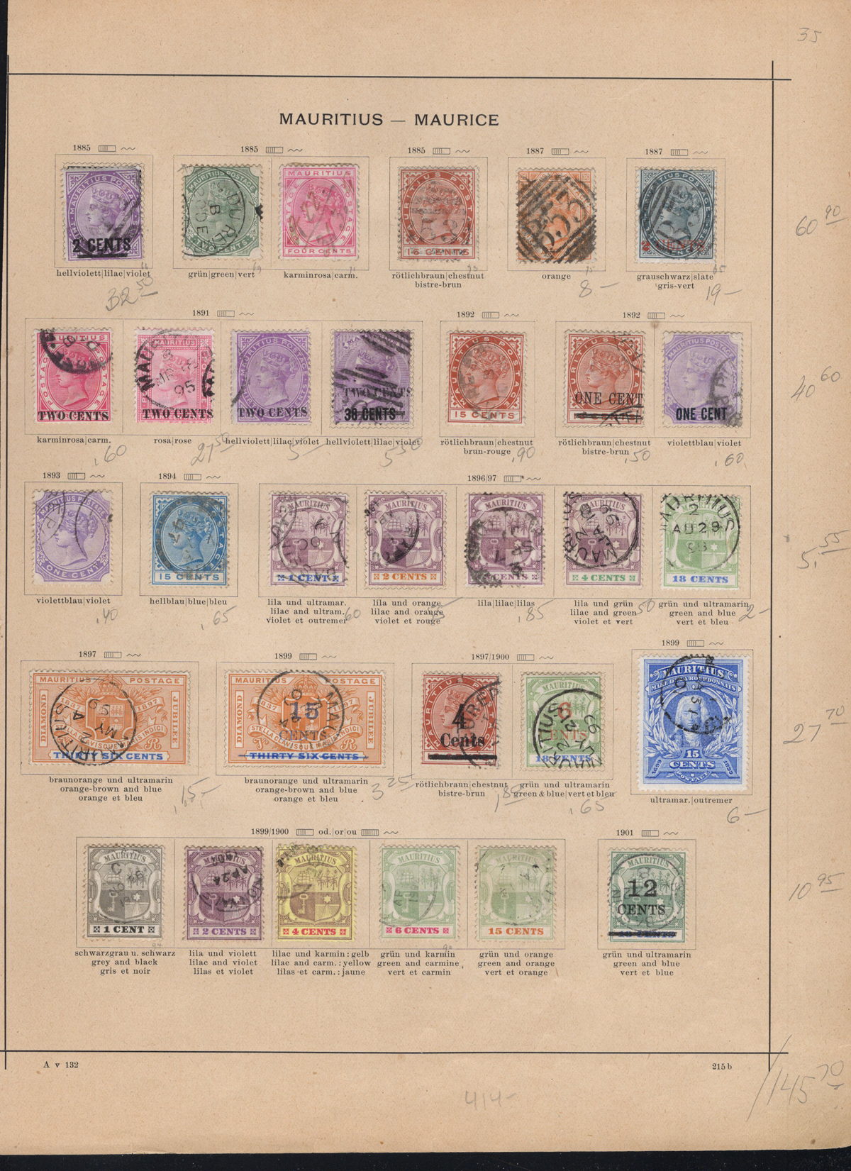 694 O 8/155 imageCollection of Used Mauritius,1858-1912, a nice quality old time collection, lightly hinged on album pages, with 102 different stamps in period, including several U$100+ stamps, complete sets, etc. Many to most of the postmarks are nice and clean, overall fine to very fine. (Scan 1) (Scan 2) (Scan 3) (Scan 4) (Scan 5) (All Scans) (All Images)