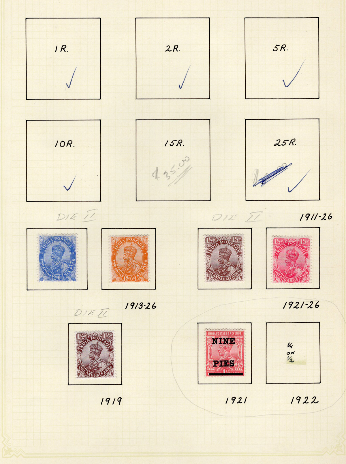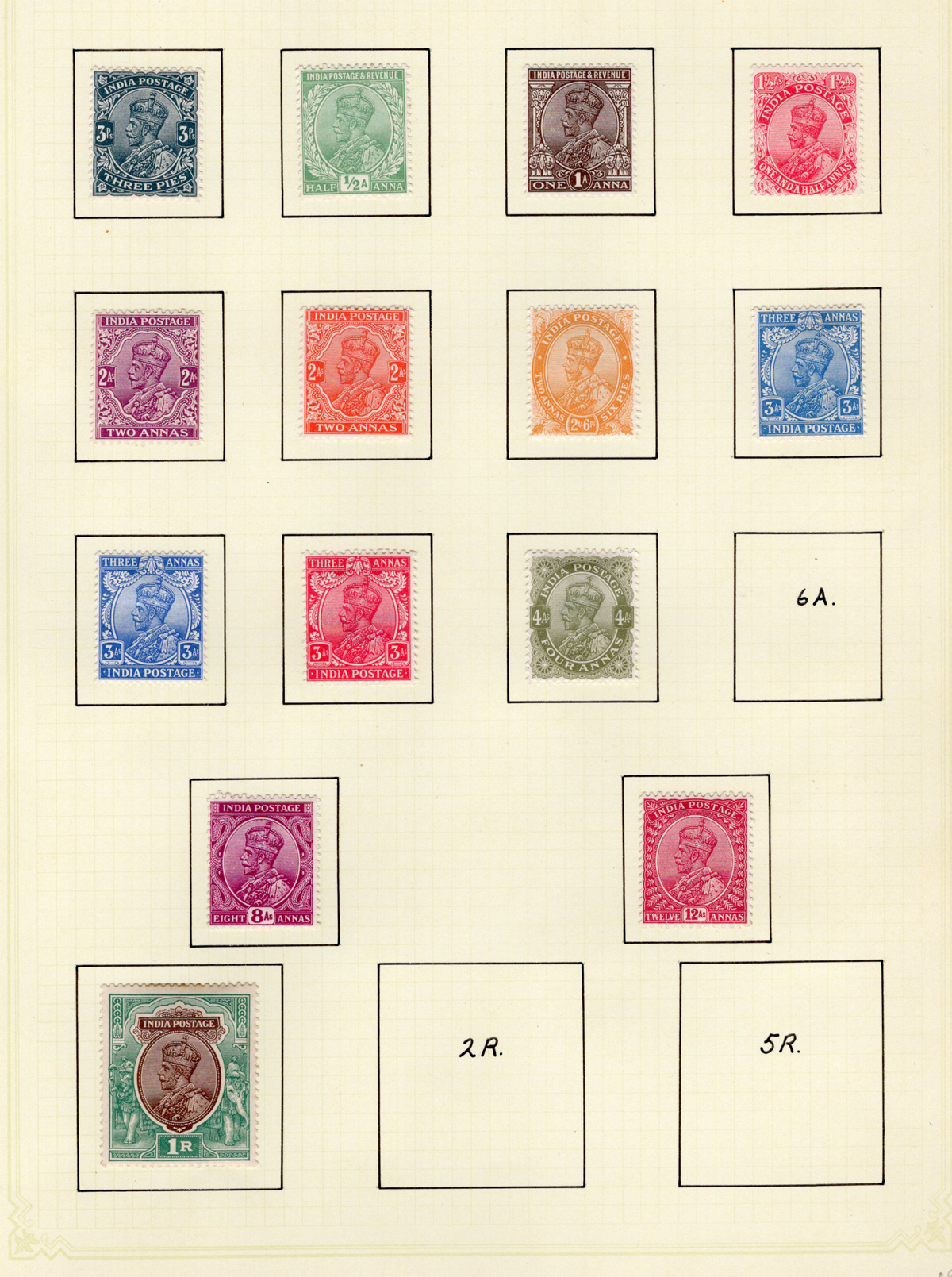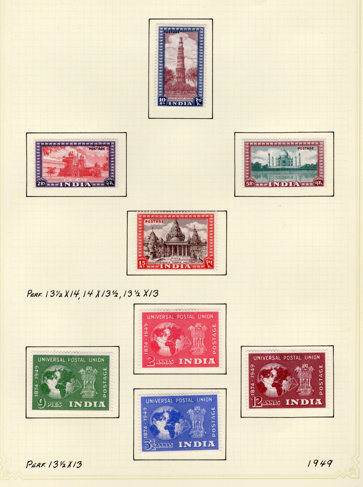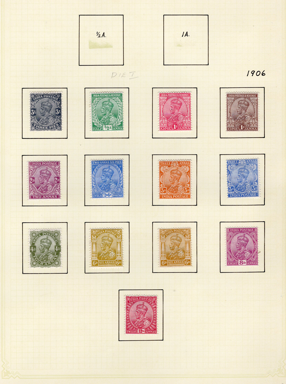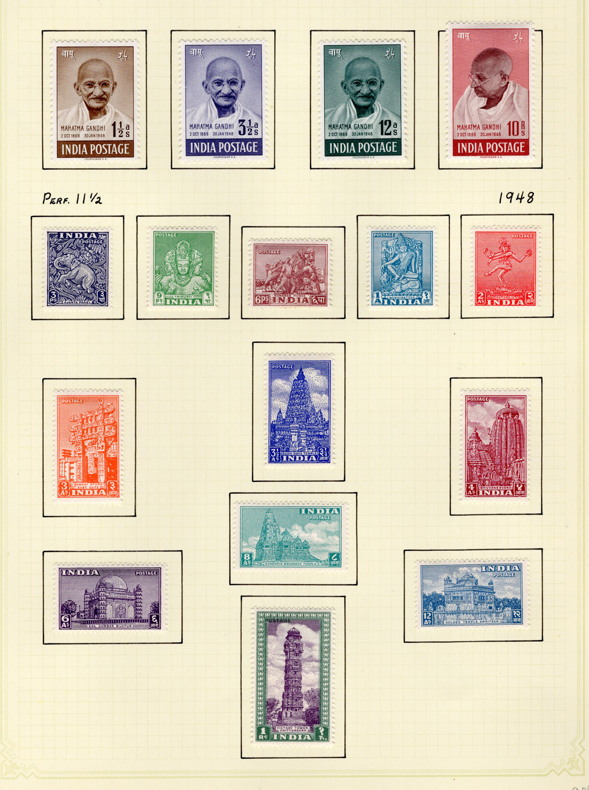 682 og 80/228 imageCollection of Mint India, 1906-1949, all neatly displayed on 11 quadrille pages, with 90 different stamps, including the 1948 Gandhi set, the 1949 Pictorials set, and many others, including a few Officials and the 1914 KGV Indian Expeditionary Force set. Three used stamps were not counted. Very nice quality, with fresh, bright colours and overall fine to very fine. All pages scanned (Scan 1) (Scan 2) (Scan 3) (Scan 4) (Scan 5) (Scan 6) (Scan 7) (Scan 8) (Scan 9) (Scan 10) (Scan 11) (Scan 12) (All Scans) (All Images)