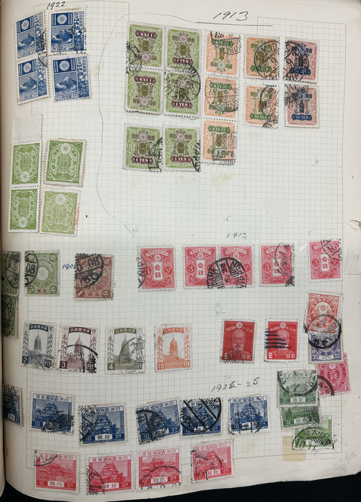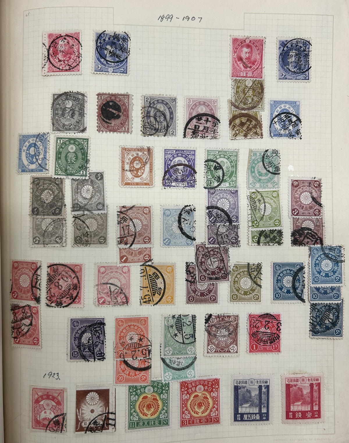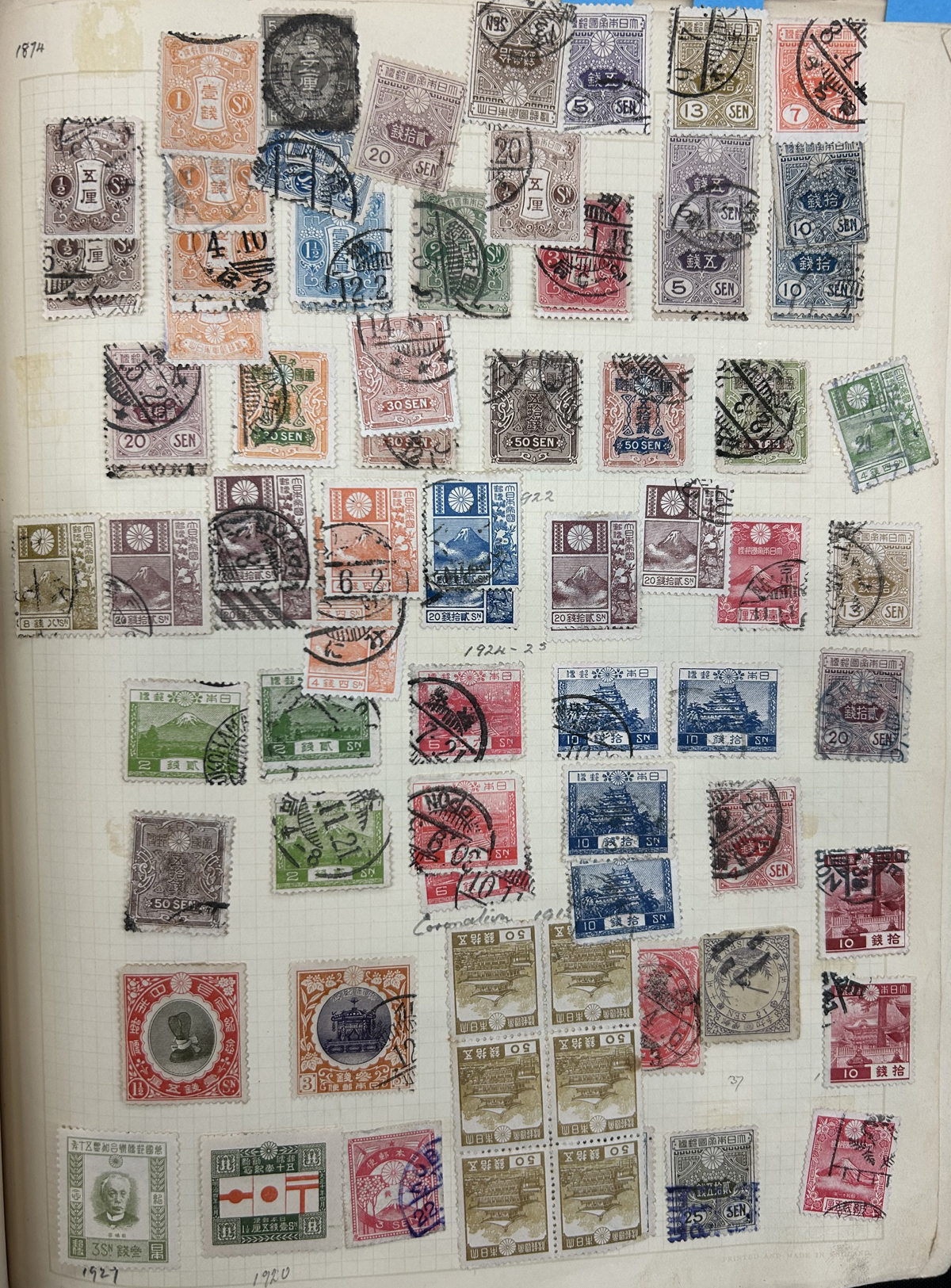722 O/og   imageOld Time Collection of Mint and Used Worldwide, to About 1940, mounted on pages filling a thick spring-back album. Contains mostly European and East European countries (the usual suspects) but there are also other good countries such as Labuan, Japan, Newfoundland, Gold Coast, and many others. There are many hundreds of mint and used stamps in this old collection, with many complete sets, a little duplication, and several more valuable stamps and sets (some cataloguing in the $50 to $150 range). We saw no big countries such as USA, France, Canada, Spain and such, quality is overall fine. Our photos only show a small representation. (Scan 1) (Scan 2) (Scan 3) (Scan 4) (Scan 5) (Scan 6) (Scan 7) (Scan 8) (Scan 9) (Scan 10) (Scan 11) (Scan 12) (Scan 13) (Scan 14) (Scan 15) (Scan 16) (Scan 17) (Scan 18) (Scan 19) (Scan 20) (Scan 21) (Scan 22) (Scan 23) (Scan 24) (Scan 25) (Scan 26) (All Scans) (All Images)