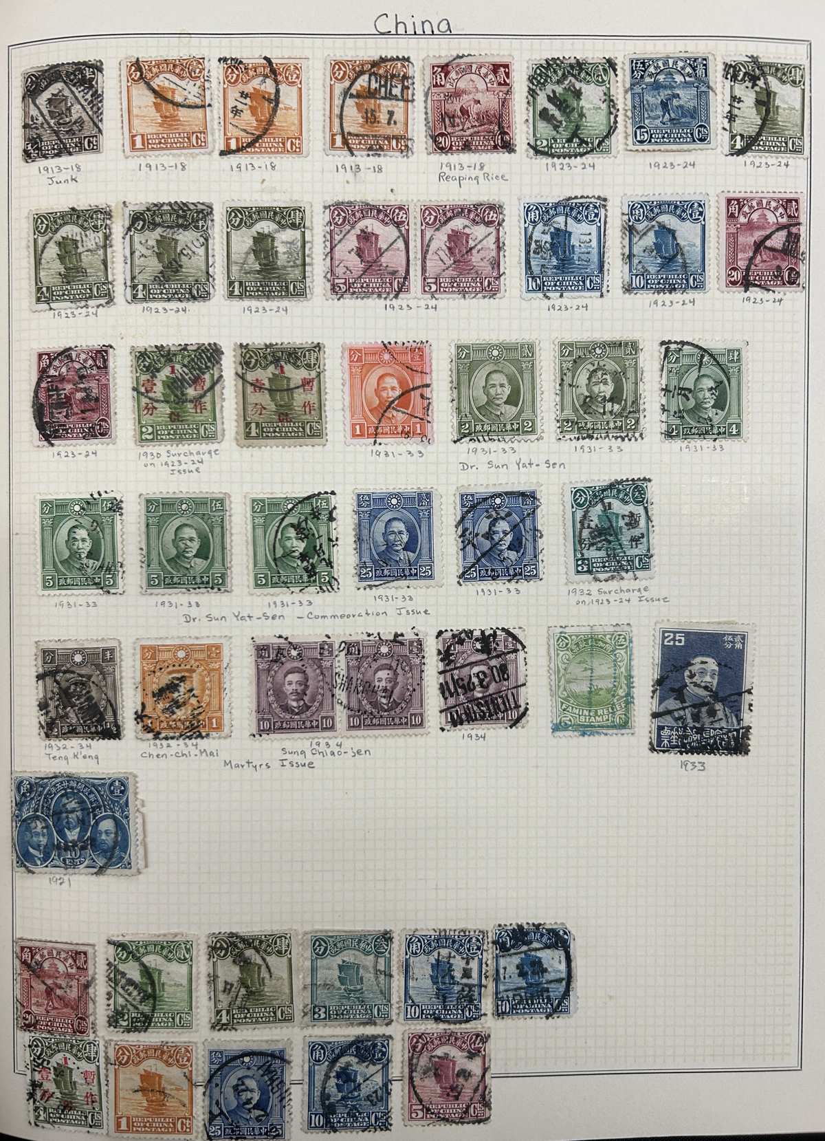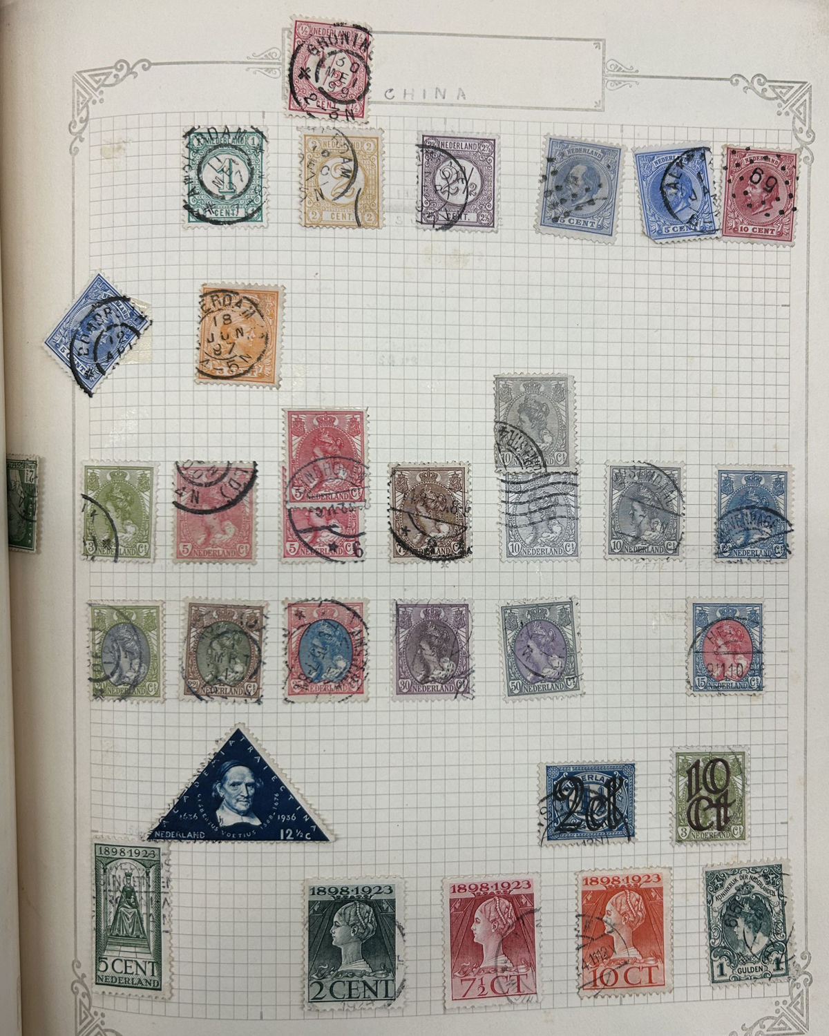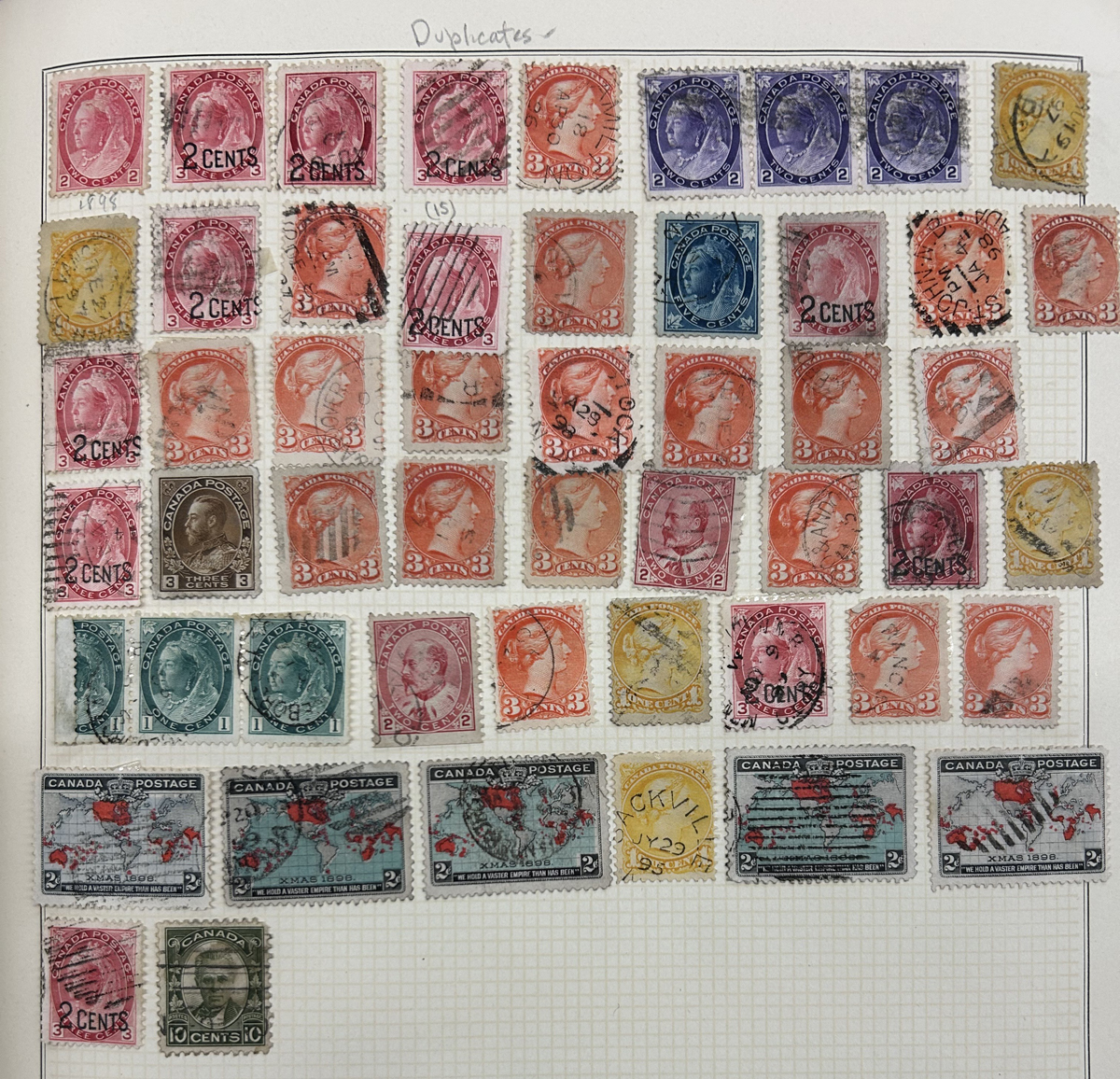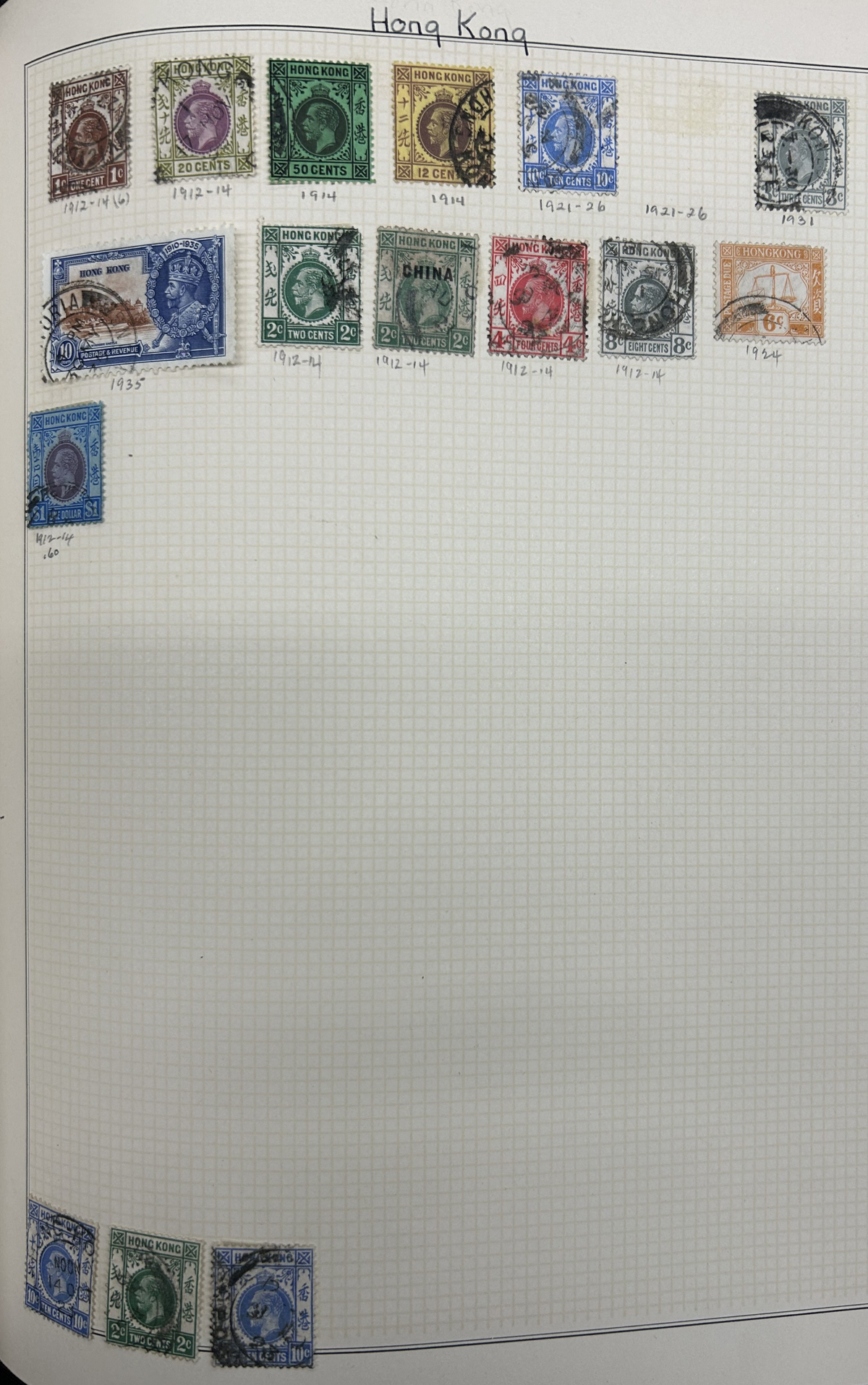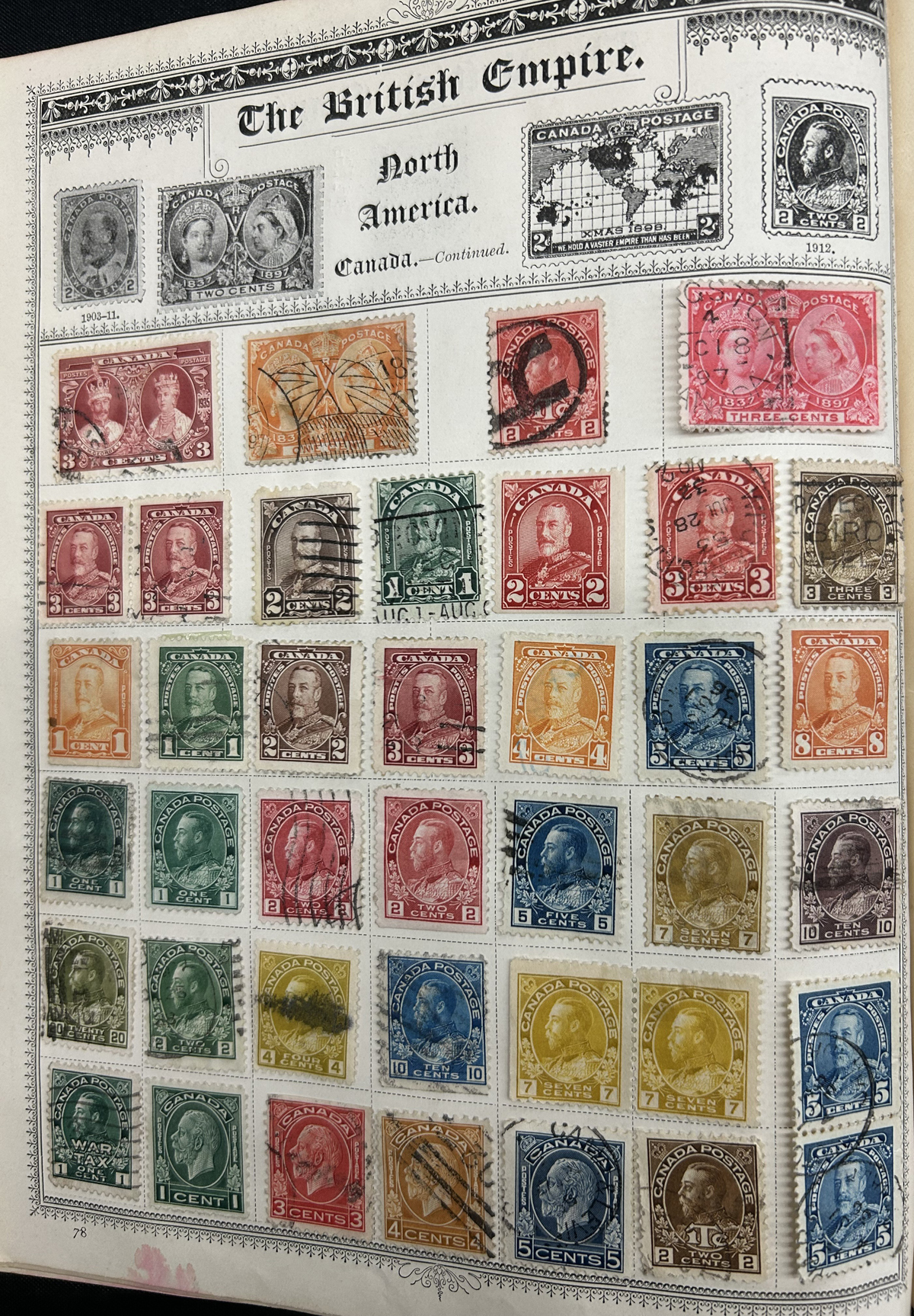 723 O/og   imageGroup of Old Time Worldwide Collections, best is a Progressive Stamp Album (with slipcase) holding a worldwide collection with hundreds of stamps, the value being on Commonwealth countries including many pages of Canada, including several Small Queens (to the 50c, with duplication, postmarks, etc.), Jubilees, and so on up to the late 1930s. Next is a "Queen Postage Stamp Album" (ca. 1930s) also containing hundreds of stamps, with strength in the British Empire, including Canada. Two smaller old albums contain dozens of low value stamps and finally there are a few dozen album pages with Commonwealth countries, with strength in India. One page that stood out contains two bisected 1911 Macau stamps (one catalogued at $50, the other not listed). See pictures to get a flair of this group. (Scan 1) (Scan 2) (Scan 3) (Scan 4) (Scan 5) (Scan 6) (Scan 7) (Scan 8) (Scan 9) (Scan 10) (Scan 11) (Scan 12) (Scan 13) (Scan 14) (Scan 15) (Scan 16) (Scan 17) (Scan 18) (Scan 19) (Scan 20) (Scan 21) (Scan 22) (Scan 23) (Scan 24) (All Scans) (All Images)