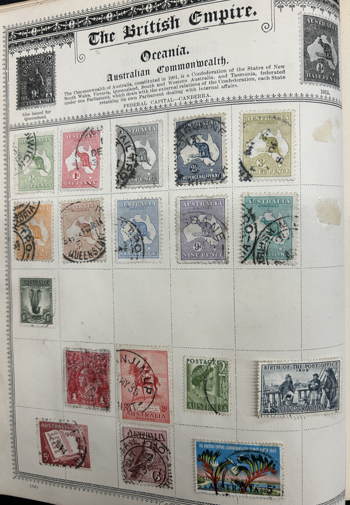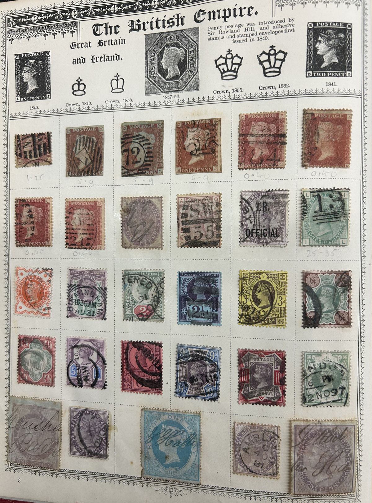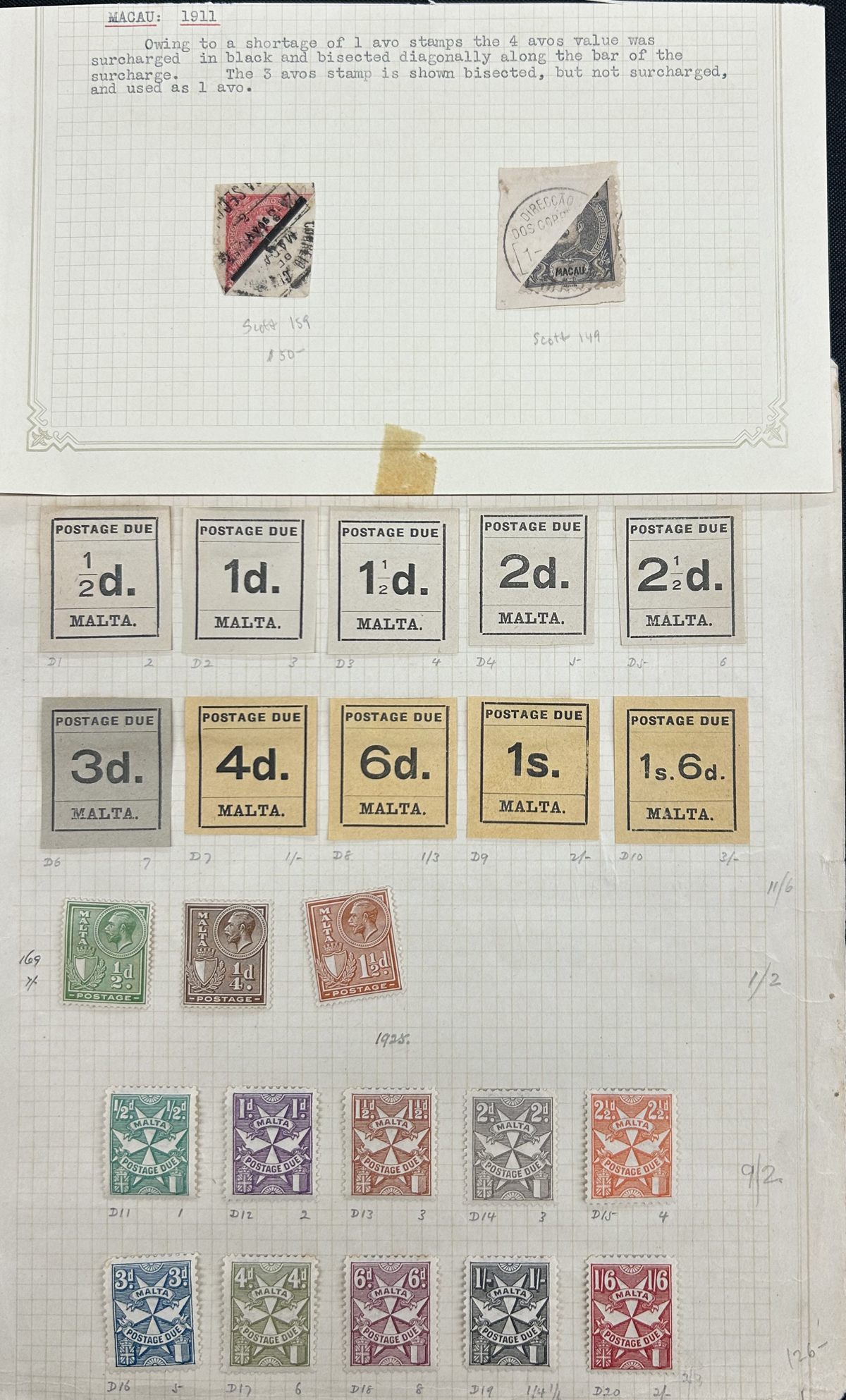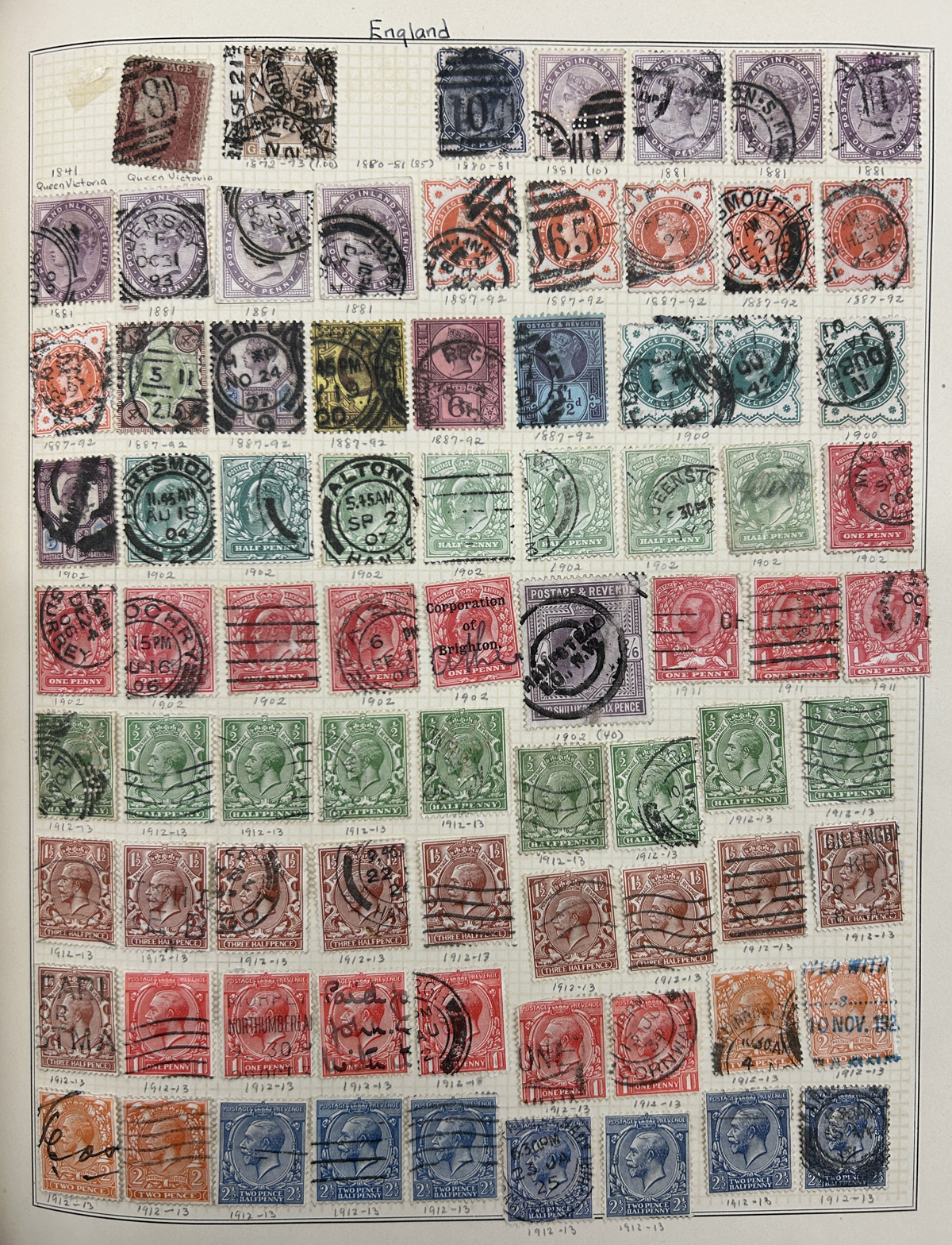 723 O/og   imageGroup of Old Time Worldwide Collections, best is a Progressive Stamp Album (with slipcase) holding a worldwide collection with hundreds of stamps, the value being on Commonwealth countries including many pages of Canada, including several Small Queens (to the 50c, with duplication, postmarks, etc.), Jubilees, and so on up to the late 1930s. Next is a "Queen Postage Stamp Album" (ca. 1930s) also containing hundreds of stamps, with strength in the British Empire, including Canada. Two smaller old albums contain dozens of low value stamps and finally there are a few dozen album pages with Commonwealth countries, with strength in India. One page that stood out contains two bisected 1911 Macau stamps (one catalogued at $50, the other not listed). See pictures to get a flair of this group. (Scan 1) (Scan 2) (Scan 3) (Scan 4) (Scan 5) (Scan 6) (Scan 7) (Scan 8) (Scan 9) (Scan 10) (Scan 11) (Scan 12) (Scan 13) (Scan 14) (Scan 15) (Scan 16) (Scan 17) (Scan 18) (Scan 19) (Scan 20) (Scan 21) (Scan 22) (Scan 23) (Scan 24) (All Scans) (All Images)