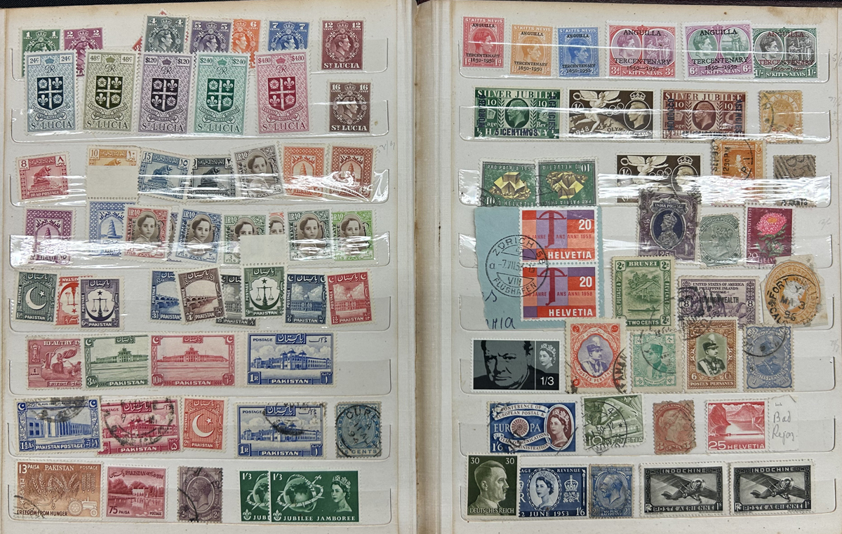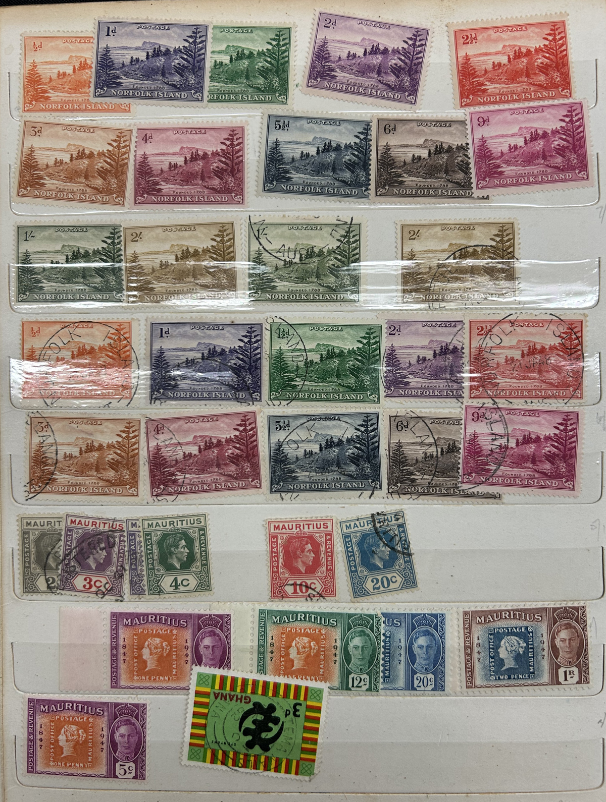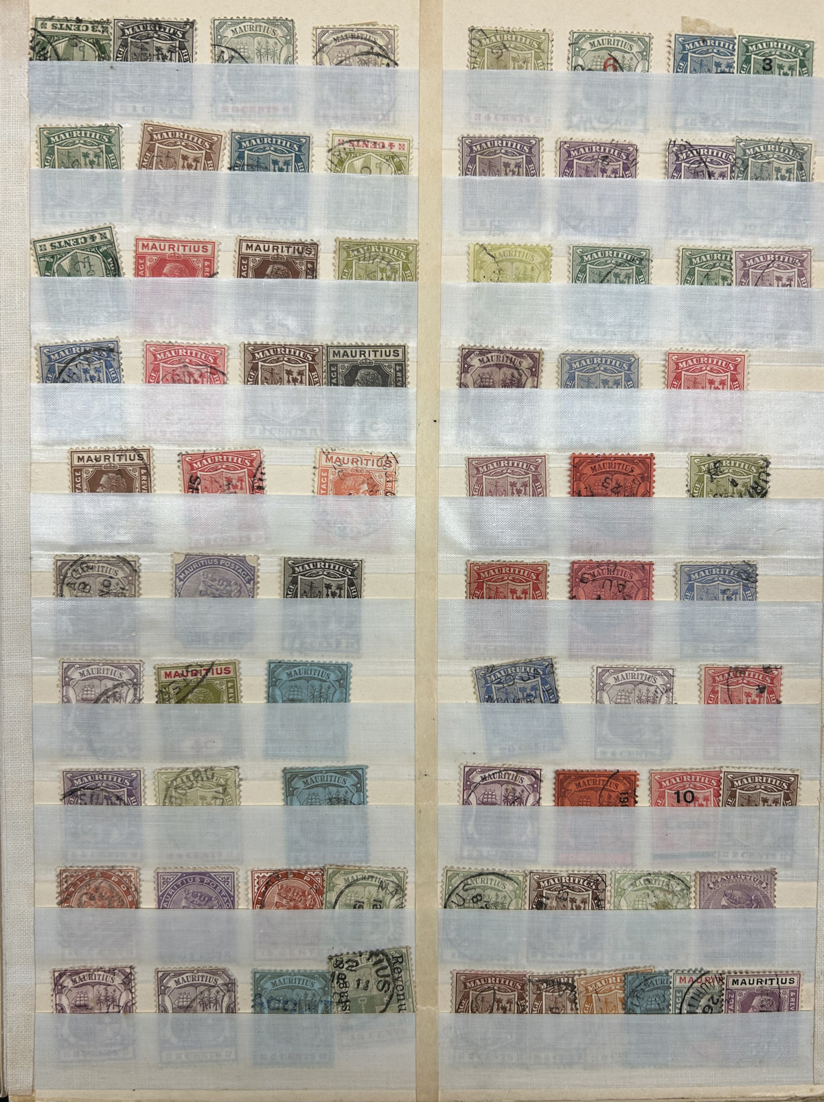724 O/og/nh   imageGroup of Collector's Unsorted Treasures, to the 1960s, all contained in 10 stockbooks of various sizes. This is a very interesting holding, in which one will find all sorts of better material, including many hidden treasures, mostly pre-1950s. A quick glance revealed many $50 or higher stamps and many high denominations, and we only just skimmed the surface. Most of the material is Commonwealth, but we also noted a few other countries. Countries of note include Australia, Mauritius, USA, Canada, China (incl. PRC), French colonies, Portugal, Macau, India, GB, Transvaal, Philippines and many more. A difficult group to describe, mostly because of its jumbled nature, although some of the material is semi-sorted by country. One of the stockbooks contains mainly NH blocks of four of Germany and GB from the 1960s. Last but not least is a box containing all sorts of loose material, including a few dozen glassines of early China issues (in quantity). A wonderful opportunity for the patient collector, or online reseller, as our low estimate should prove a good buy. Our pictures only show a small portion of the lot. (Scan 1) (Scan 2) (Scan 3) (Scan 4) (Scan 5) (Scan 6) (Scan 7) (Scan 8) (Scan 9) (Scan 10) (Scan 11) (Scan 12) (Scan 13) (Scan 14) (Scan 15) (Scan 16) (Scan 17) (Scan 18) (Scan 19) (Scan 20) (Scan 21) (Scan 22) (Scan 23) (Scan 24) (Scan 25) (All Scans) (All Images)